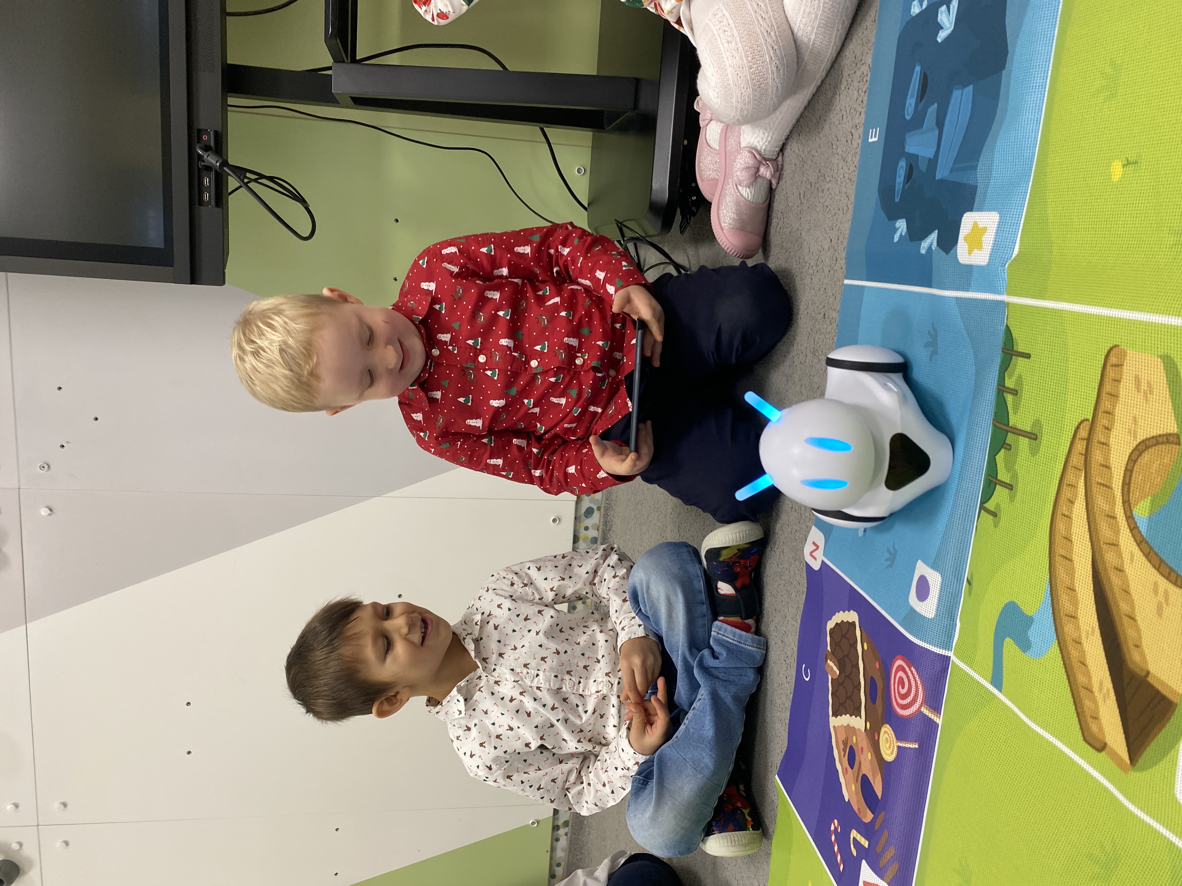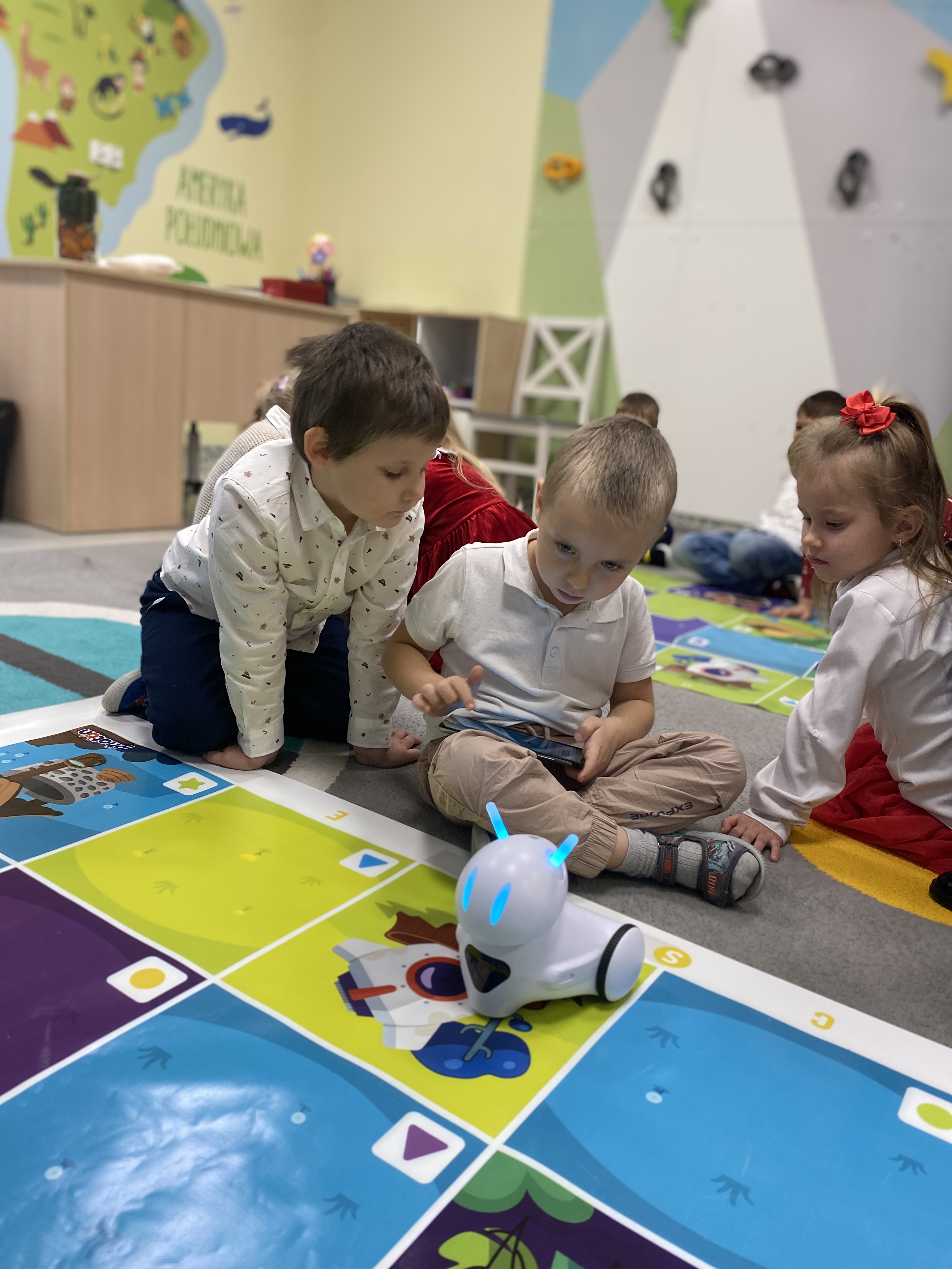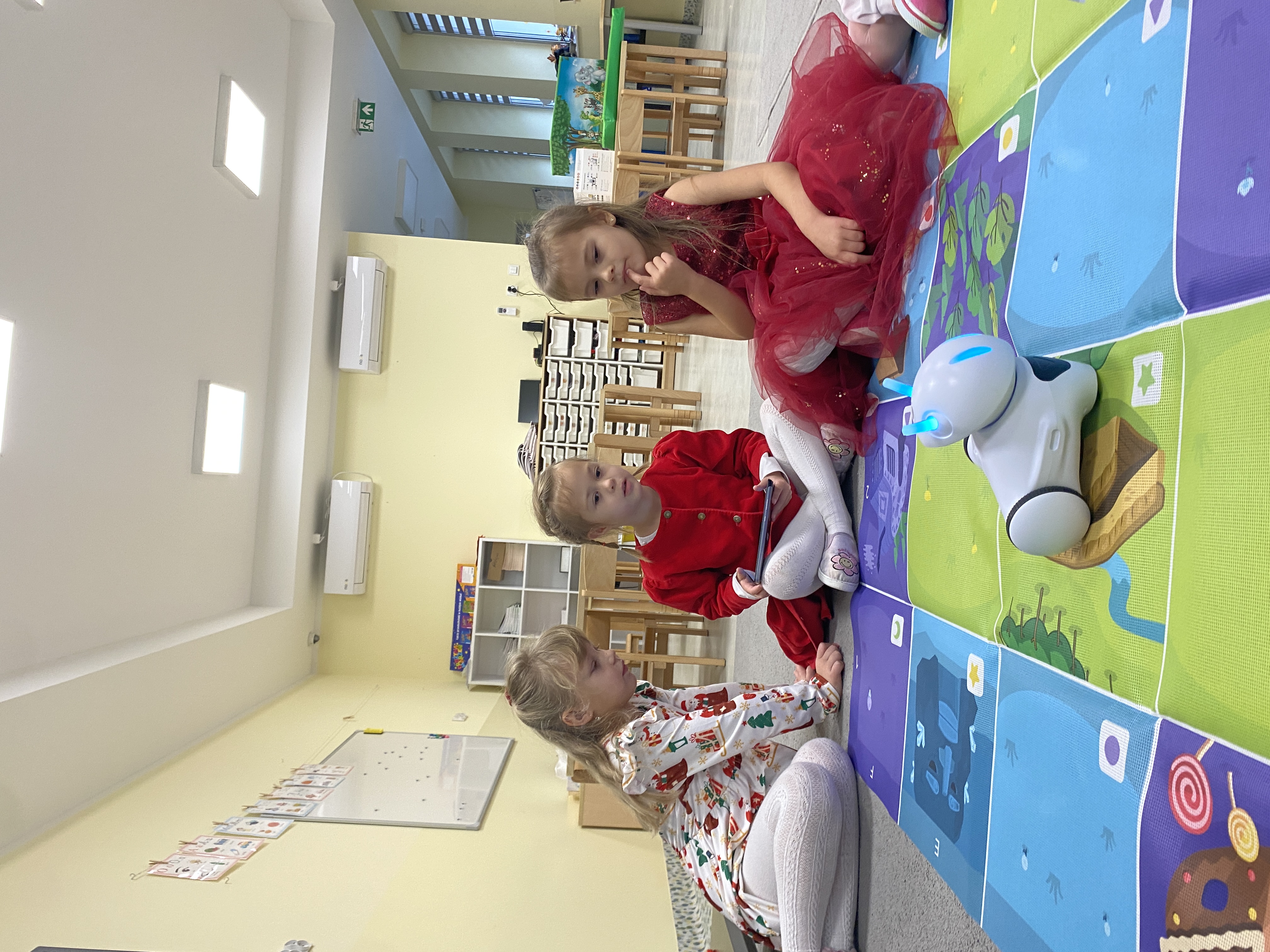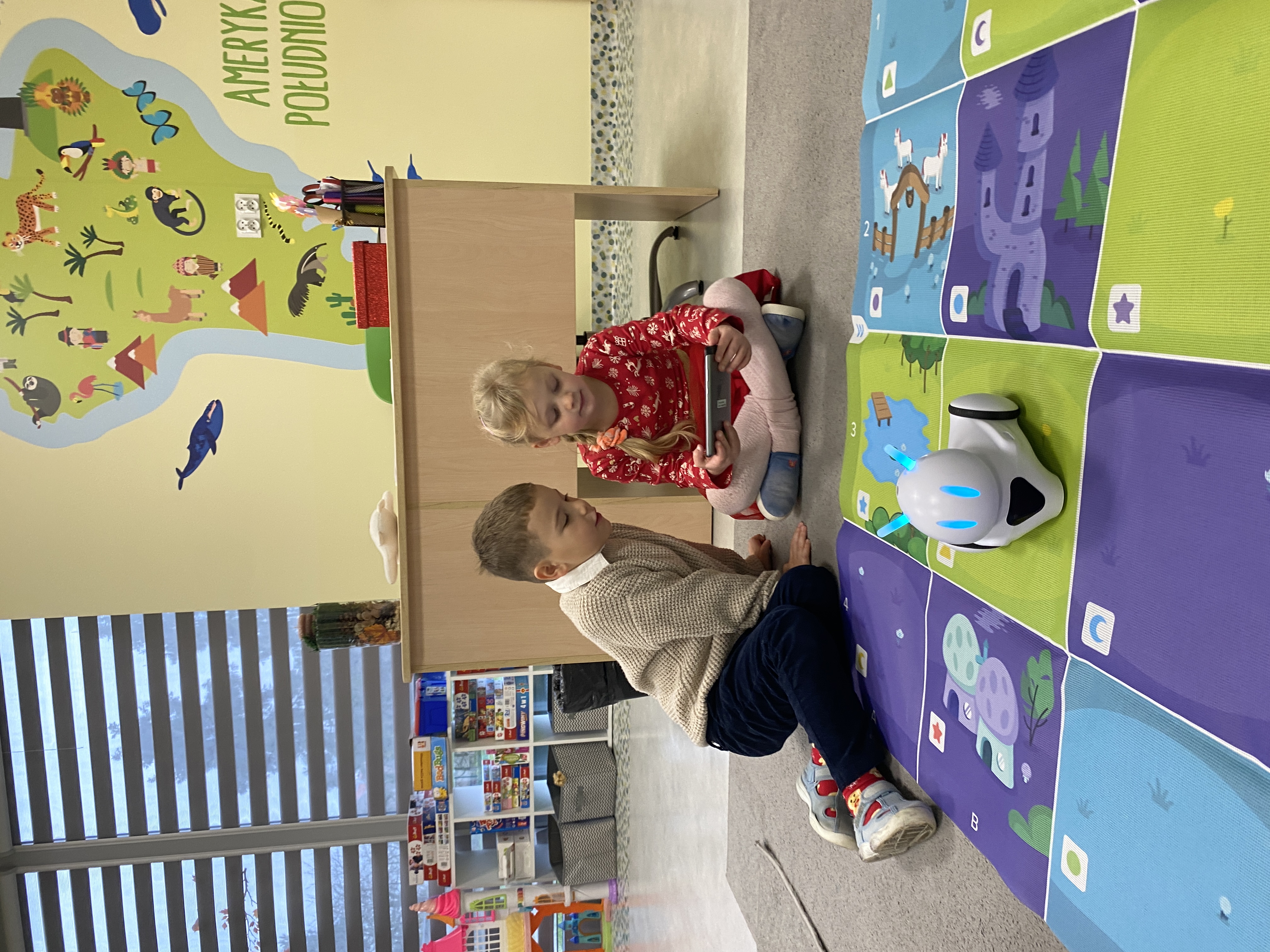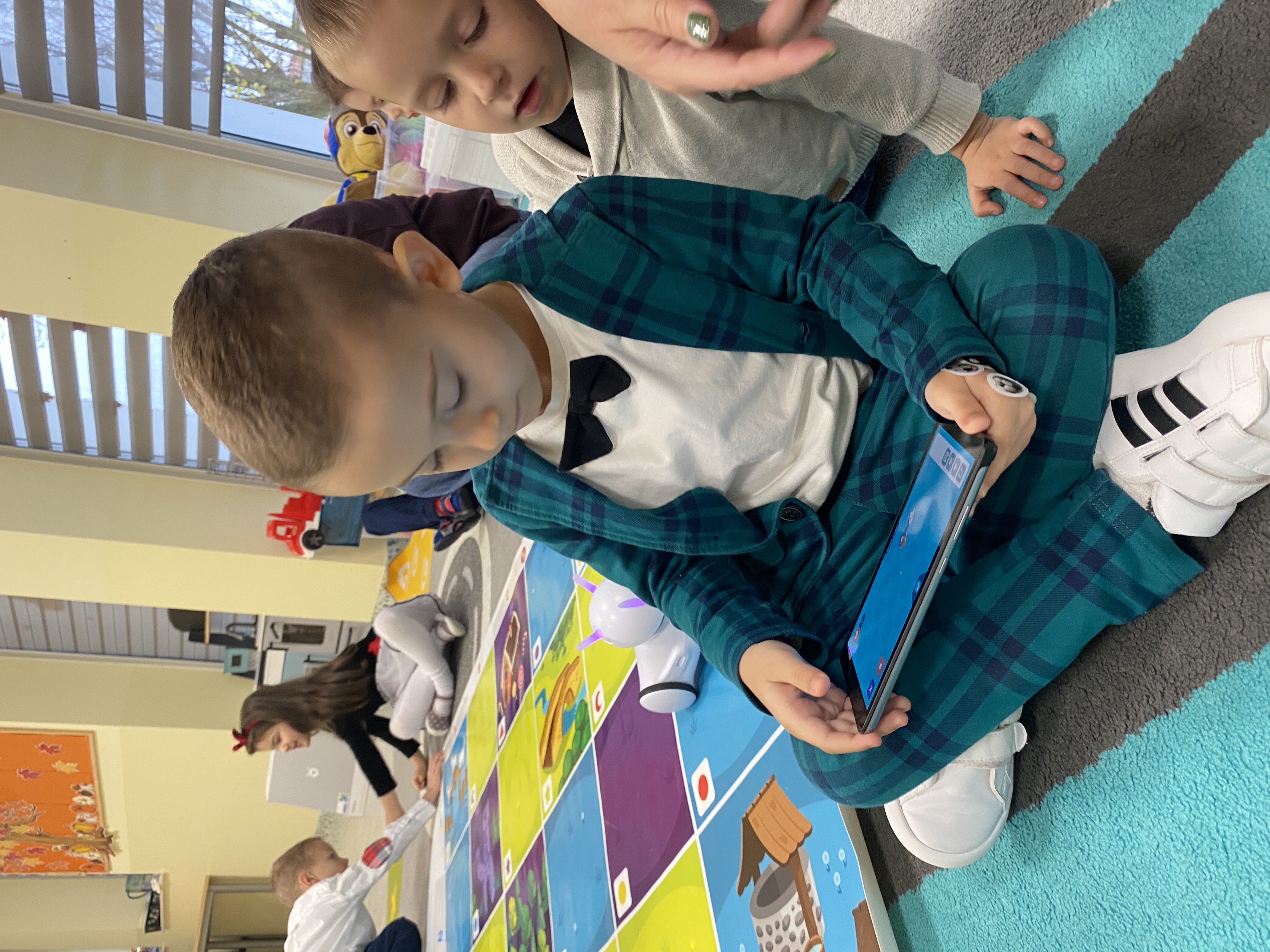 Podczas zajęć przedszkolaki pracowały na specjalnych matach edukacyjnych, gdzie przeliczały pola oraz wyznaczały trasy dla poznanych wcześniej robotów Photonów. Jednym z zadań było również zaplanowanie drogi prowadzącej do kolegów
