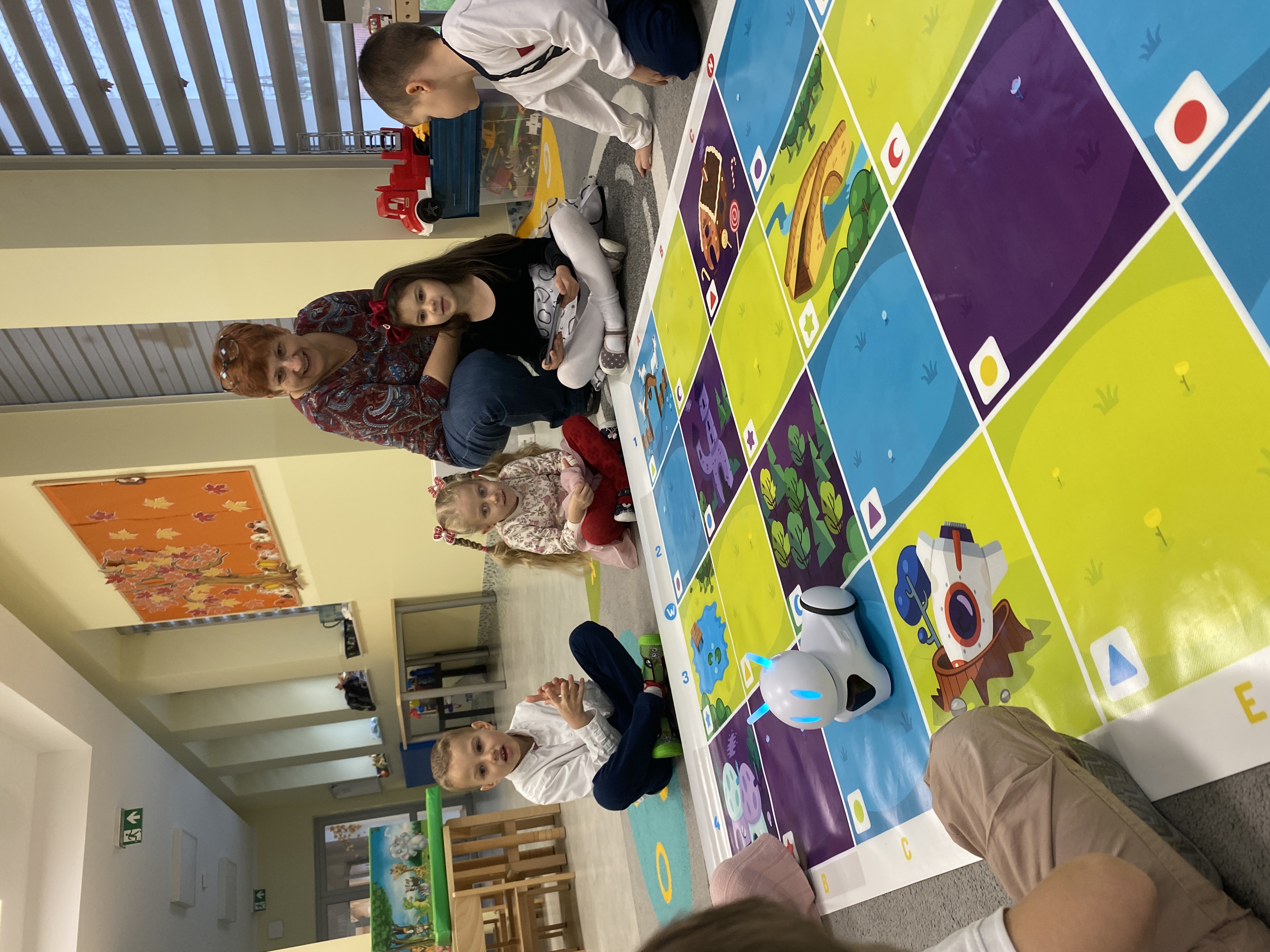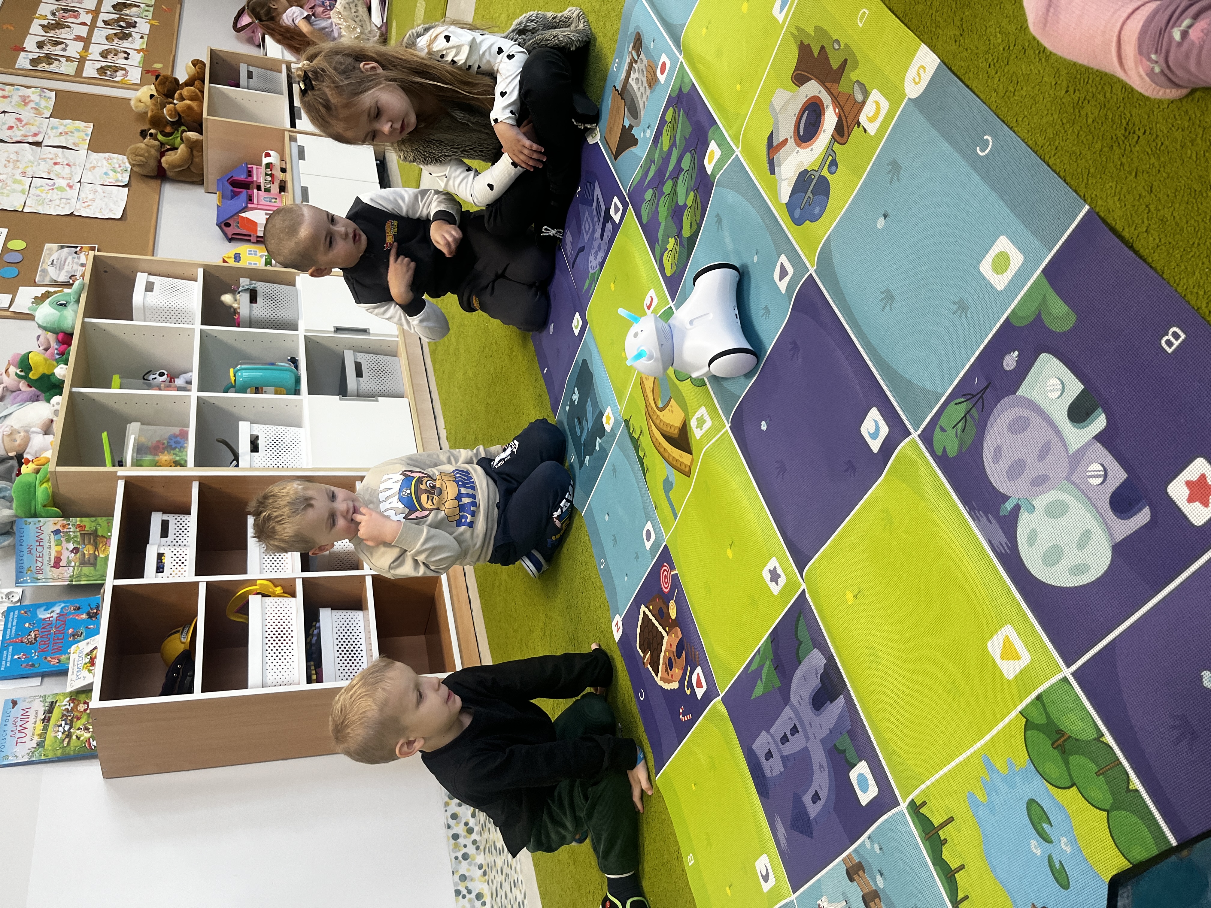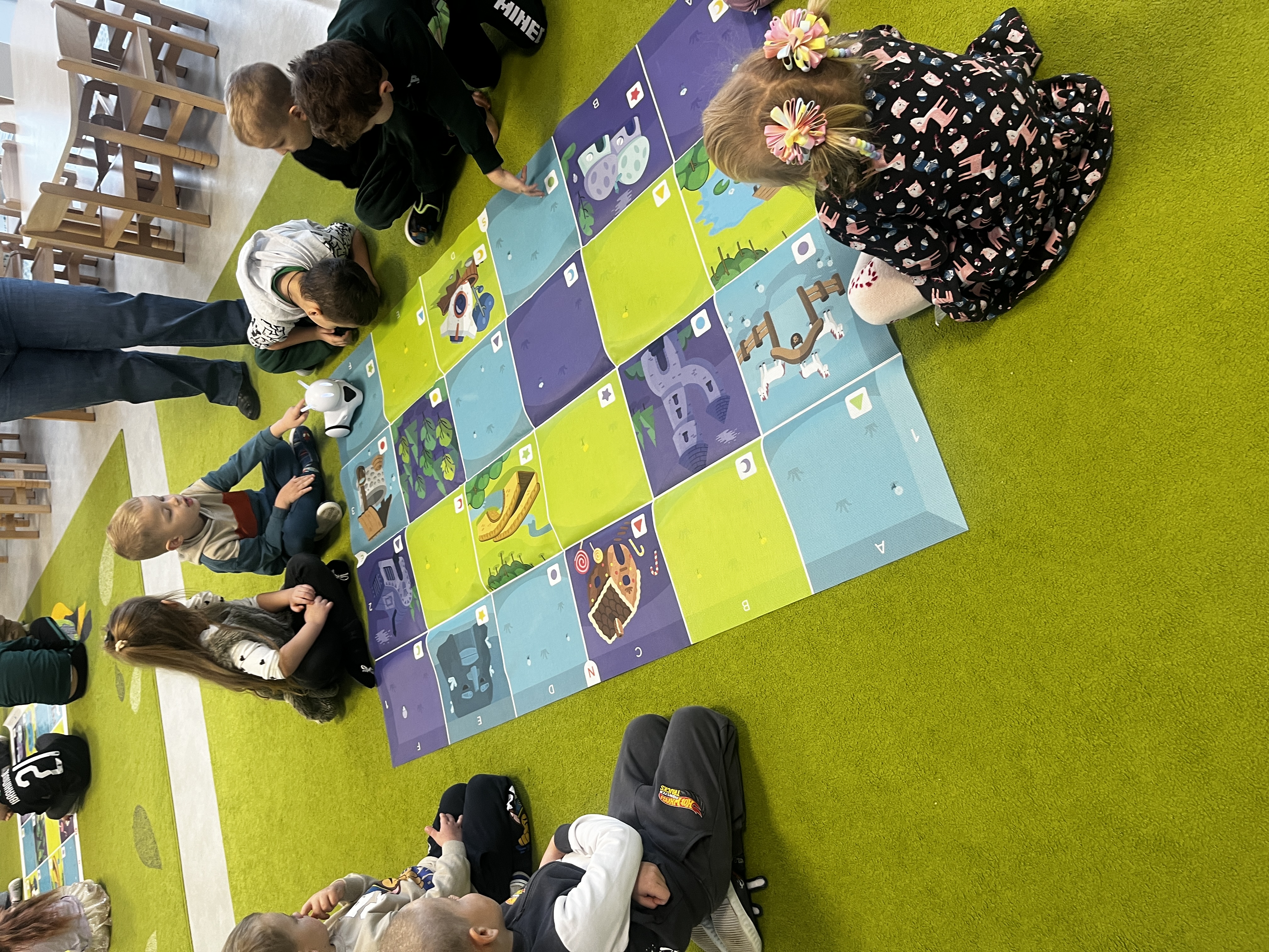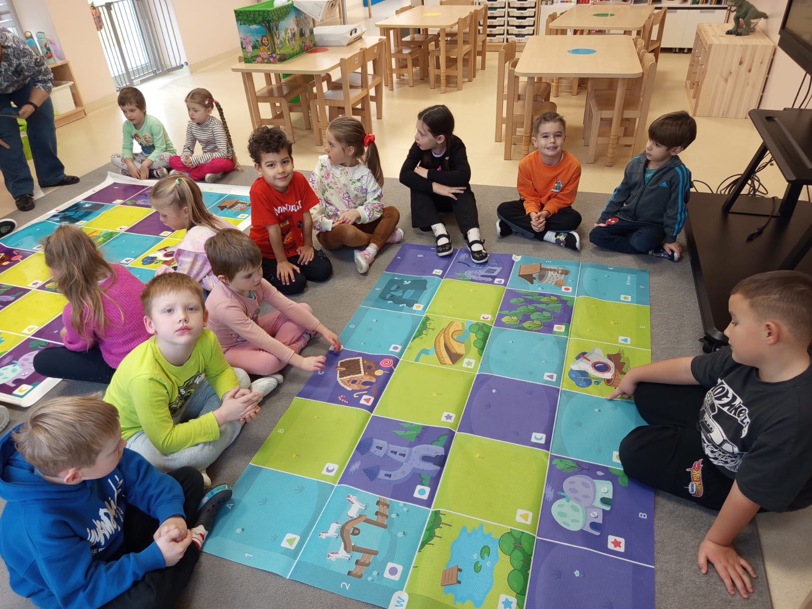 W miesiącu listopadzie przedszkolaki po raz kolejny uczestniczyły w zajęciach Kodowania na dywanie, prowadzonych przez panią Ewę Koniarską z Centrum Biblioteki i Kultury w Gminie Jeżewo. Dzieci ponownie miały okazję rozwijać swoje umiejętności logicznego myślenia i współpracy, biorąc udział w ciekawych zabawach.