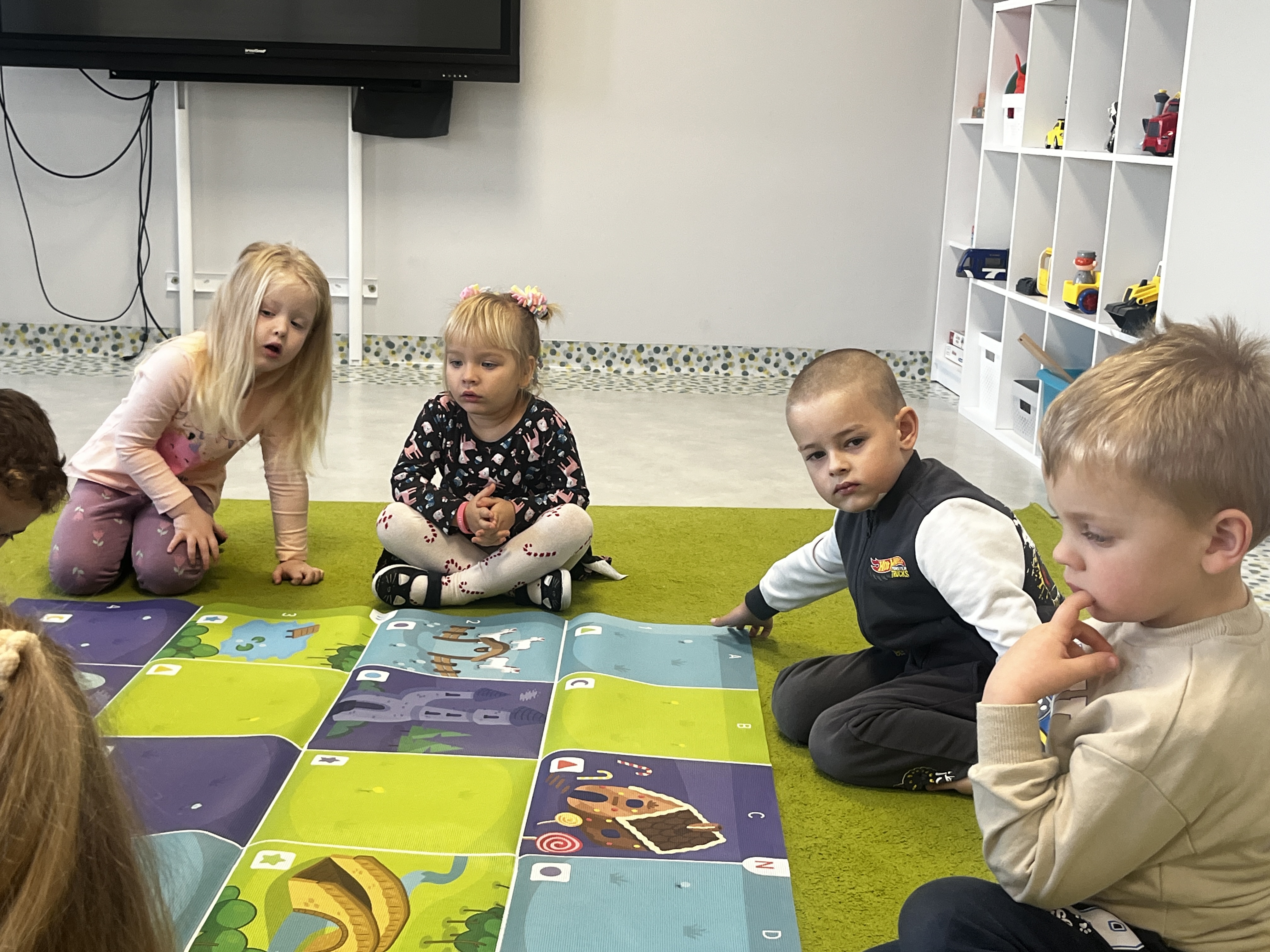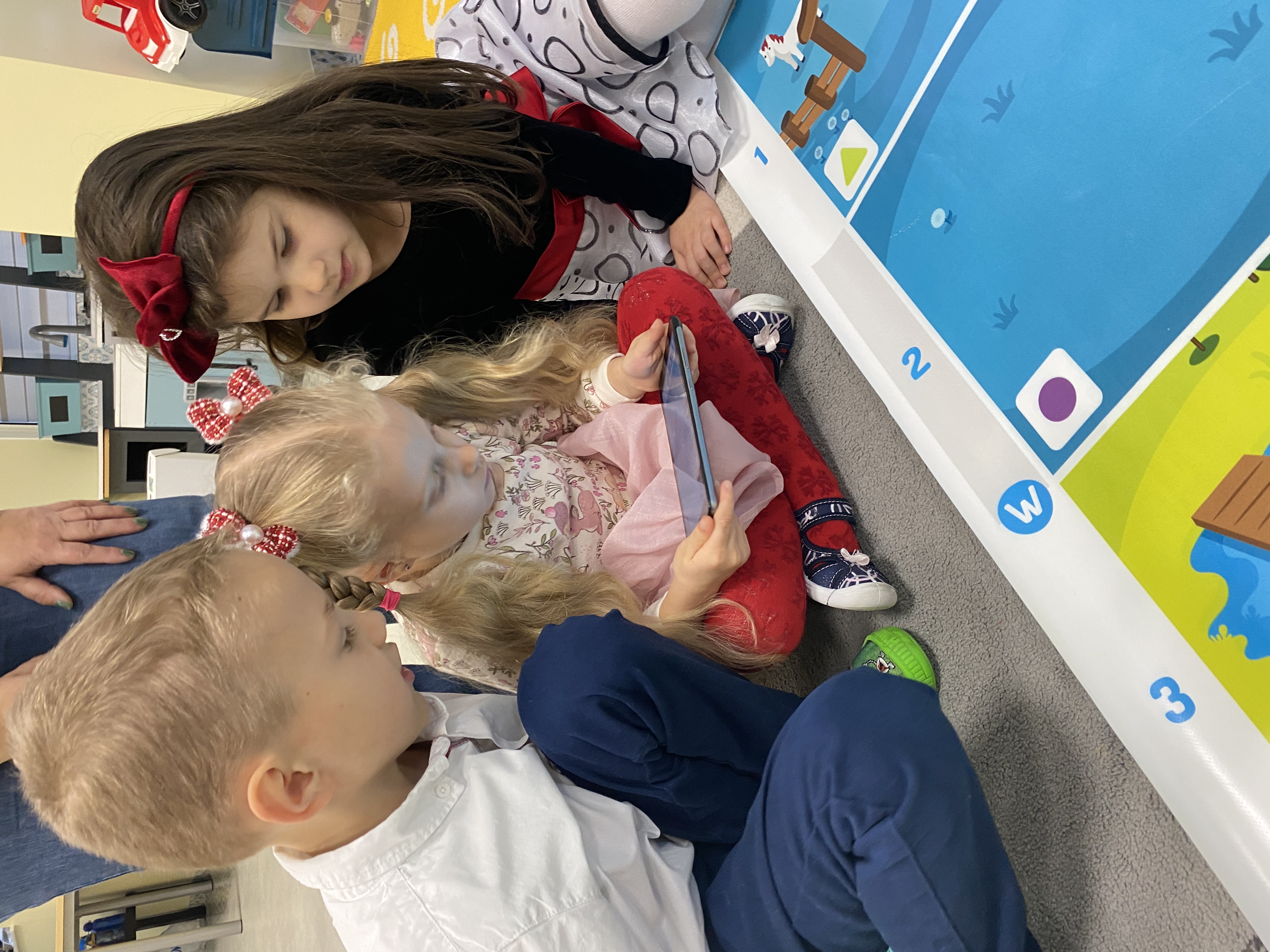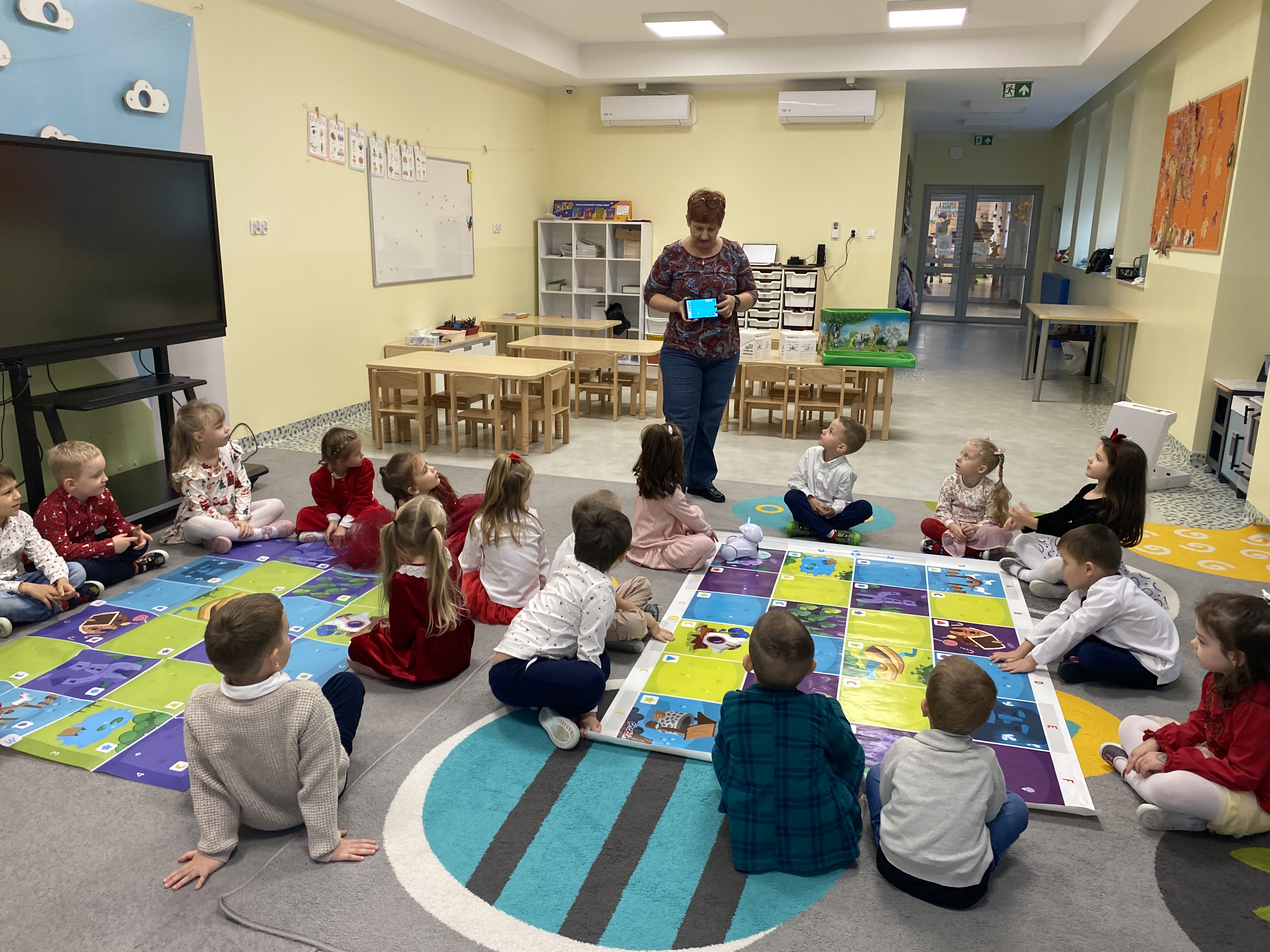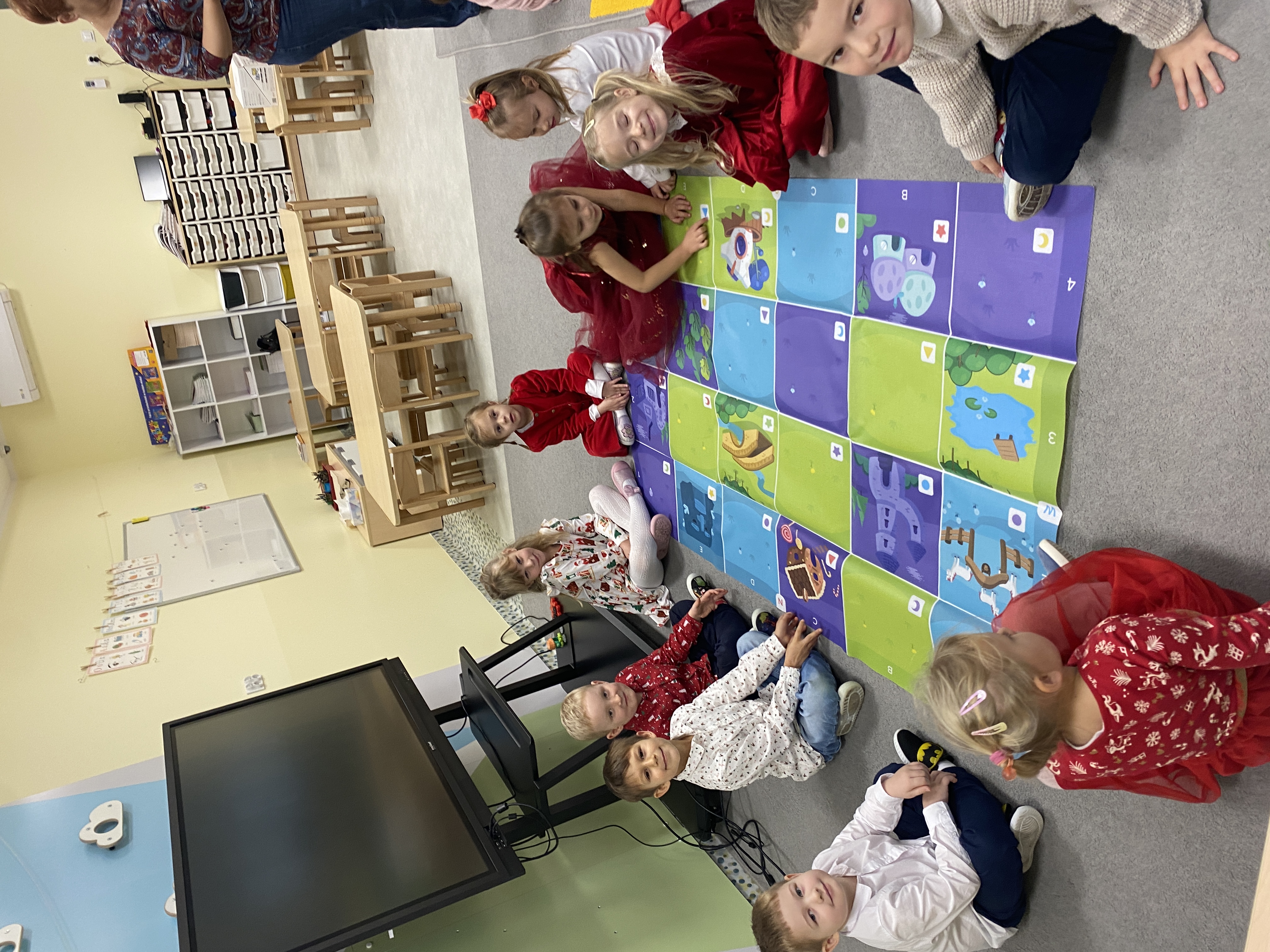 W miesiącu listopadzie przedszkolaki po raz kolejny uczestniczyły w zajęciach Kodowania na dywanie, prowadzonych przez panią Ewę Koniarską z Centrum Biblioteki i Kultury w Gminie Jeżewo. Dzieci ponownie miały okazję rozwijać swoje umiejętności logicznego myślenia i współpracy, biorąc udział w ciekawych zabawach.