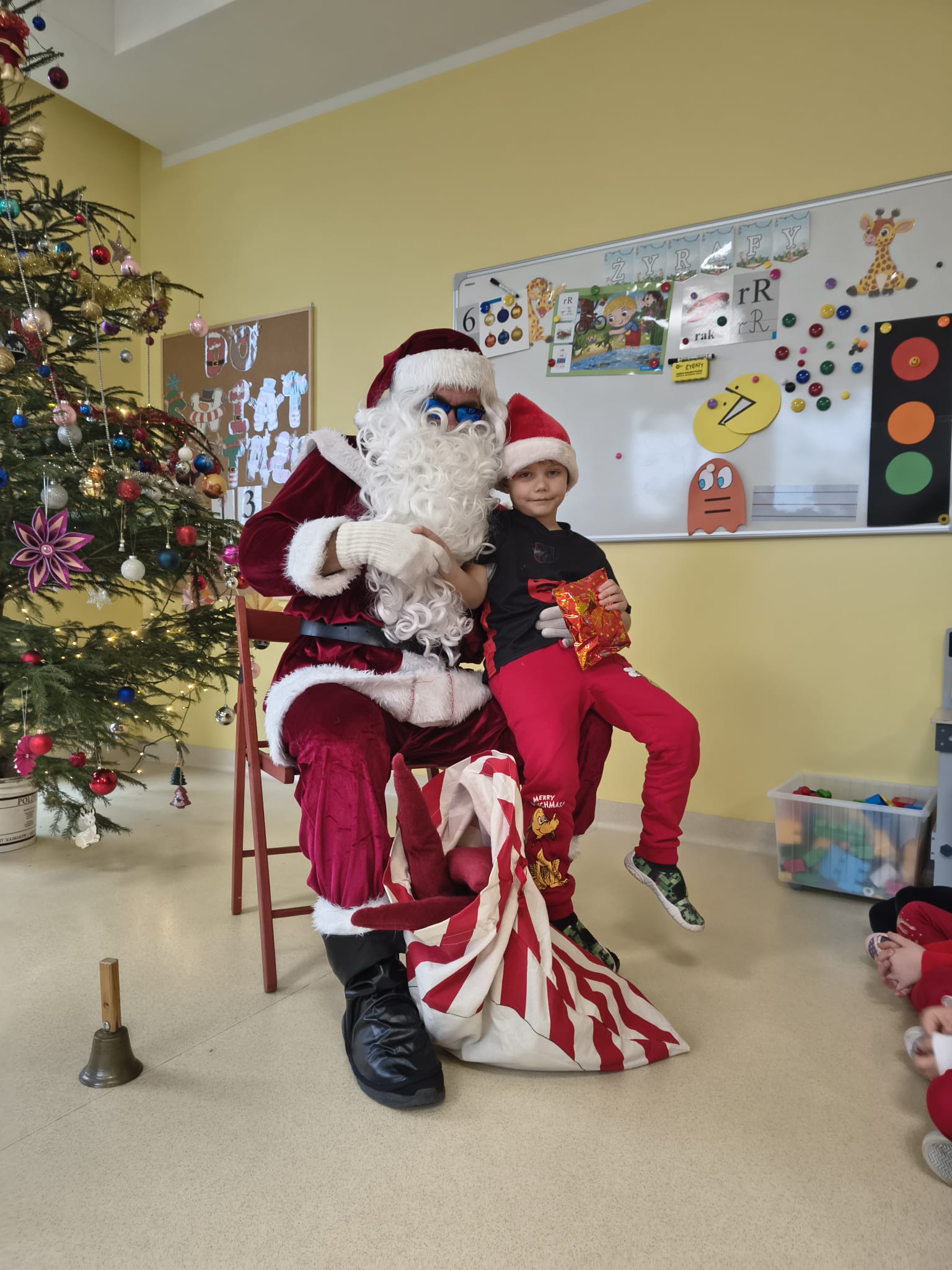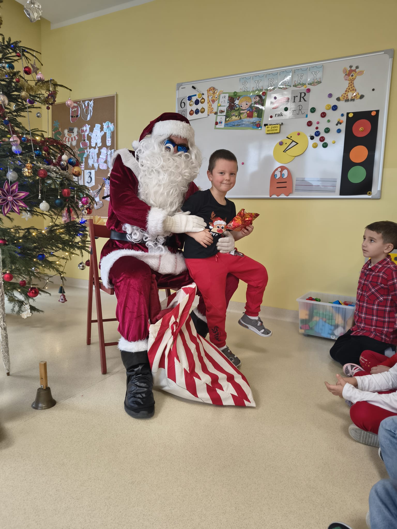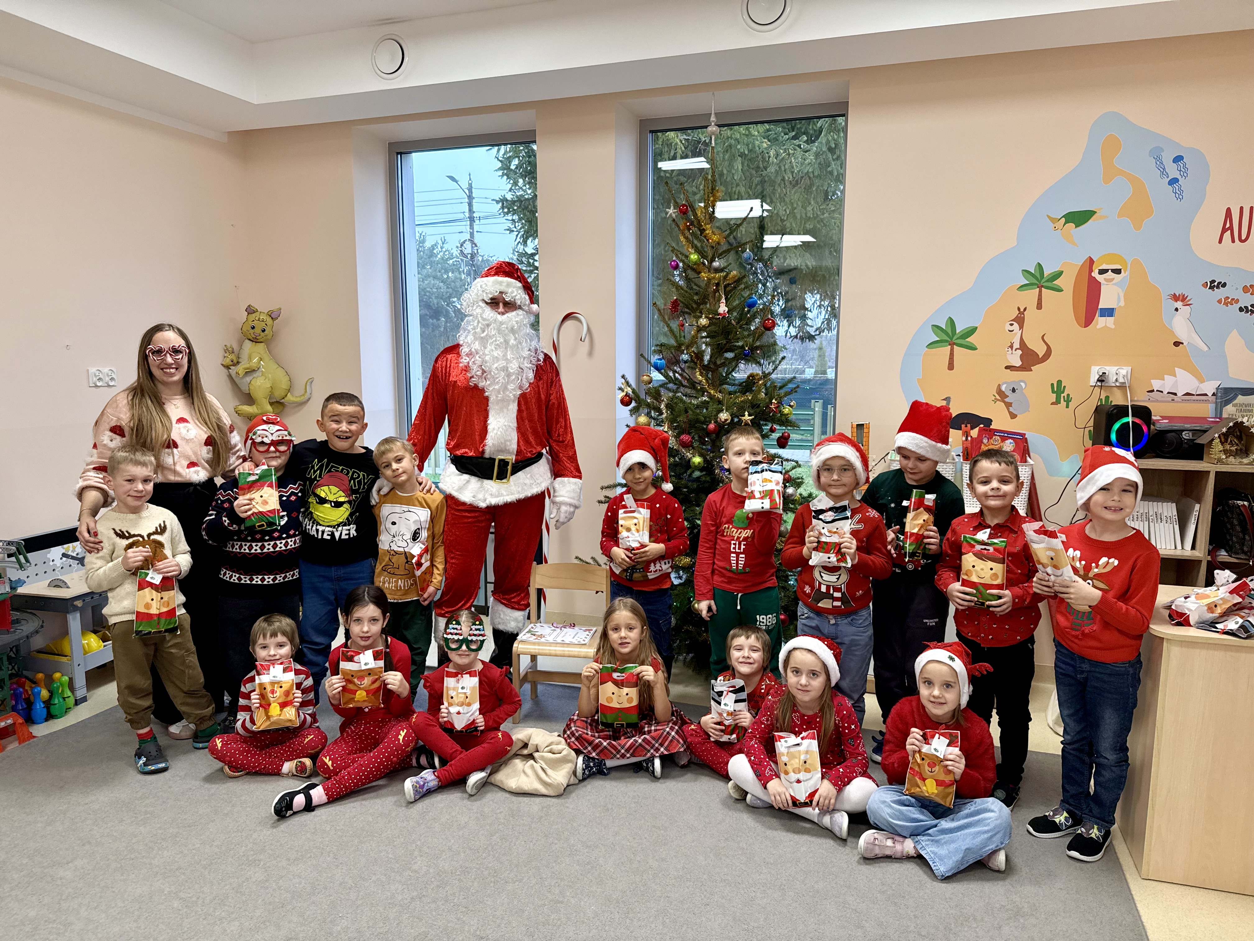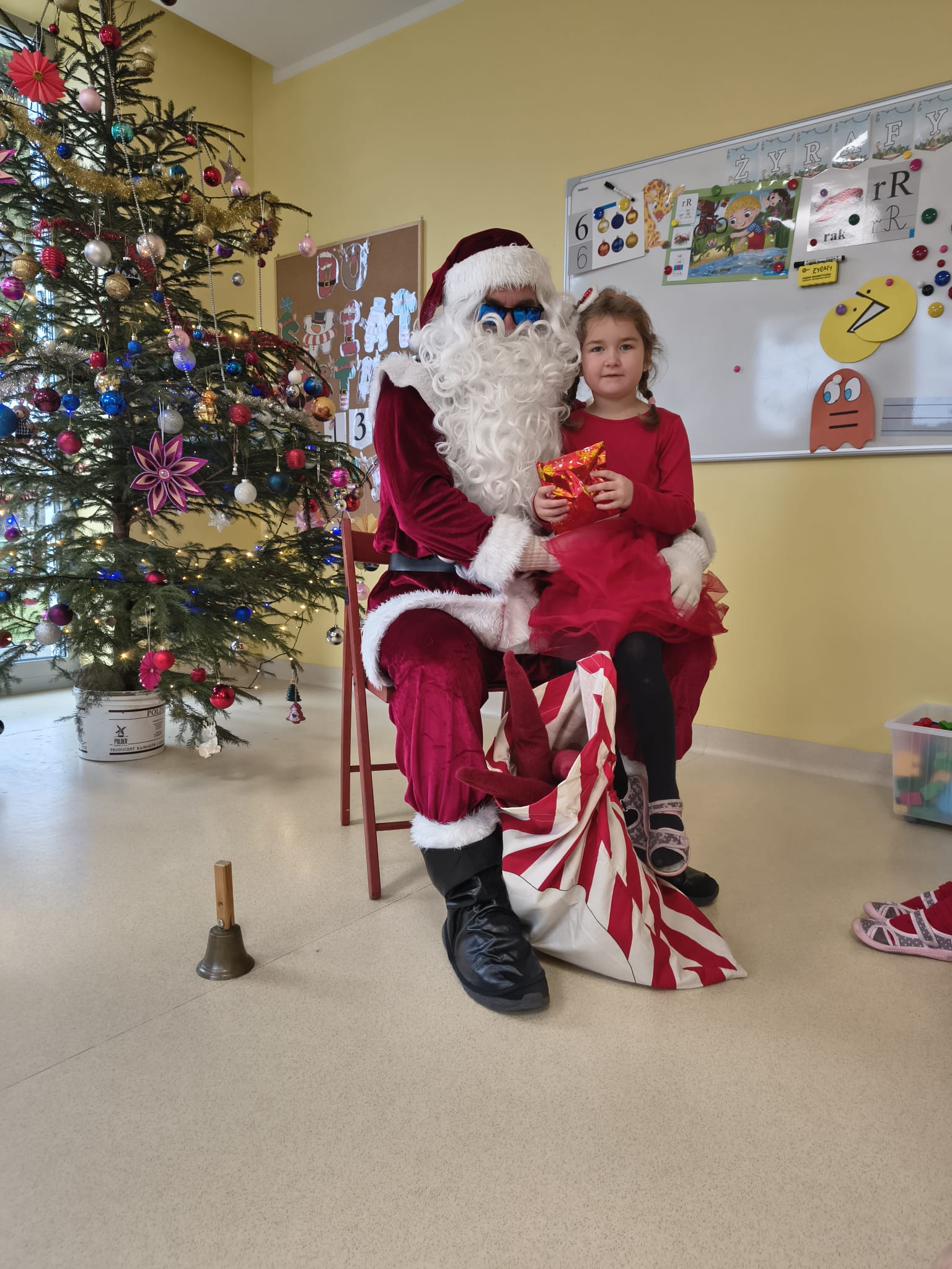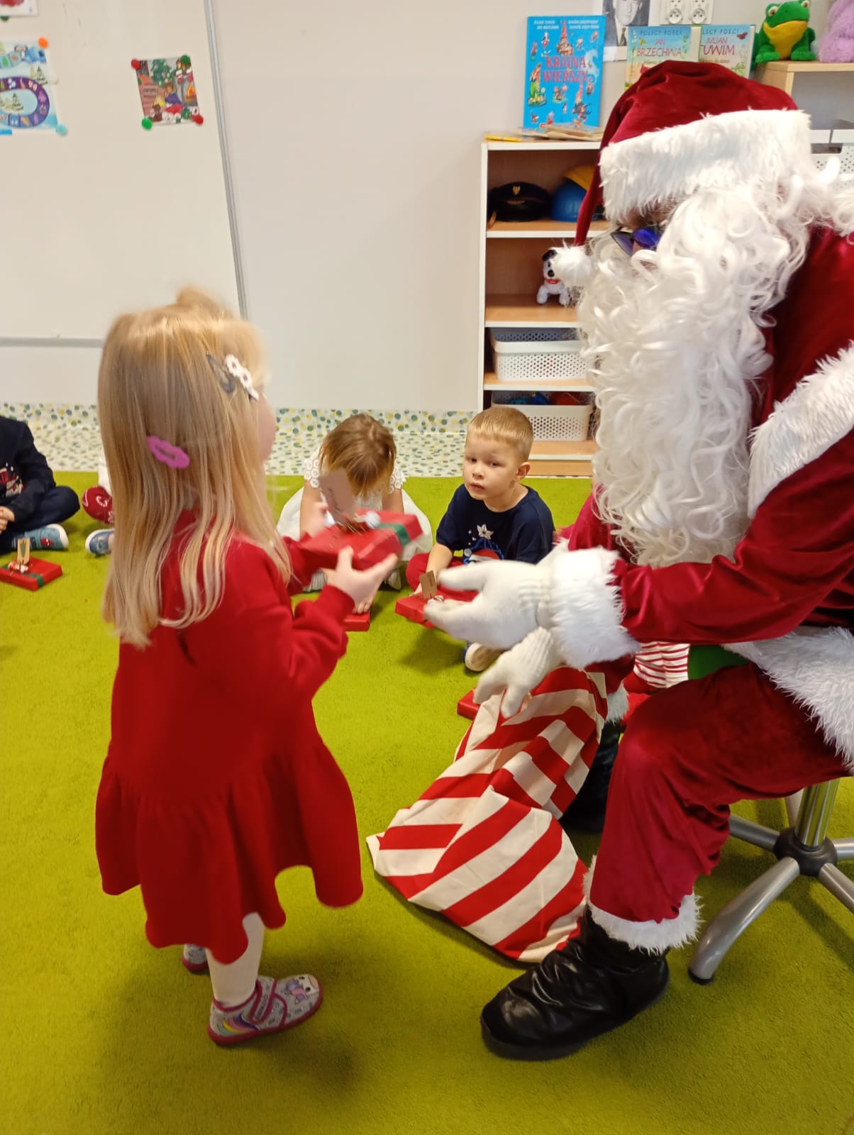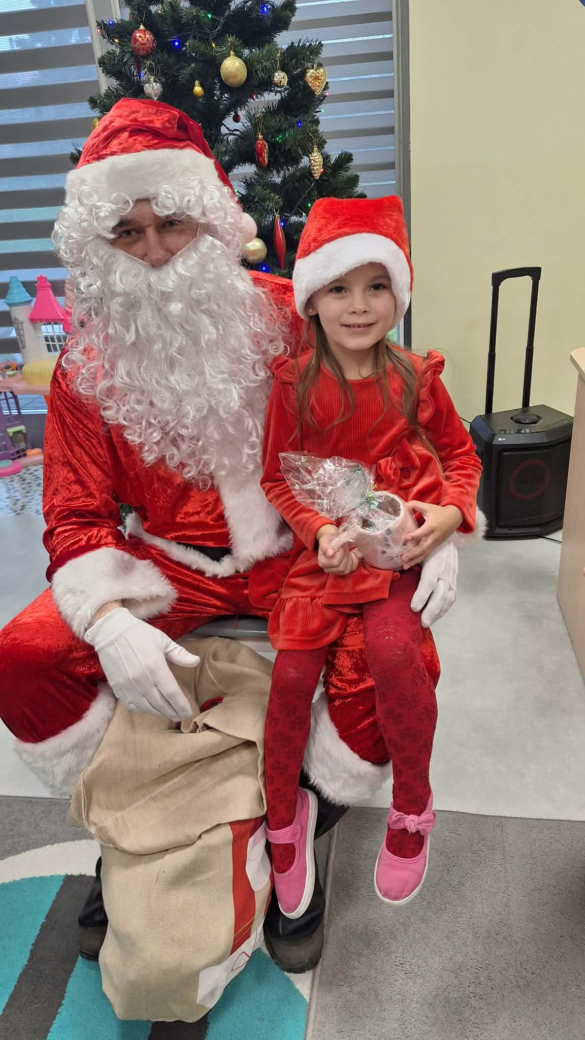 Za oknami delikatnie wirowały płatki śniegu, a w salach słychać było ciche rozmowy dzieci zastanawiających się, czy dziś pojawi się ten wyjątkowy gość. I nagle — jak w bajce — rozbrzmiał dźwięk dzwoneczków.