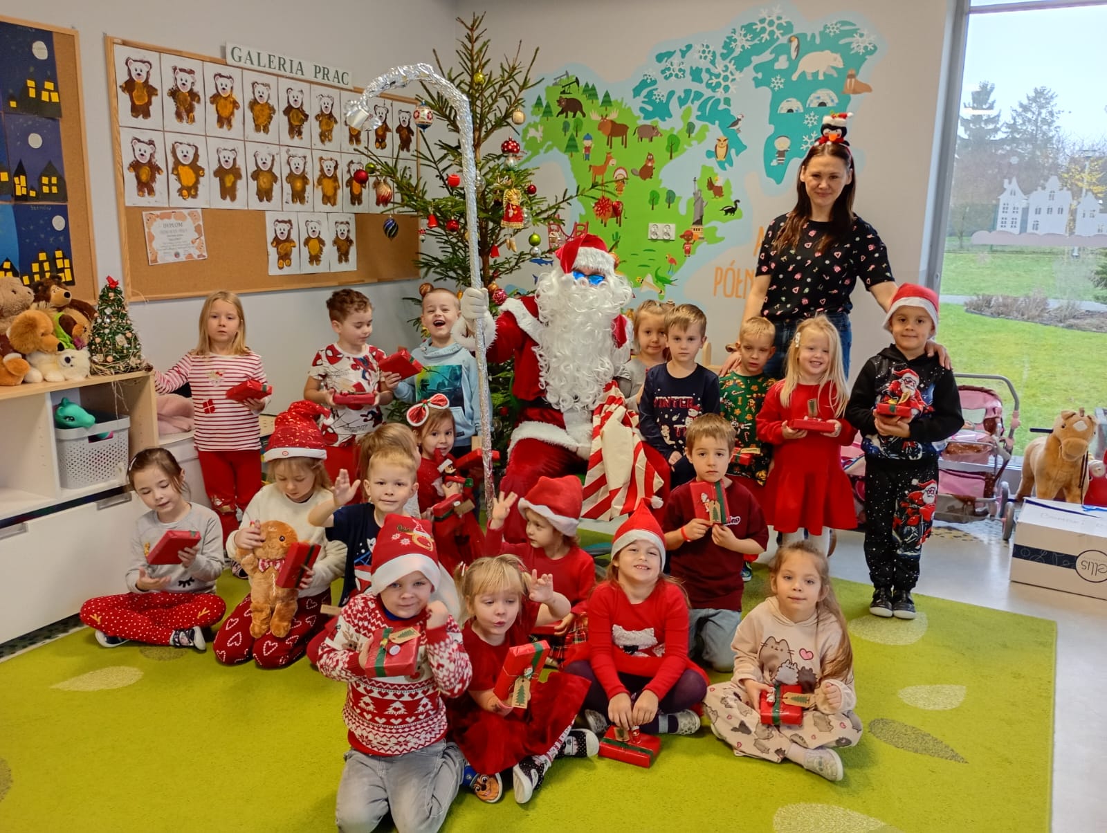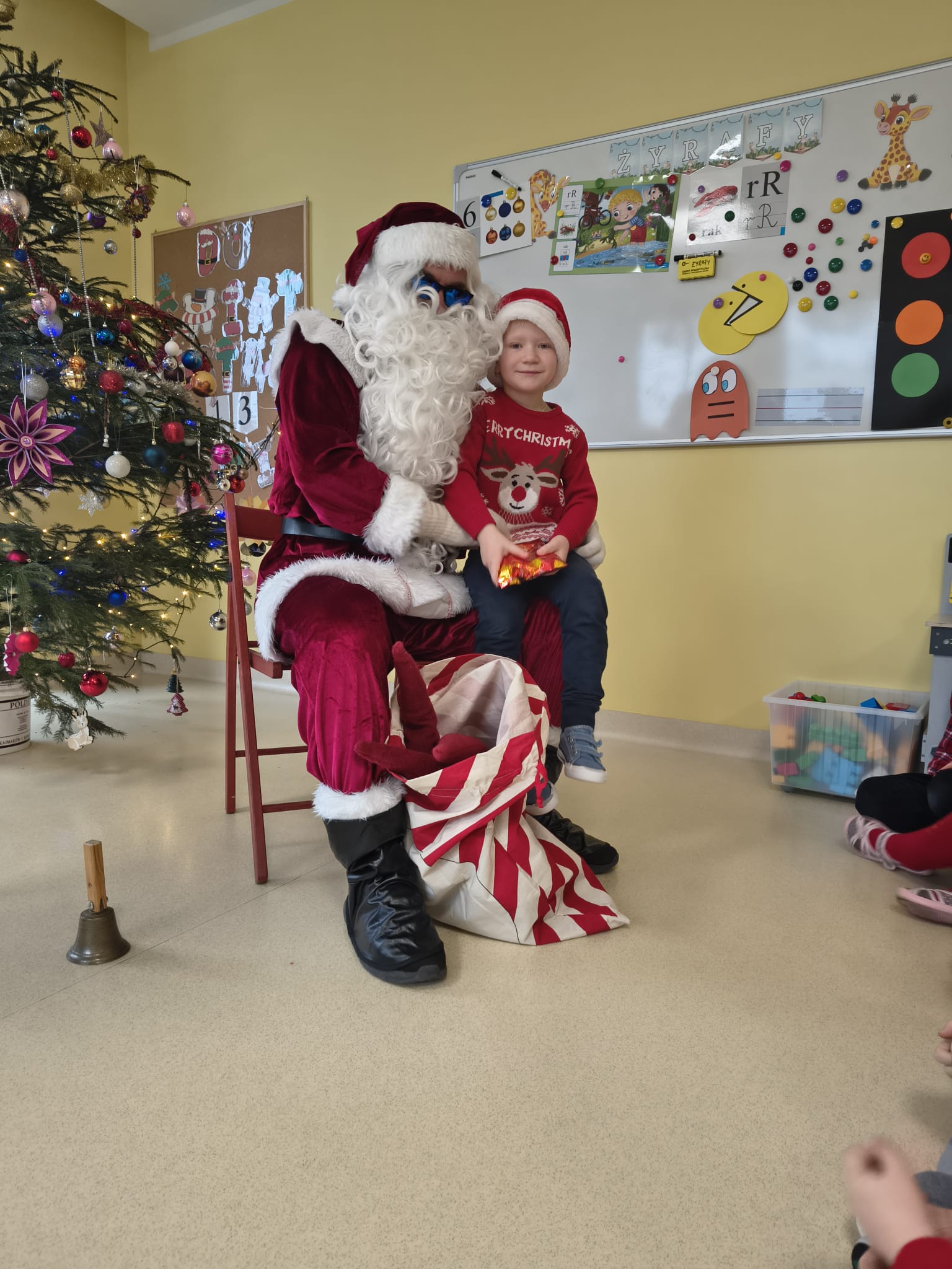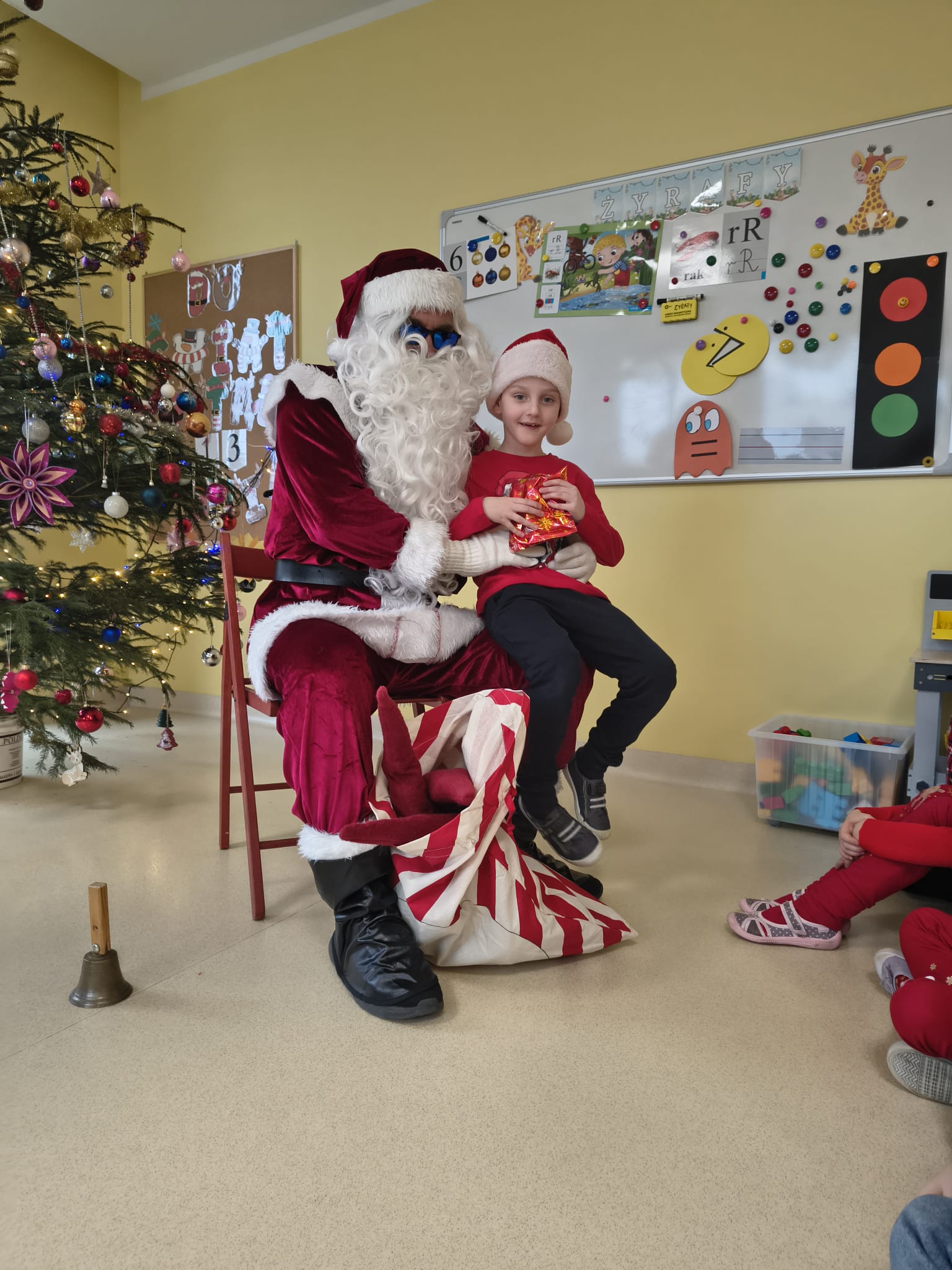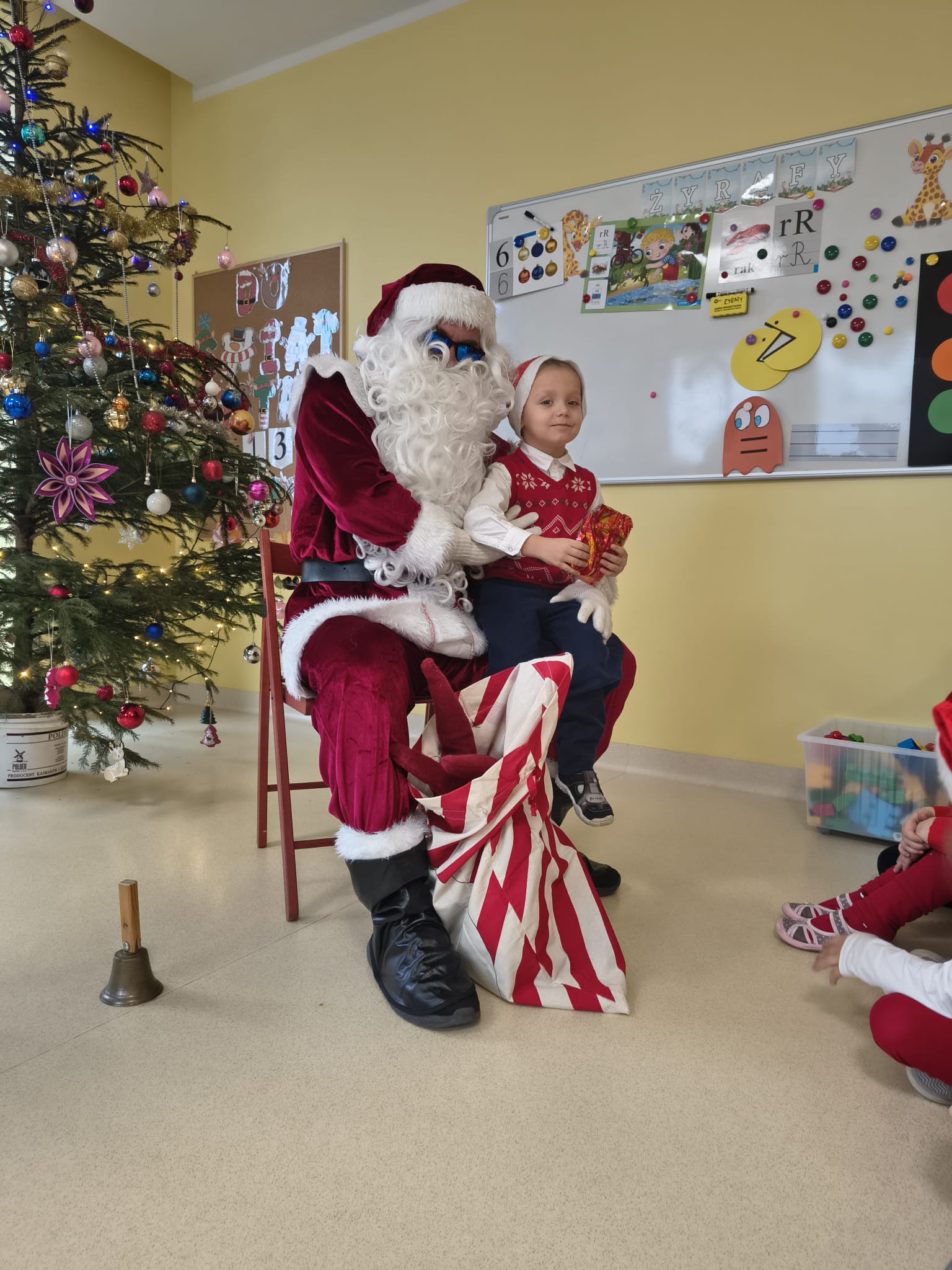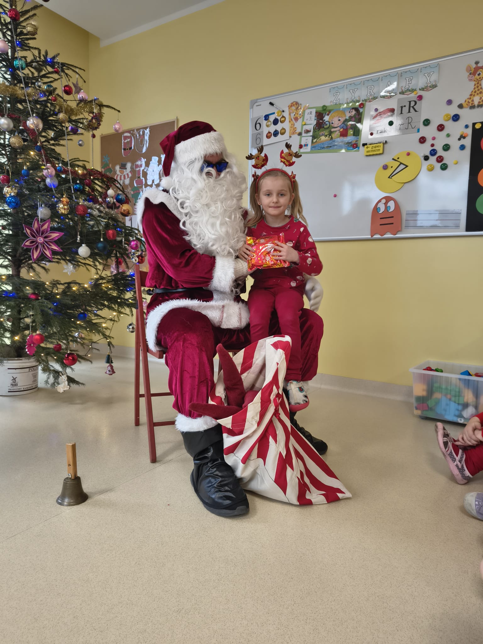 Za oknami delikatnie wirowały płatki śniegu, a w salach słychać było ciche rozmowy dzieci zastanawiających się, czy dziś pojawi się ten wyjątkowy gość. I nagle — jak w bajce — rozbrzmiał dźwięk dzwoneczków.