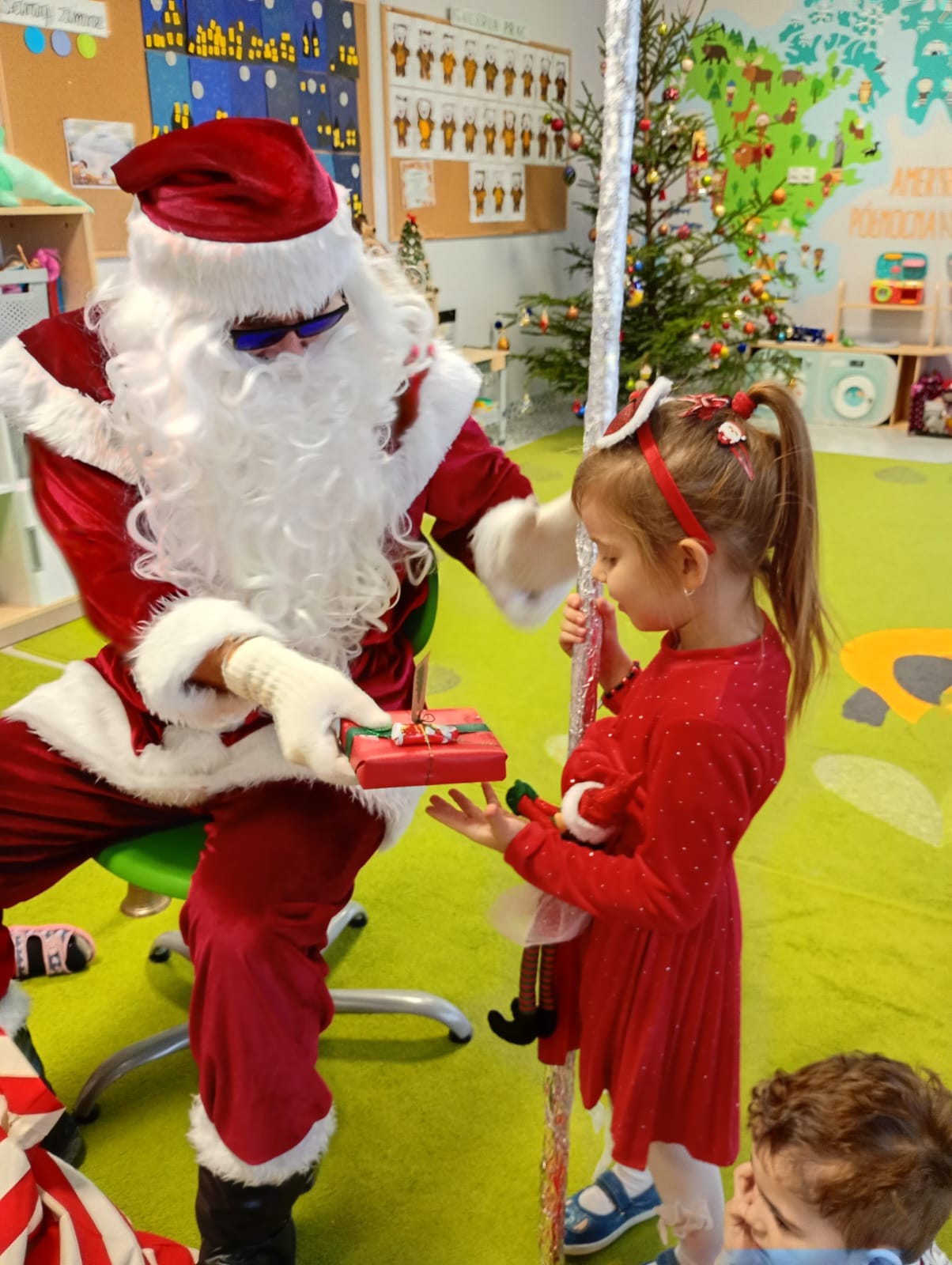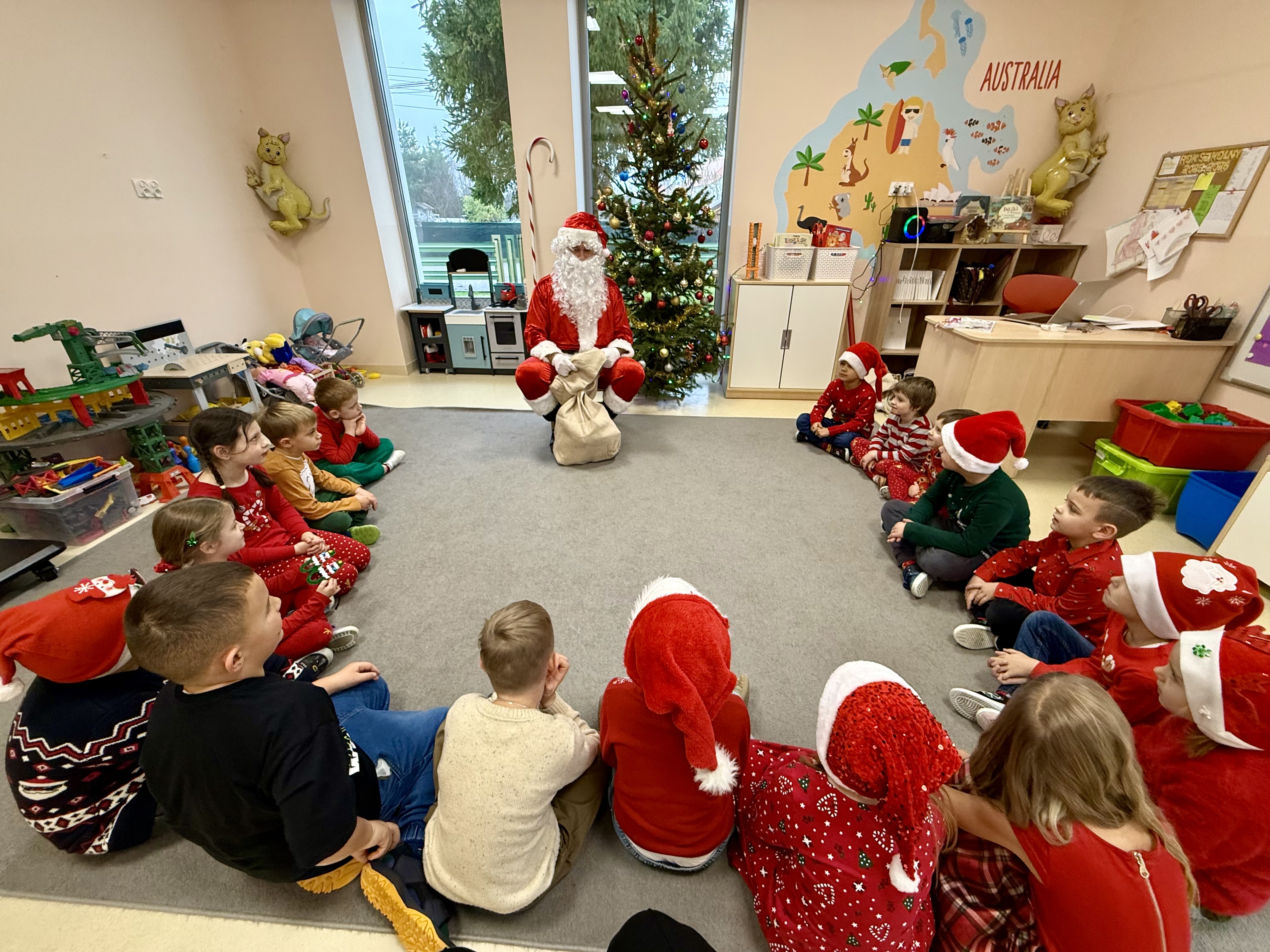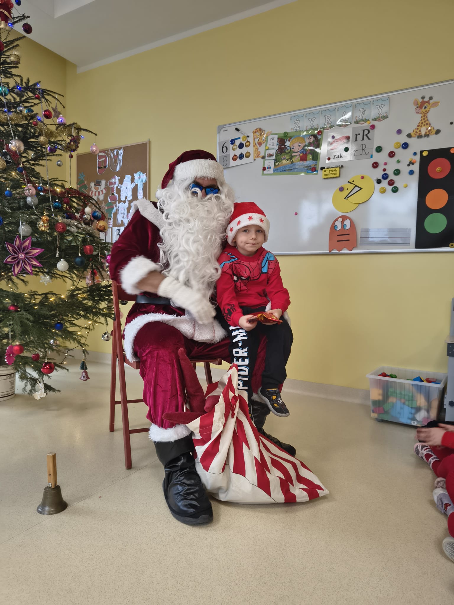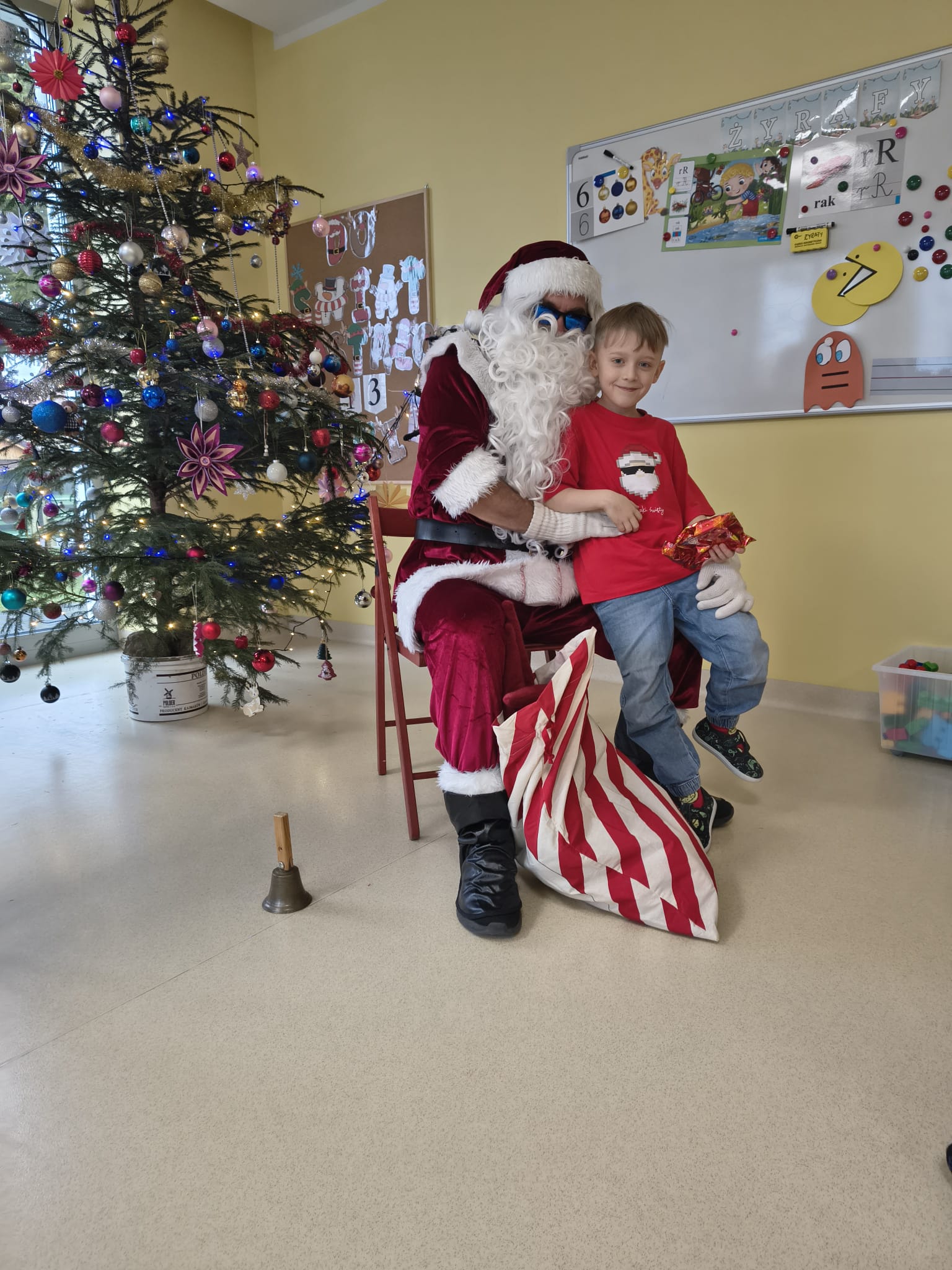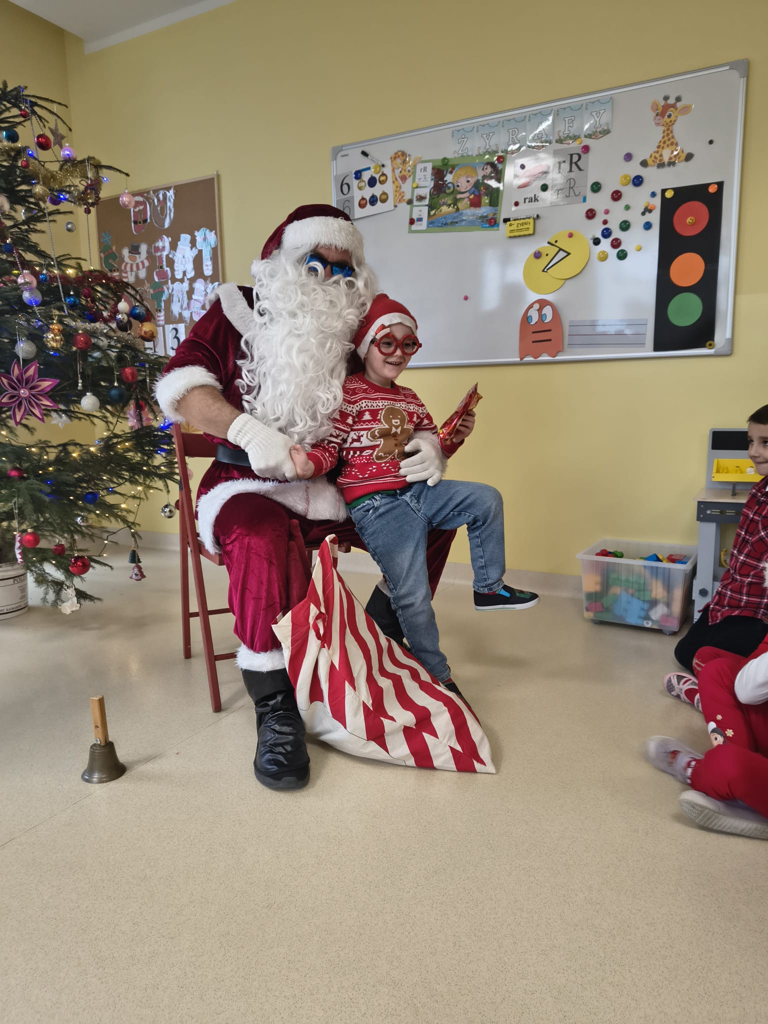 Za oknami delikatnie wirowały płatki śniegu, a w salach słychać było ciche rozmowy dzieci zastanawiających się, czy dziś pojawi się ten wyjątkowy gość. I nagle — jak w bajce — rozbrzmiał dźwięk dzwoneczków.