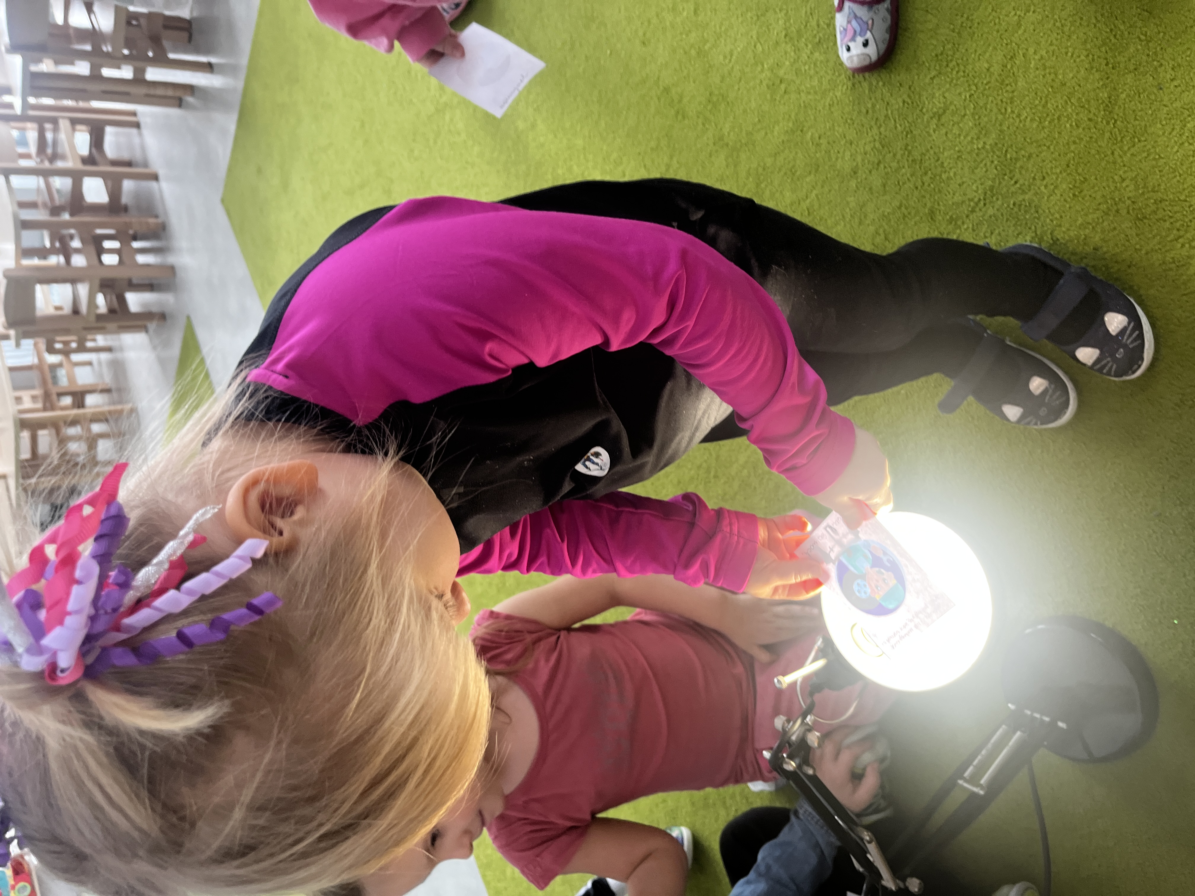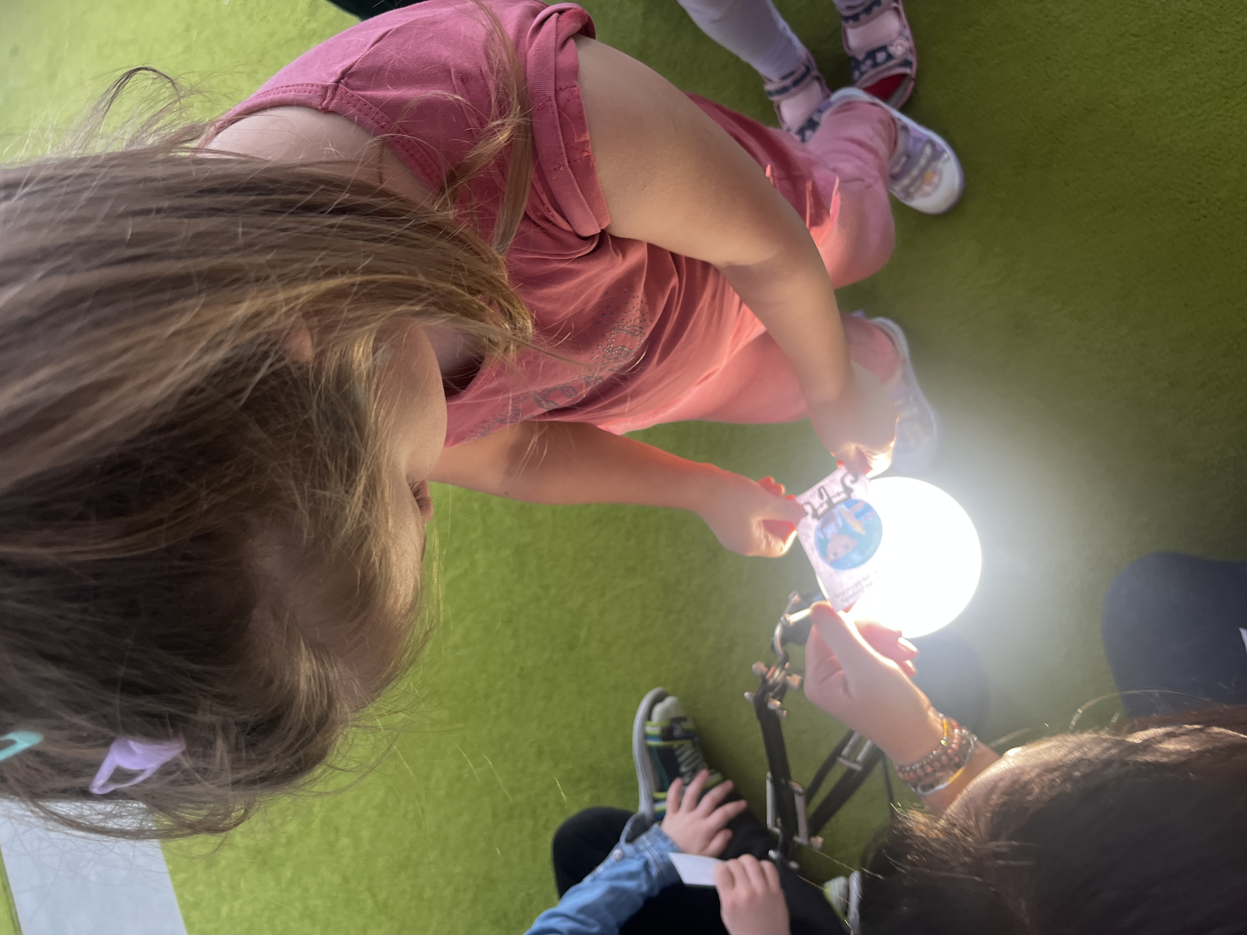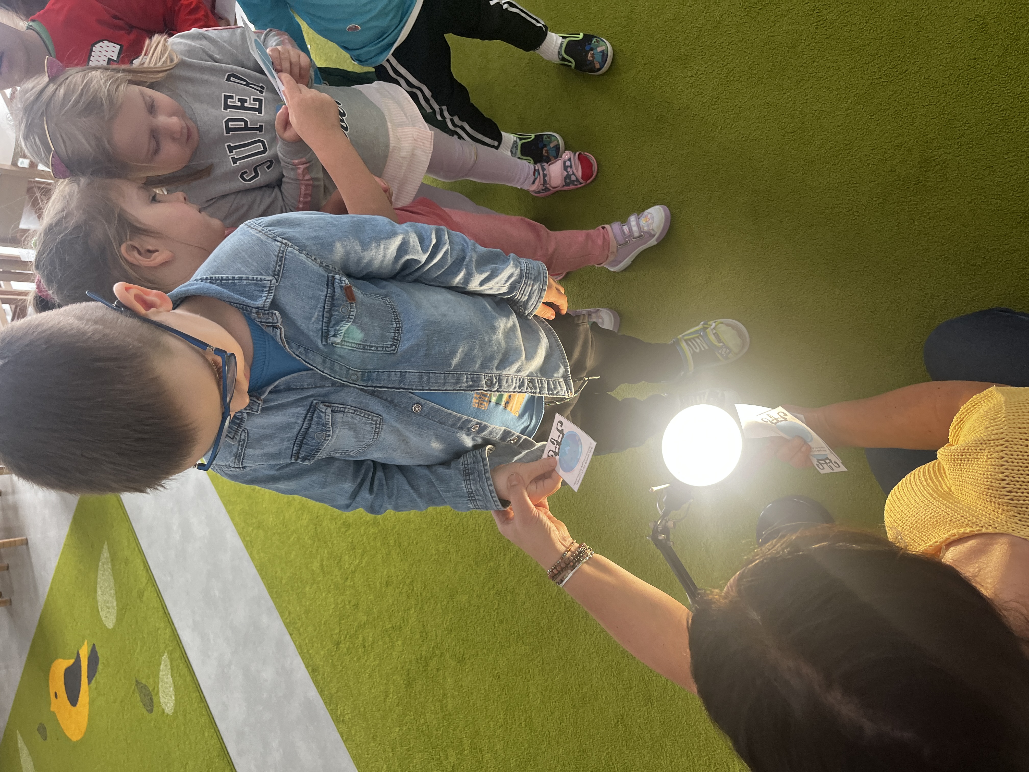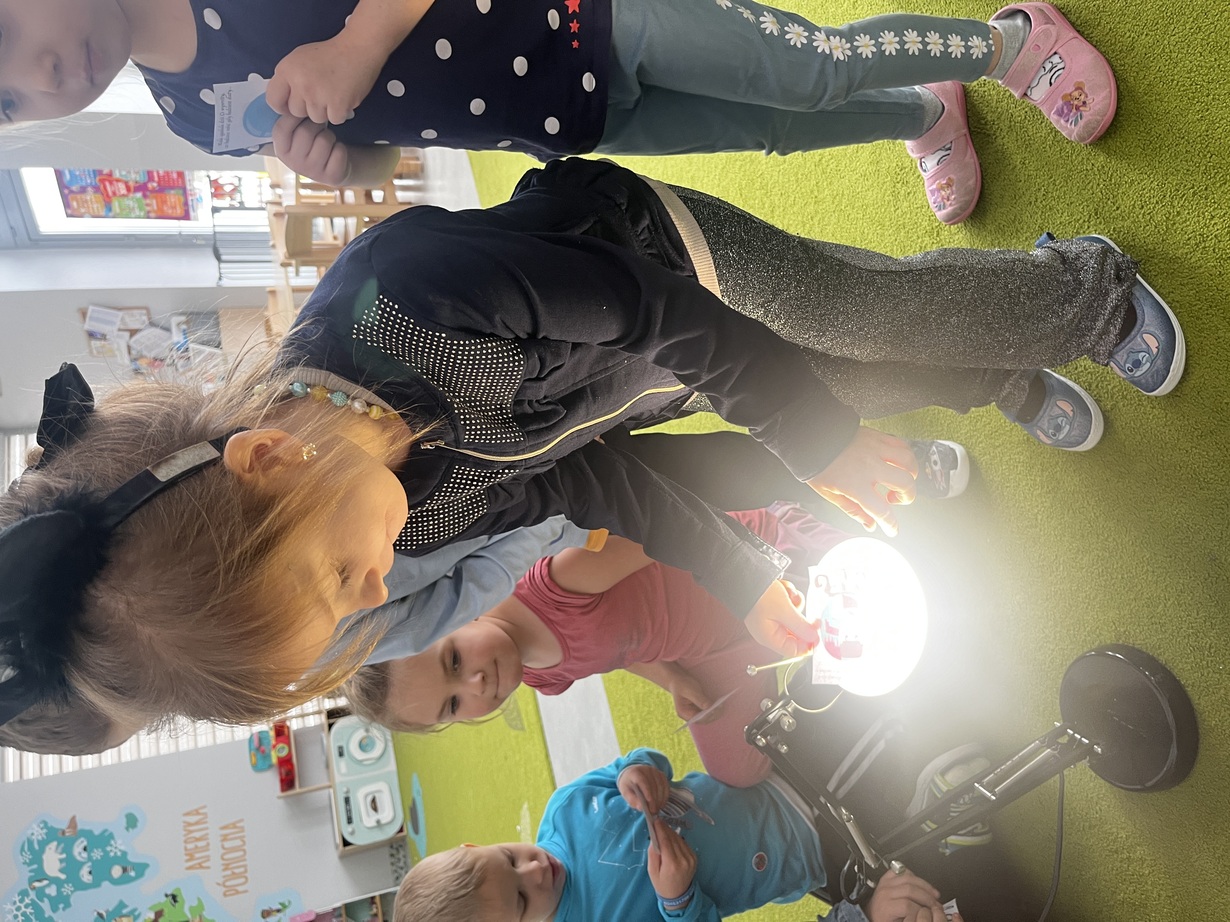 „Mogę być animatorem” - W ramach zajęć dzieci uczestniczyły we wspólnych zabawach, odgadywały hasła ukryte na obrazkach oraz odkrywały je, podświetlając ilustracje lampą.