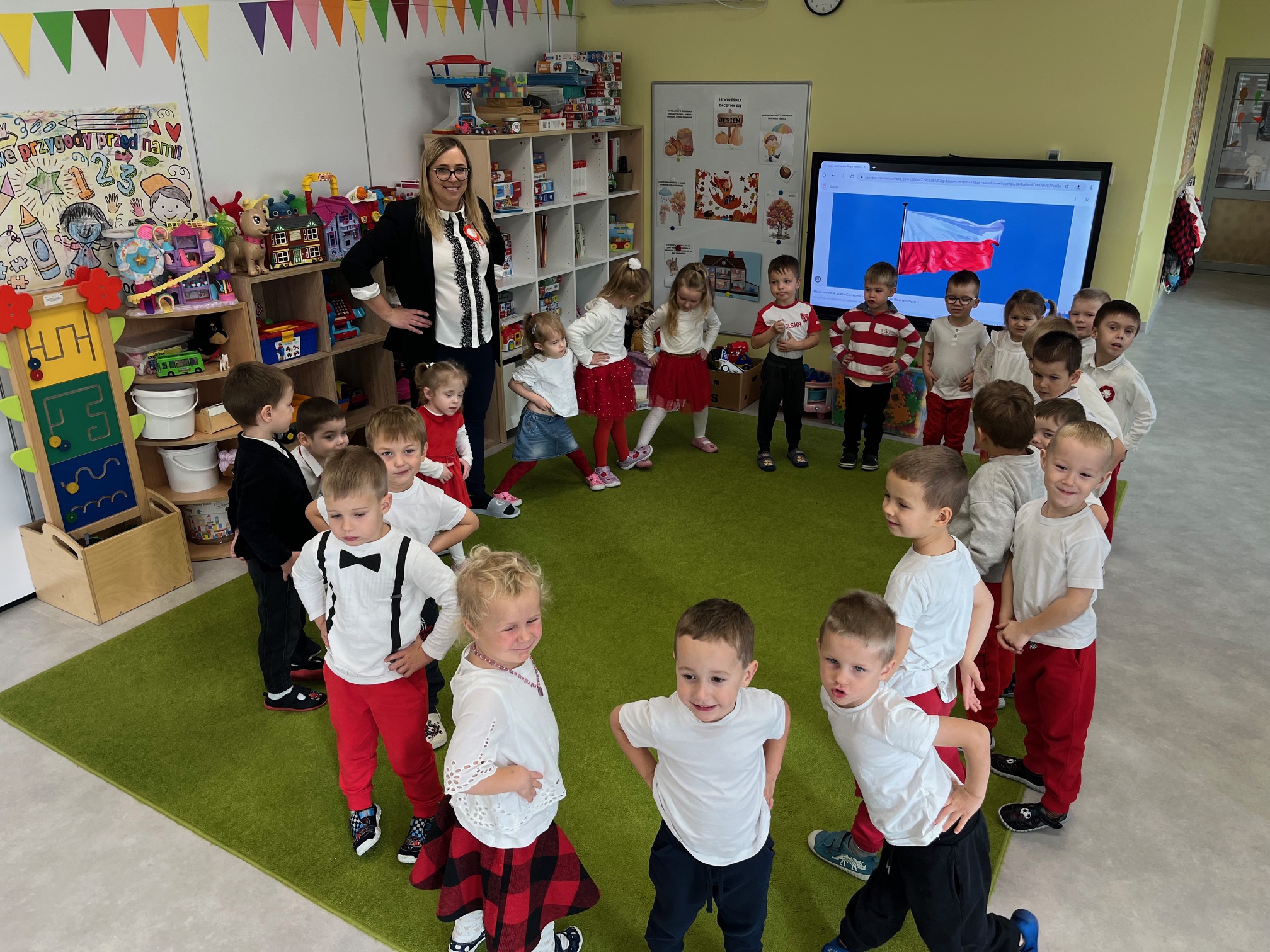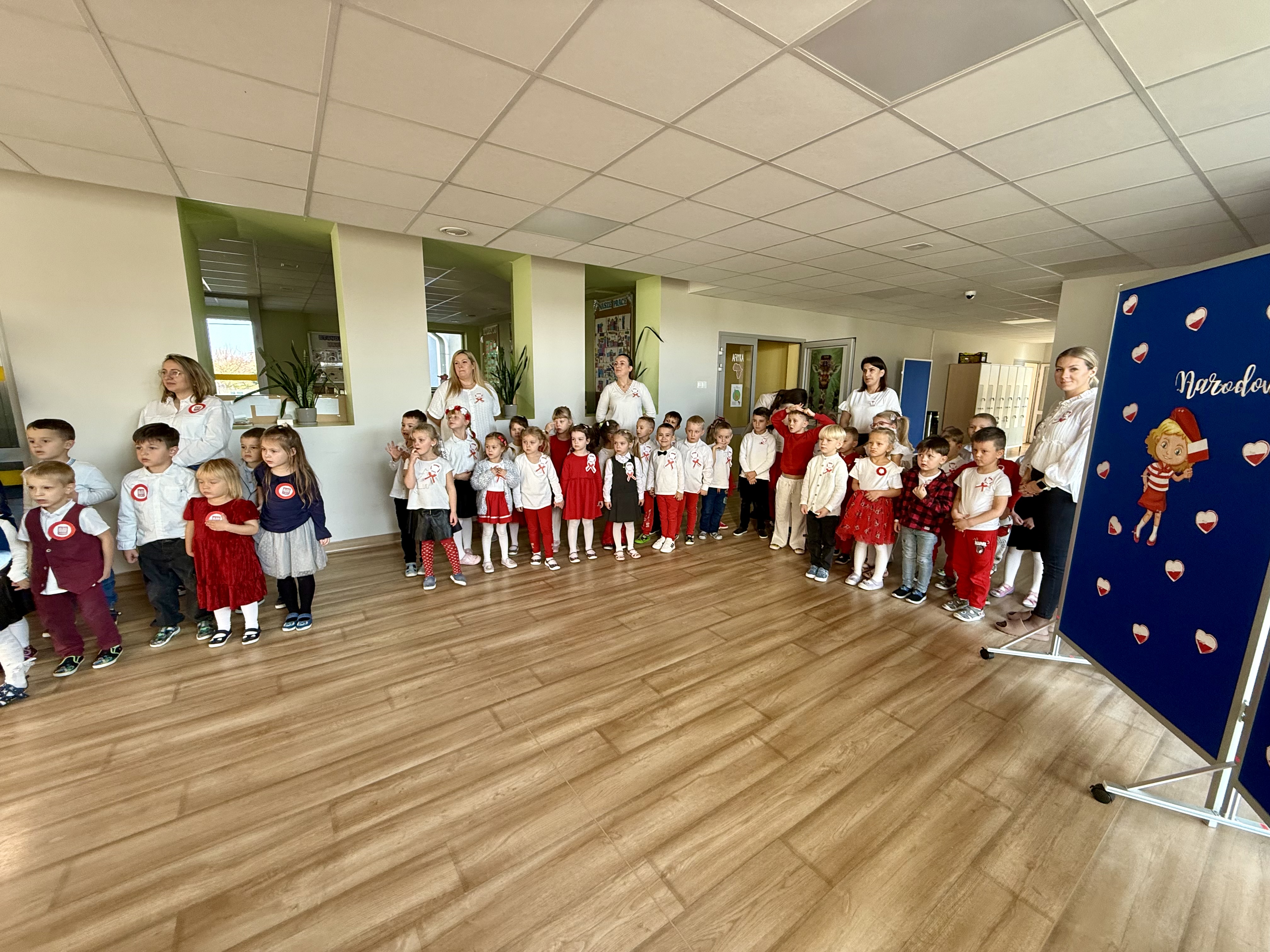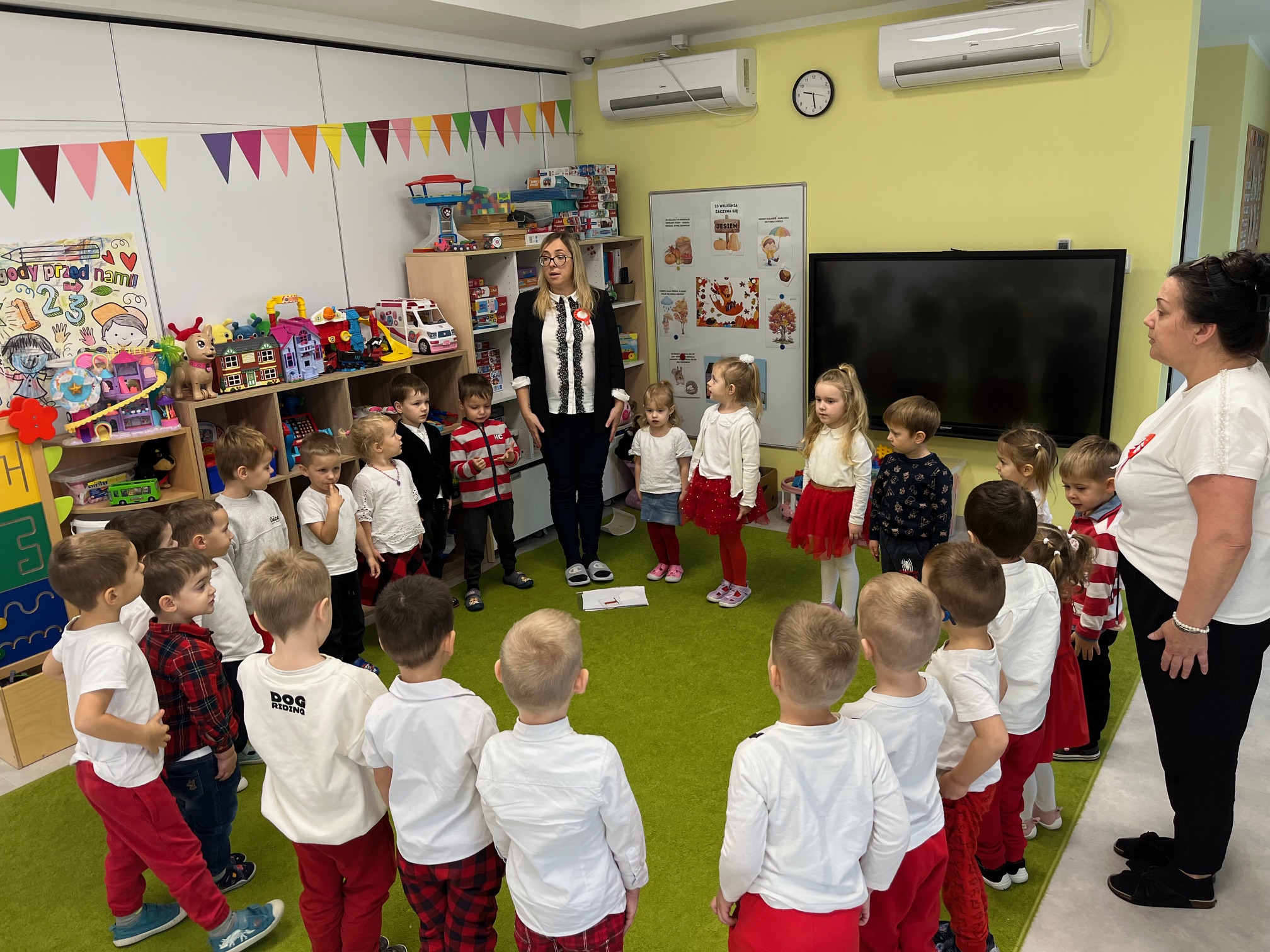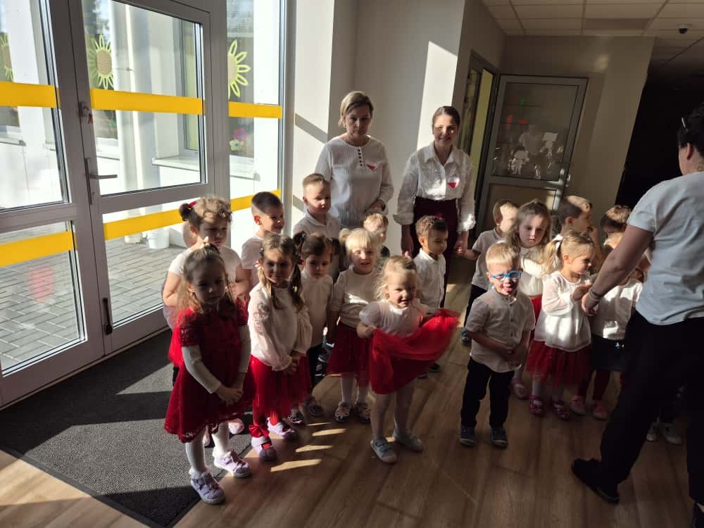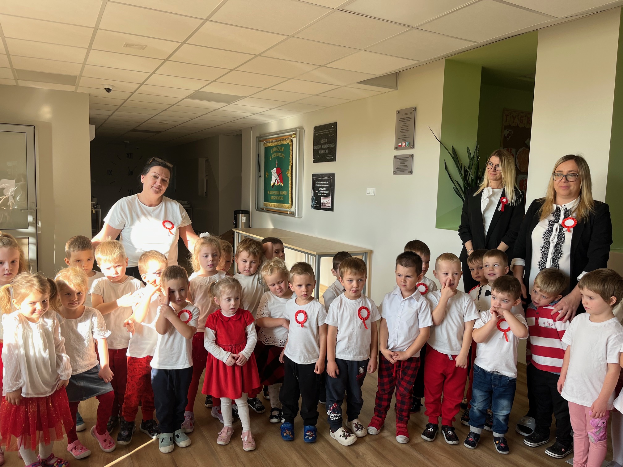 Ostatnim zadaniem w grze i jednocześnie najbardziej uroczystym momentem było wspólne spotkanie wszystkich grup o godz. 11:11 na przedszkolnym korytarzu. W powadze i skupieniu dzieci wraz z pracownikami przedszkola odśpiewały „Mazurek Dąbrowskiego”. Była to wzruszająca chwila jedności, dumy i pięknego przeżywania święta.