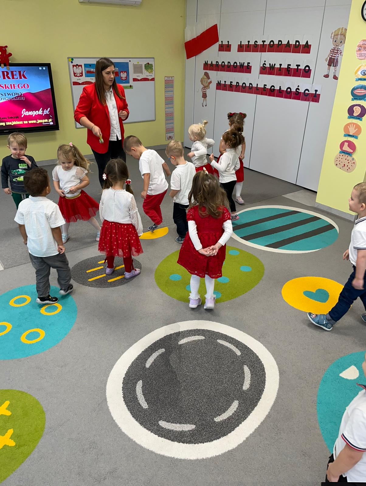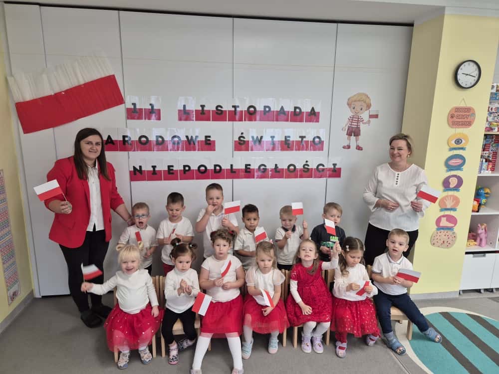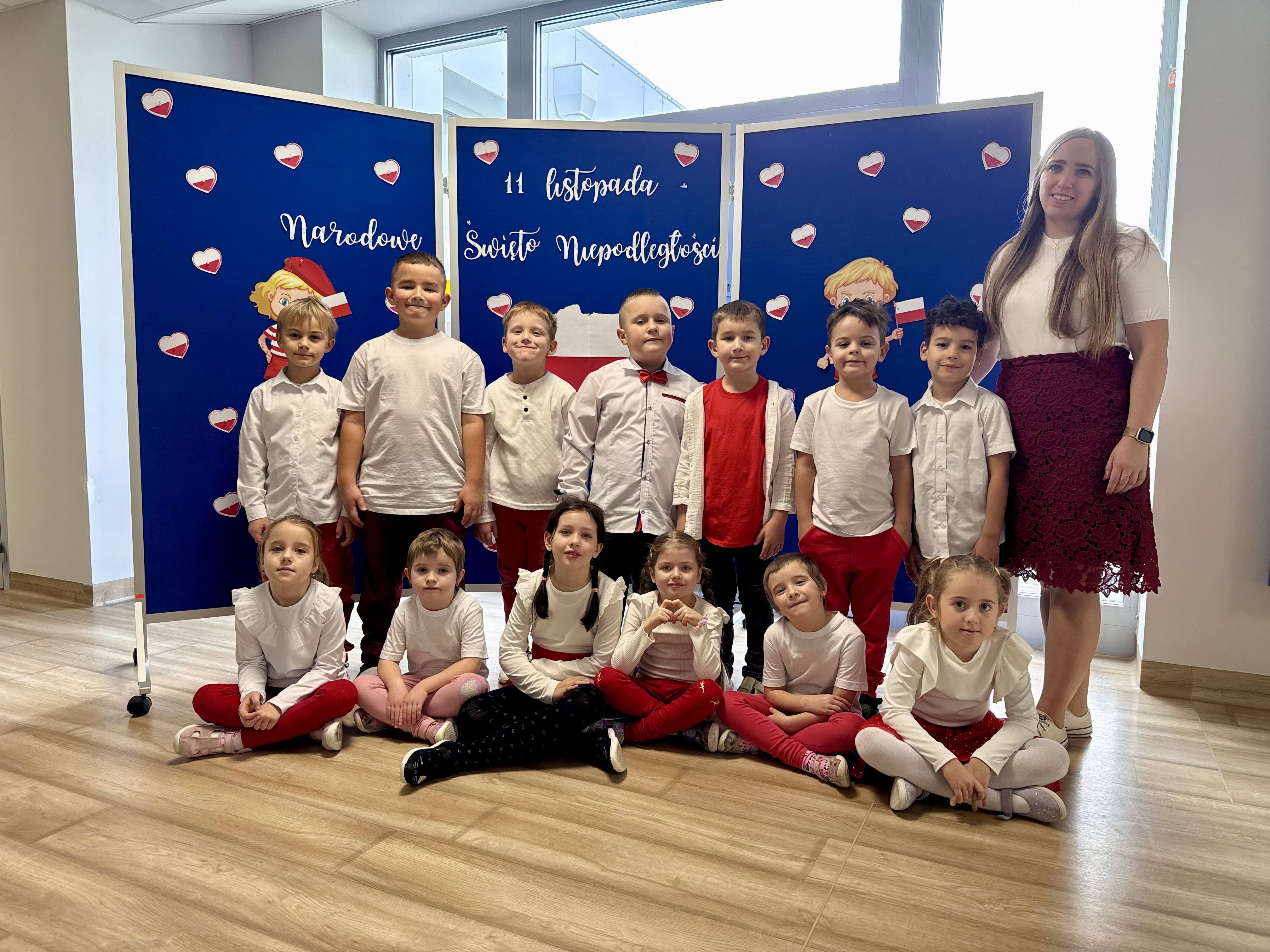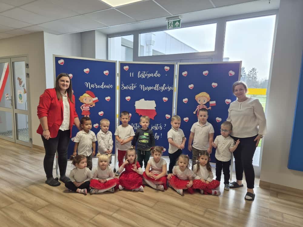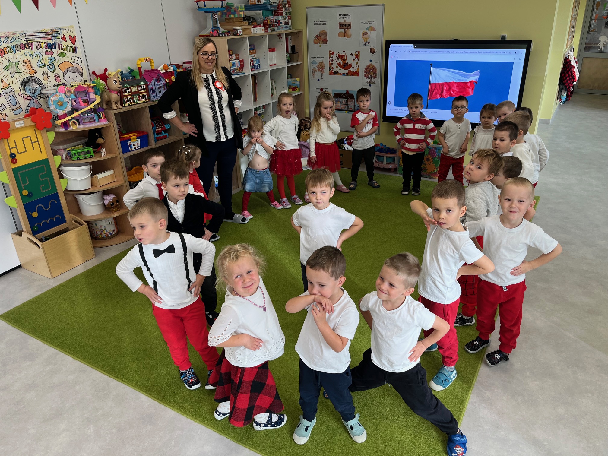 Ostatnim zadaniem w grze i jednocześnie najbardziej uroczystym momentem było wspólne spotkanie wszystkich grup o godz. 11:11 na przedszkolnym korytarzu. W powadze i skupieniu dzieci wraz z pracownikami przedszkola odśpiewały „Mazurek Dąbrowskiego”. Była to wzruszająca chwila jedności, dumy i pięknego przeżywania święta.