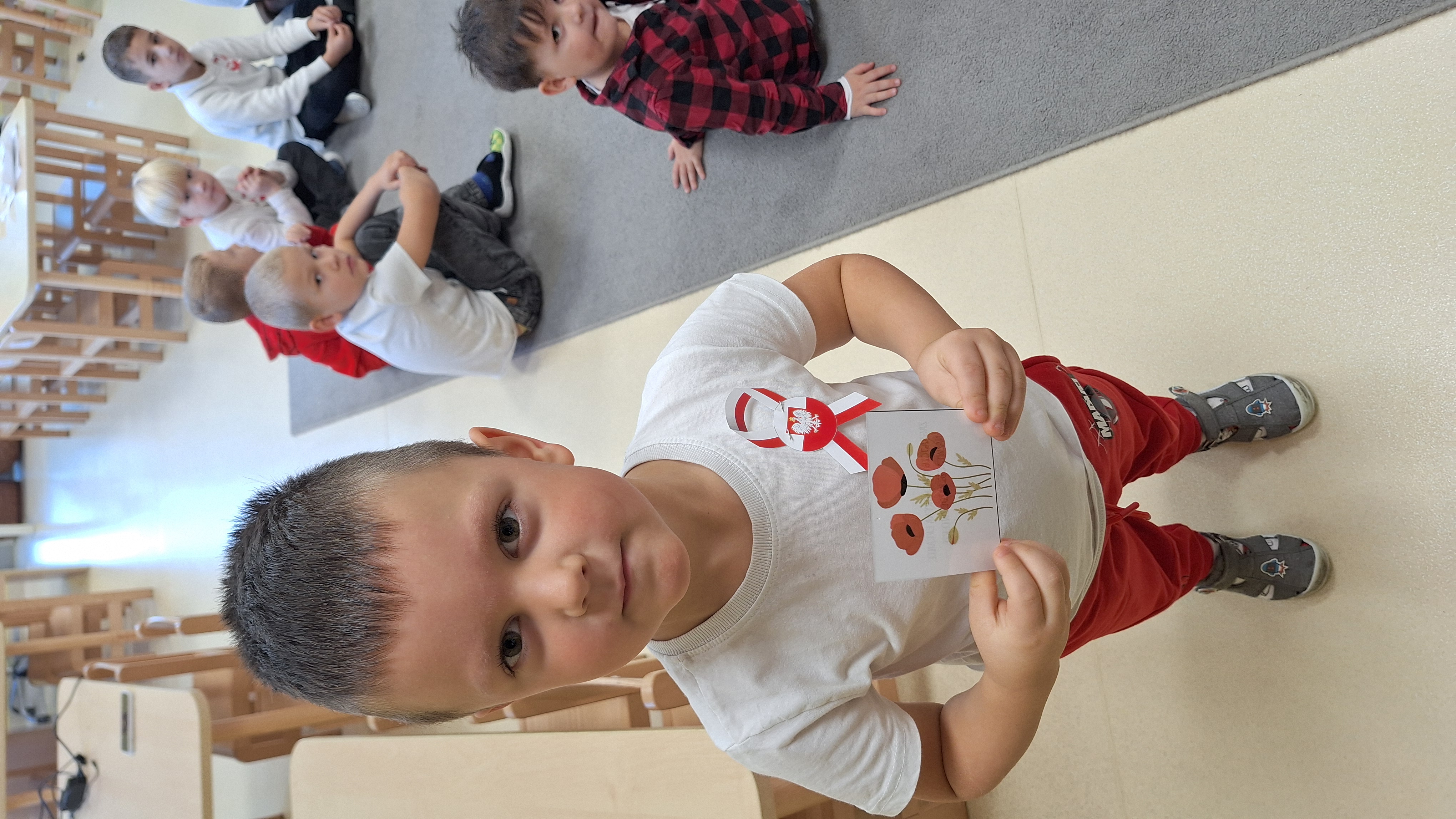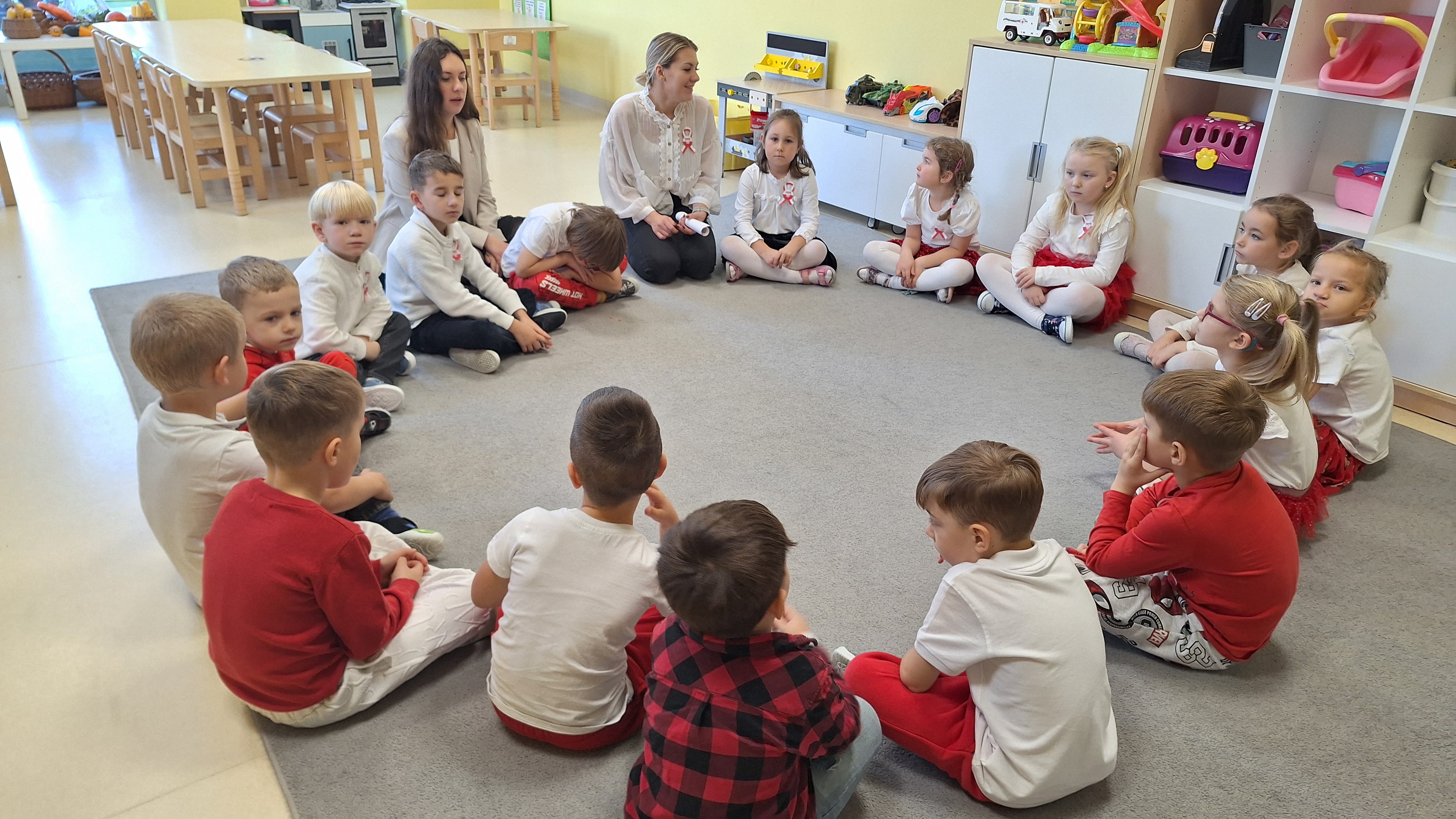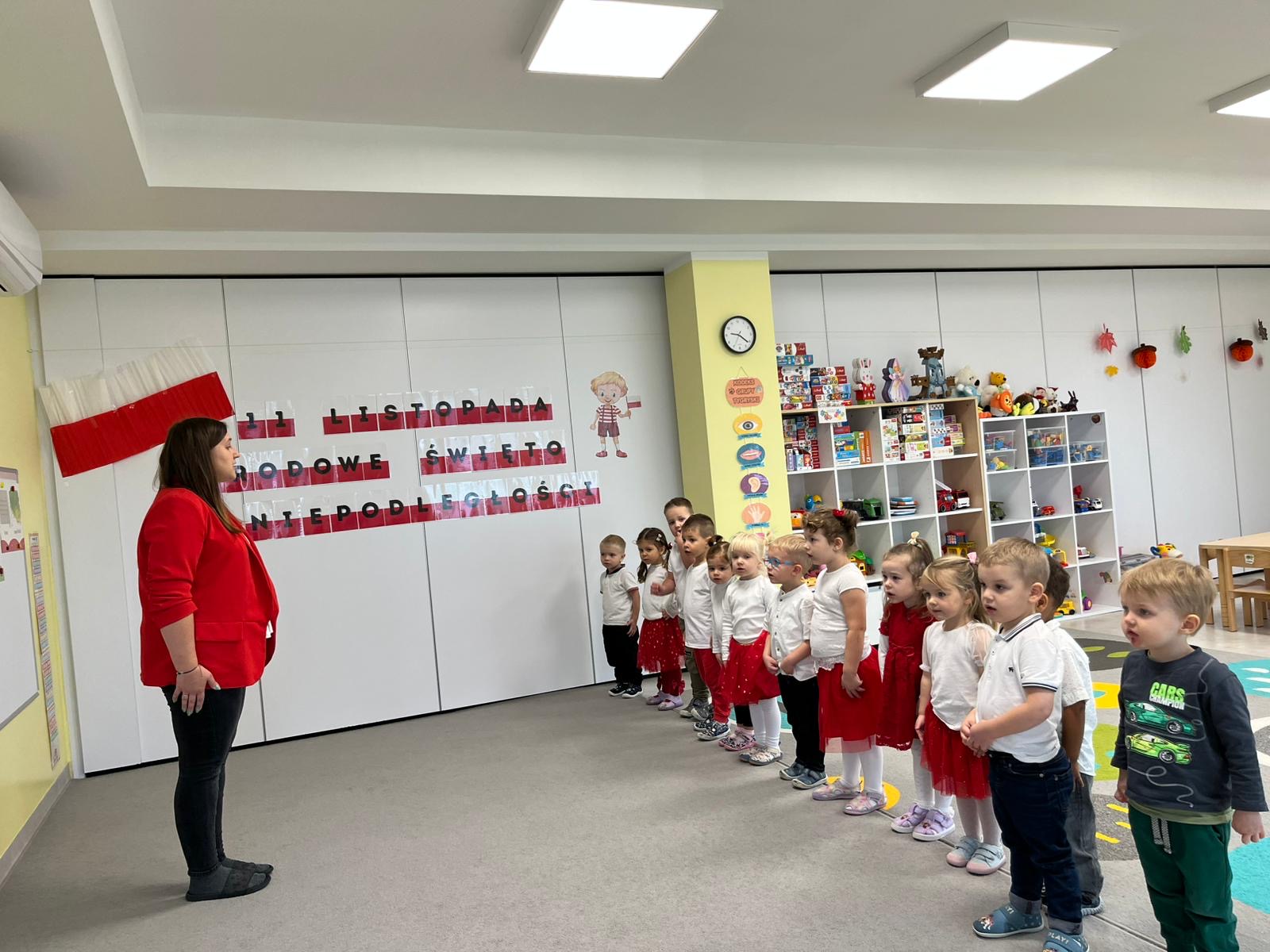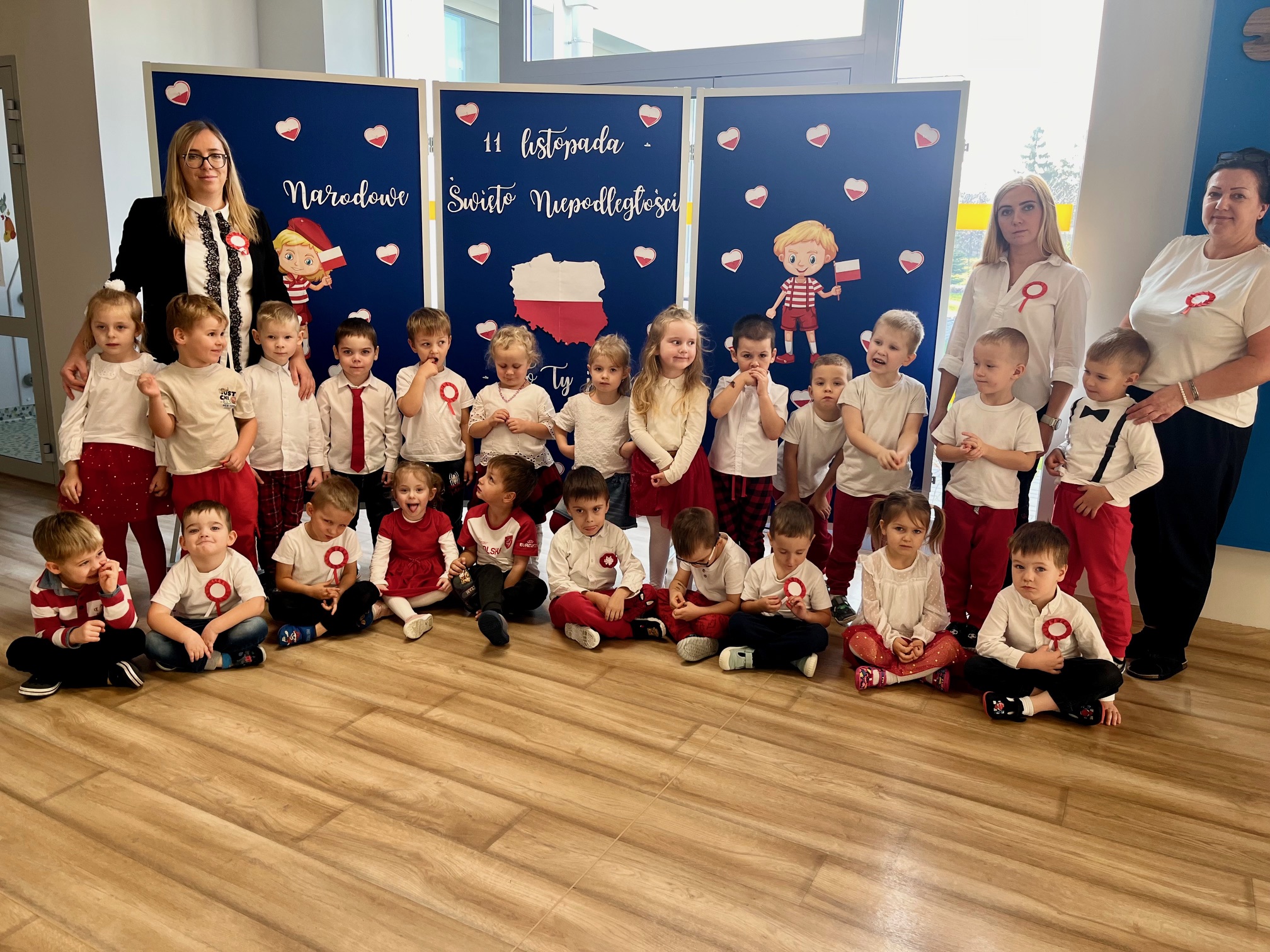 Ostatnim zadaniem w grze i jednocześnie najbardziej uroczystym momentem było wspólne spotkanie wszystkich grup o godz. 11:11 na przedszkolnym korytarzu. W powadze i skupieniu dzieci wraz z pracownikami przedszkola odśpiewały „Mazurek Dąbrowskiego”. Była to wzruszająca chwila jedności, dumy i pięknego przeżywania święta.