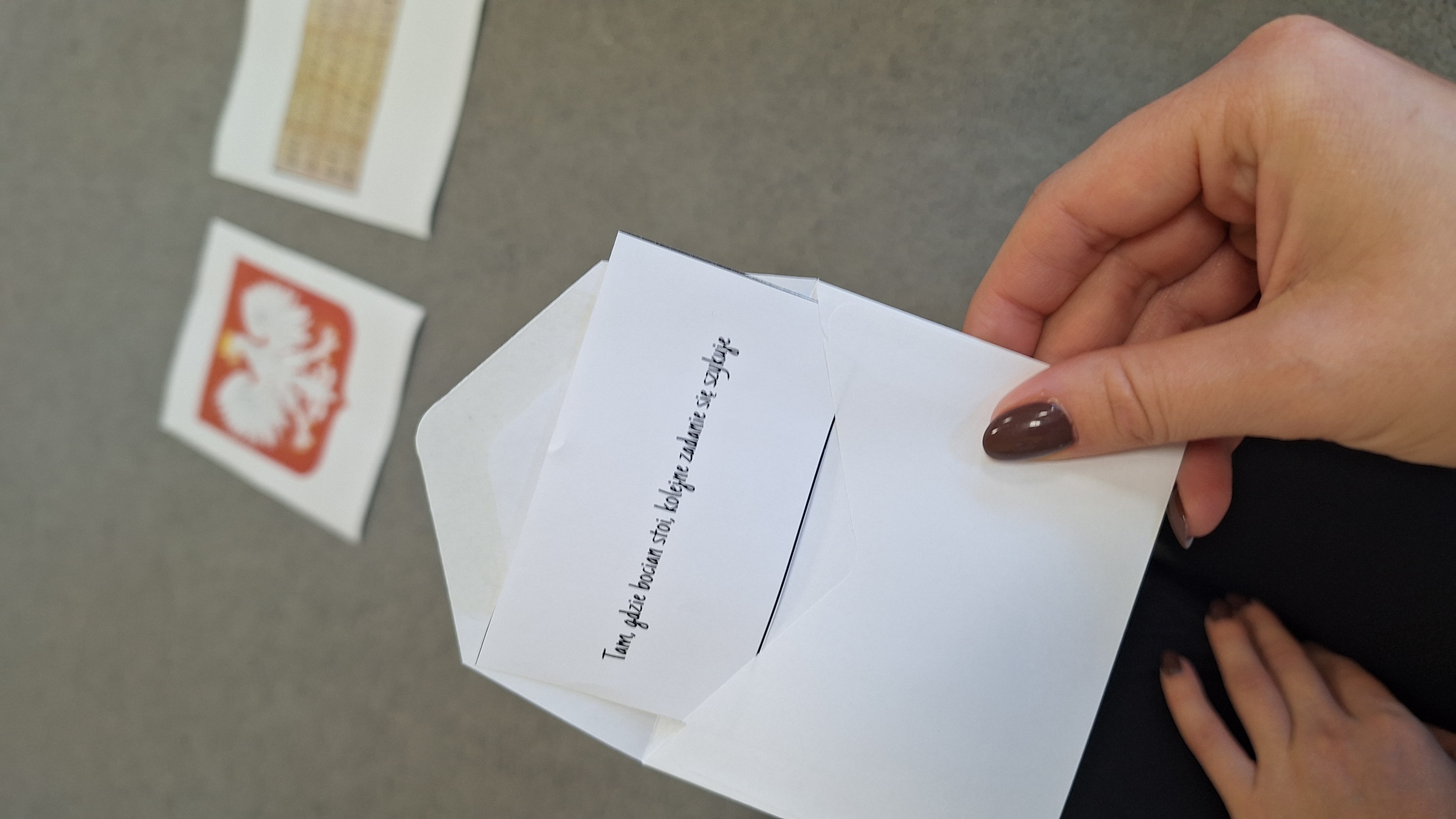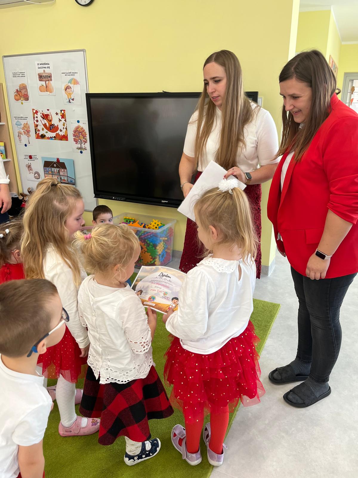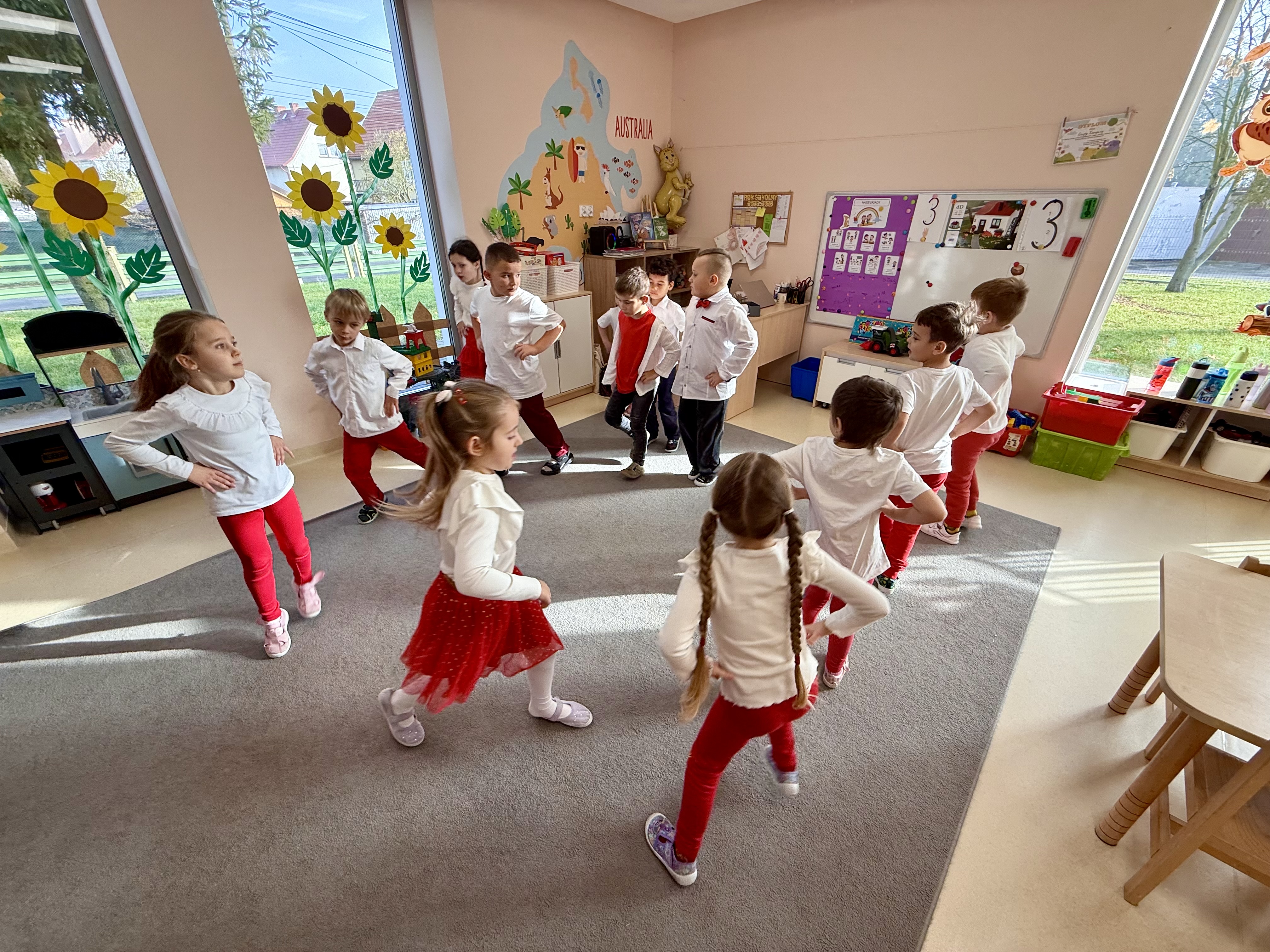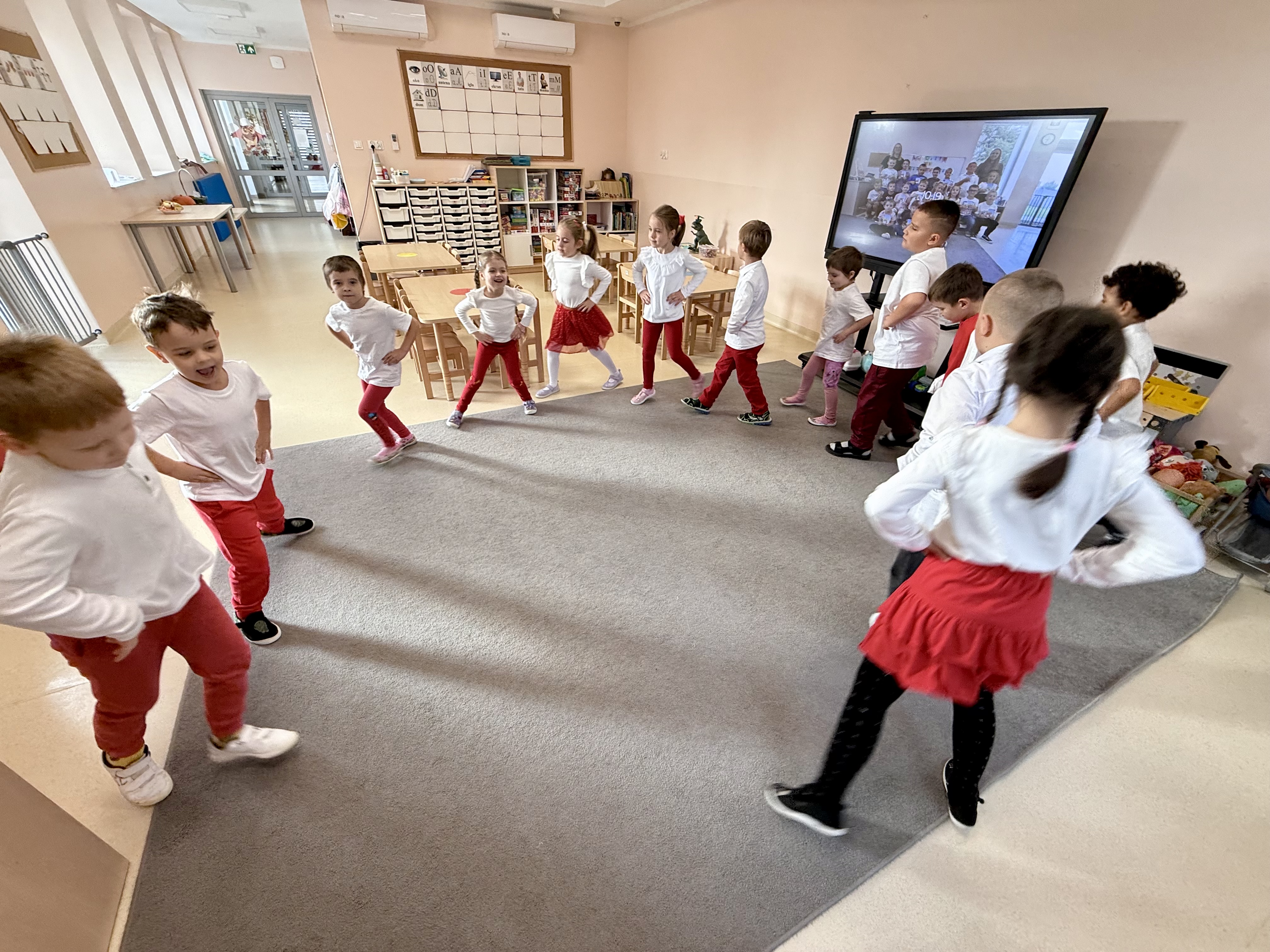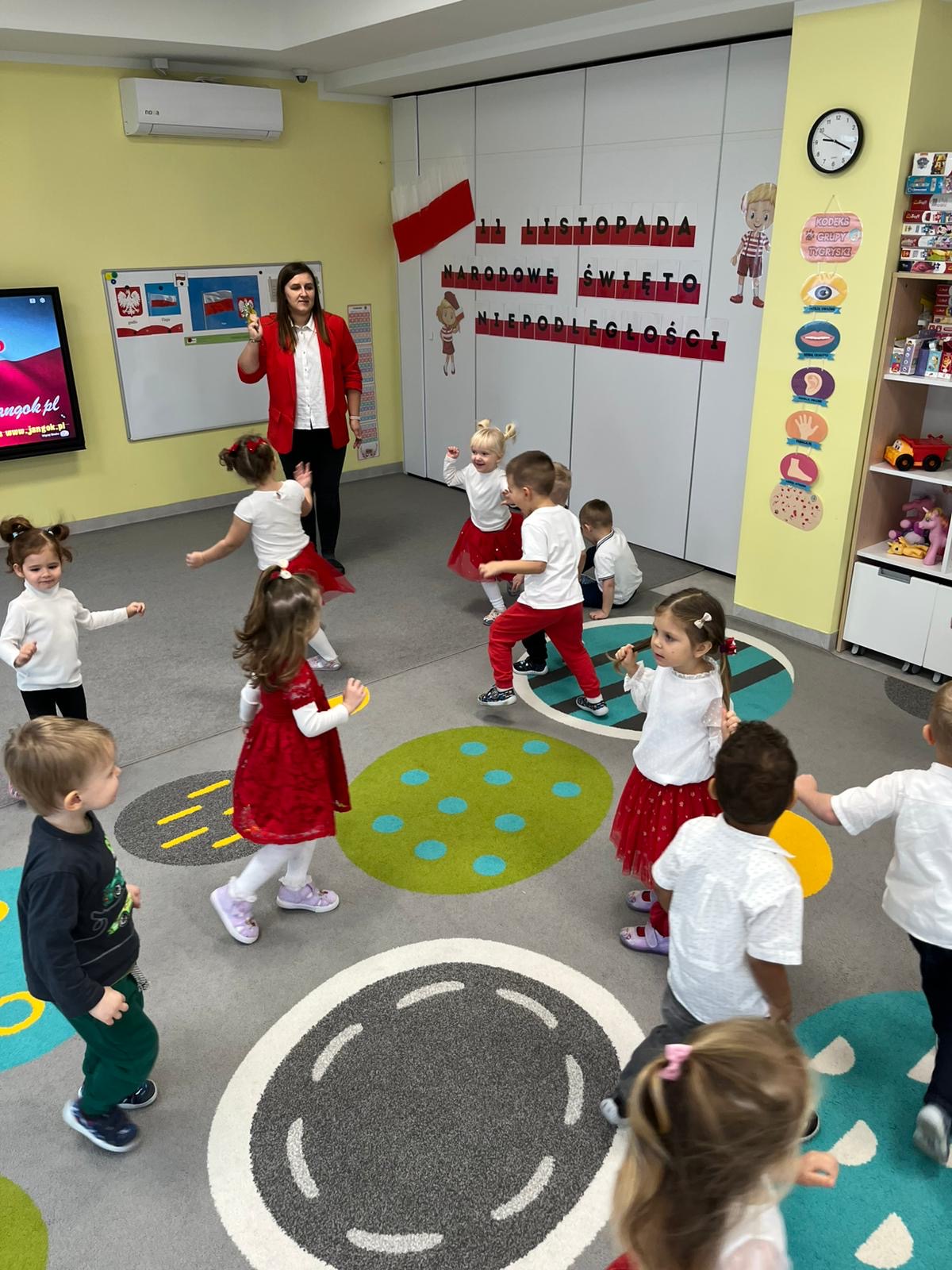Ostatnim zadaniem w grze i jednocześnie najbardziej uroczystym momentem było wspólne spotkanie wszystkich grup o godz. 11:11 na przedszkolnym korytarzu. W powadze i skupieniu dzieci wraz z pracownikami przedszkola odśpiewały „Mazurek Dąbrowskiego”. Była to wzruszająca chwila jedności, dumy i pięknego przeżywania święta.