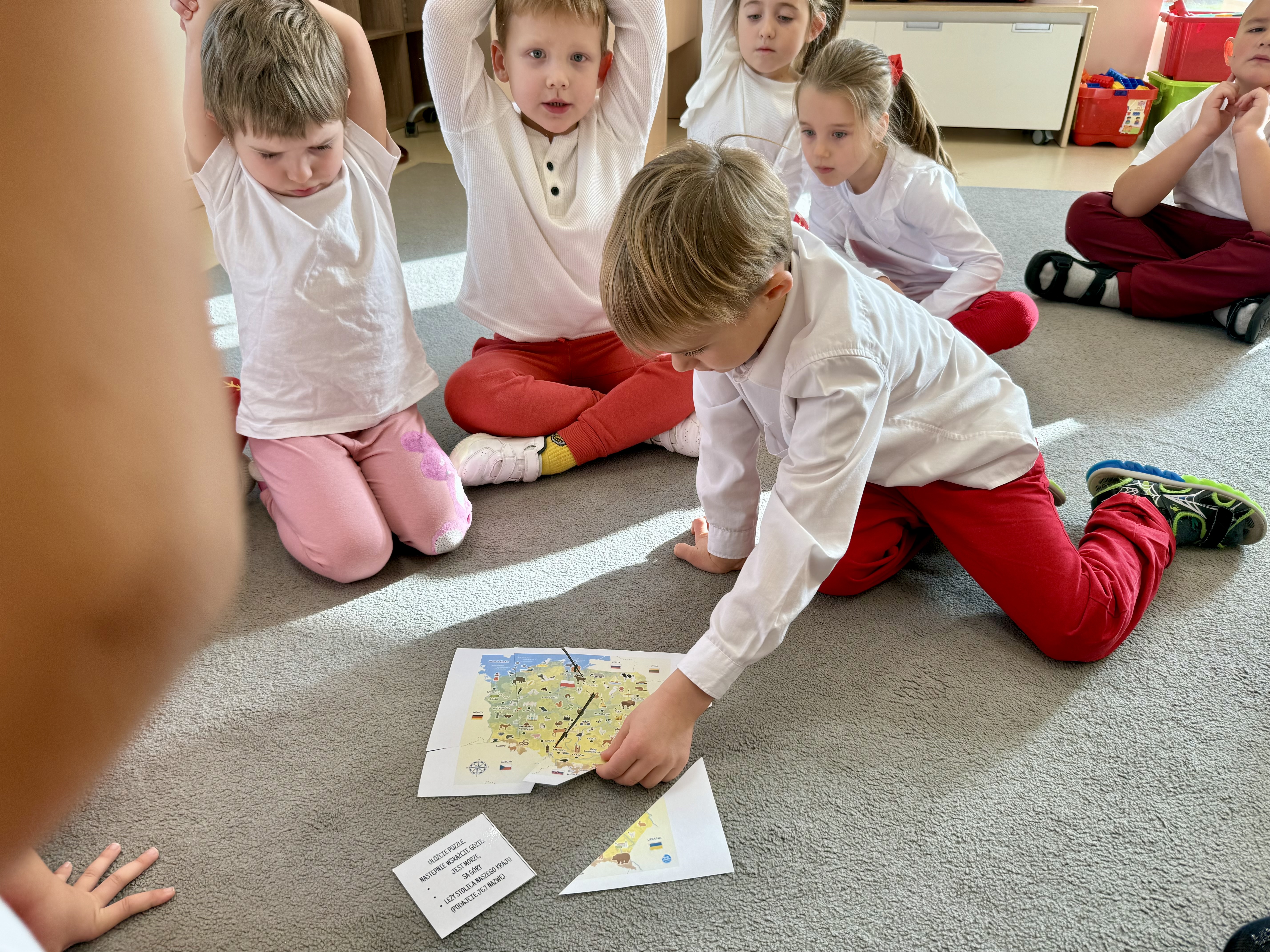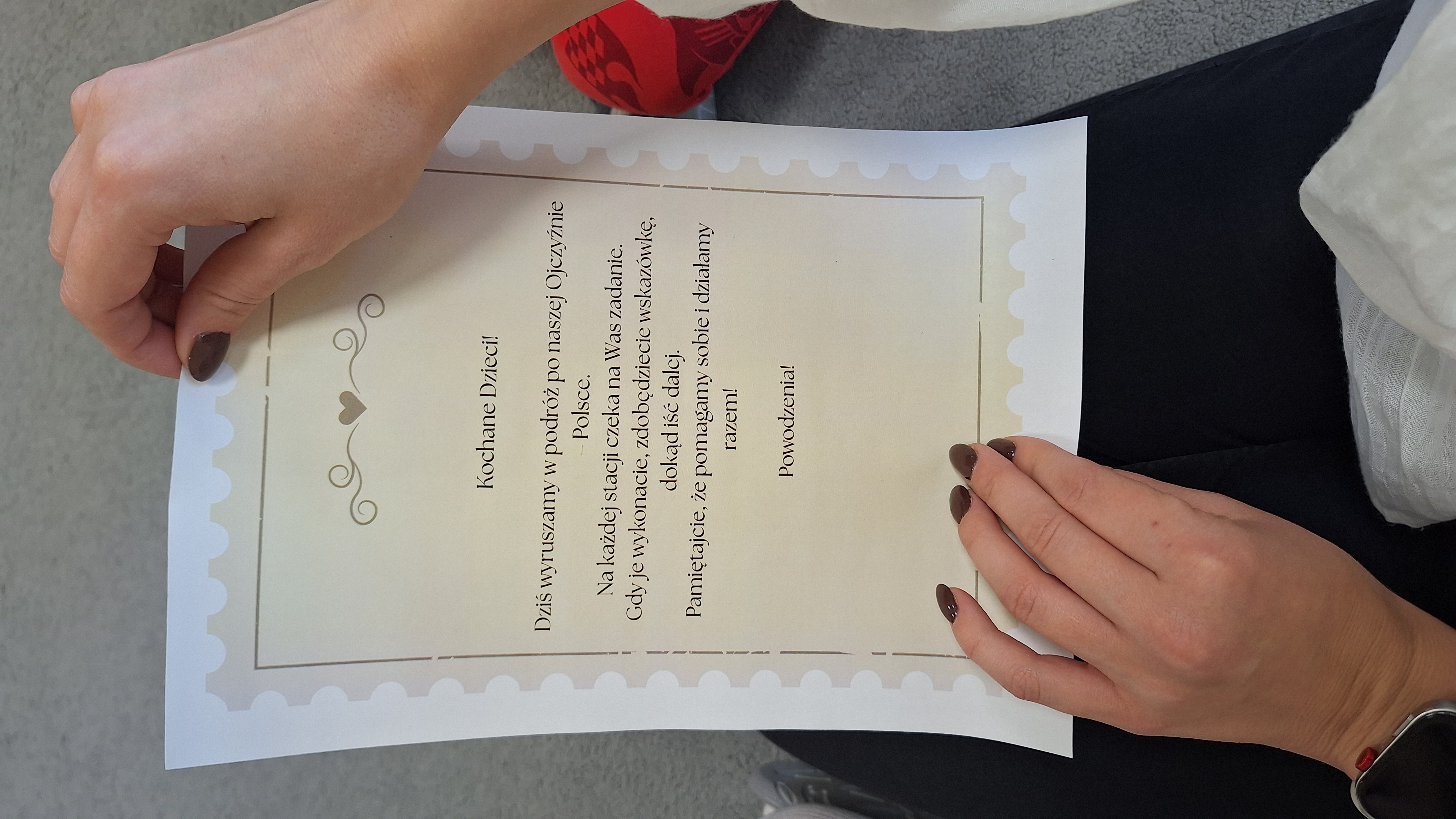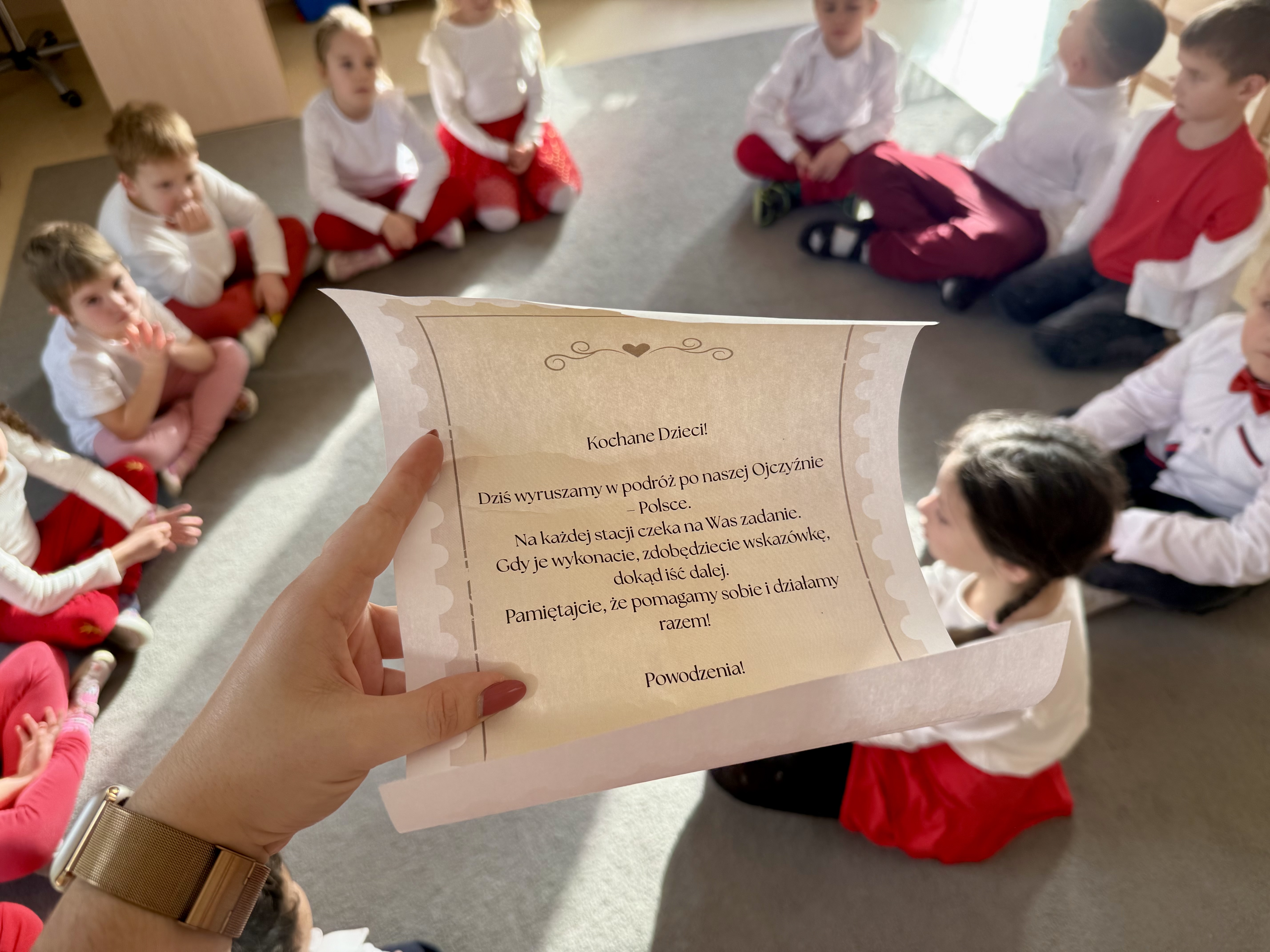 Dzień rozpoczął się od tajemniczego listu, który zapraszał dzieci do podróży po Polsce. W salach ukryte zostały kolejne wskazówki i zadania, prowadzące małych odkrywców krok po kroku przez świat symboli narodowych, muzyki, polskiej przyrody oraz tego, co sprawia, że możemy z dumą powiedzieć „to jest nasza Ojczyzna”. Dzieci pracowały zespołowo, wspierały się nawzajem, uczyły cierpliwości, uważności i radości ze wspólnego działania.