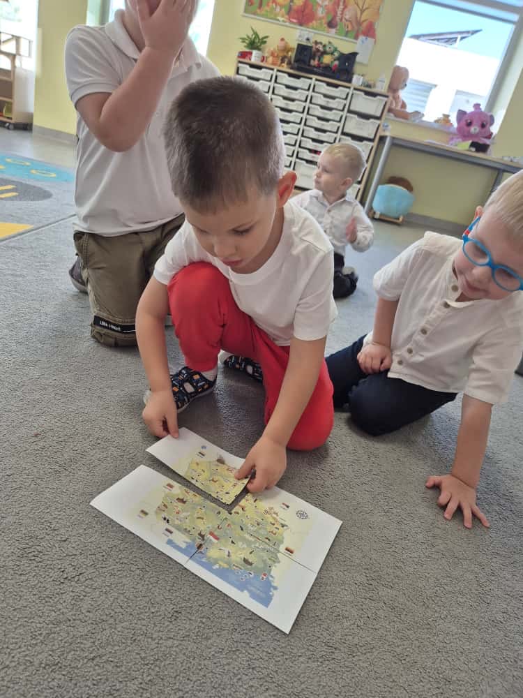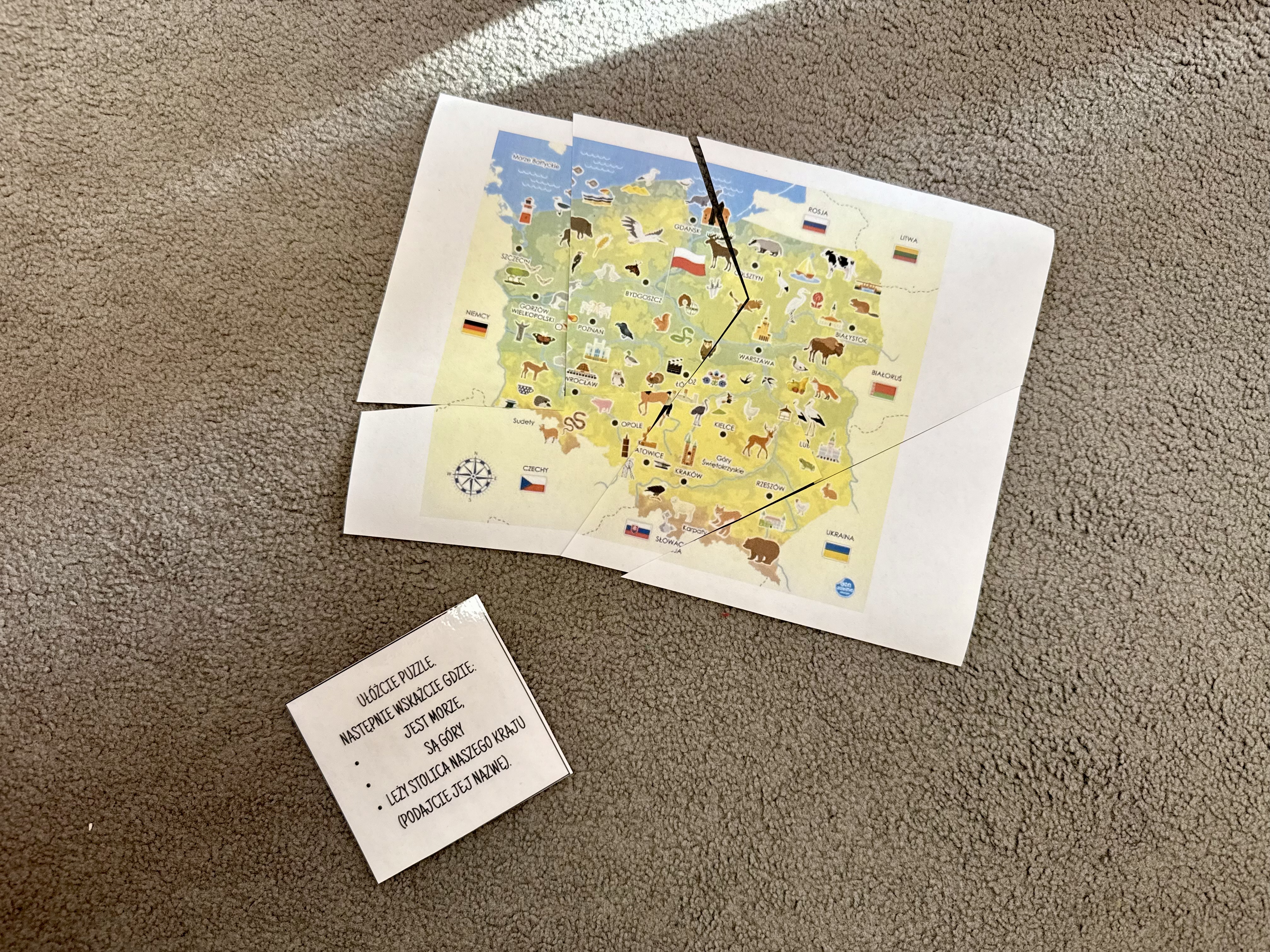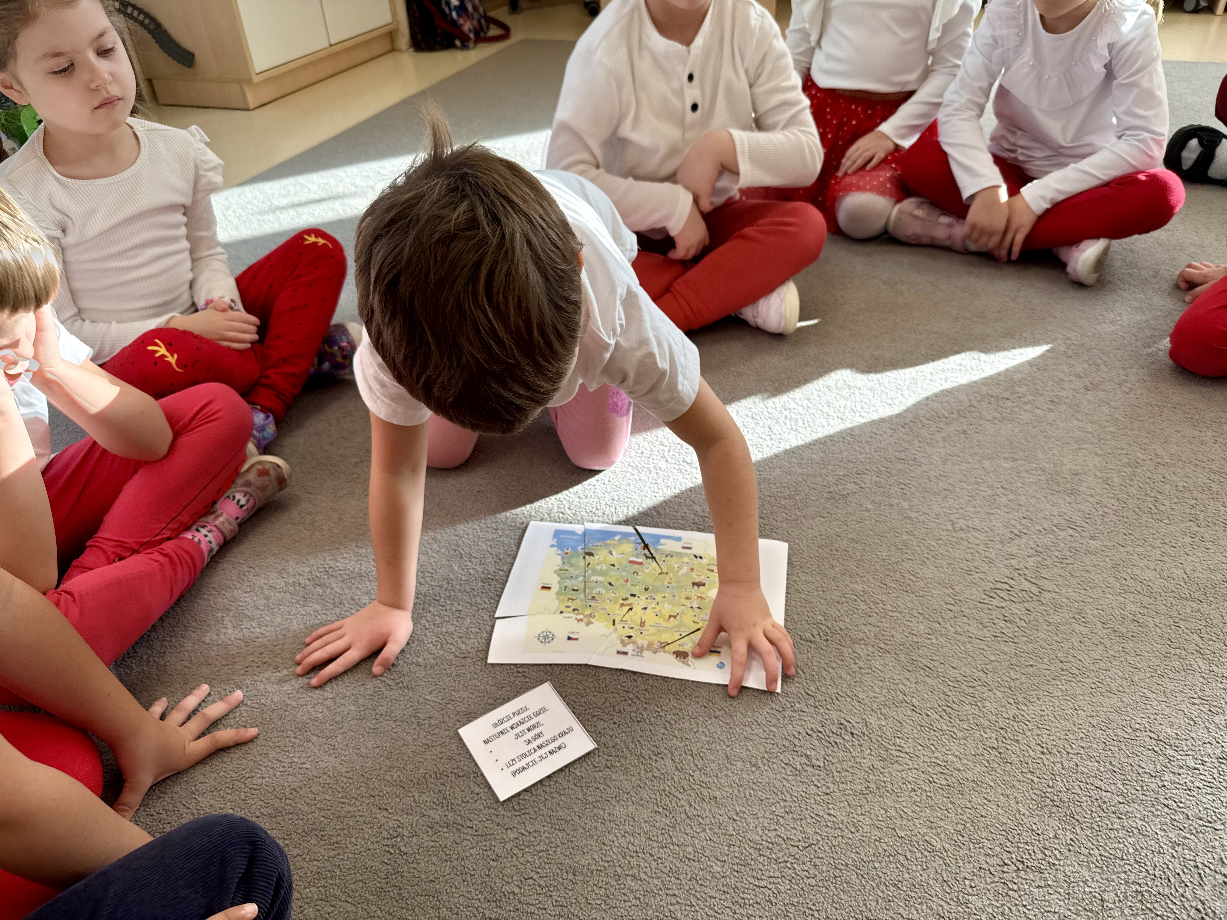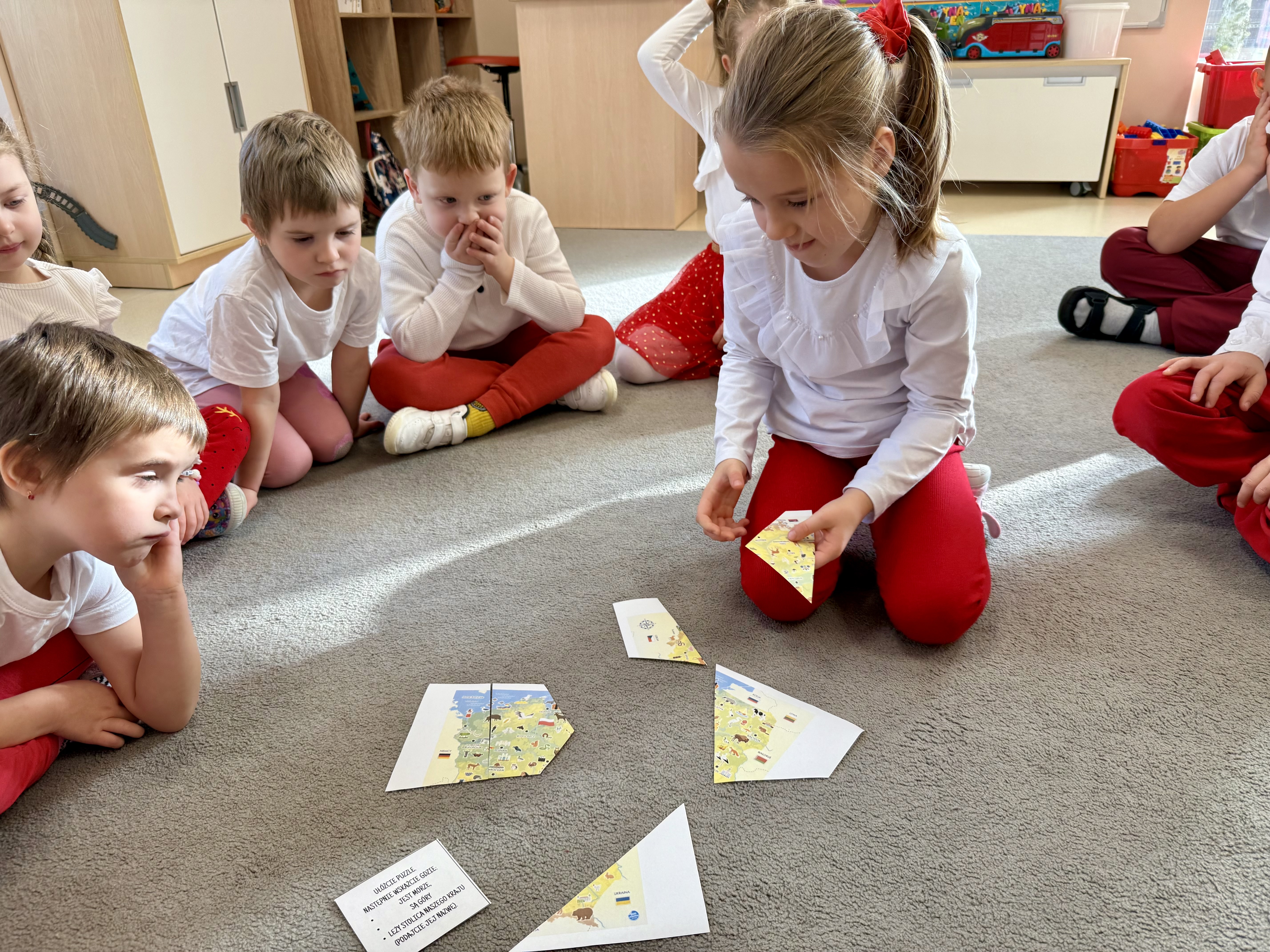 Dzień rozpoczął się od tajemniczego listu, który zapraszał dzieci do podróży po Polsce. W salach ukryte zostały kolejne wskazówki i zadania, prowadzące małych odkrywców krok po kroku przez świat symboli narodowych, muzyki, polskiej przyrody oraz tego, co sprawia, że możemy z dumą powiedzieć „to jest nasza Ojczyzna”. Dzieci pracowały zespołowo, wspierały się nawzajem, uczyły cierpliwości, uważności i radości ze wspólnego działania.