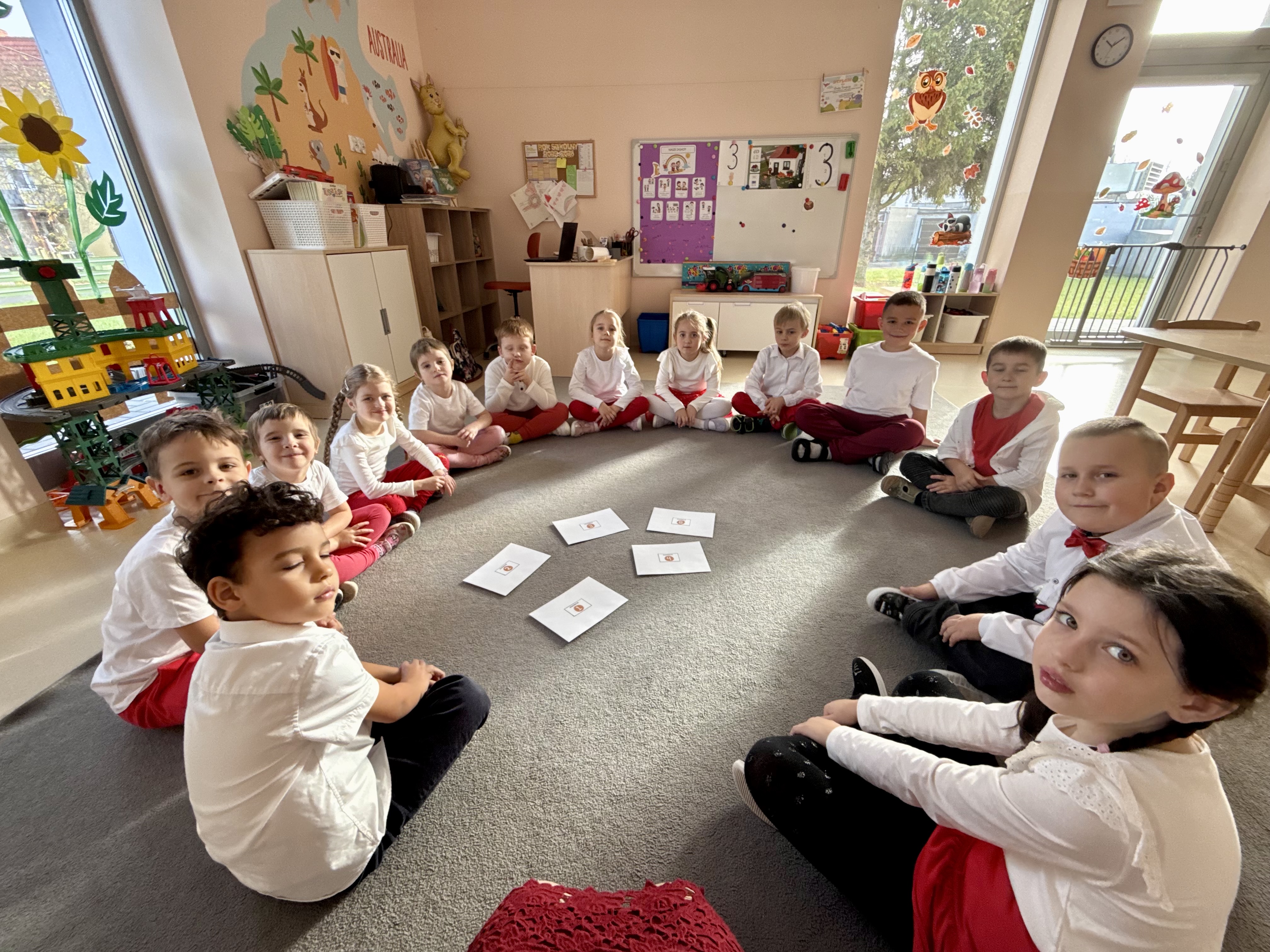 Z okazji zbliżającego się Narodowego Święta Niepodległości dnia 7 listopada 2025 r. w naszym przedszkolu odbyła się wyjątkowa patriotyczna zabawa pod hasłem „Śladami Biało-Czerwonej”. Choć gra miała charakter „terenowy”, tym razem każda grupa wyruszyła w swoją przygodę we własnej sali.