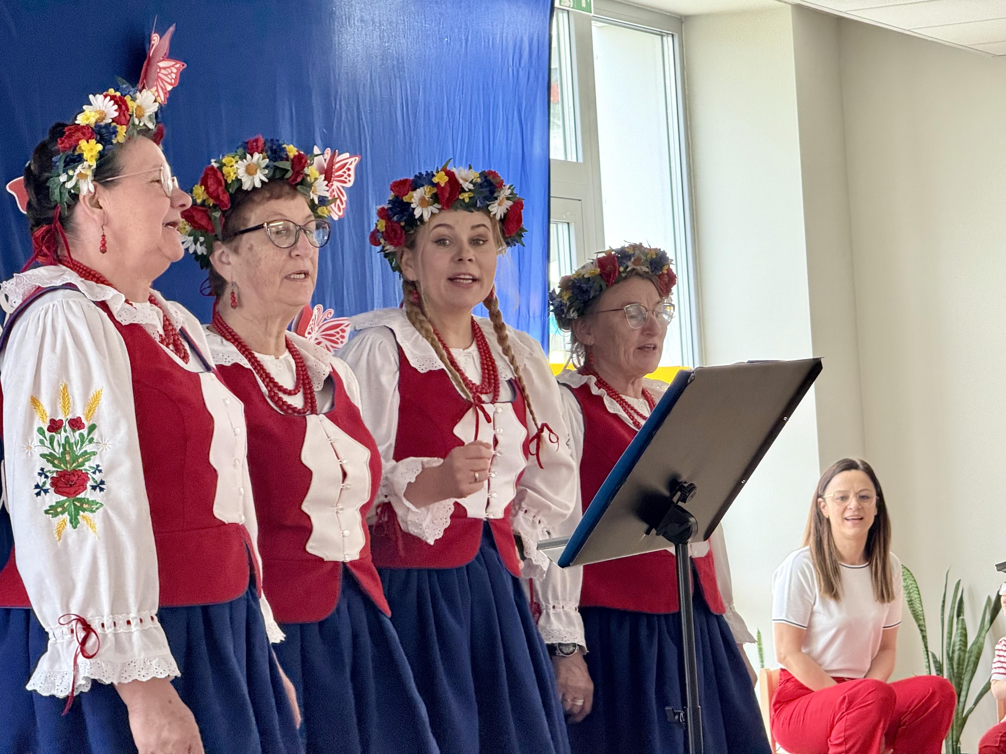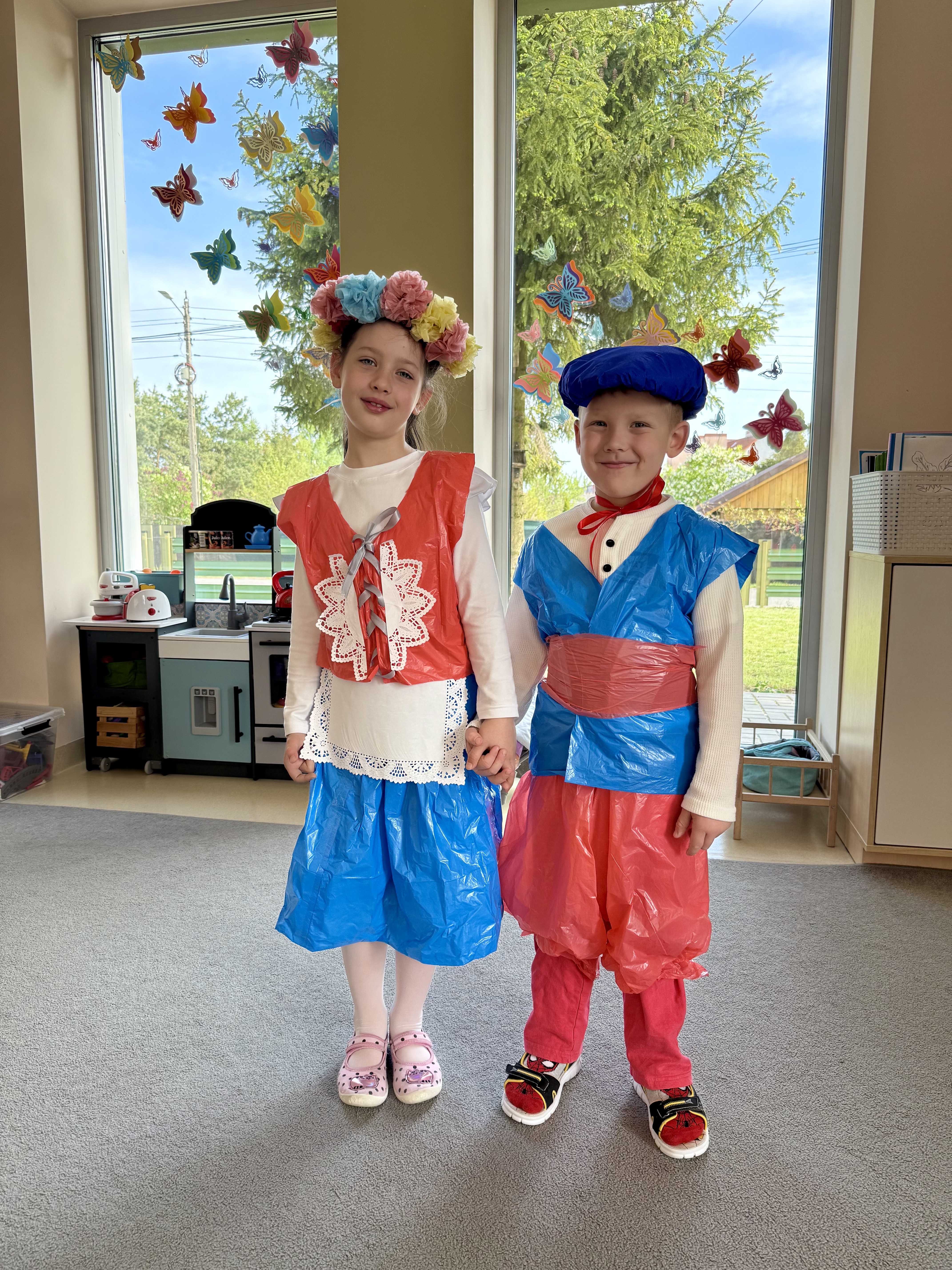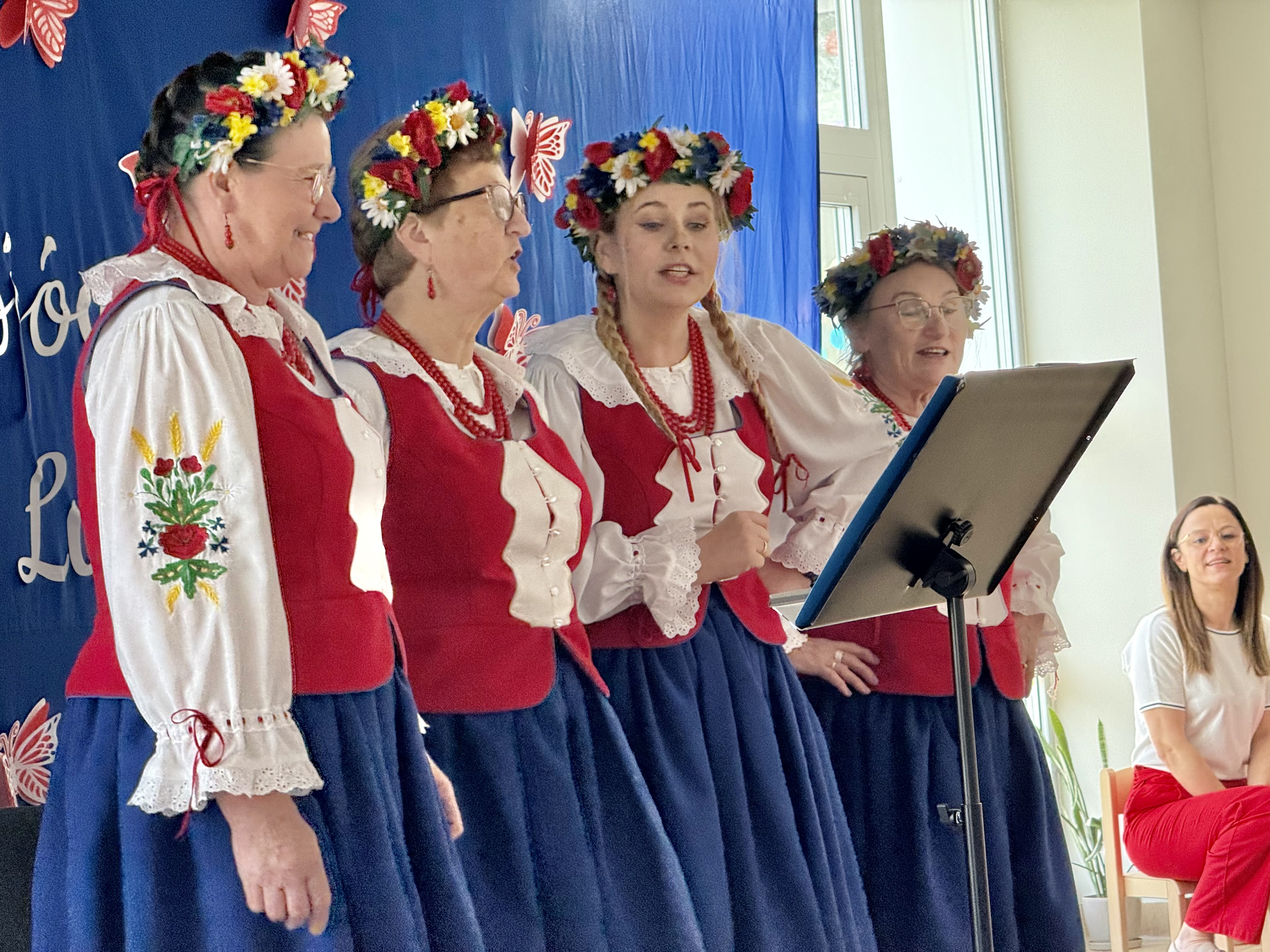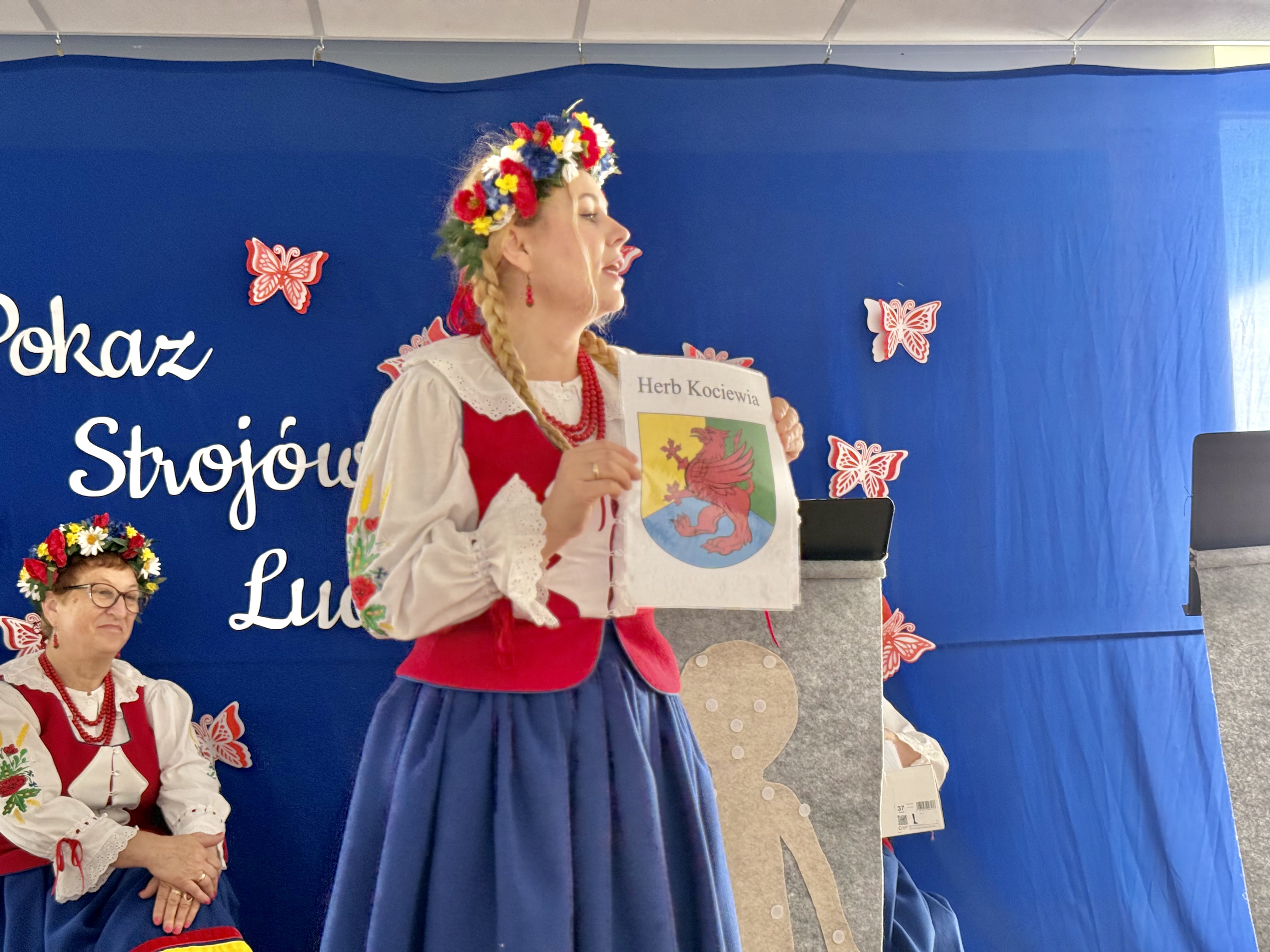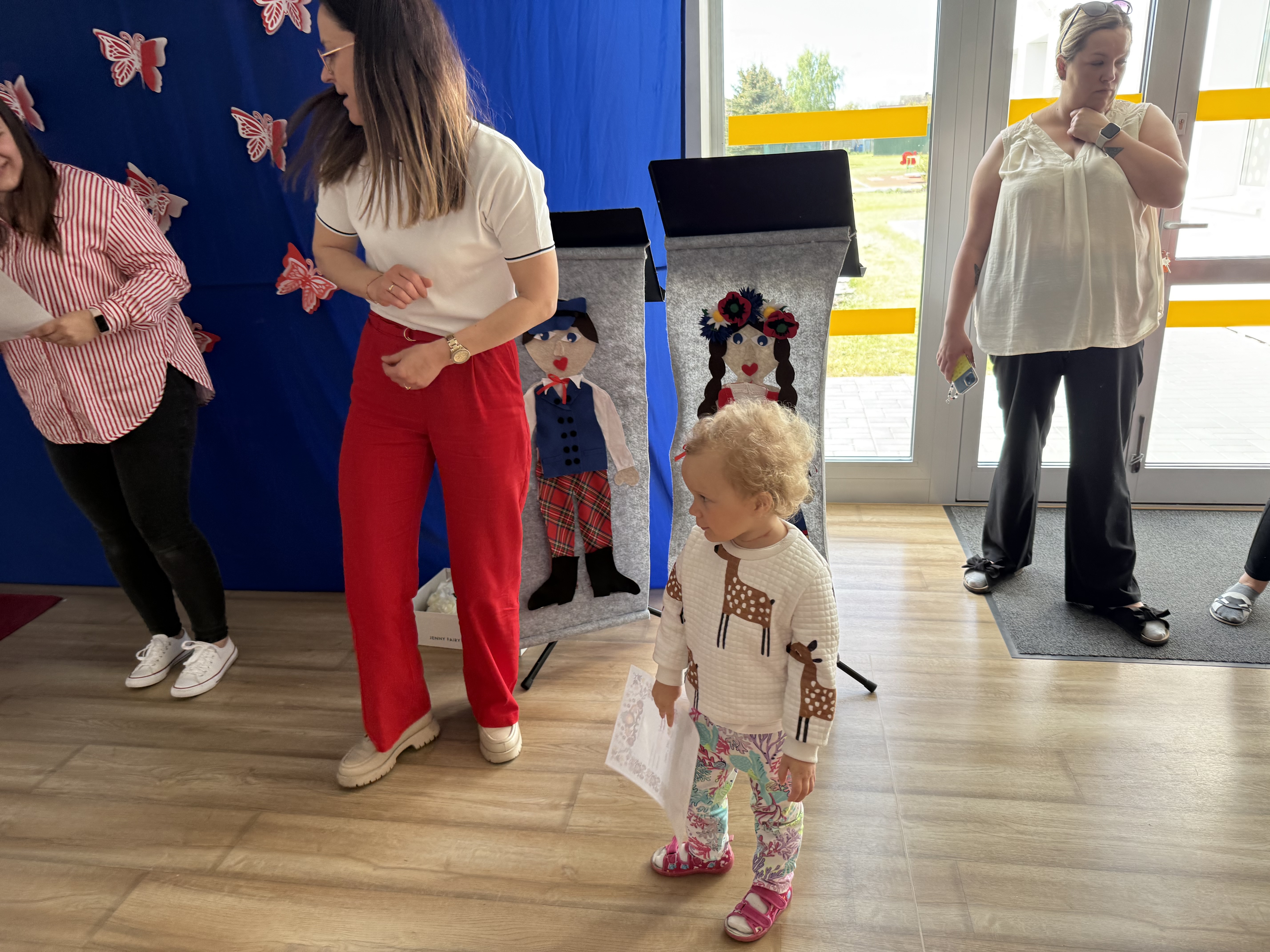 30 kwietnia 2025 r. – z okazji zbliżających się patriotycznych świąt majowych – nasze przedszkole miało zaszczyt gościć Zespół Pieśni i Tańca "Kociewianki”. Panie z zespołu wprowadziły dzieci w magiczny świat muzyki ludowej, prezentując dwa piękne utwory. Następnie, za pomocą filcowych laleczek, przybliżyły maluchom budowę tradycyjnego stroju kociewskiego (zarówno damskiego, jak i męskiego), tłumacząc szczegółowo nazewnictwo poszczególnych elementów odzieży.