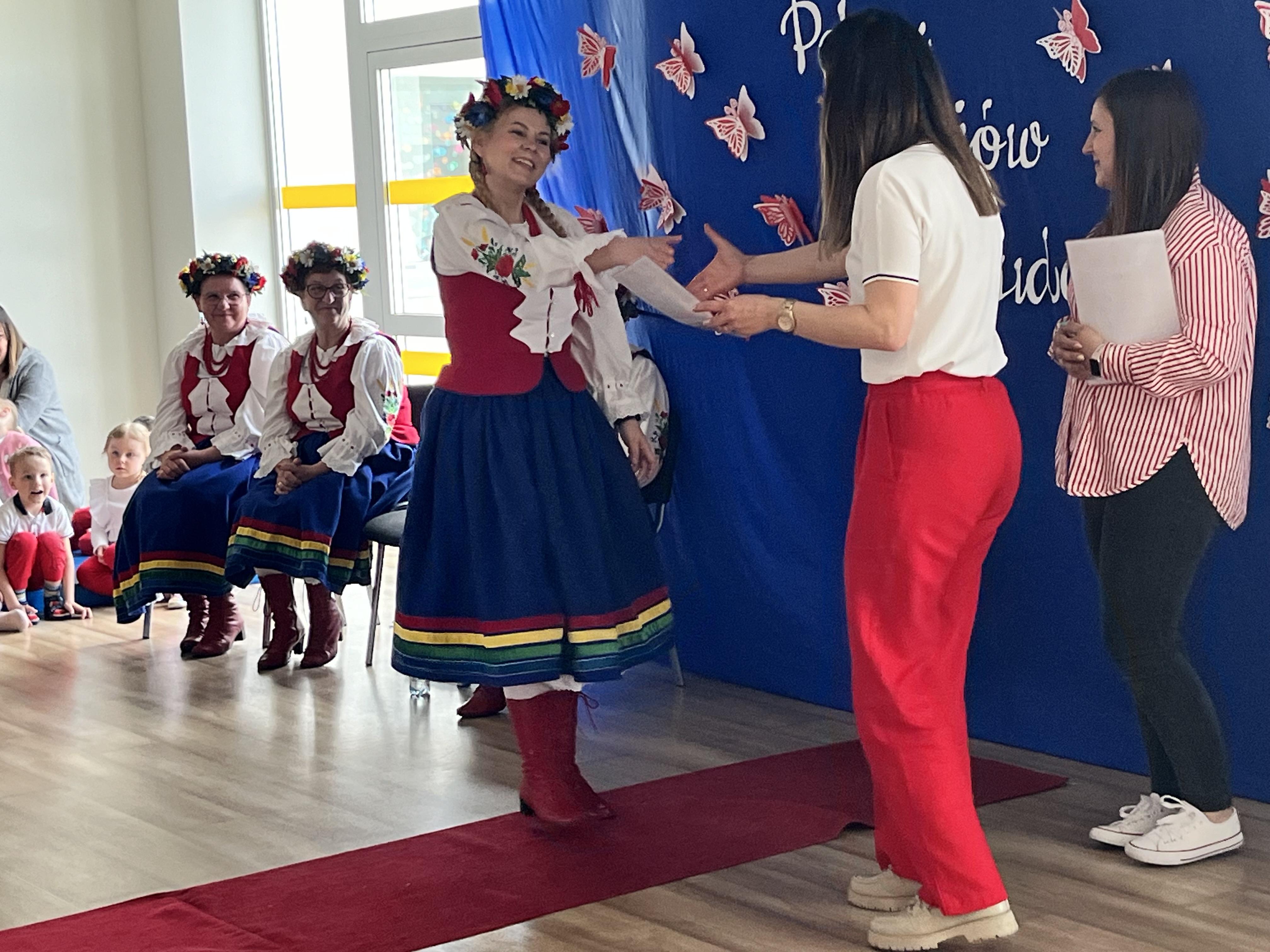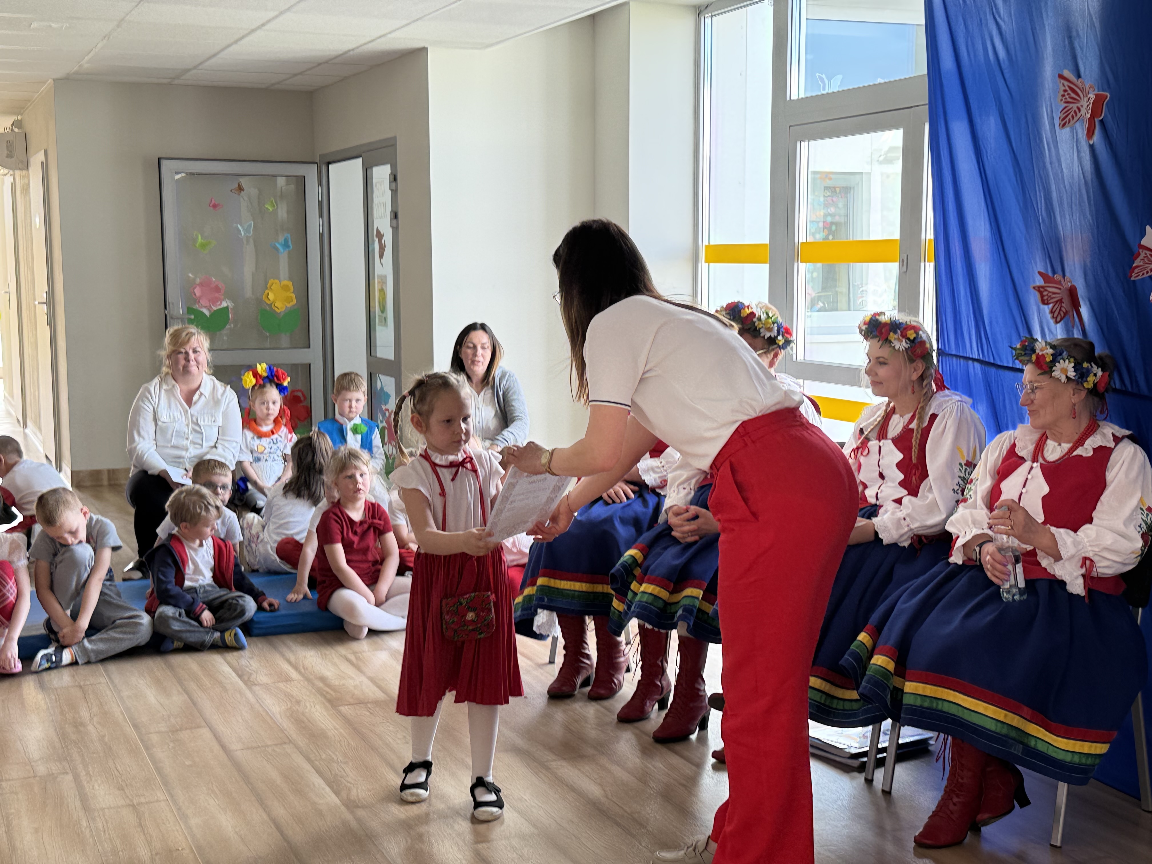 Na zakończenie każda grupa otrzymała dyplom z rąk Pani Dyrektor, a wydarzenie zostało zakończone serdecznymi podziękowaniami dla Zespołu "Kociewianki" za ich przybycie, wspaniałe występy i zaangażowanie. Dzięki nim dzieci miały okazję poznać piękno ludowej muzyki i tradycji, a także doświadczyć, jak ważne jest pielęgnowanie kultury i dziedzictwa regionalnego.