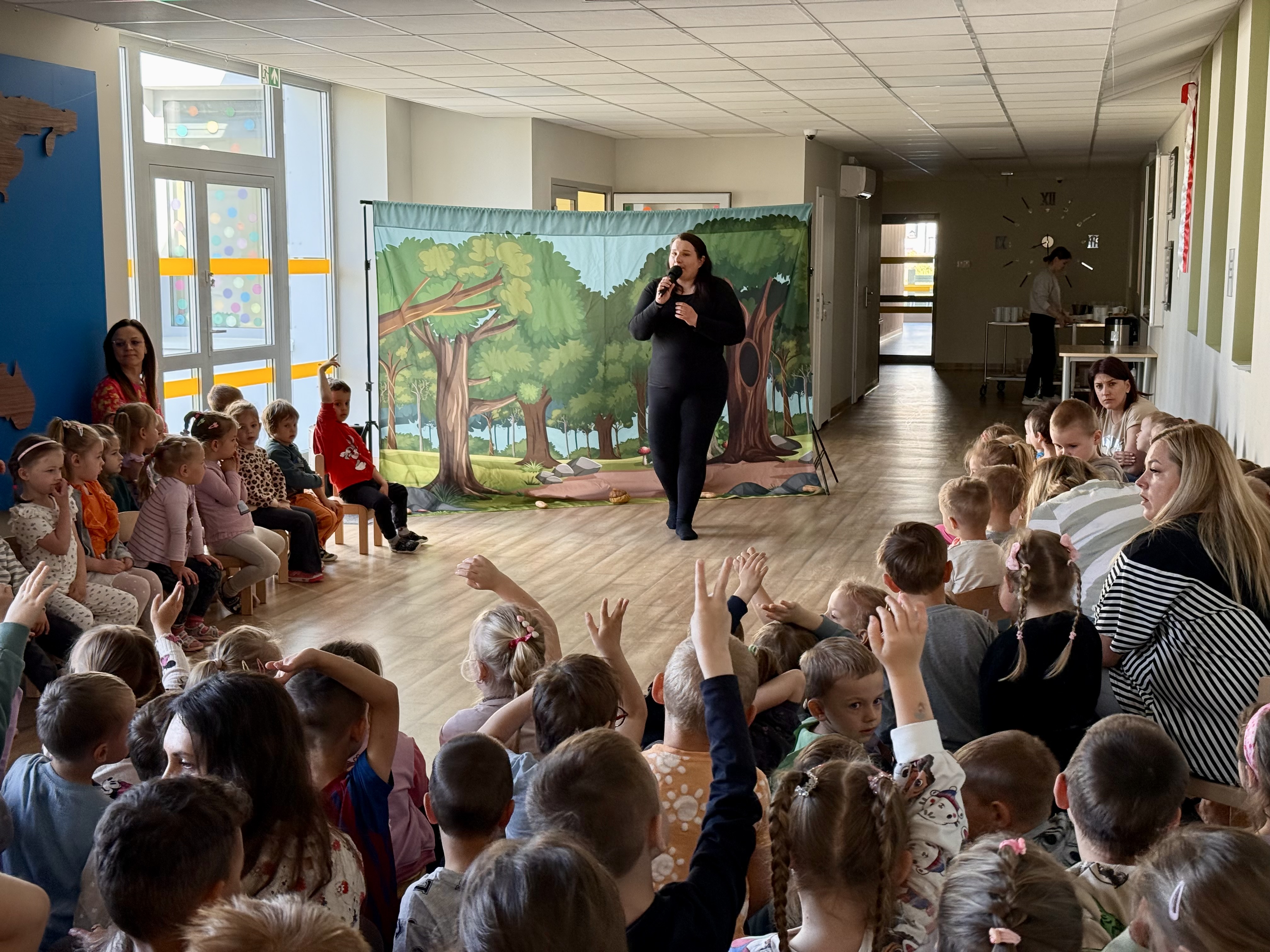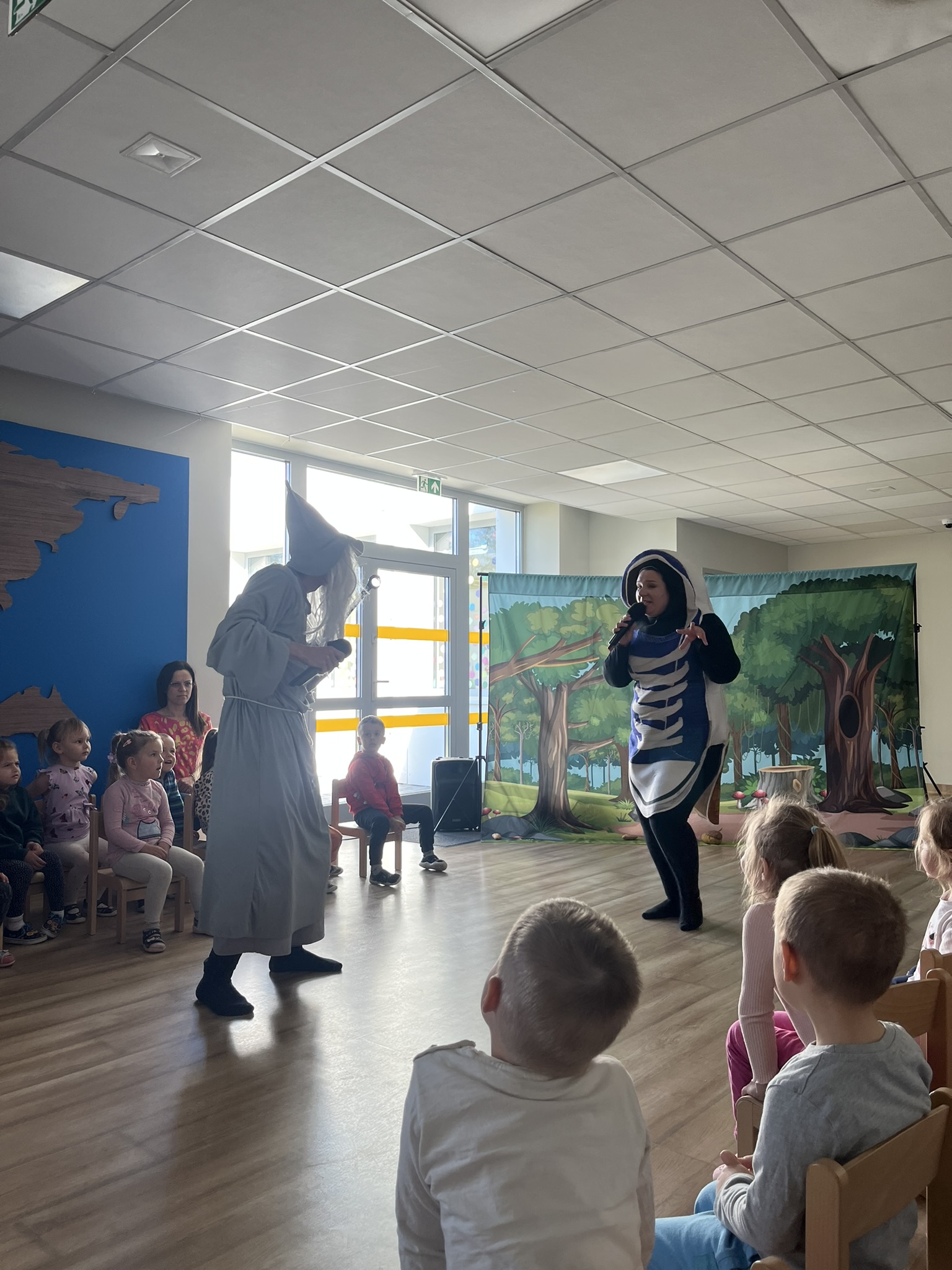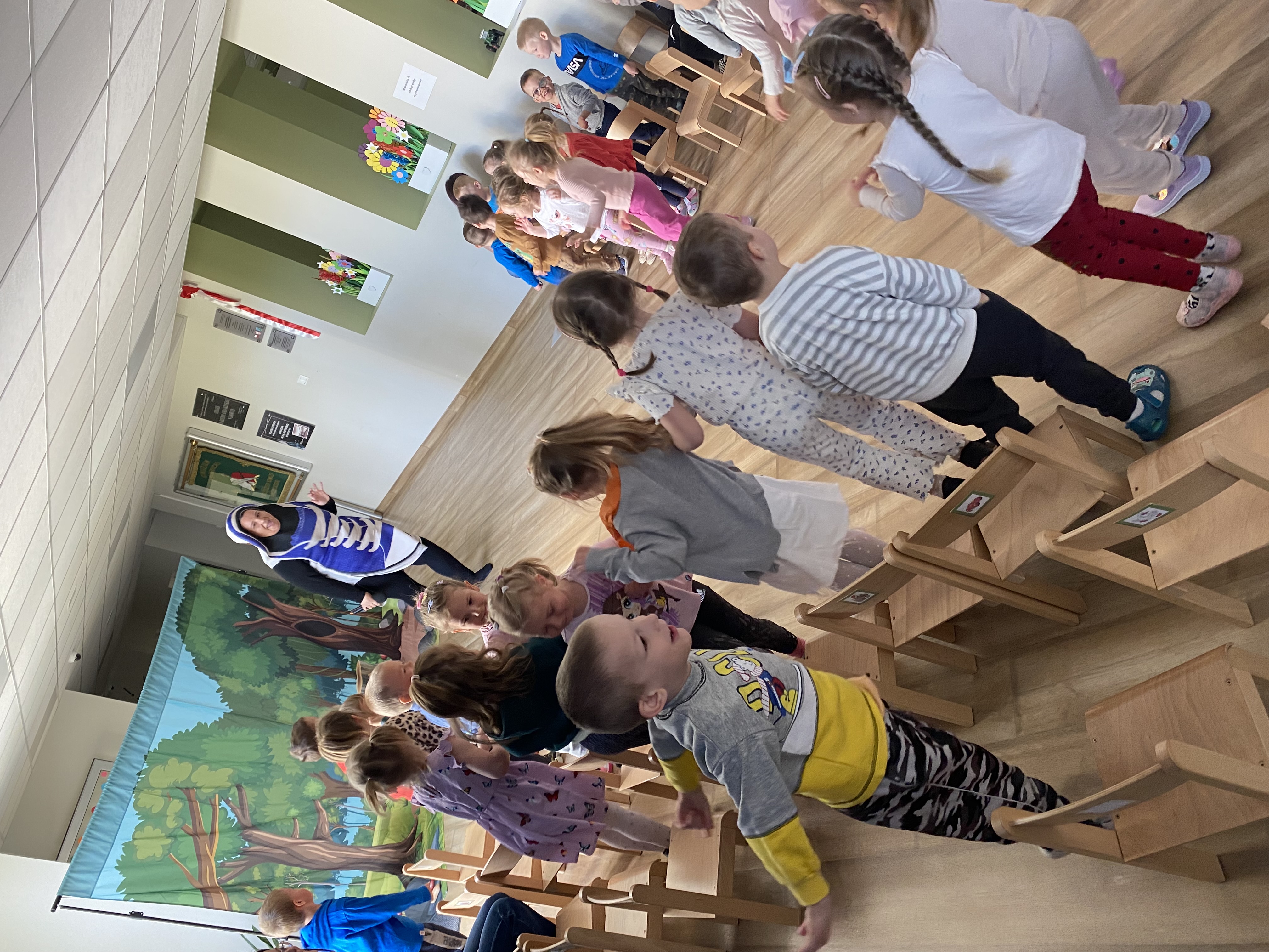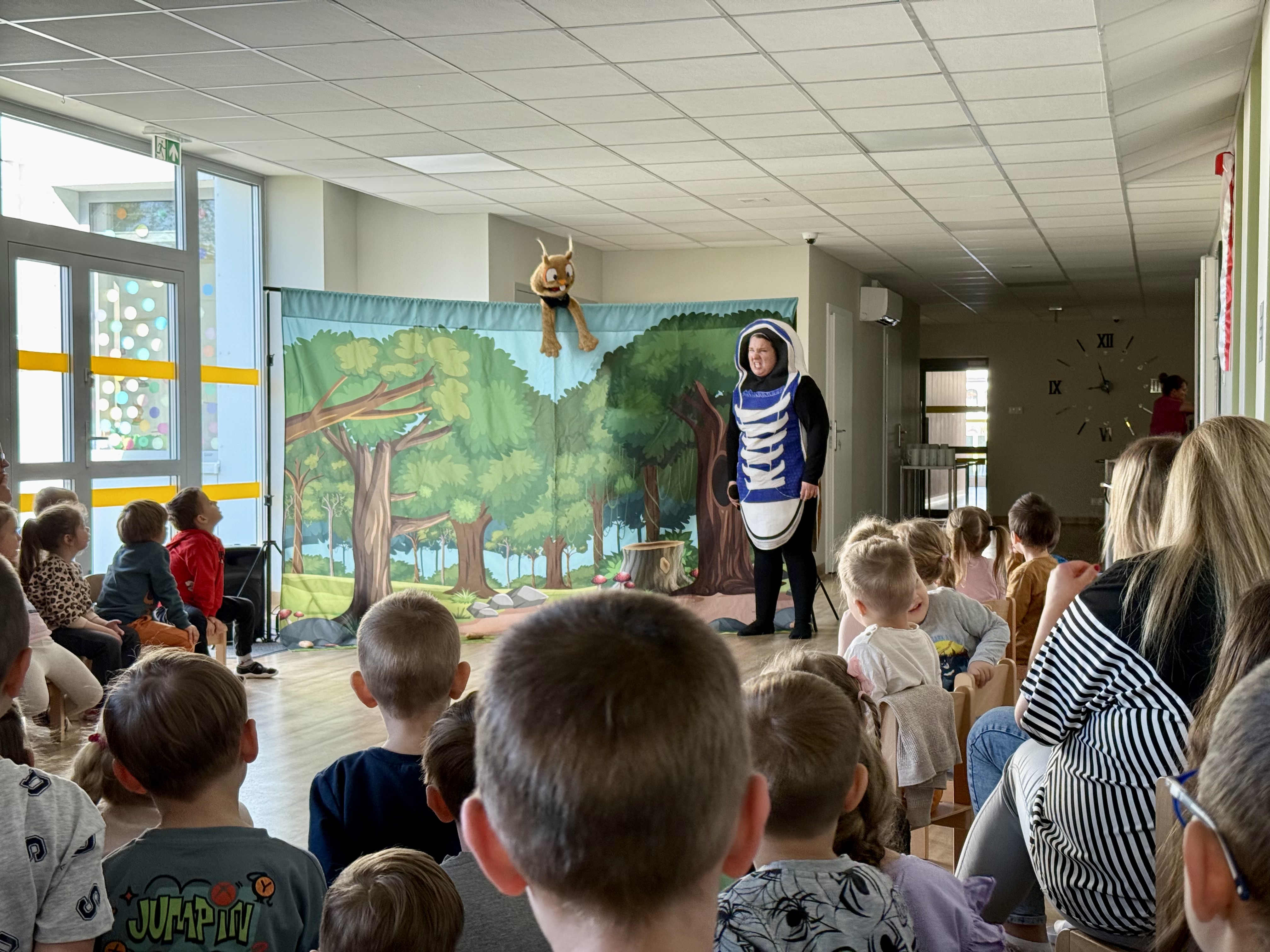 Dnia 13 maja 2025 roku nasze przedszkolaki miały okazję obejrzeć wyjątkowe przedstawienie pt. „Magiczny kapelusz” w wykonaniu grupy teatralnej Grupa T z Torunia. Spektakl w lekki i pełen humoru sposób poruszał ważne tematy: tolerancję, akceptację inności oraz szacunek dla innych poglądów. Dzieci były aktywnie zaangażowane w przebieg wydarzenia, co sprawiło im ogromną radość. Przedstawienie łączyło grę żywych aktorów z udziałem pacynki – sympatycznej wiewióreczki, która skradła serca najmłodszych. Było to inspirujące spotkanie z teatrem i wartościami, które naprawdę warto pielęgnować.