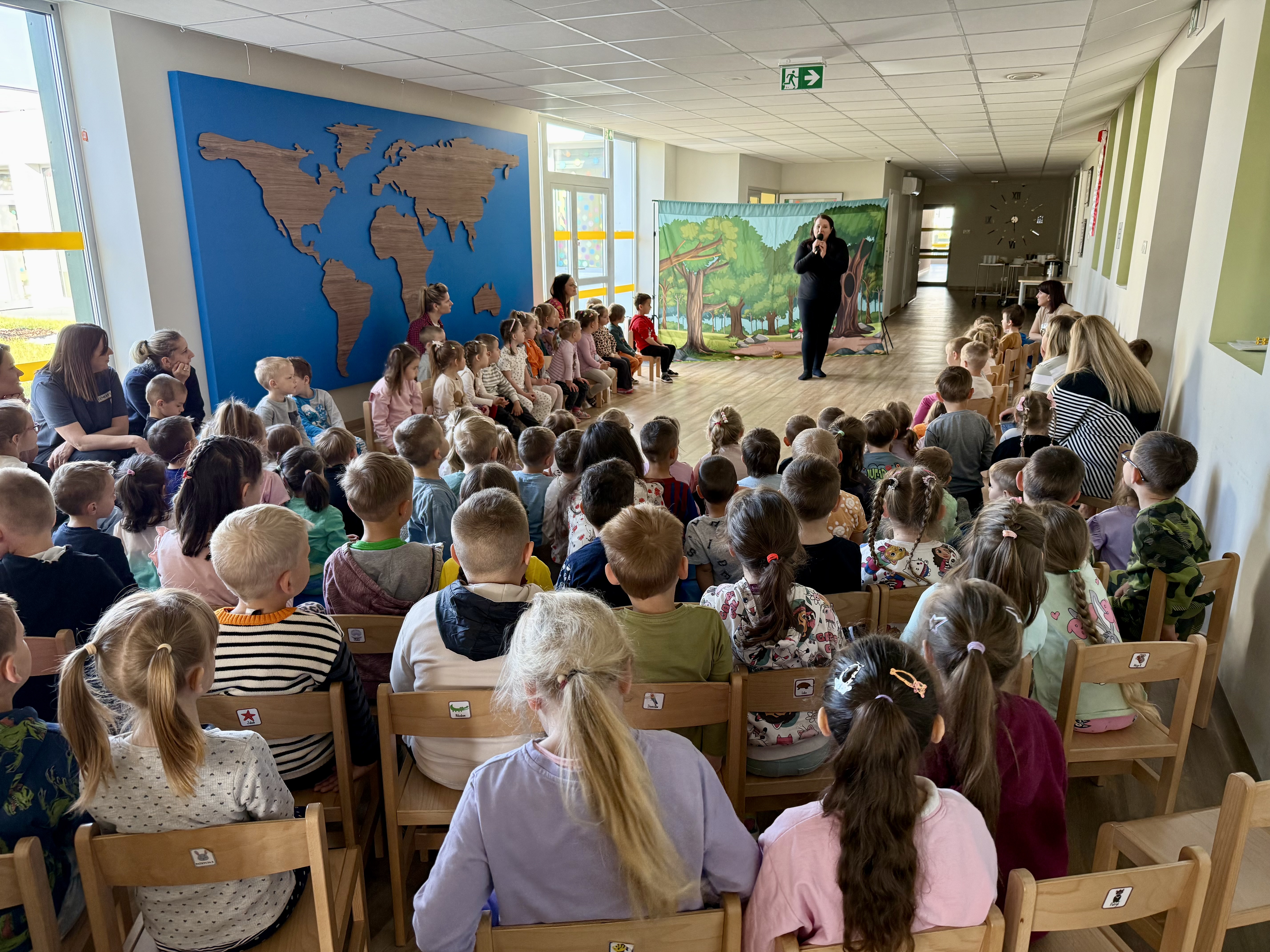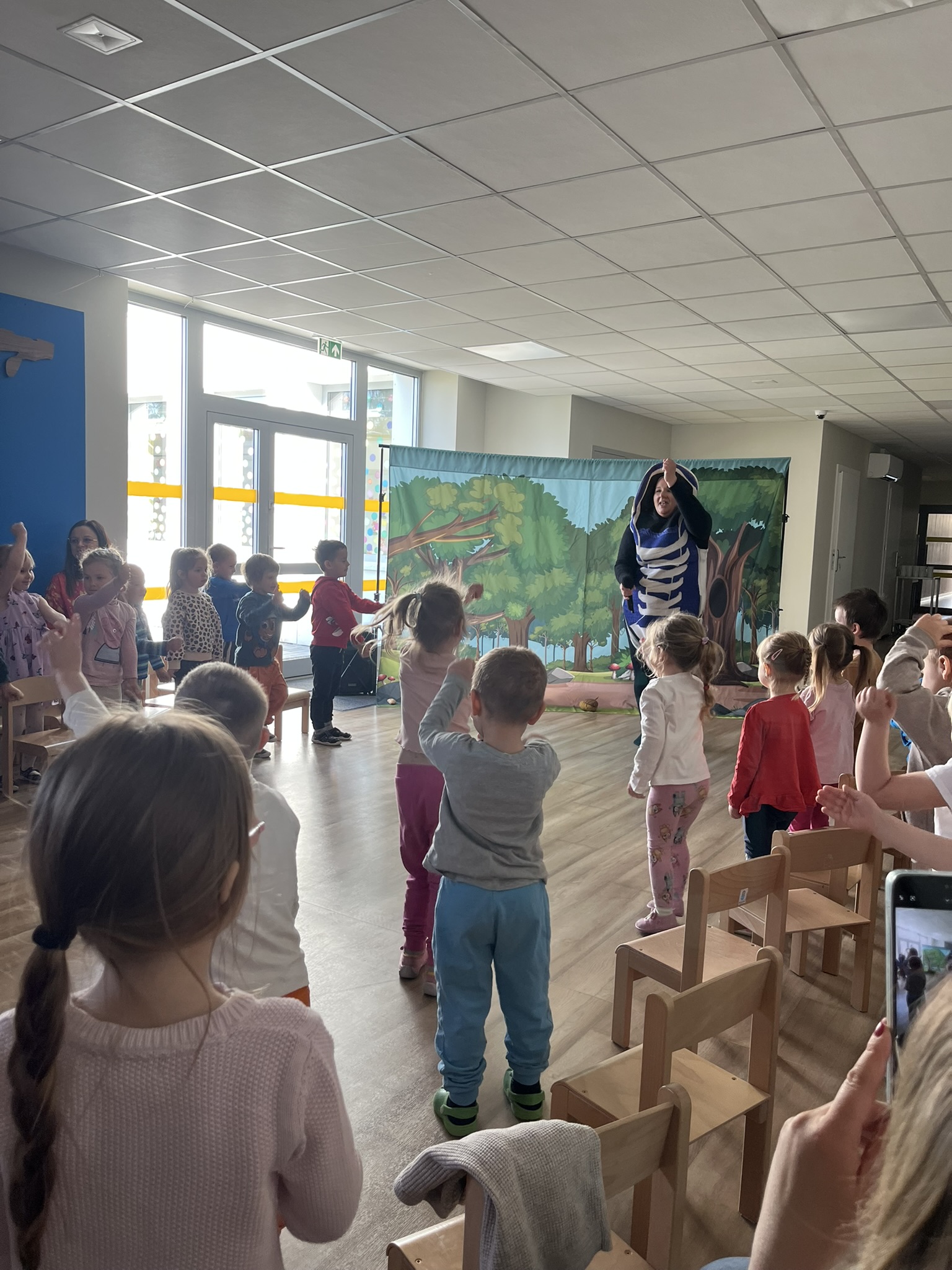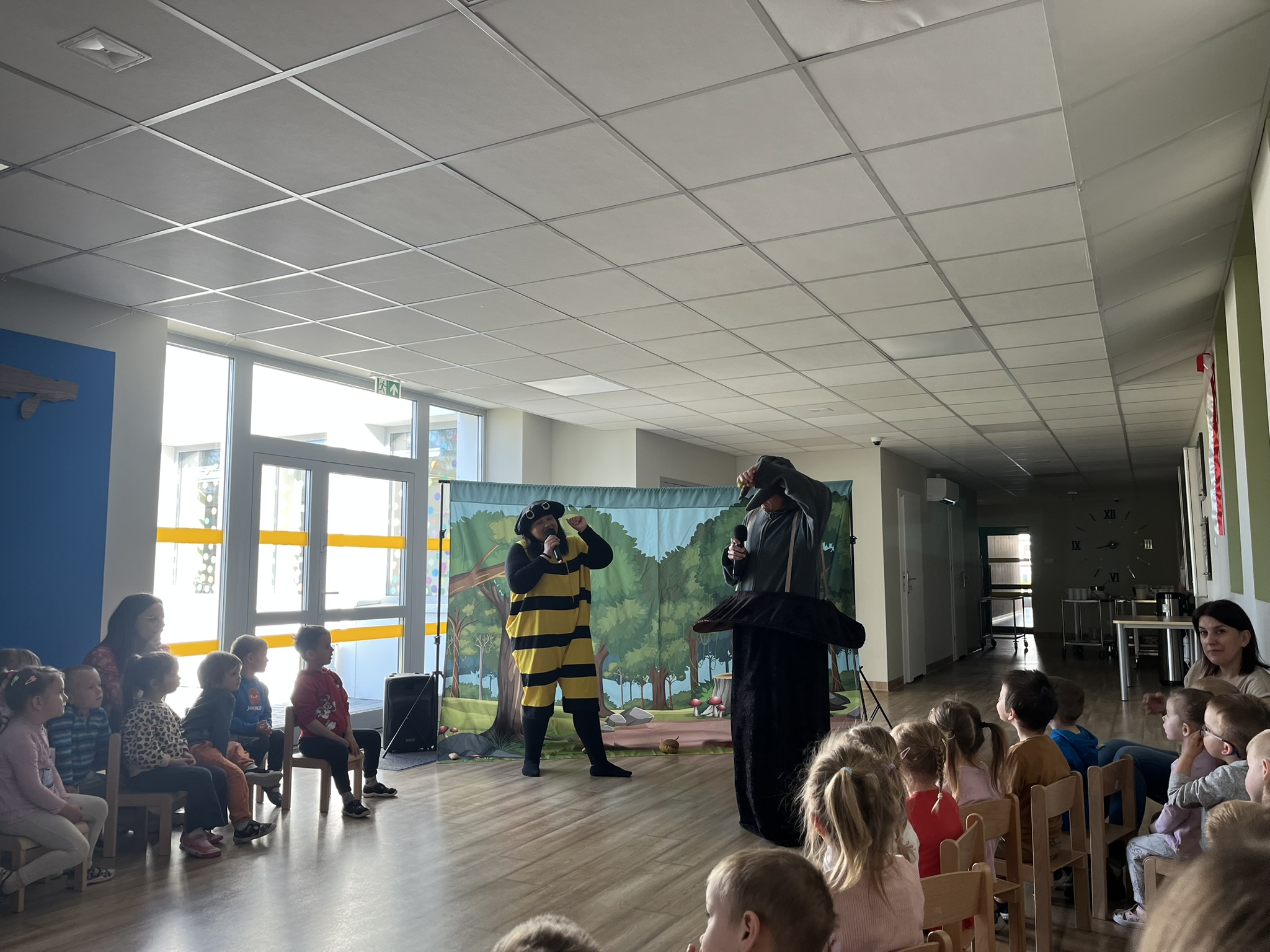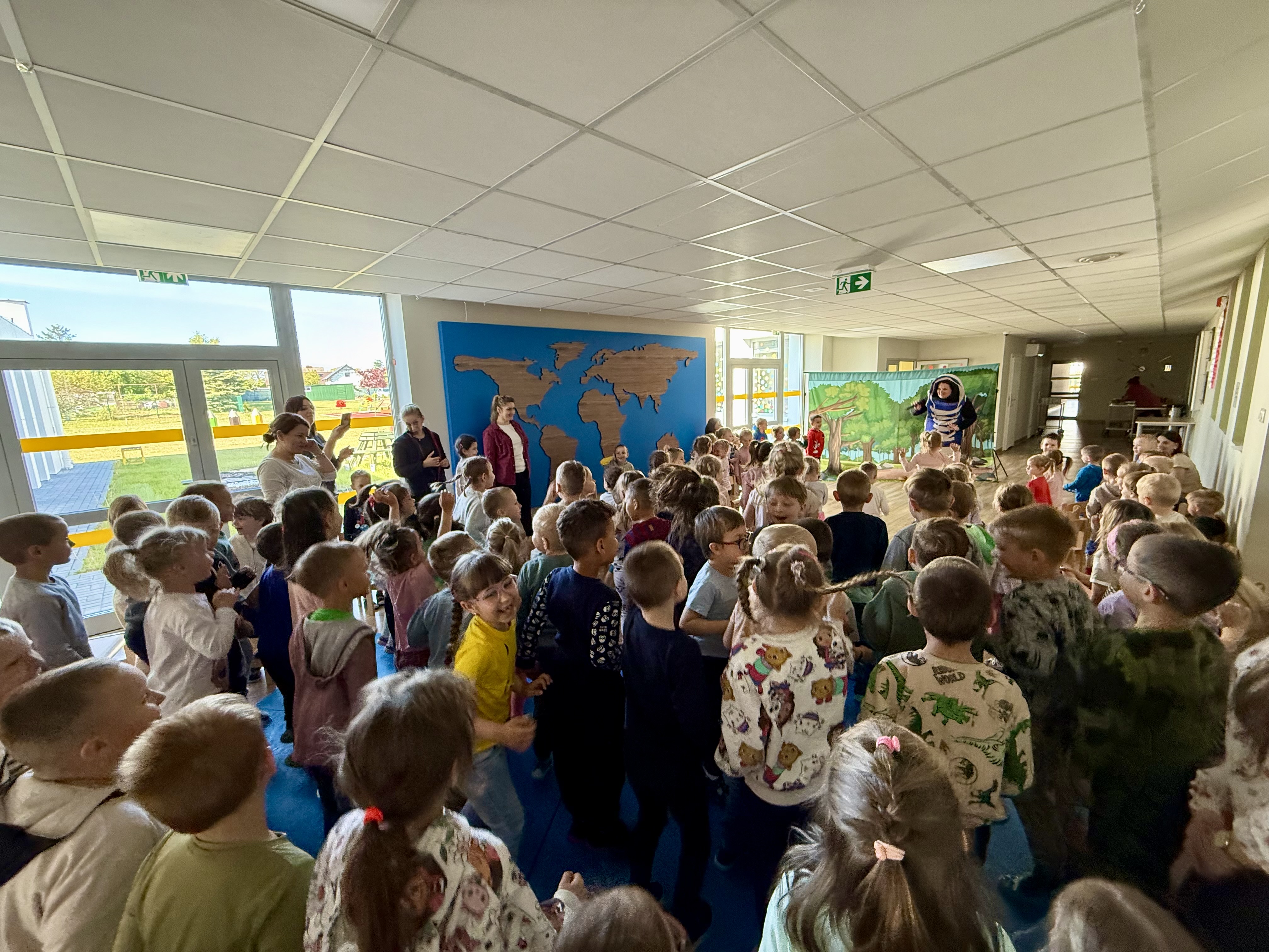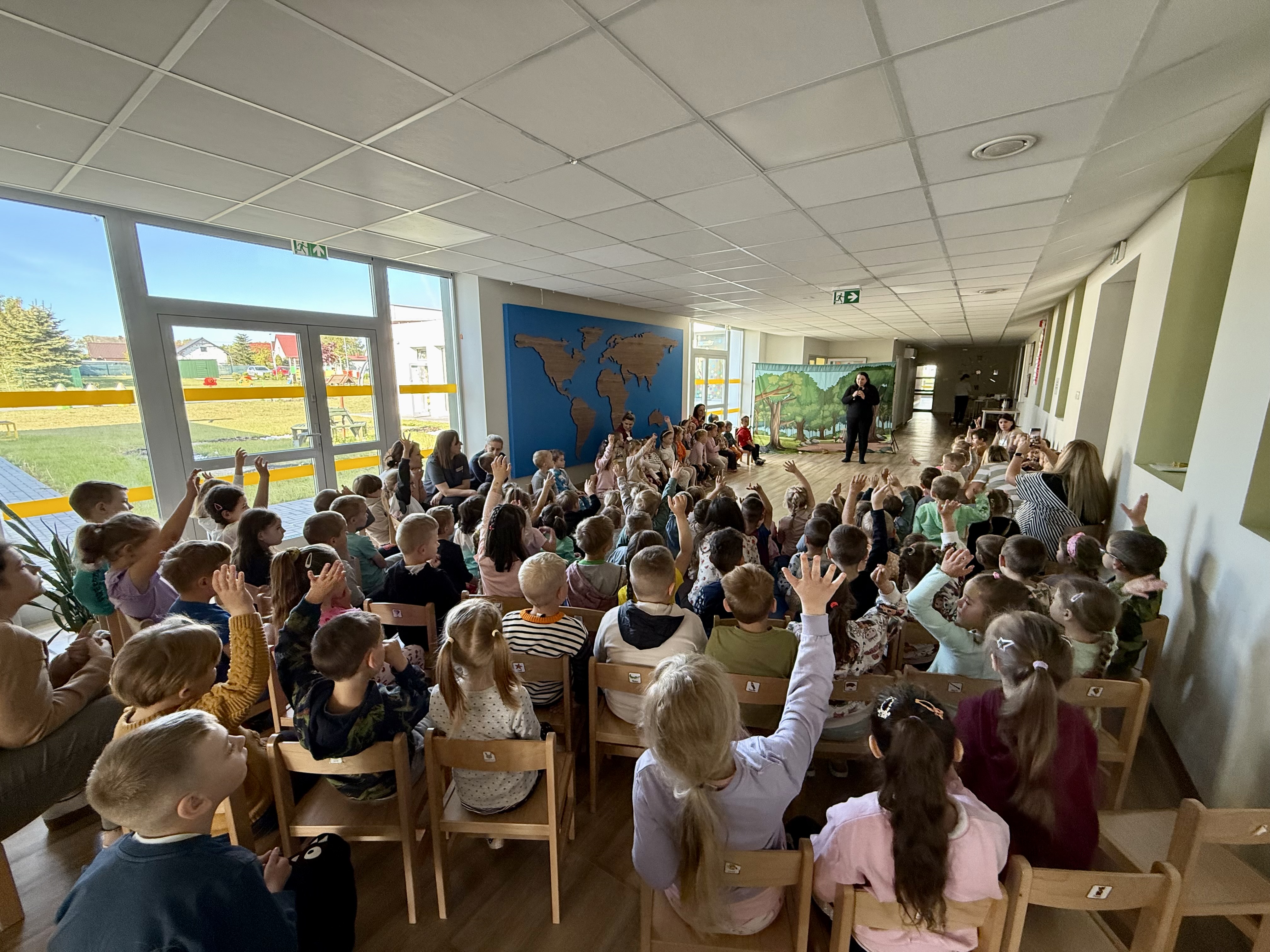 Dnia 13 maja 2025 roku nasze przedszkolaki miały okazję obejrzeć wyjątkowe przedstawienie pt. „Magiczny kapelusz” w wykonaniu grupy teatralnej Grupa T z Torunia. Spektakl w lekki i pełen humoru sposób poruszał ważne tematy: tolerancję, akceptację inności oraz szacunek dla innych poglądów. Dzieci były aktywnie zaangażowane w przebieg wydarzenia, co sprawiło im ogromną radość. Przedstawienie łączyło grę żywych aktorów z udziałem pacynki – sympatycznej wiewióreczki, która skradła serca najmłodszych. Było to inspirujące spotkanie z teatrem i wartościami, które naprawdę warto pielęgnować.