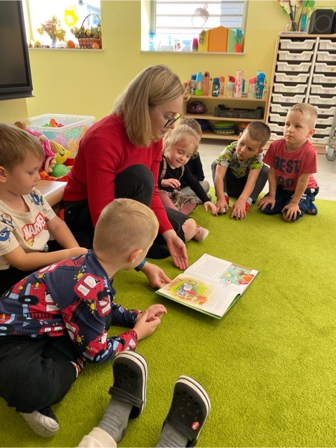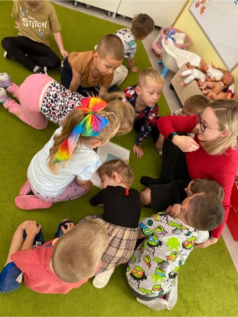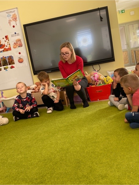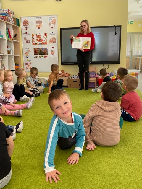 Dnia 13 października w grupie ”Liski” odbyło się wyjątkowe spotkanie z mamą Janka, która odwiedziła nas, aby przeczytać dzieciom bajkę. Przedszkolaki z wielkim zainteresowaniem słuchały opowieści, chętnie odpowiadały na pytania i dzieliły się swoimi wrażeniami.