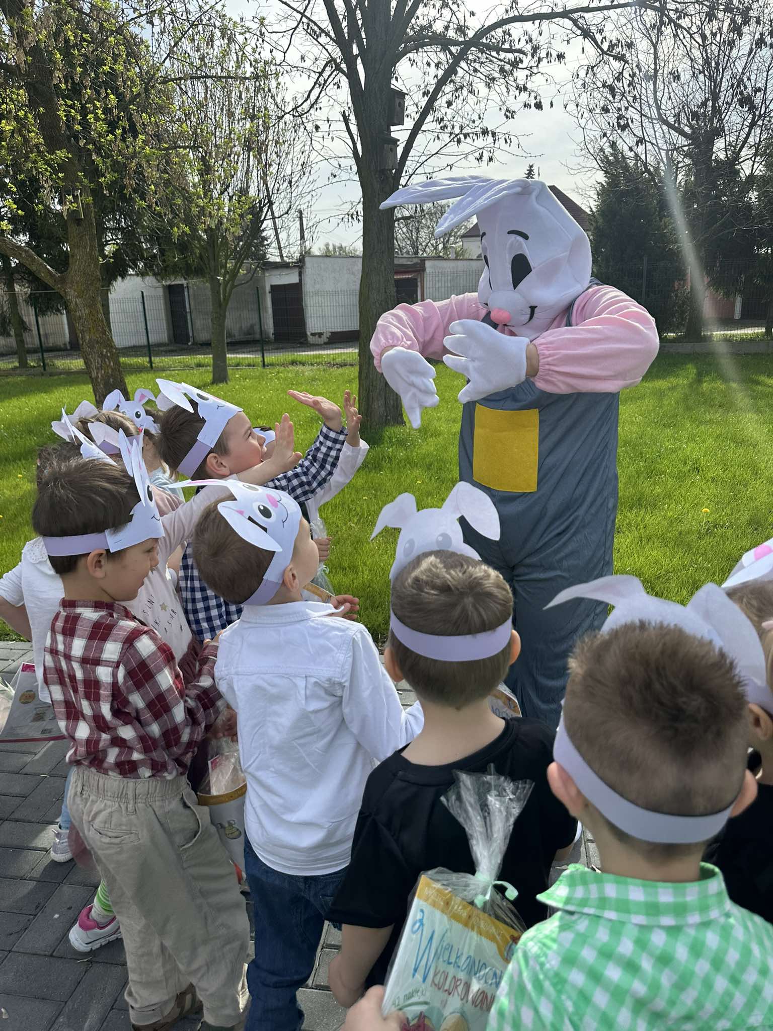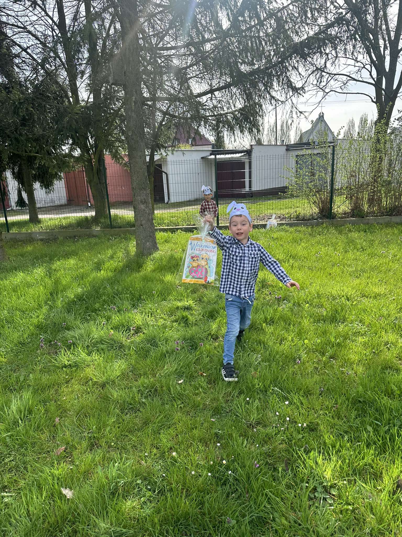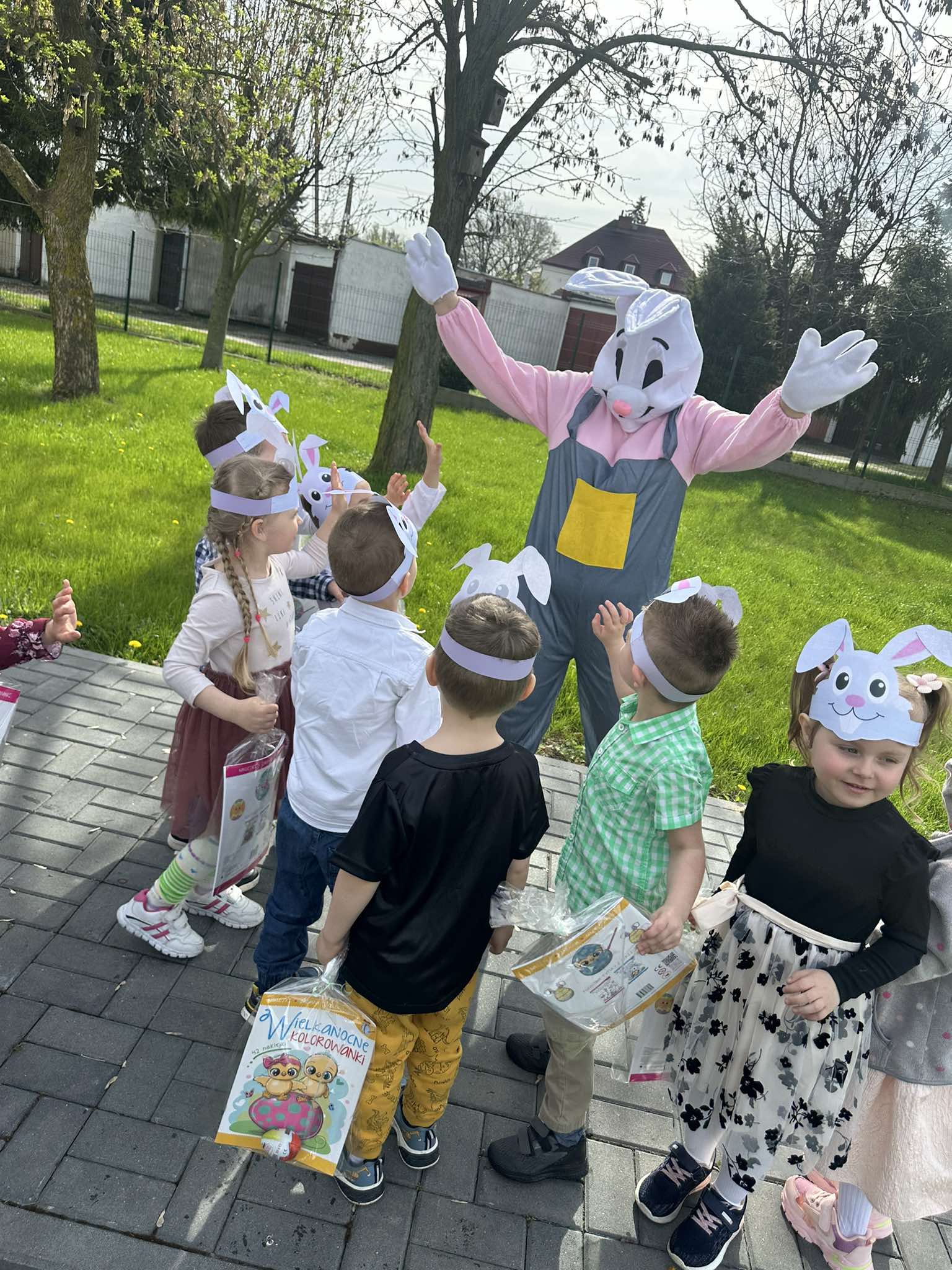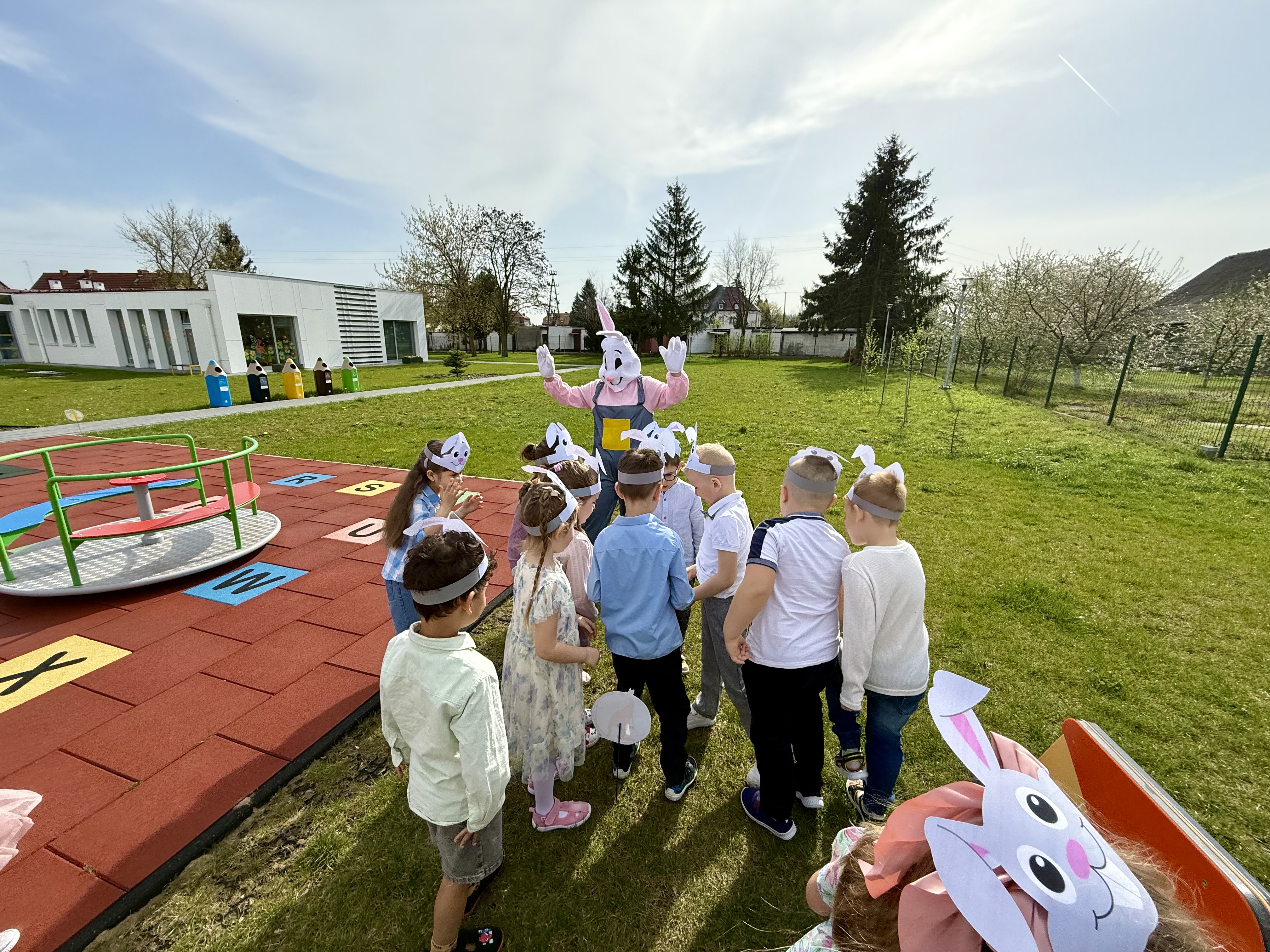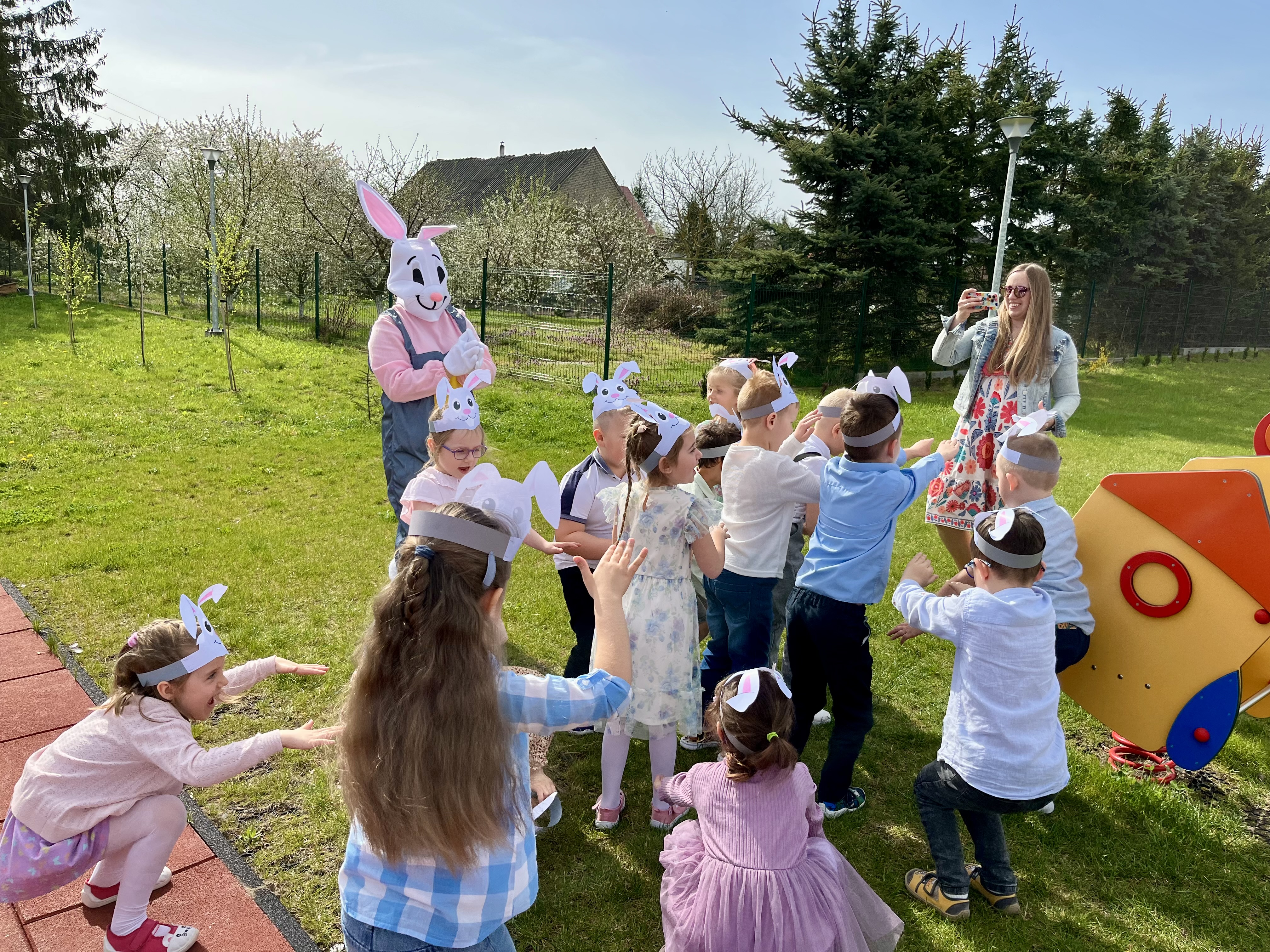 Wielkanoc to święto pełne tradycji i obyczajów. Tradycje wielkanocne sprawiają, że to święto staje się wyjątkowe, a świąteczne dni są pełne radości. Dnia 17 kwietnia w naszym przedszkolu odbył się uroczysty Poranek Wielkanocny. Dzieci wraz z wychowawcami zebrały się na holu, gdzie wspólnie zasiadły do świątecznego śniadanka. Na świątecznym stole nie zabrakło jajka, żurku, szynki i baranka. Pani Dyrektor powitała wszystkich i złożyła serdeczne wielkanocne życzenia. Po śniadaniu pojawił się wyjątkowy gość – Zajączek Wielkanocny. Dzieci z radością przywitały go piosenką. Następnie wszyscy udaliśmy się do ogrodu, gdzie Zajączek przygotował specjalne zadania do rozwiązania oraz pochował prezenty. Dzieci z wielkim zaangażowaniem szukały ukrytych niespodzianek. Na zakończenie pełnego emocji poranka wszyscy zrobili sobie wspólne pamiątkowe zdjęcie z zajączkiem. To był radosny czas pełen uśmiechu, zabawy i świątecznej atmosfery!