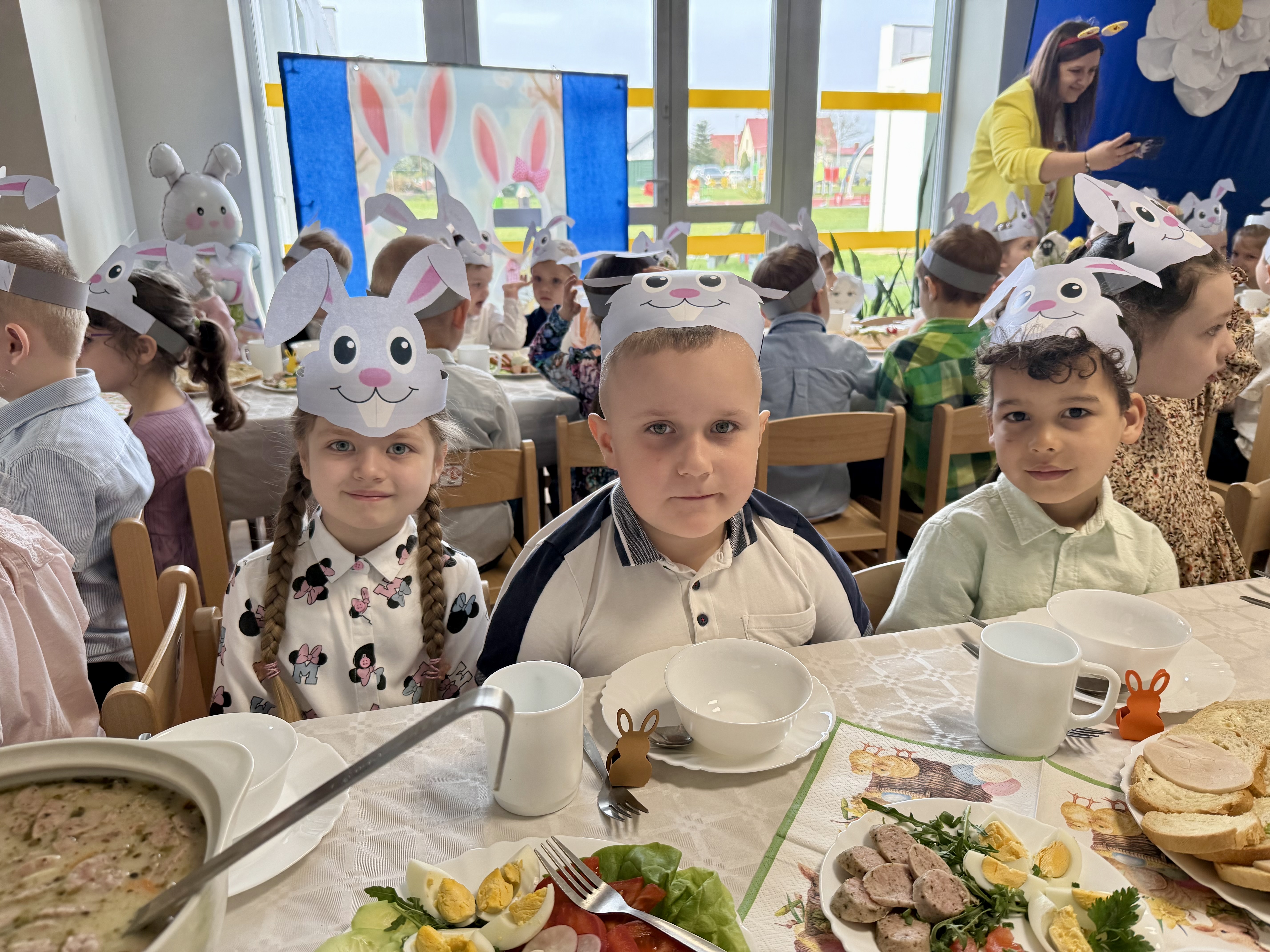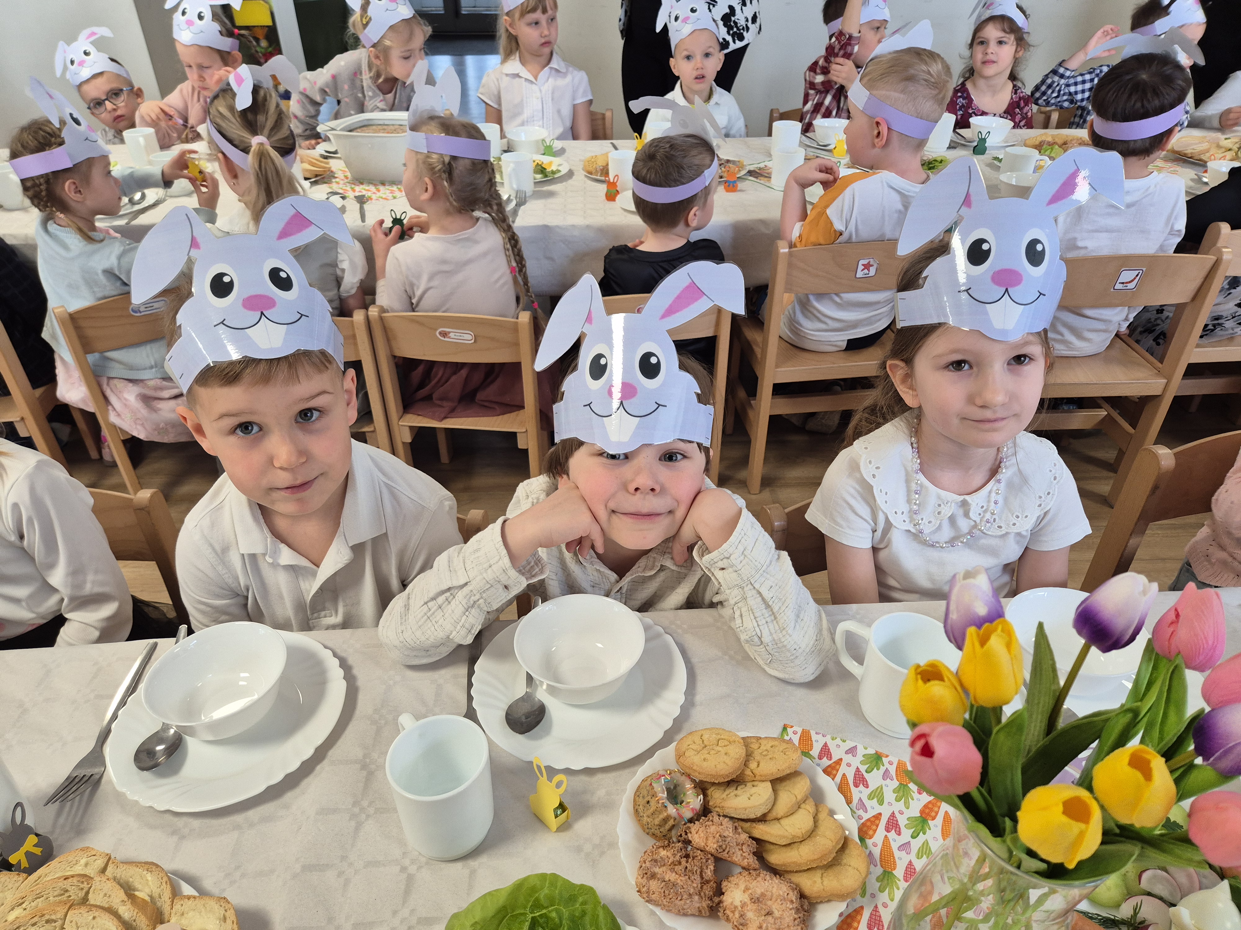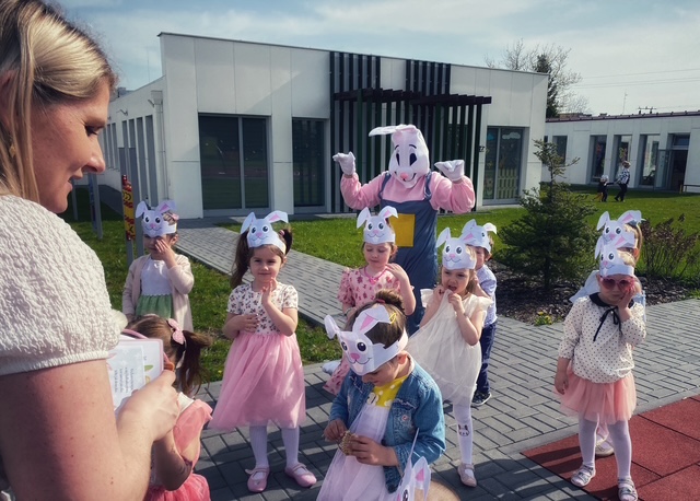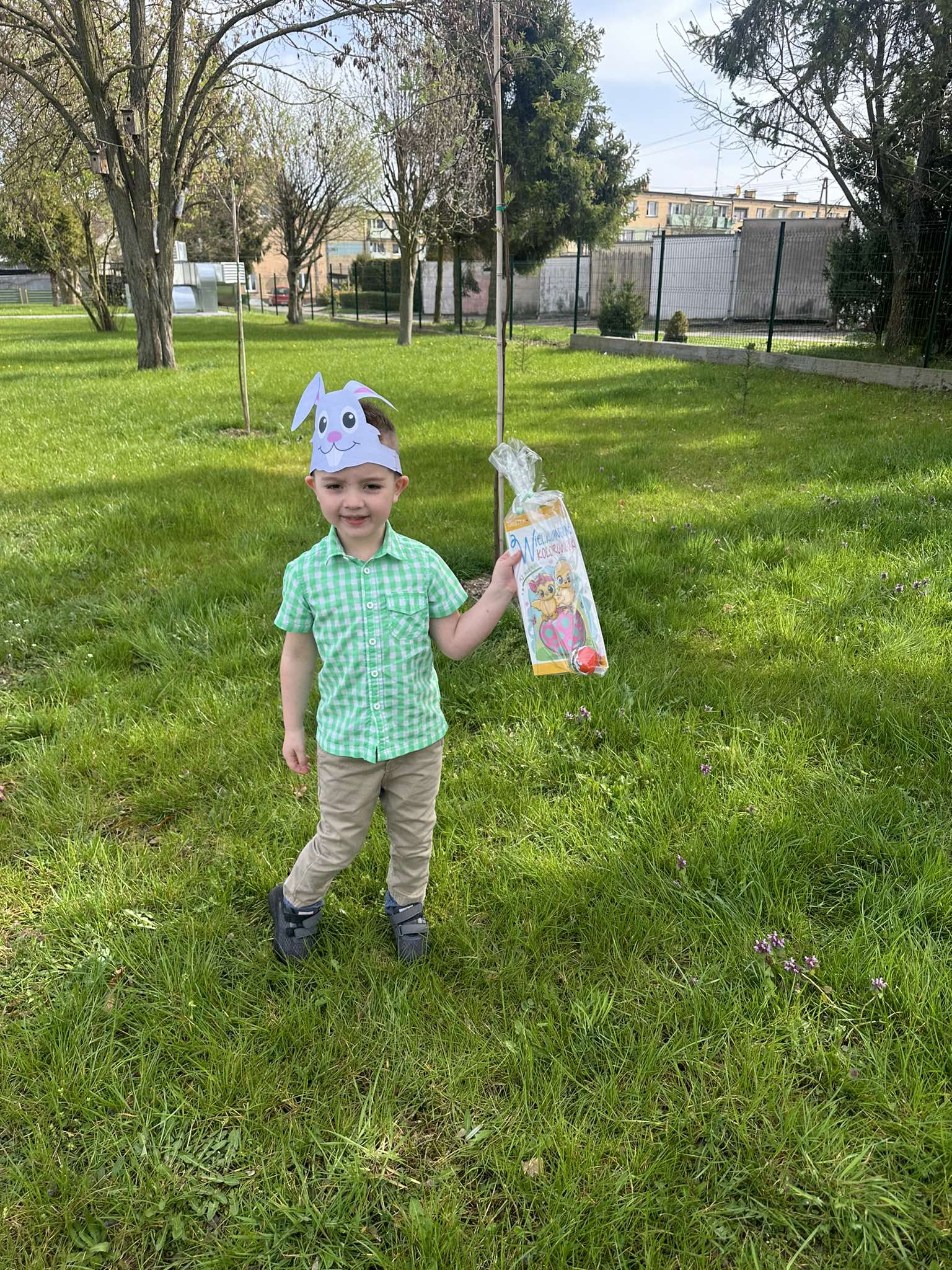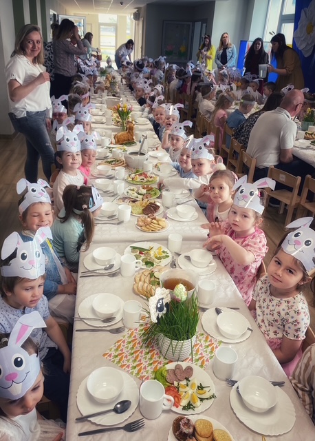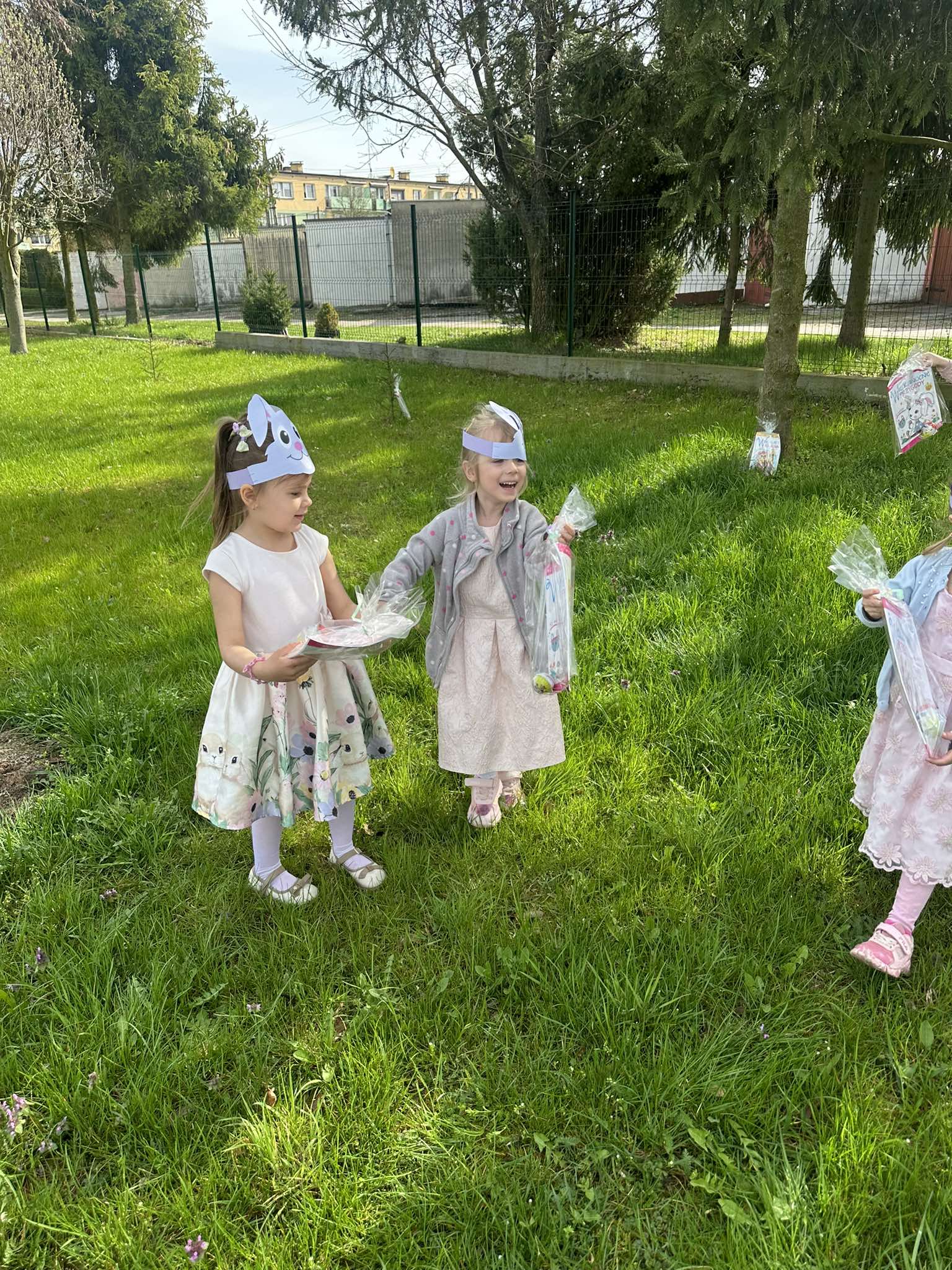 Wielkanoc to święto pełne tradycji i obyczajów. Tradycje wielkanocne sprawiają, że to święto staje się wyjątkowe, a świąteczne dni są pełne radości. Dnia 17 kwietnia w naszym przedszkolu odbył się uroczysty Poranek Wielkanocny. Dzieci wraz z wychowawcami zebrały się na holu, gdzie wspólnie zasiadły do świątecznego śniadanka. Na świątecznym stole nie zabrakło jajka, żurku, szynki i baranka. Pani Dyrektor powitała wszystkich i złożyła serdeczne wielkanocne życzenia. Po śniadaniu pojawił się wyjątkowy gość – Zajączek Wielkanocny. Dzieci z radością przywitały go piosenką. Następnie wszyscy udaliśmy się do ogrodu, gdzie Zajączek przygotował specjalne zadania do rozwiązania oraz pochował prezenty. Dzieci z wielkim zaangażowaniem szukały ukrytych niespodzianek. Na zakończenie pełnego emocji poranka wszyscy zrobili sobie wspólne pamiątkowe zdjęcie z zajączkiem. To był radosny czas pełen uśmiechu, zabawy i świątecznej atmosfery!