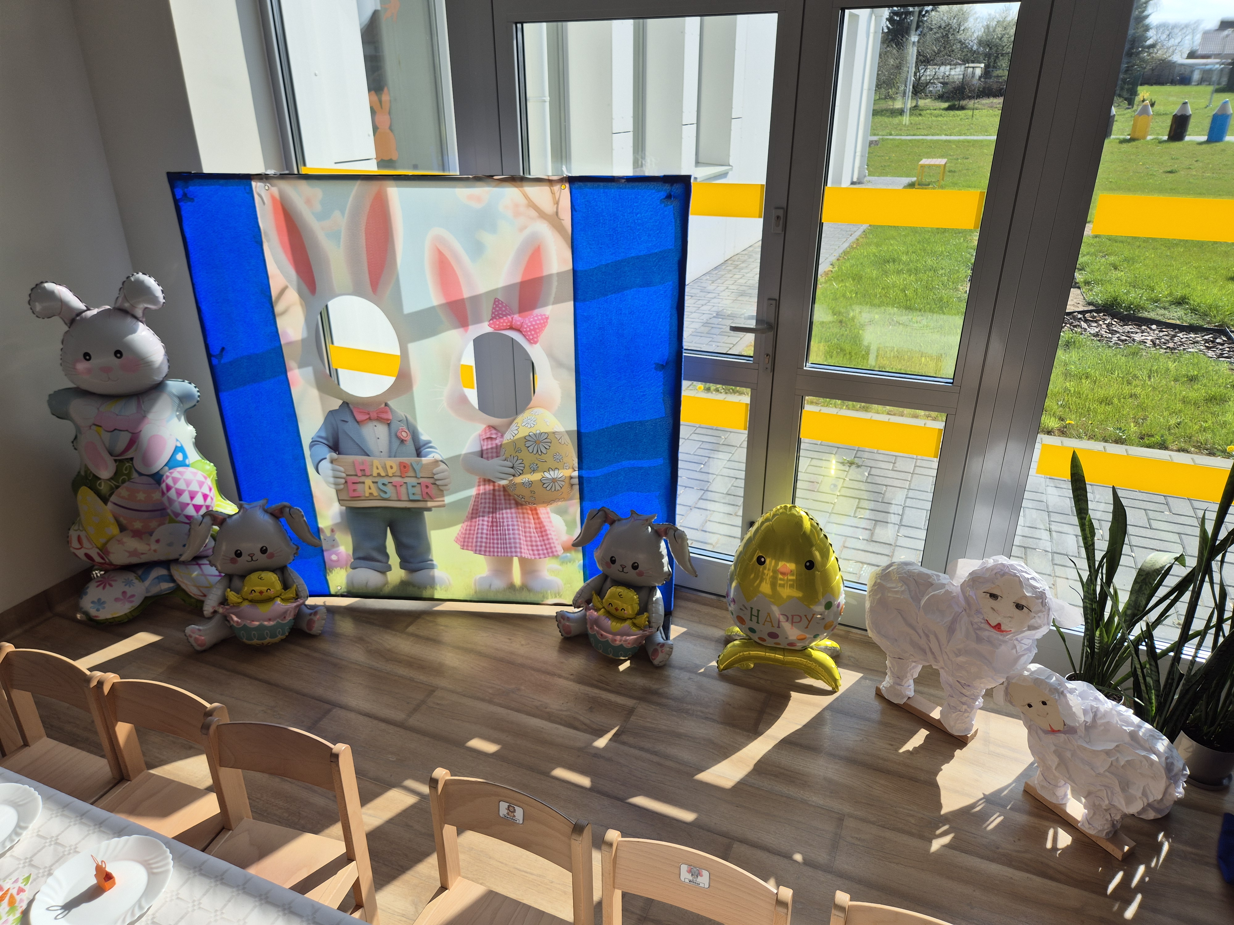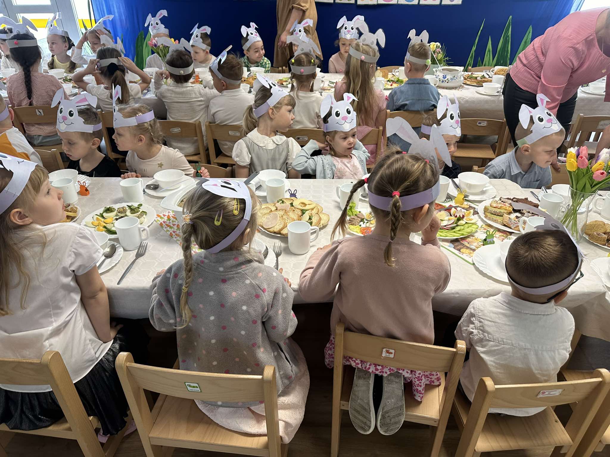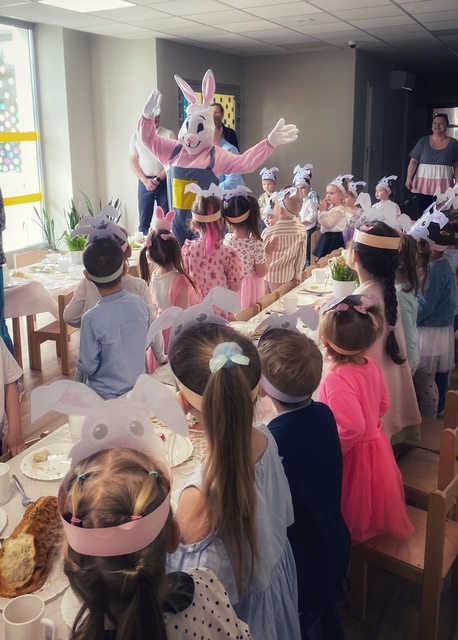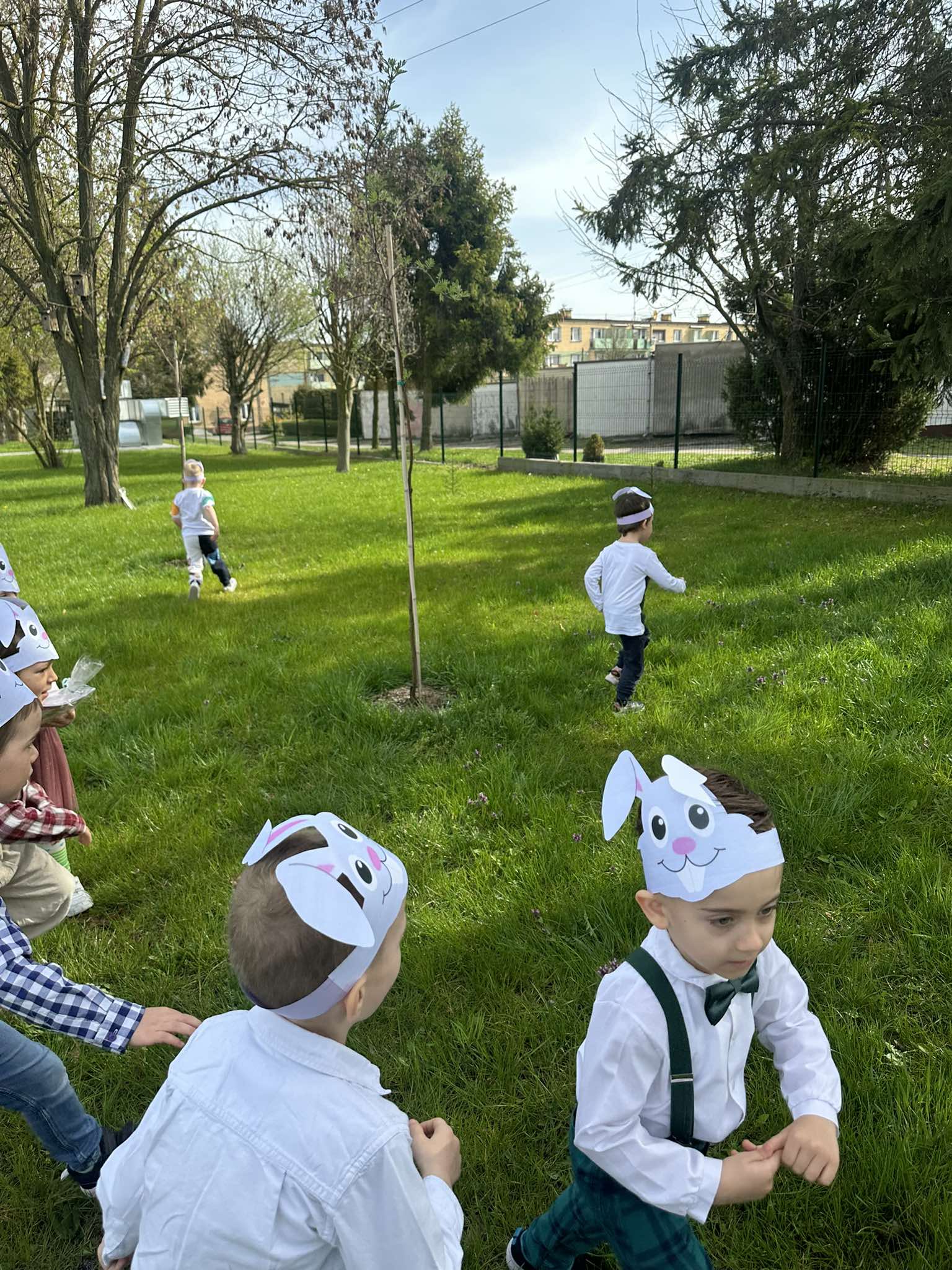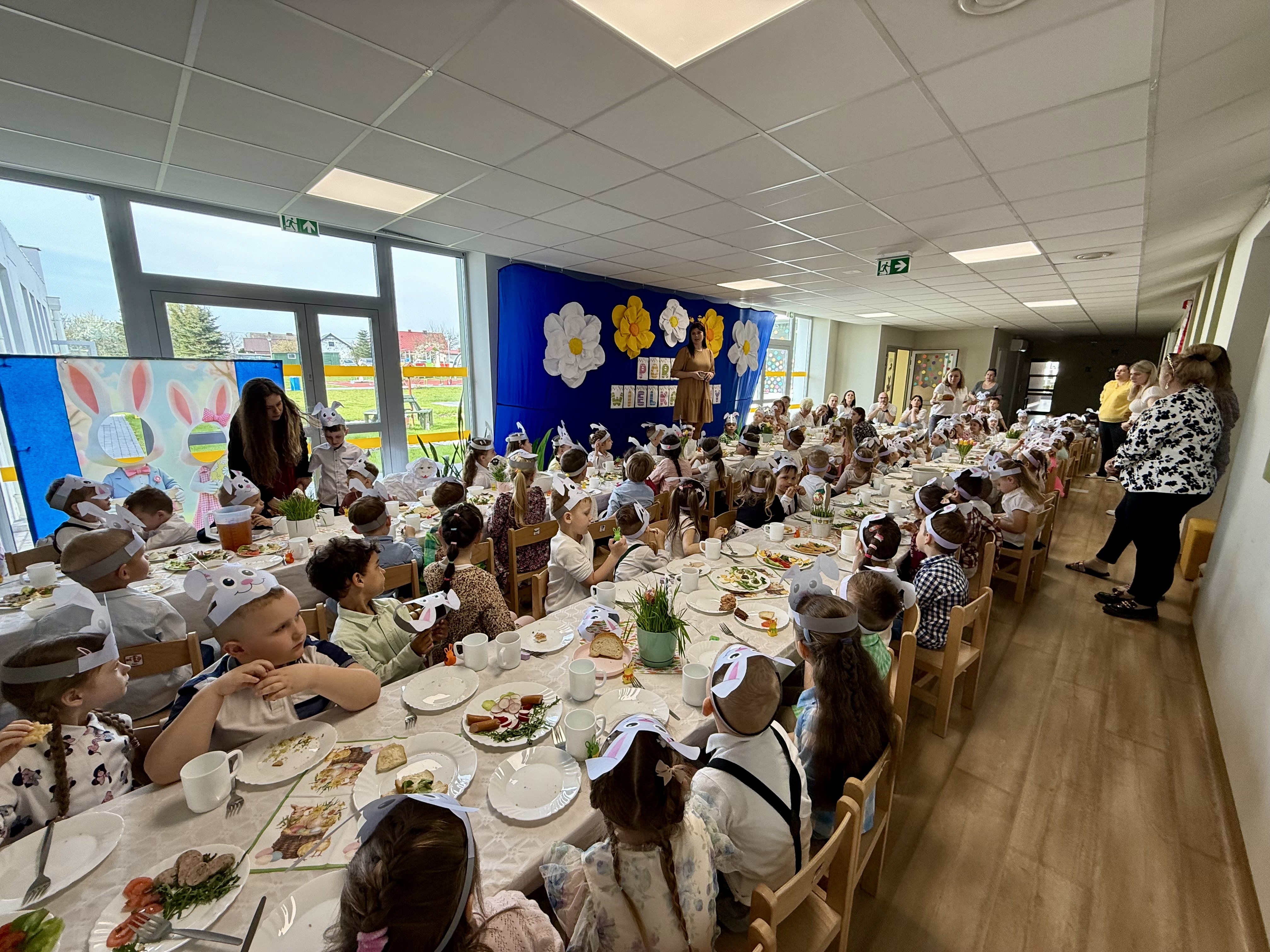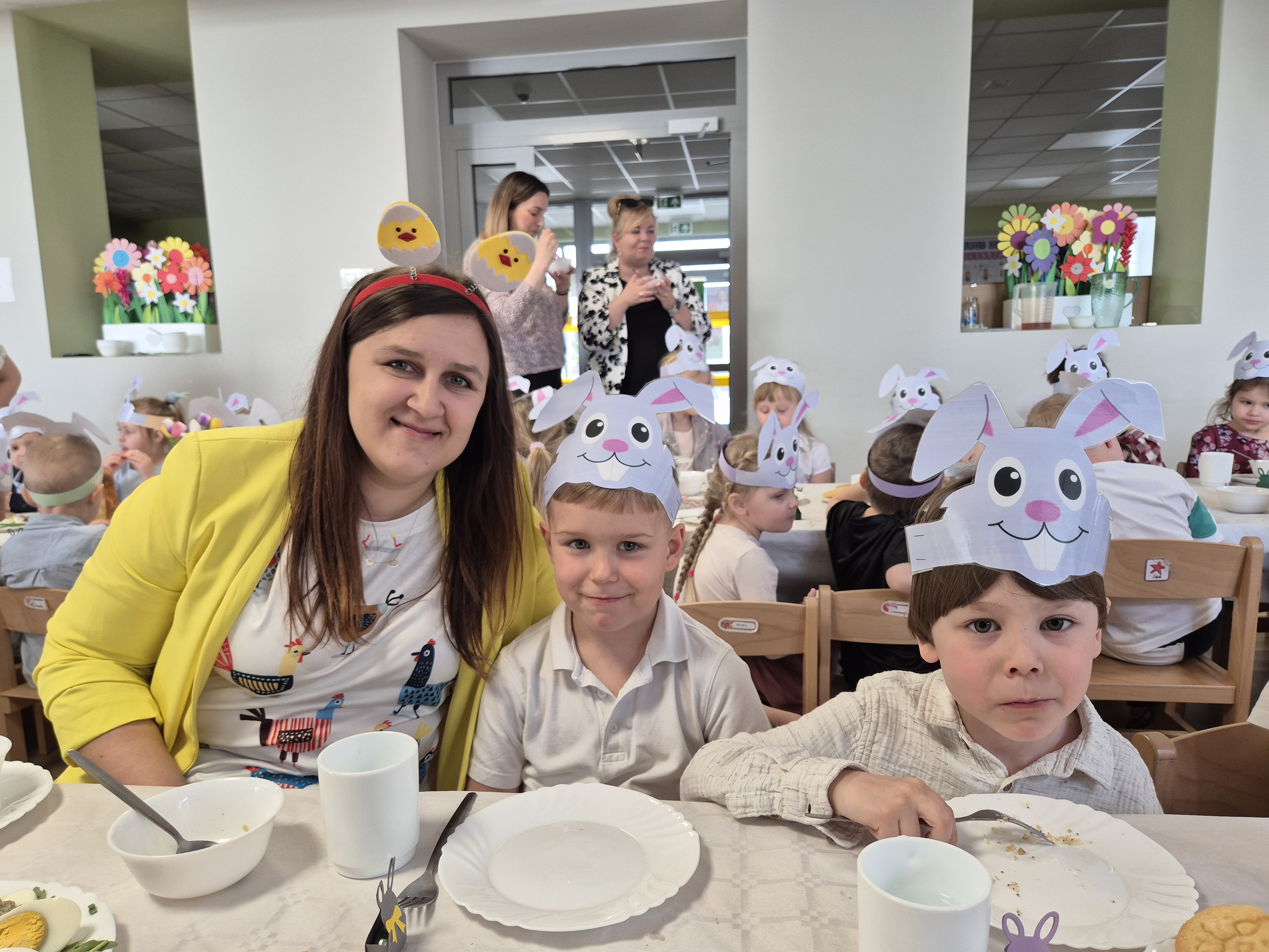 Wielkanoc to święto pełne tradycji i obyczajów. Tradycje wielkanocne sprawiają, że to święto staje się wyjątkowe, a świąteczne dni są pełne radości. Dnia 17 kwietnia w naszym przedszkolu odbył się uroczysty Poranek Wielkanocny. Dzieci wraz z wychowawcami zebrały się na holu, gdzie wspólnie zasiadły do świątecznego śniadanka. Na świątecznym stole nie zabrakło jajka, żurku, szynki i baranka. Pani Dyrektor powitała wszystkich i złożyła serdeczne wielkanocne życzenia. Po śniadaniu pojawił się wyjątkowy gość – Zajączek Wielkanocny. Dzieci z radością przywitały go piosenką. Następnie wszyscy udaliśmy się do ogrodu, gdzie Zajączek przygotował specjalne zadania do rozwiązania oraz pochował prezenty. Dzieci z wielkim zaangażowaniem szukały ukrytych niespodzianek. Na zakończenie pełnego emocji poranka wszyscy zrobili sobie wspólne pamiątkowe zdjęcie z zajączkiem. To był radosny czas pełen uśmiechu, zabawy i świątecznej atmosfery!