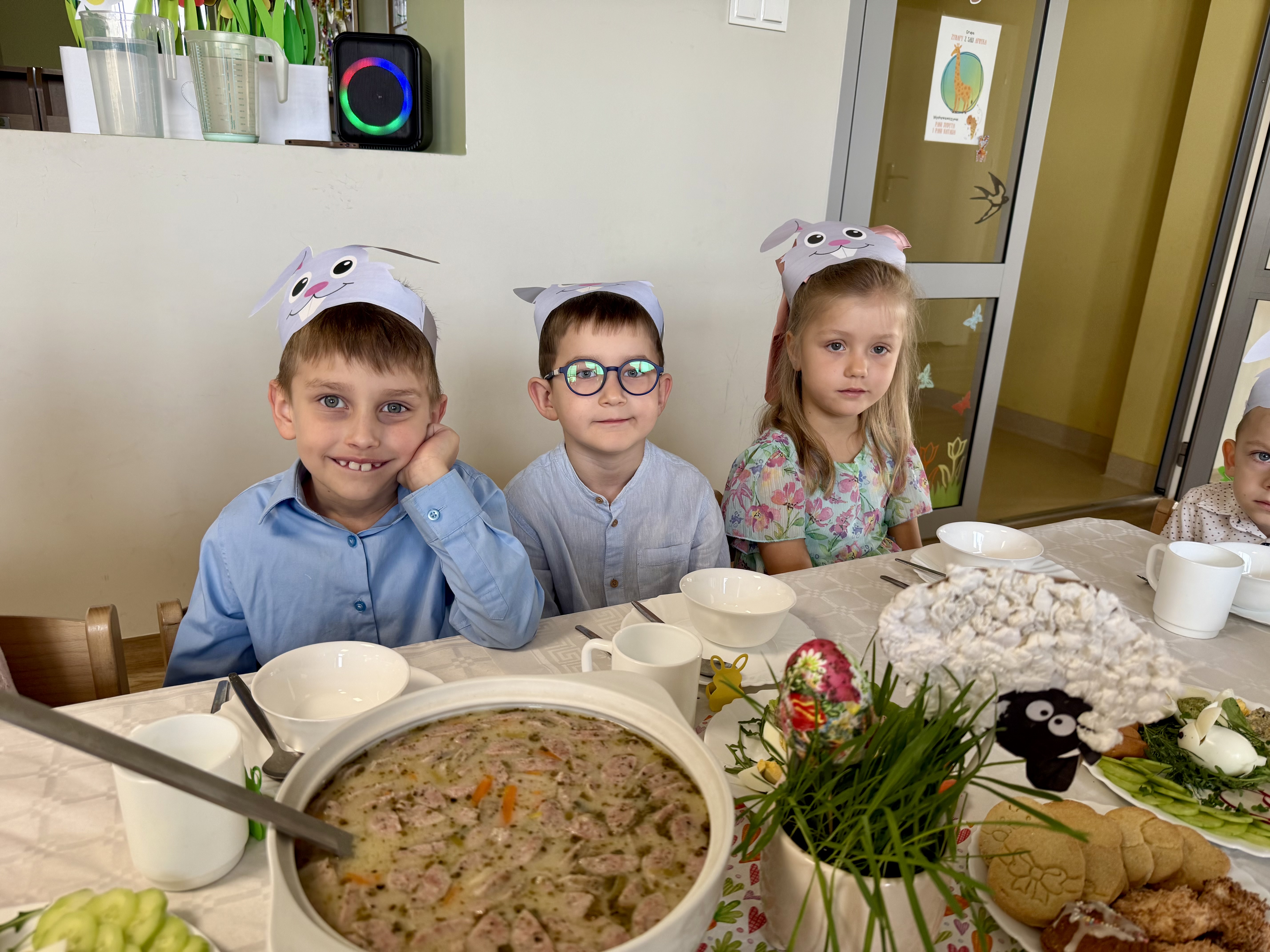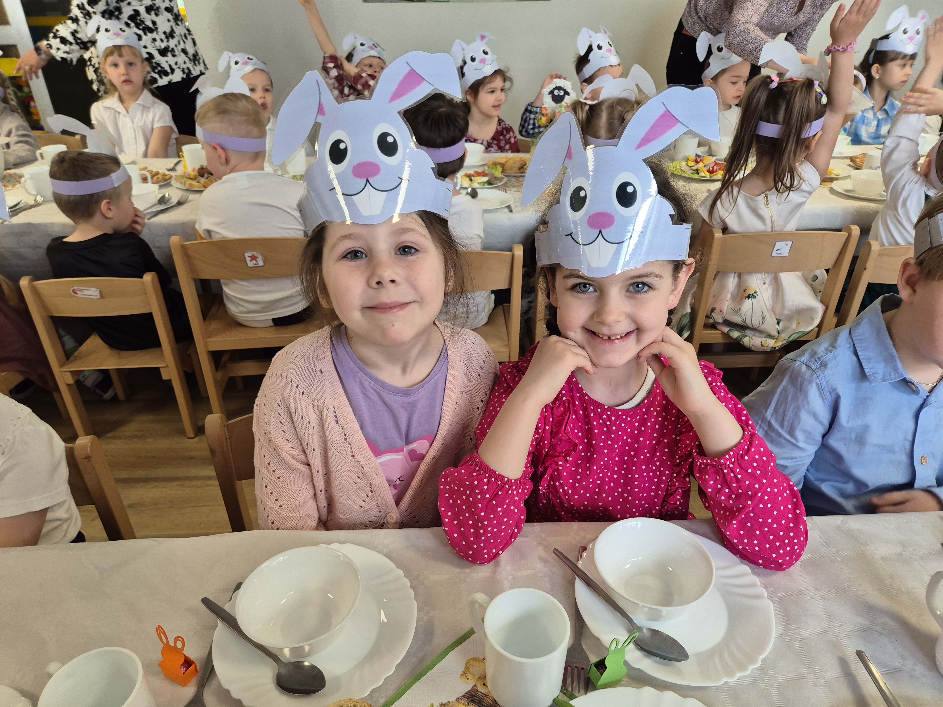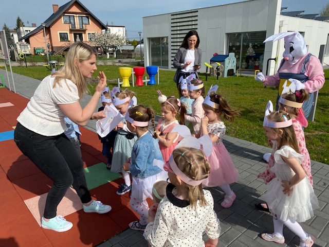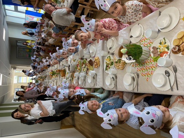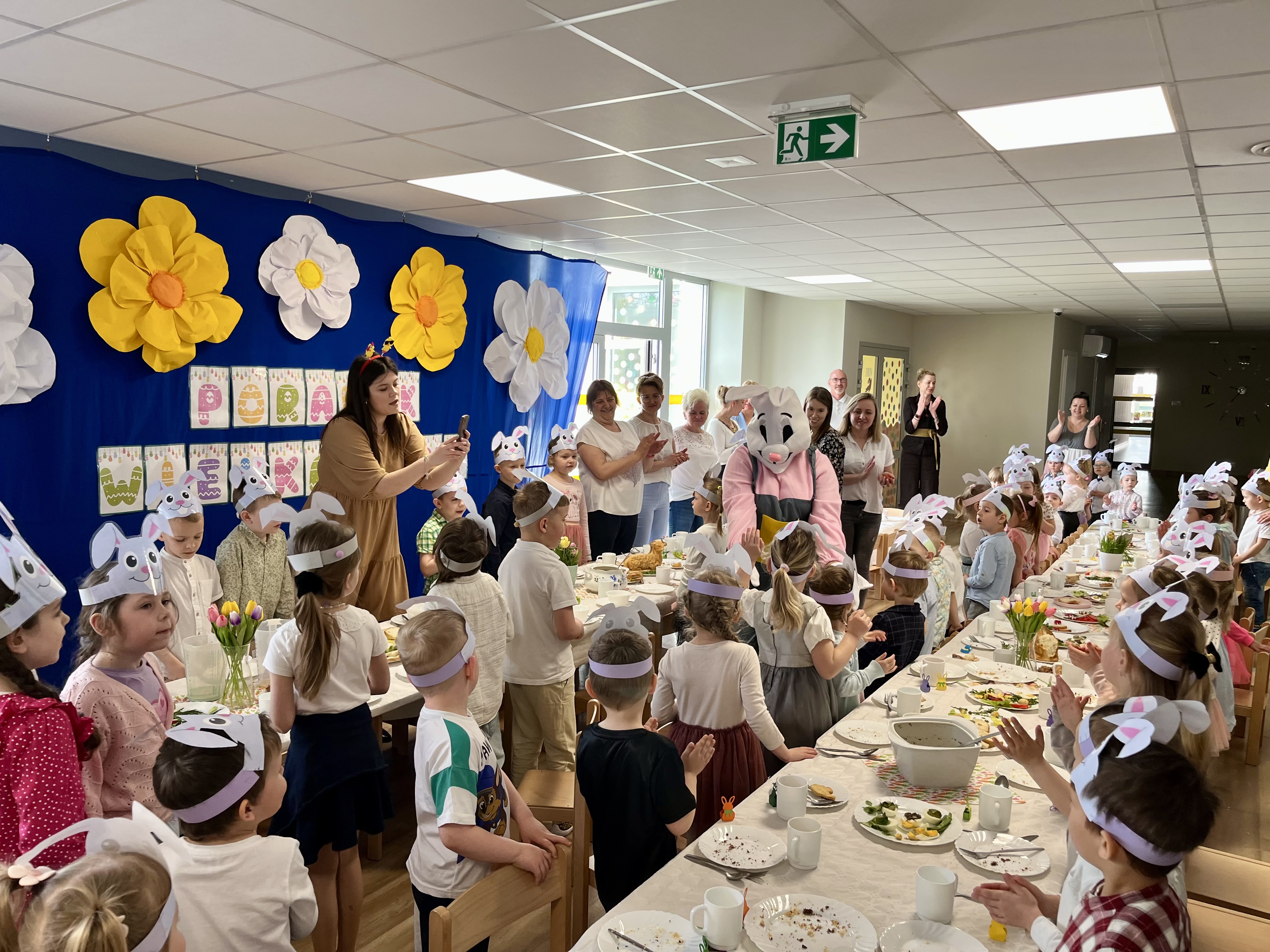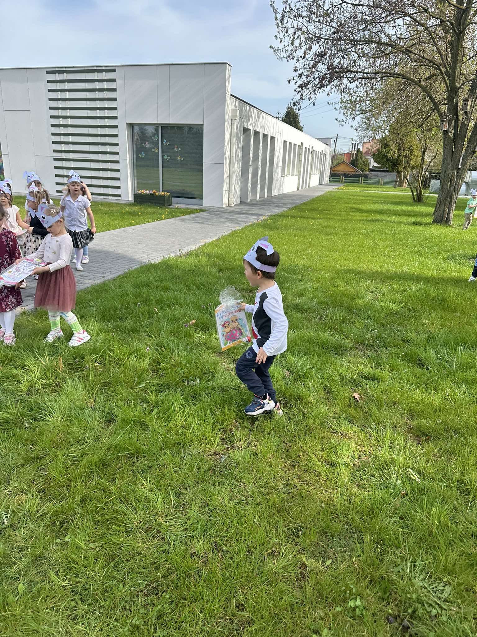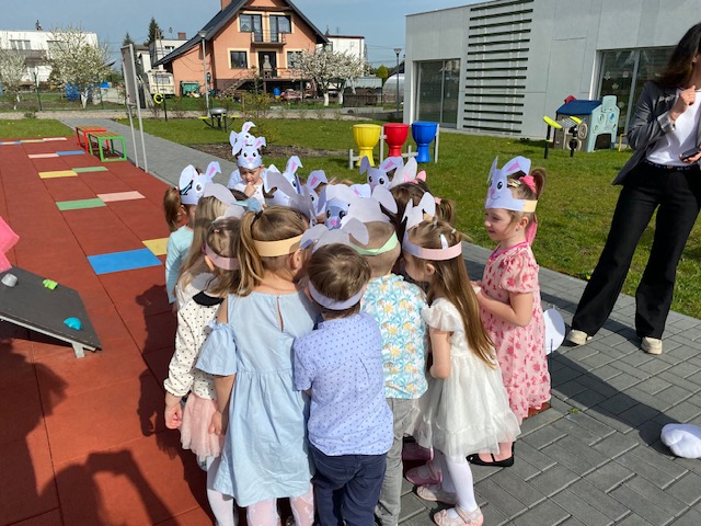 Wielkanoc to święto pełne tradycji i obyczajów. Tradycje wielkanocne sprawiają, że to święto staje się wyjątkowe, a świąteczne dni są pełne radości. Dnia 17 kwietnia w naszym przedszkolu odbył się uroczysty Poranek Wielkanocny. Dzieci wraz z wychowawcami zebrały się na holu, gdzie wspólnie zasiadły do świątecznego śniadanka. Na świątecznym stole nie zabrakło jajka, żurku, szynki i baranka. Pani Dyrektor powitała wszystkich i złożyła serdeczne wielkanocne życzenia. Po śniadaniu pojawił się wyjątkowy gość – Zajączek Wielkanocny. Dzieci z radością przywitały go piosenką. Następnie wszyscy udaliśmy się do ogrodu, gdzie Zajączek przygotował specjalne zadania do rozwiązania oraz pochował prezenty. Dzieci z wielkim zaangażowaniem szukały ukrytych niespodzianek. Na zakończenie pełnego emocji poranka wszyscy zrobili sobie wspólne pamiątkowe zdjęcie z zajączkiem. To był radosny czas pełen uśmiechu, zabawy i świątecznej atmosfery!