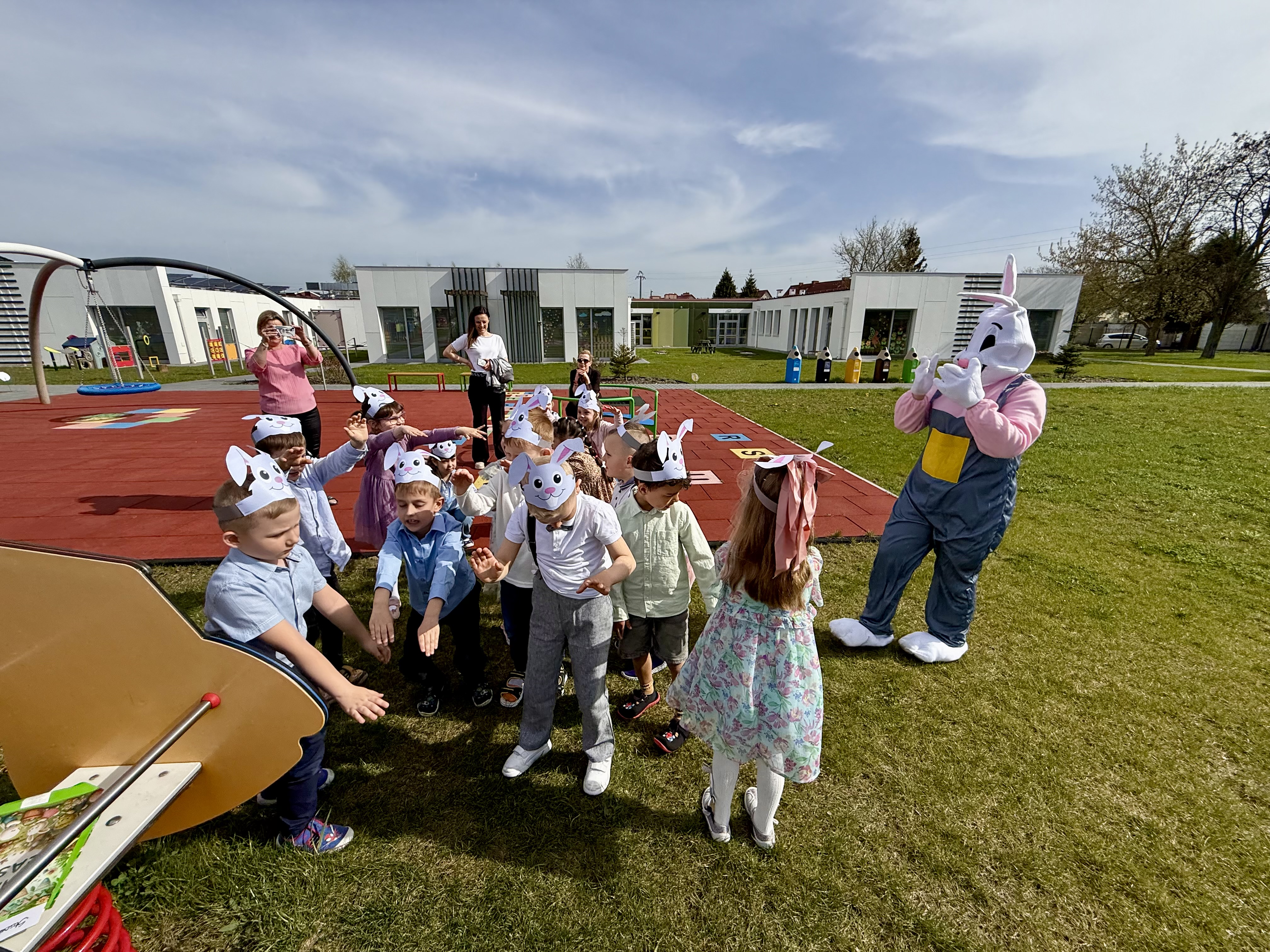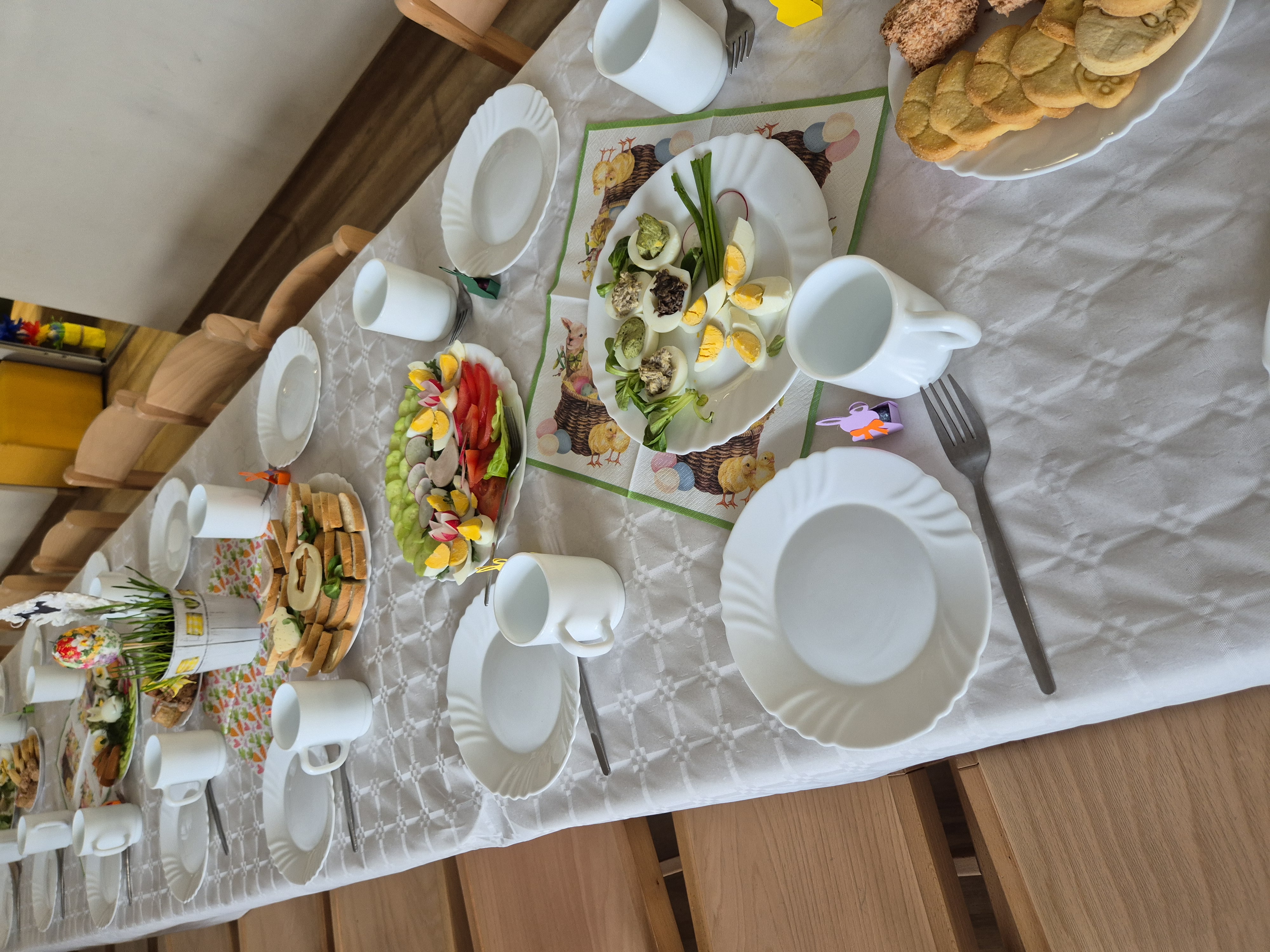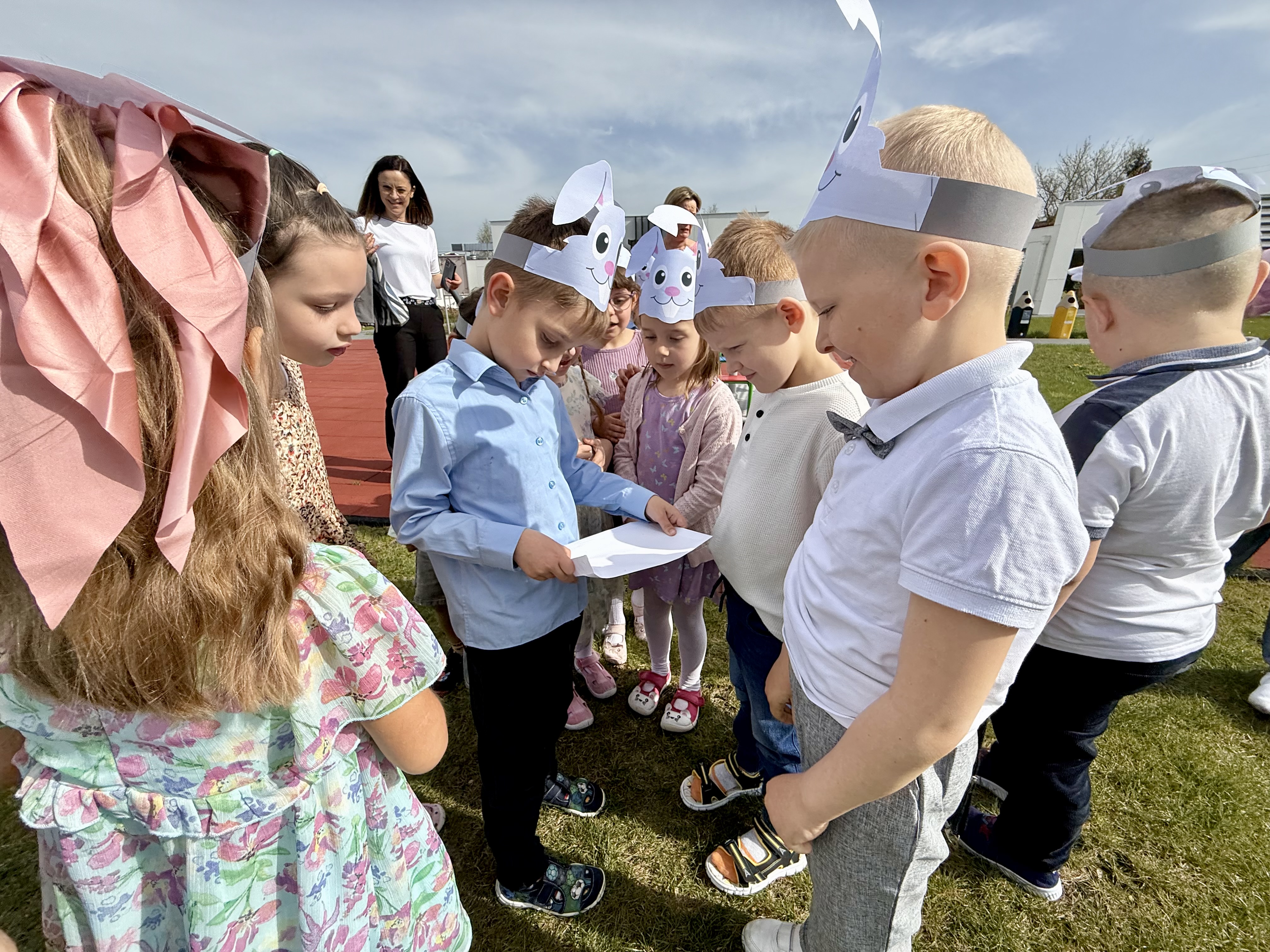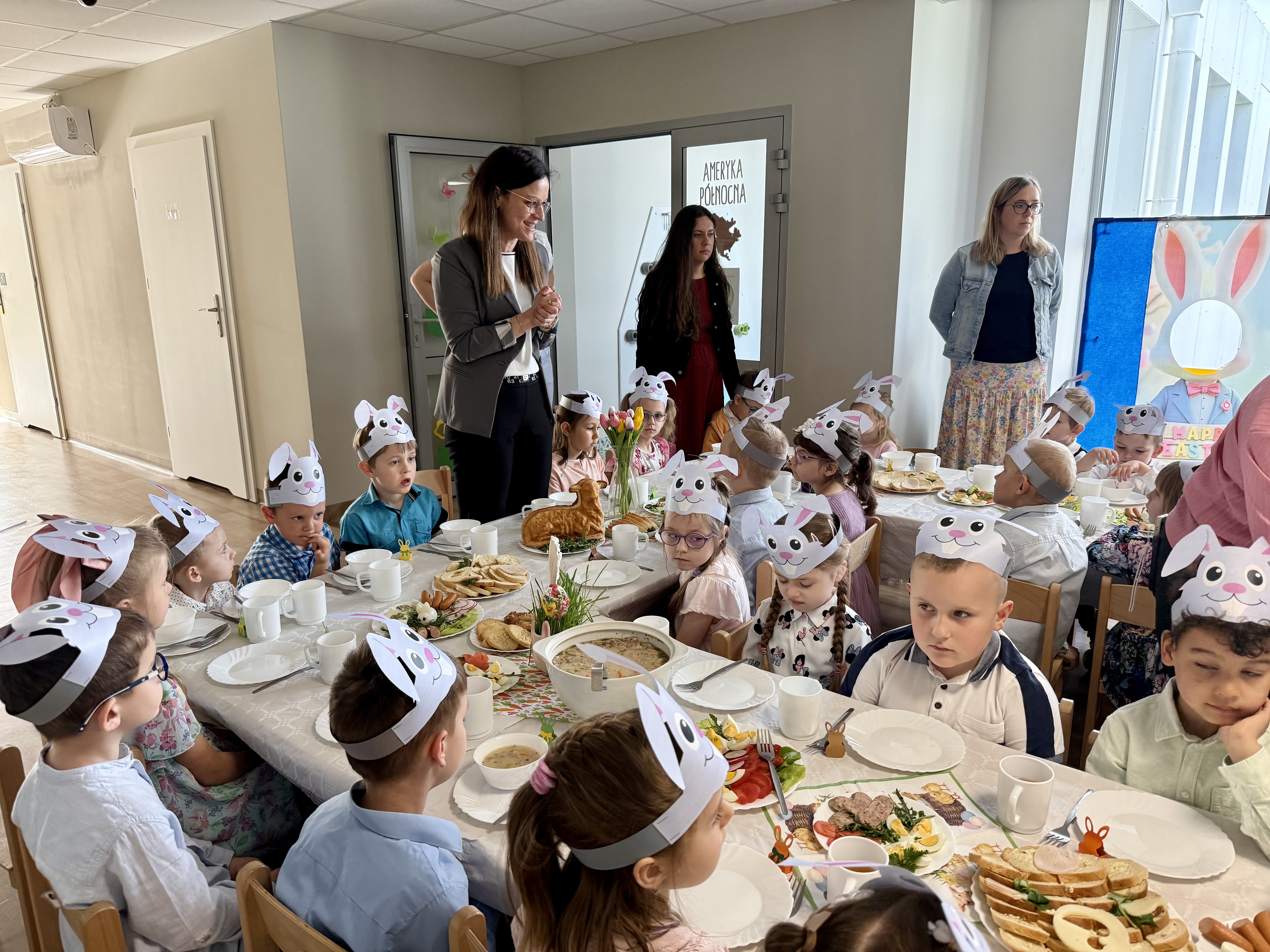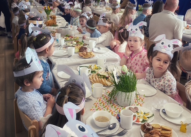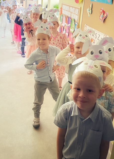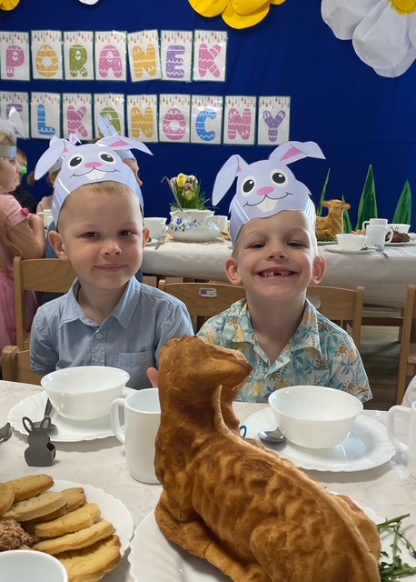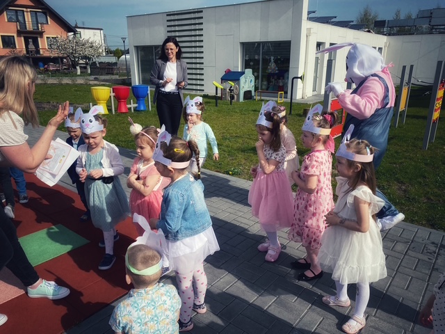 Wielkanoc to święto pełne tradycji i obyczajów. Tradycje wielkanocne sprawiają, że to święto staje się wyjątkowe, a świąteczne dni są pełne radości. Dnia 17 kwietnia w naszym przedszkolu odbył się uroczysty Poranek Wielkanocny. Dzieci wraz z wychowawcami zebrały się na holu, gdzie wspólnie zasiadły do świątecznego śniadanka. Na świątecznym stole nie zabrakło jajka, żurku, szynki i baranka. Pani Dyrektor powitała wszystkich i złożyła serdeczne wielkanocne życzenia. Po śniadaniu pojawił się wyjątkowy gość – Zajączek Wielkanocny. Dzieci z radością przywitały go piosenką. Następnie wszyscy udaliśmy się do ogrodu, gdzie Zajączek przygotował specjalne zadania do rozwiązania oraz pochował prezenty. Dzieci z wielkim zaangażowaniem szukały ukrytych niespodzianek. Na zakończenie pełnego emocji poranka wszyscy zrobili sobie wspólne pamiątkowe zdjęcie z zajączkiem. To był radosny czas pełen uśmiechu, zabawy i świątecznej atmosfery!