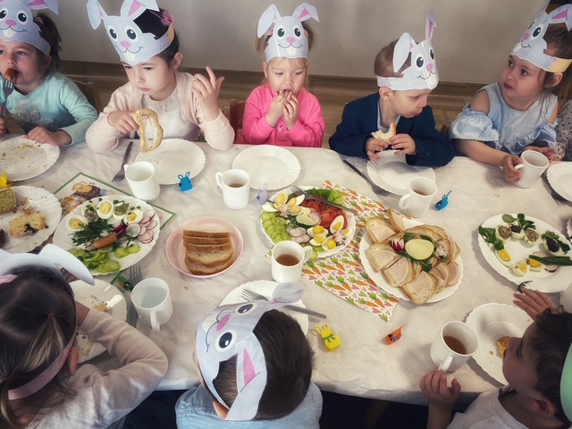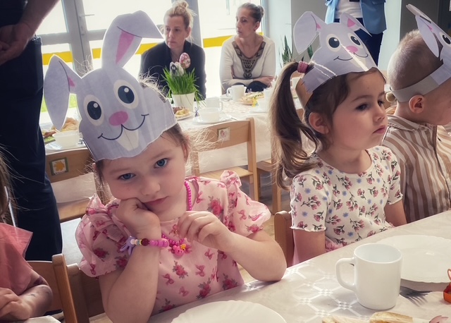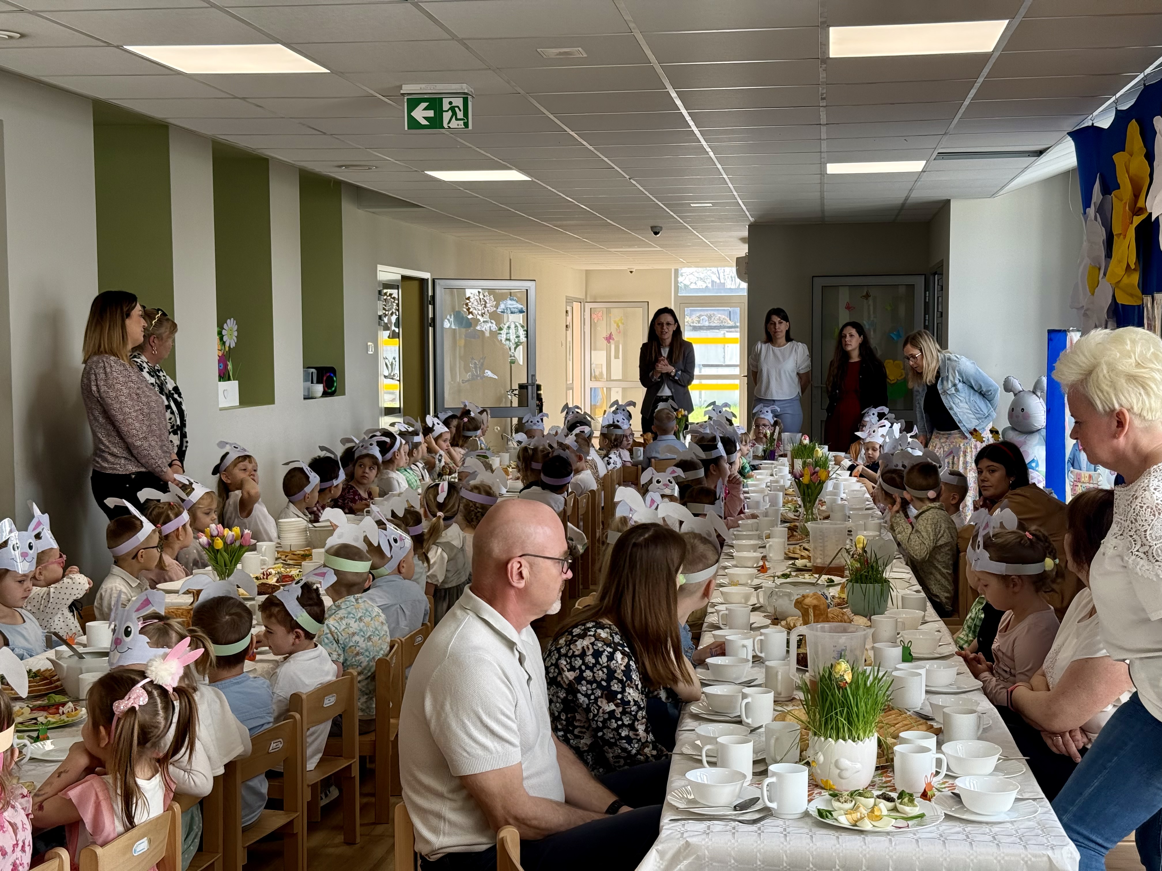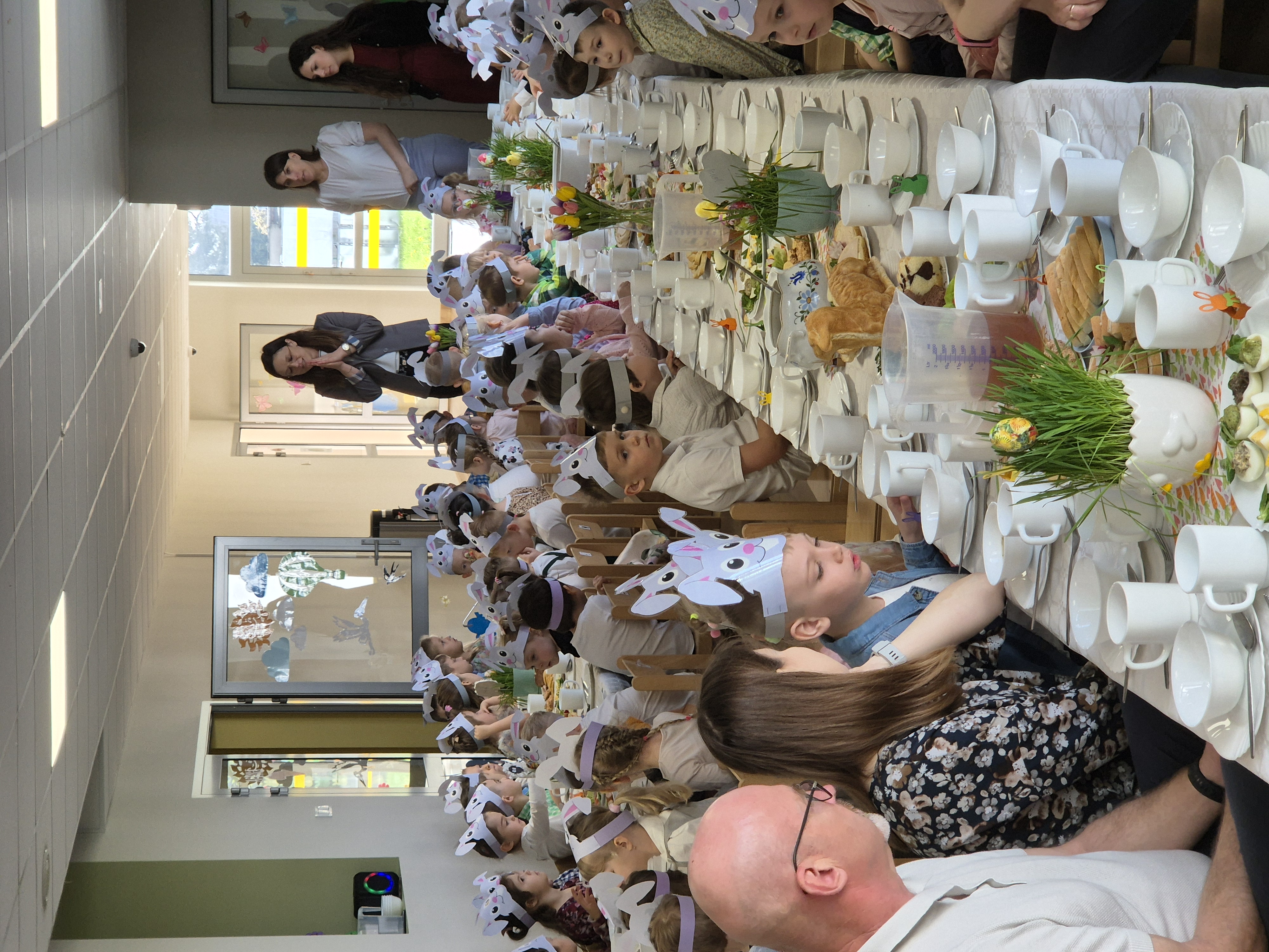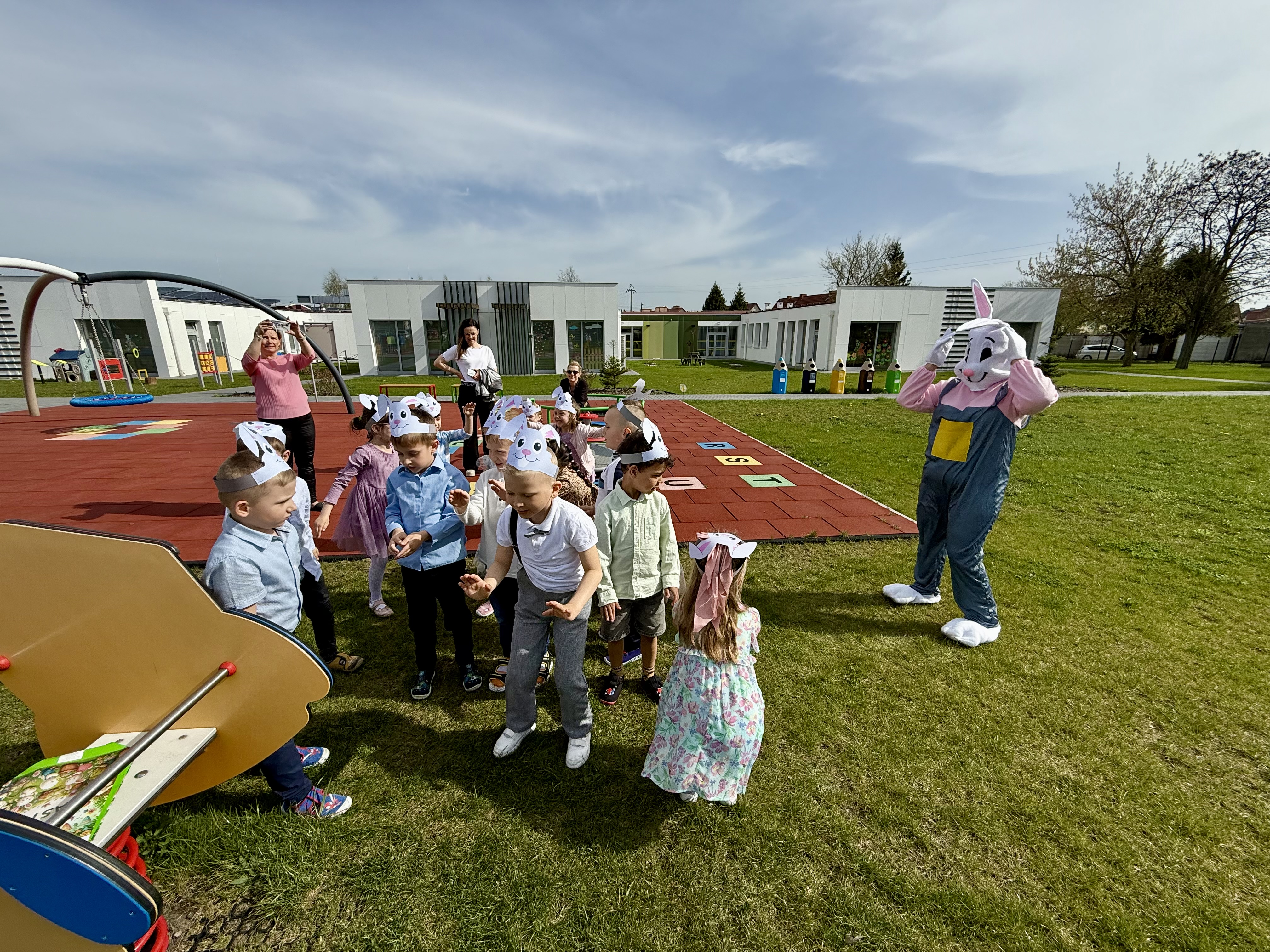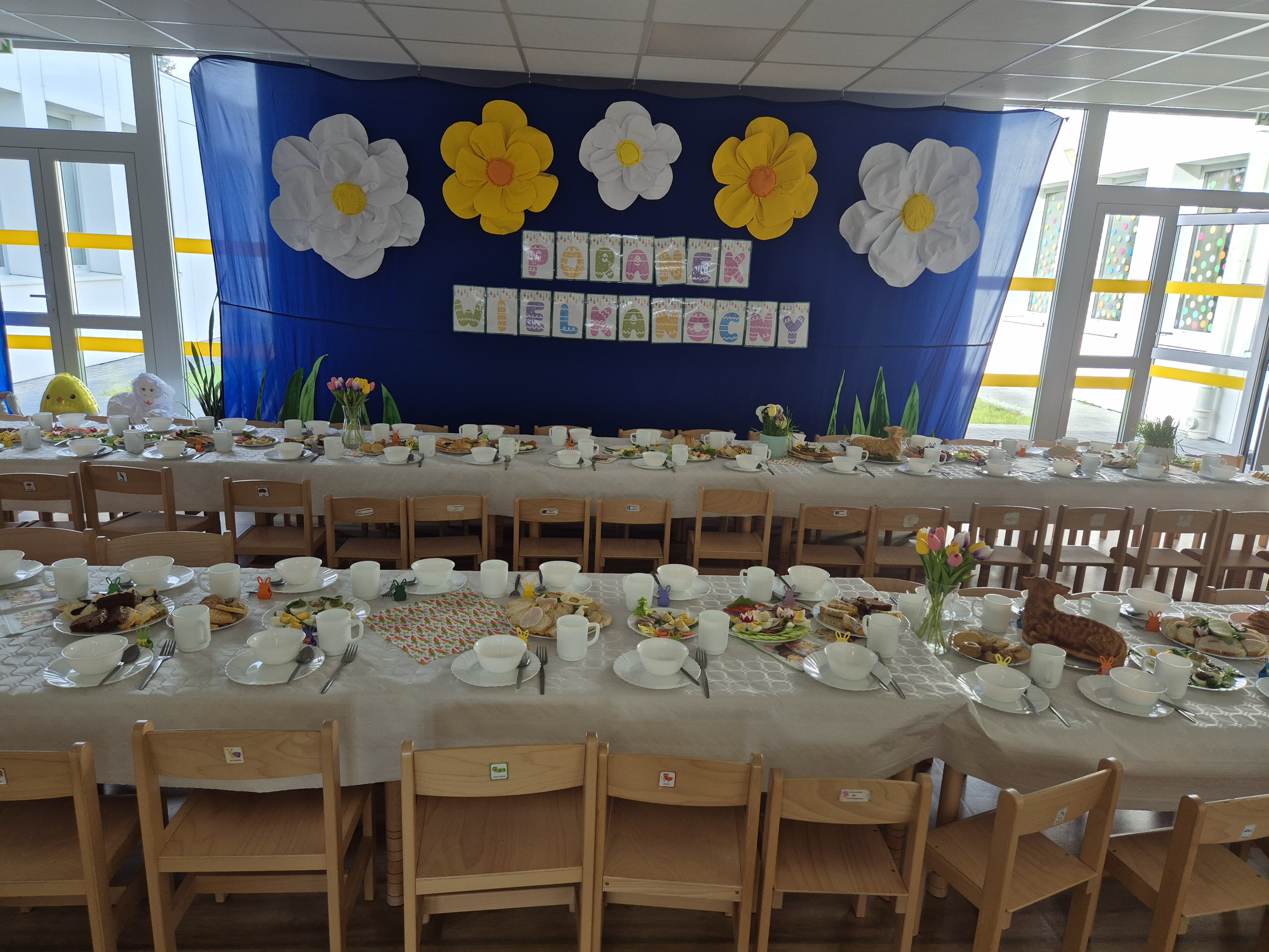 Wielkanoc to święto pełne tradycji i obyczajów. Tradycje wielkanocne sprawiają, że to święto staje się wyjątkowe, a świąteczne dni są pełne radości. Dnia 17 kwietnia w naszym przedszkolu odbył się uroczysty Poranek Wielkanocny. Dzieci wraz z wychowawcami zebrały się na holu, gdzie wspólnie zasiadły do świątecznego śniadanka. Na świątecznym stole nie zabrakło jajka, żurku, szynki i baranka. Pani Dyrektor powitała wszystkich i złożyła serdeczne wielkanocne życzenia. Po śniadaniu pojawił się wyjątkowy gość – Zajączek Wielkanocny. Dzieci z radością przywitały go piosenką. Następnie wszyscy udaliśmy się do ogrodu, gdzie Zajączek przygotował specjalne zadania do rozwiązania oraz pochował prezenty. Dzieci z wielkim zaangażowaniem szukały ukrytych niespodzianek. Na zakończenie pełnego emocji poranka wszyscy zrobili sobie wspólne pamiątkowe zdjęcie z zajączkiem. To był radosny czas pełen uśmiechu, zabawy i świątecznej atmosfery!