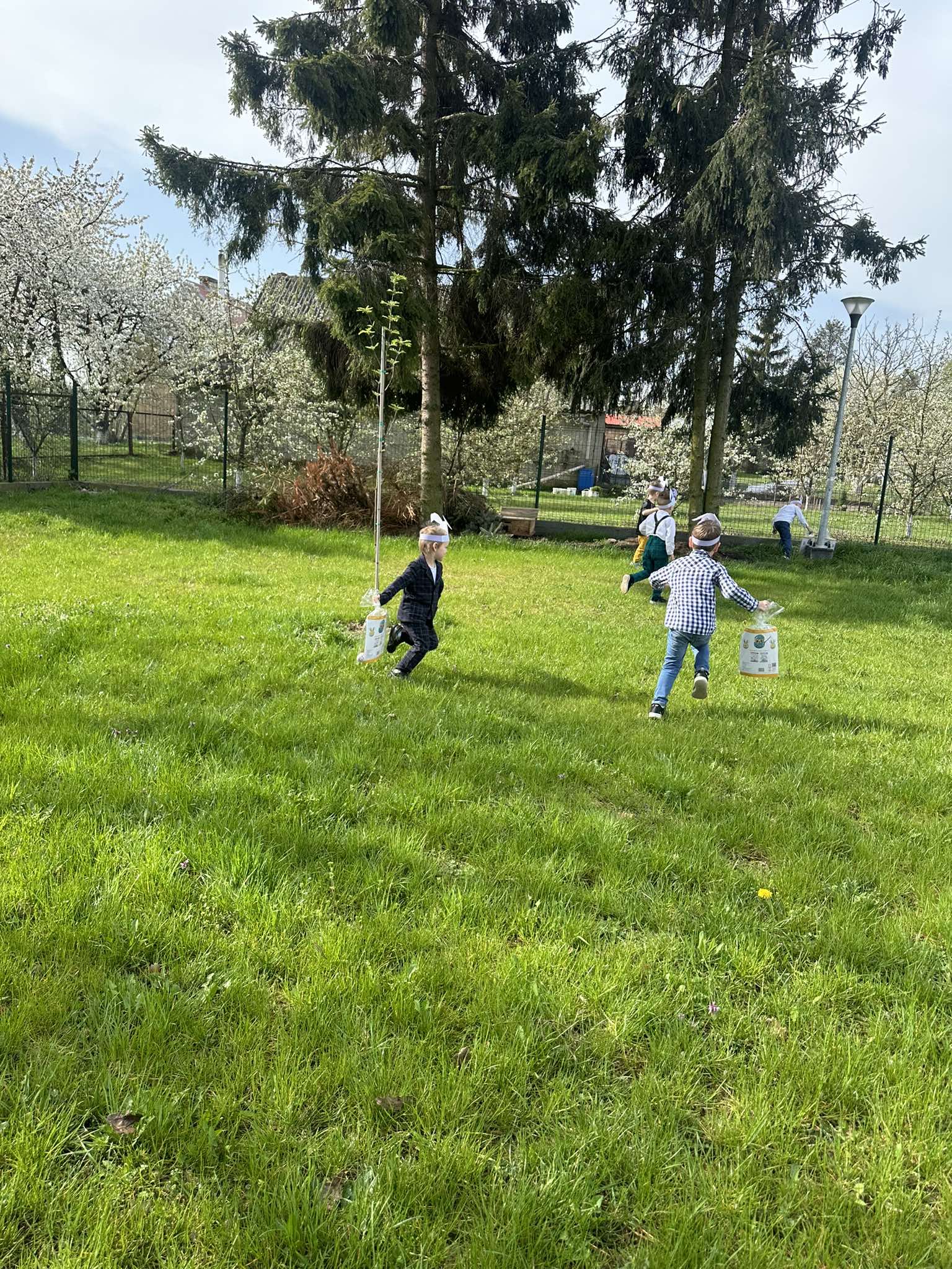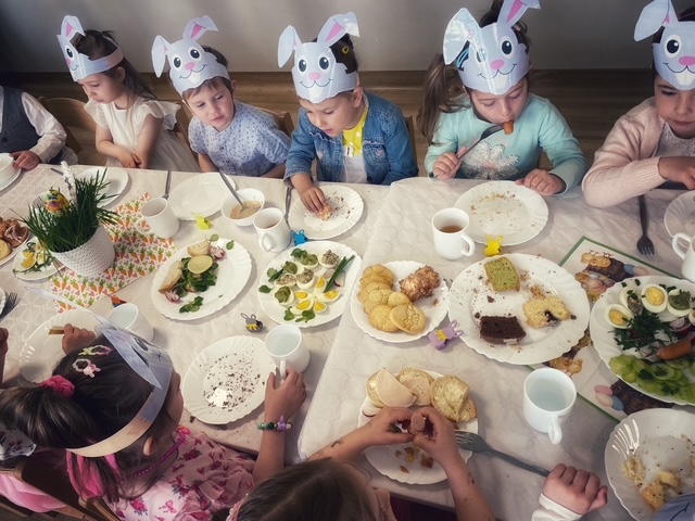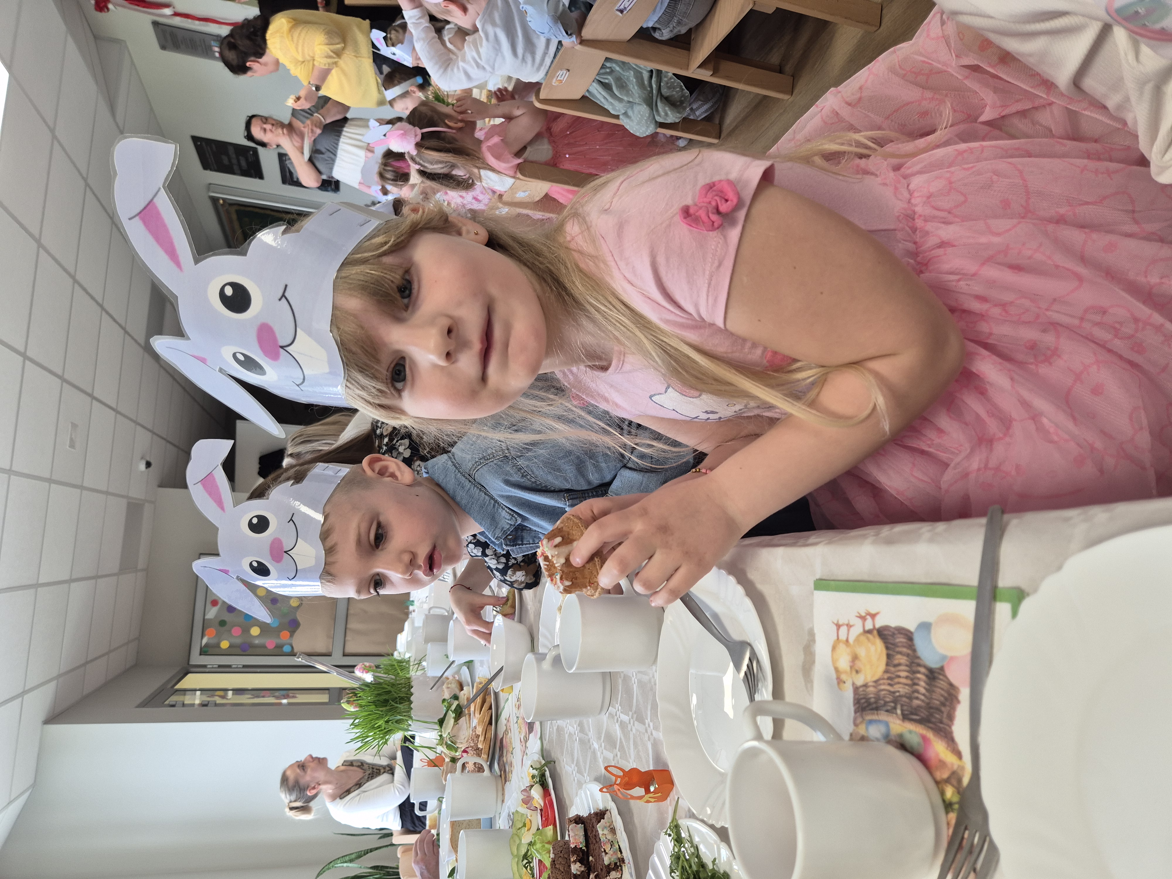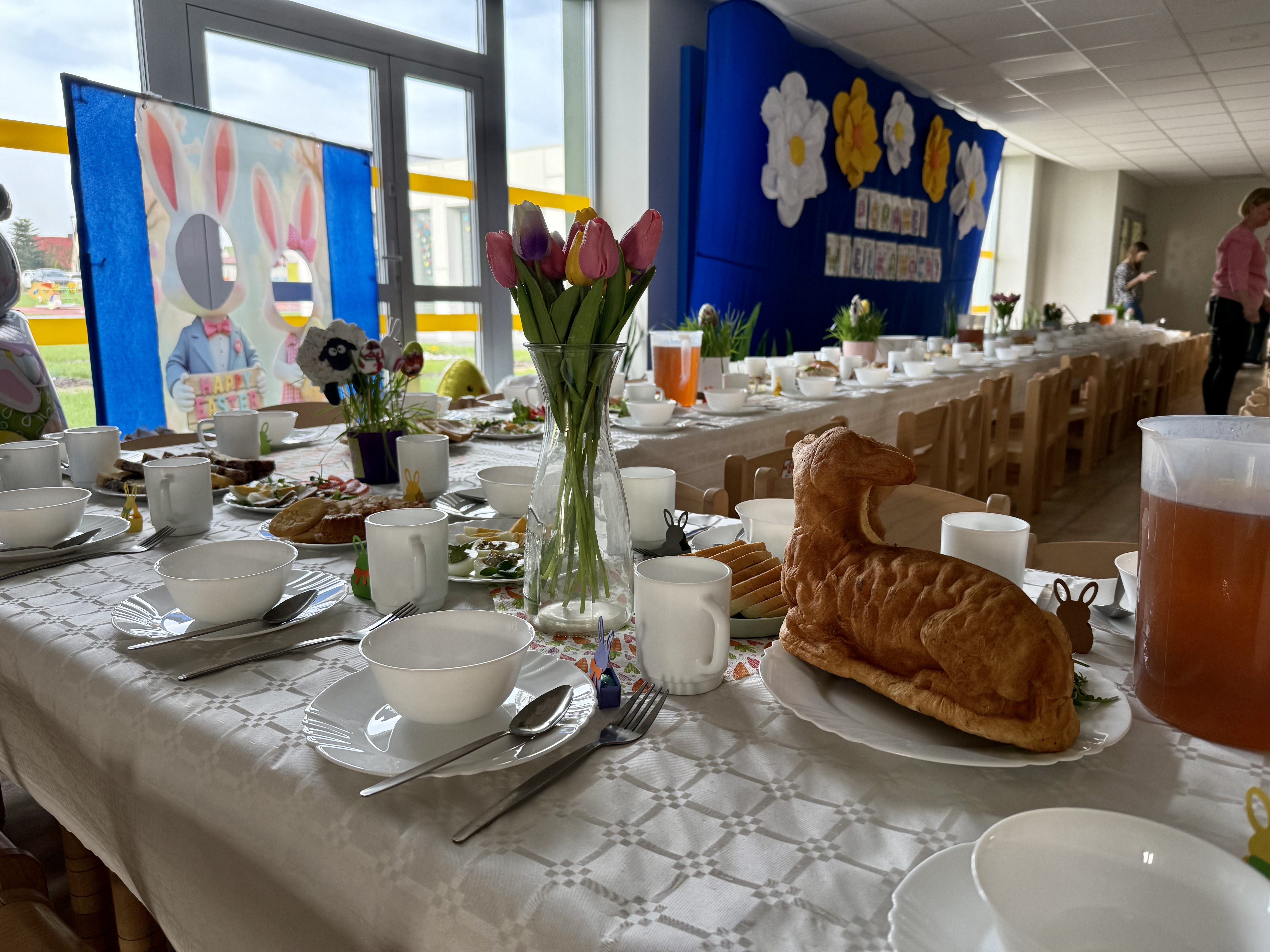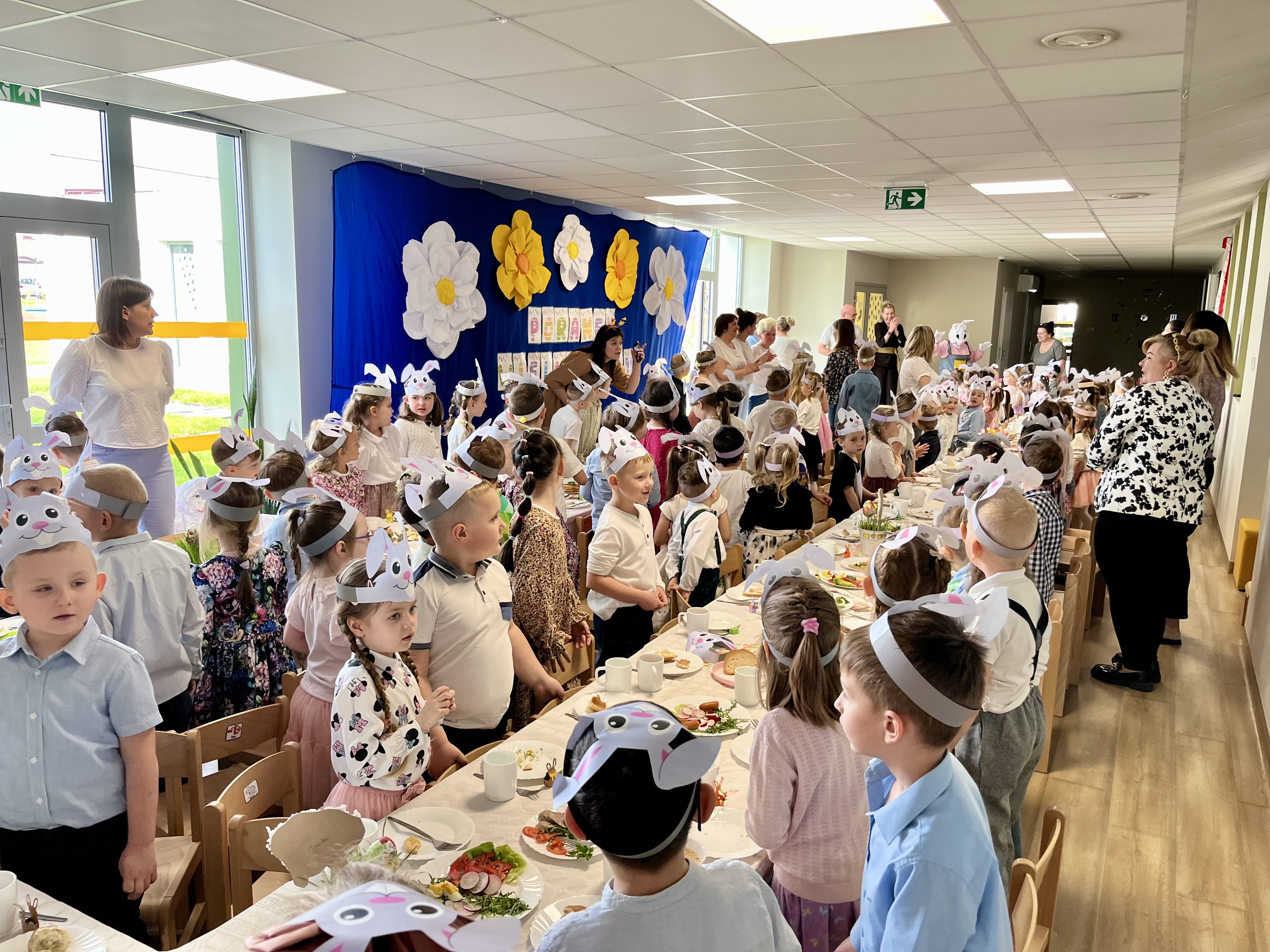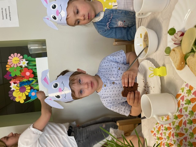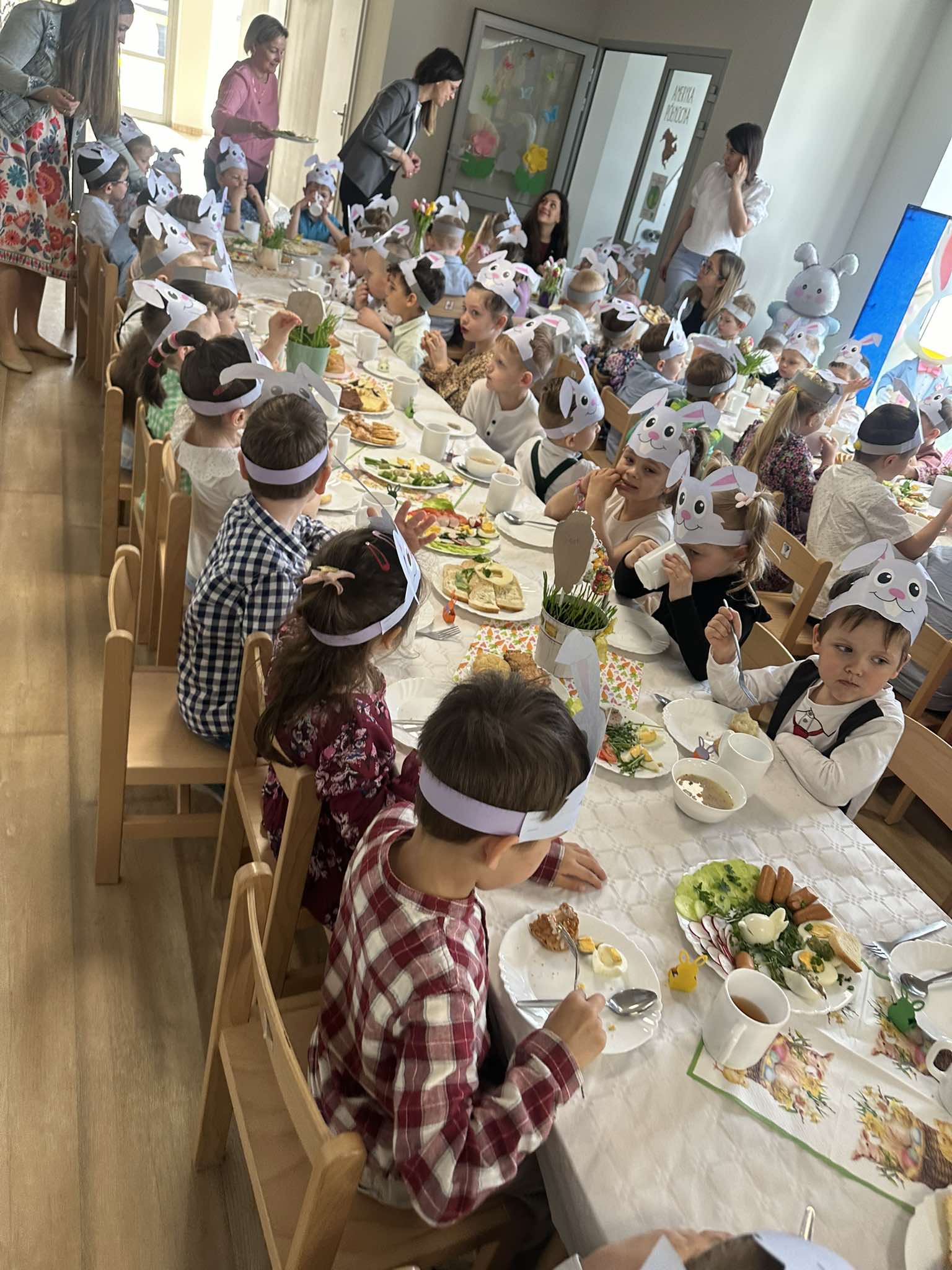 Wielkanoc to święto pełne tradycji i obyczajów. Tradycje wielkanocne sprawiają, że to święto staje się wyjątkowe, a świąteczne dni są pełne radości. Dnia 17 kwietnia w naszym przedszkolu odbył się uroczysty Poranek Wielkanocny. Dzieci wraz z wychowawcami zebrały się na holu, gdzie wspólnie zasiadły do świątecznego śniadanka. Na świątecznym stole nie zabrakło jajka, żurku, szynki i baranka. Pani Dyrektor powitała wszystkich i złożyła serdeczne wielkanocne życzenia. Po śniadaniu pojawił się wyjątkowy gość – Zajączek Wielkanocny. Dzieci z radością przywitały go piosenką. Następnie wszyscy udaliśmy się do ogrodu, gdzie Zajączek przygotował specjalne zadania do rozwiązania oraz pochował prezenty. Dzieci z wielkim zaangażowaniem szukały ukrytych niespodzianek. Na zakończenie pełnego emocji poranka wszyscy zrobili sobie wspólne pamiątkowe zdjęcie z zajączkiem. To był radosny czas pełen uśmiechu, zabawy i świątecznej atmosfery!