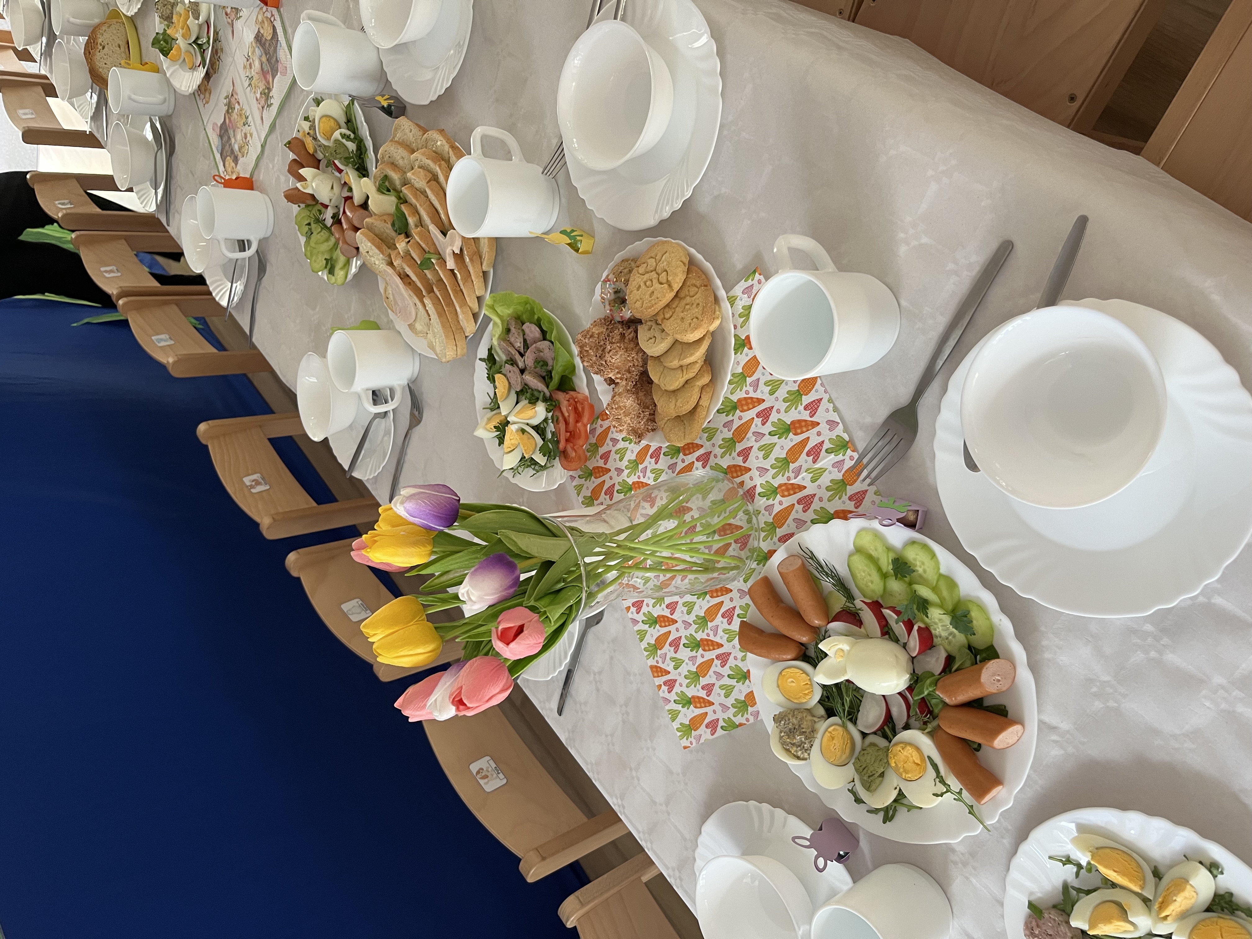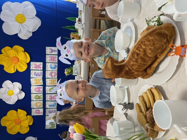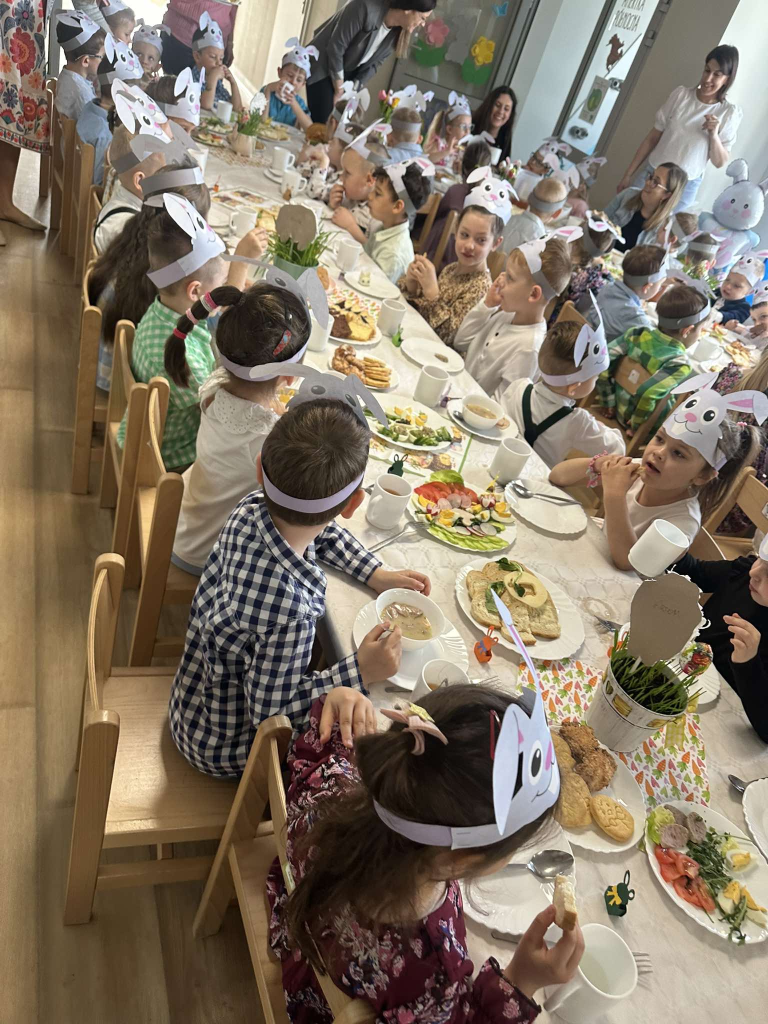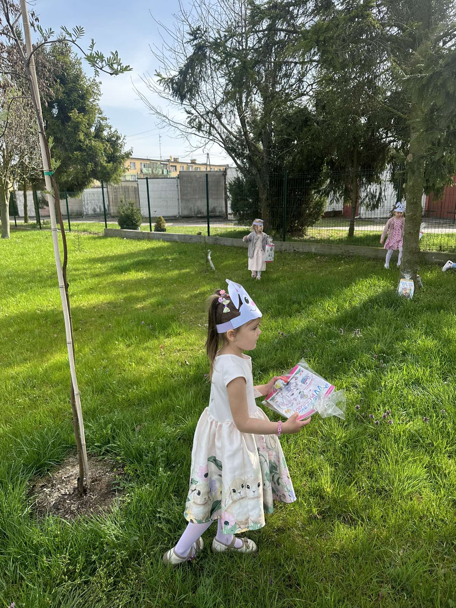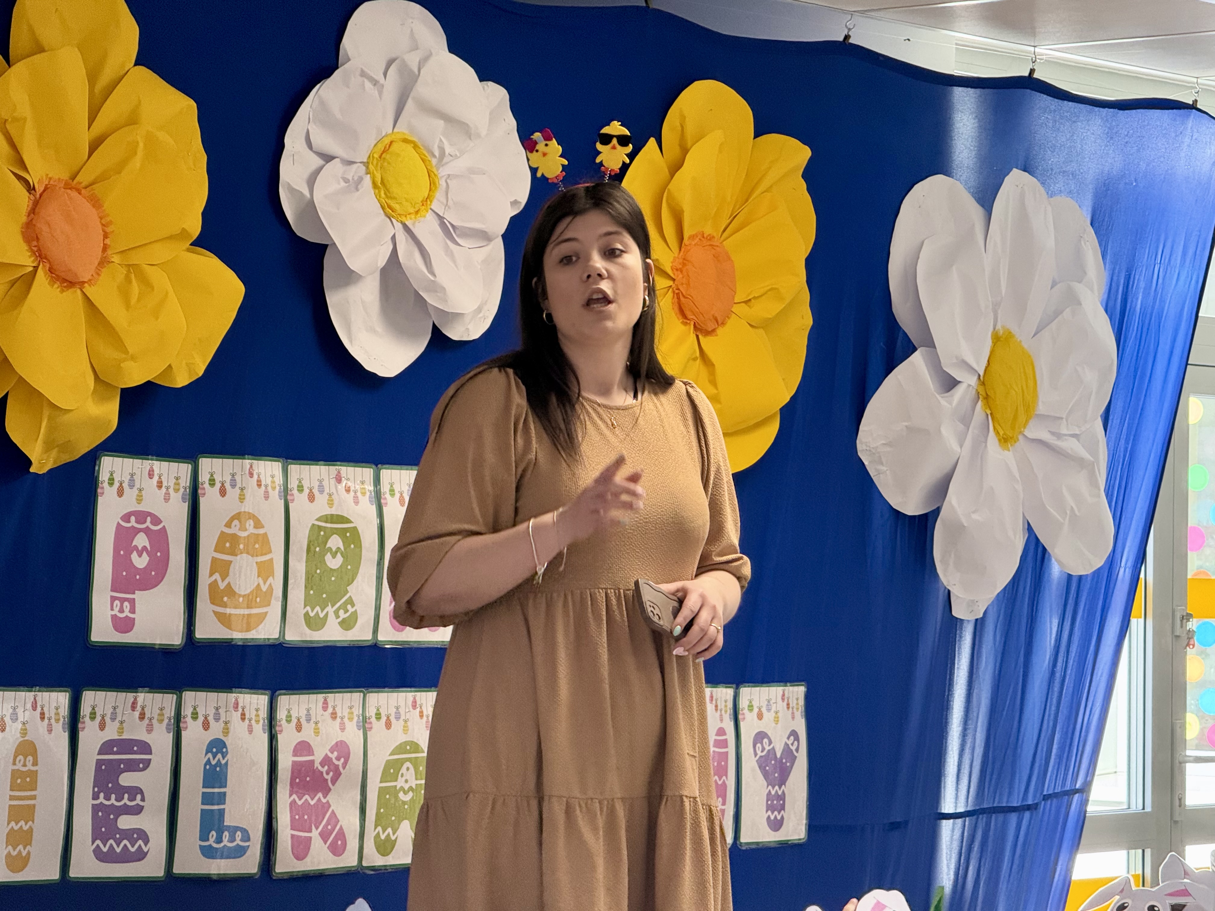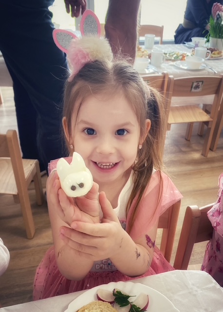 Wielkanoc to święto pełne tradycji i obyczajów. Tradycje wielkanocne sprawiają, że to święto staje się wyjątkowe, a świąteczne dni są pełne radości. Dnia 17 kwietnia w naszym przedszkolu odbył się uroczysty Poranek Wielkanocny. Dzieci wraz z wychowawcami zebrały się na holu, gdzie wspólnie zasiadły do świątecznego śniadanka. Na świątecznym stole nie zabrakło jajka, żurku, szynki i baranka. Pani Dyrektor powitała wszystkich i złożyła serdeczne wielkanocne życzenia. Po śniadaniu pojawił się wyjątkowy gość – Zajączek Wielkanocny. Dzieci z radością przywitały go piosenką. Następnie wszyscy udaliśmy się do ogrodu, gdzie Zajączek przygotował specjalne zadania do rozwiązania oraz pochował prezenty. Dzieci z wielkim zaangażowaniem szukały ukrytych niespodzianek. Na zakończenie pełnego emocji poranka wszyscy zrobili sobie wspólne pamiątkowe zdjęcie z zajączkiem. To był radosny czas pełen uśmiechu, zabawy i świątecznej atmosfery!