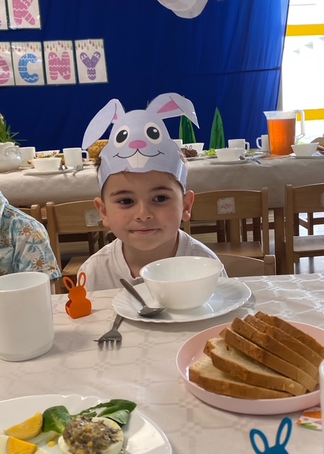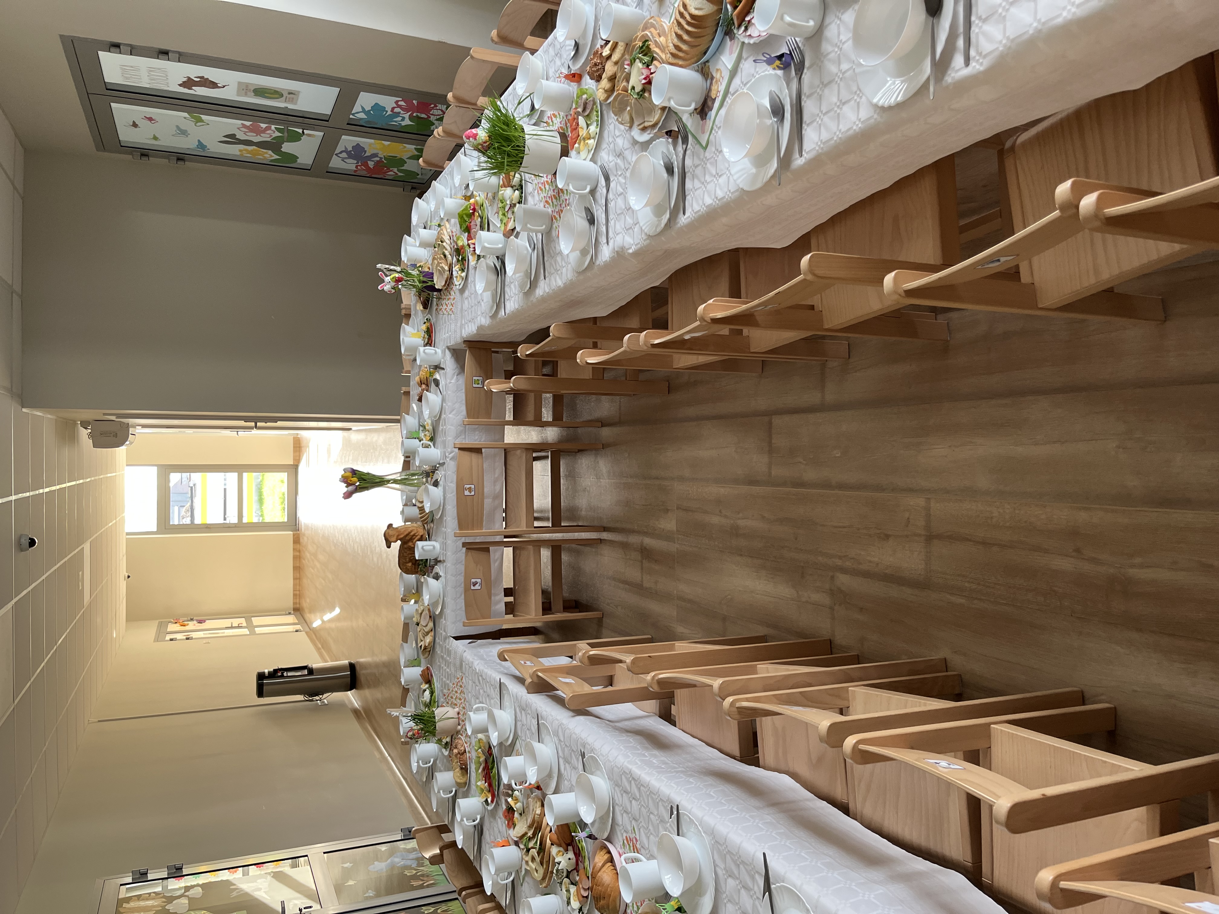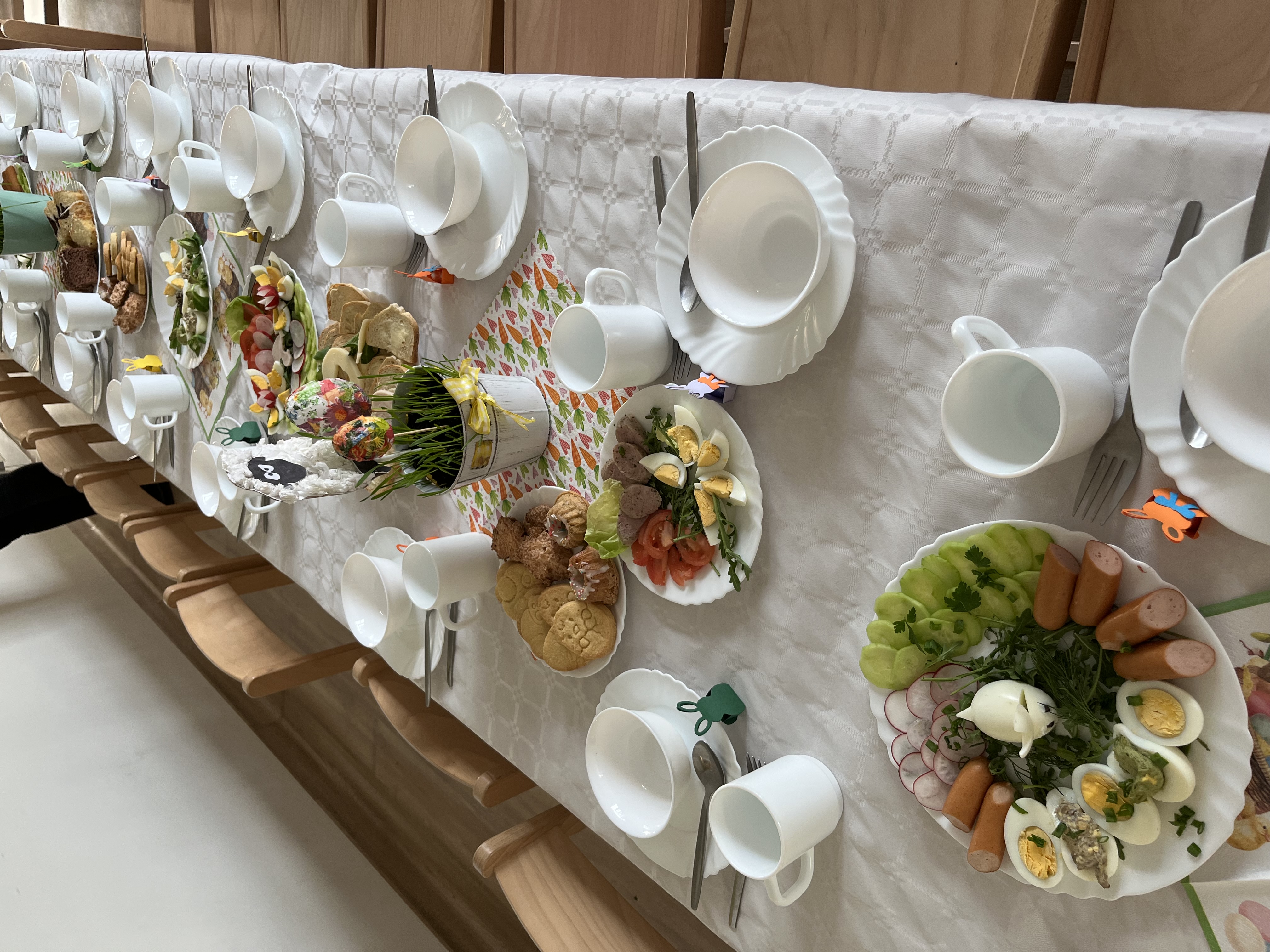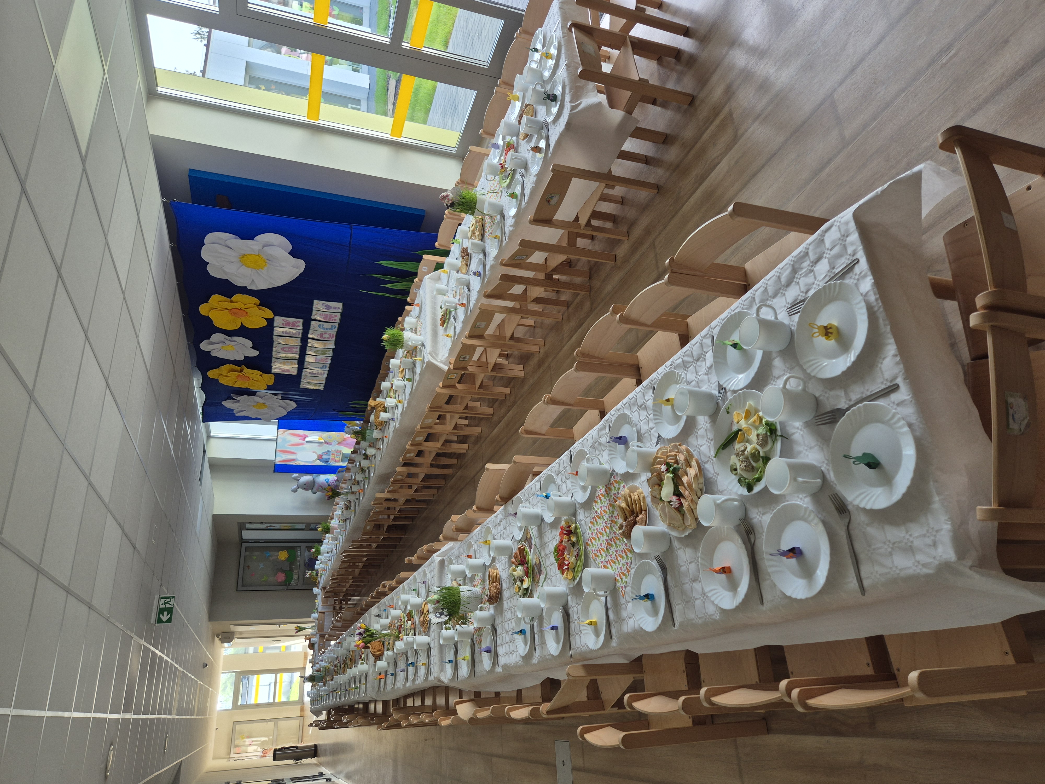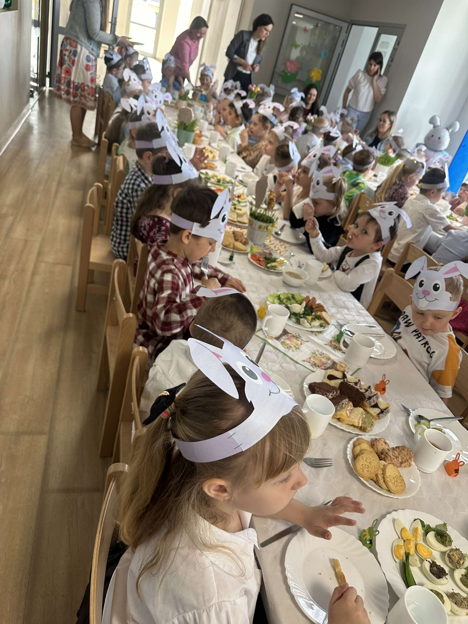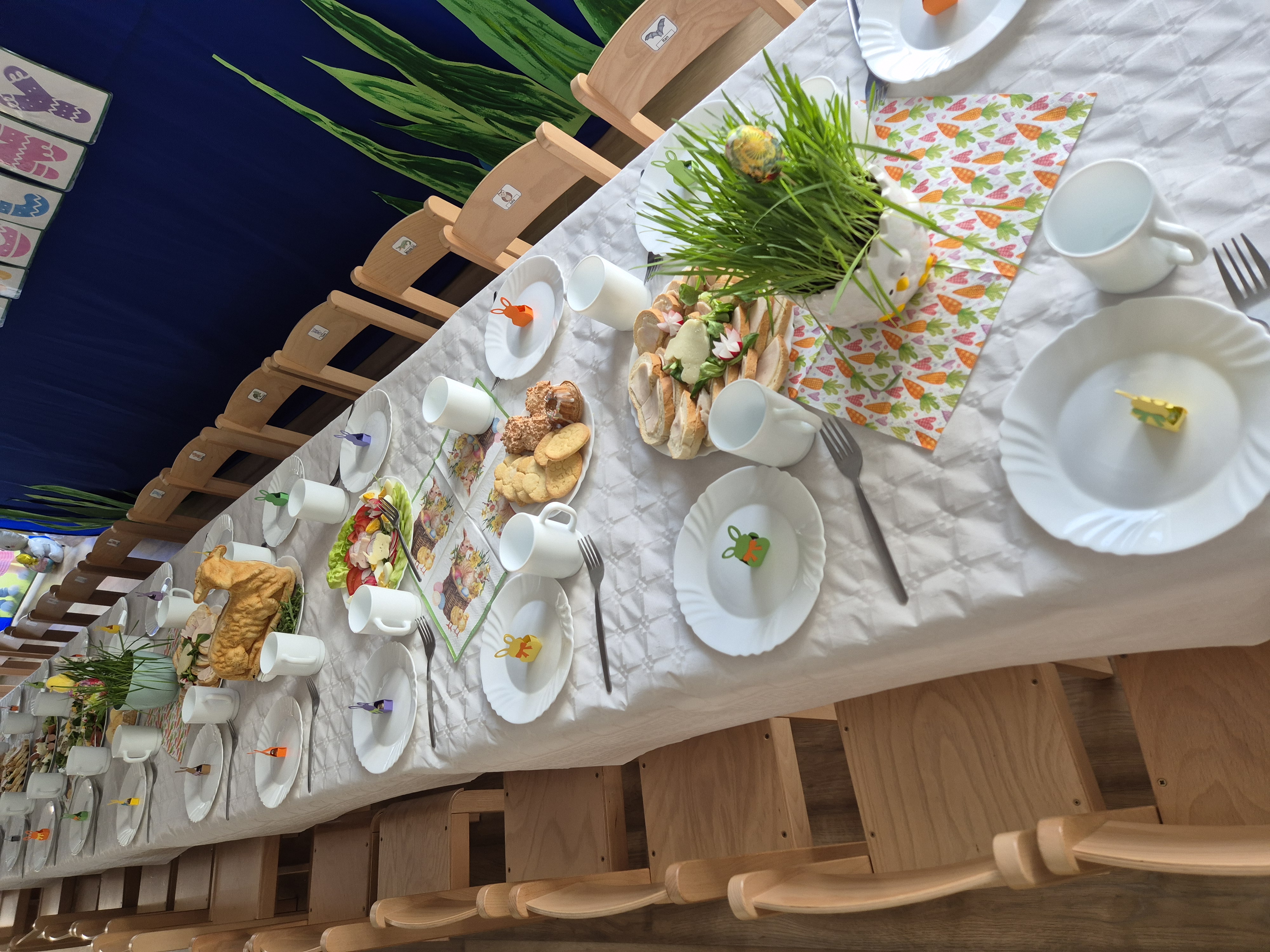 Wielkanoc to święto pełne tradycji i obyczajów. Tradycje wielkanocne sprawiają, że to święto staje się wyjątkowe, a świąteczne dni są pełne radości. Dnia 17 kwietnia w naszym przedszkolu odbył się uroczysty Poranek Wielkanocny. Dzieci wraz z wychowawcami zebrały się na holu, gdzie wspólnie zasiadły do świątecznego śniadanka. Na świątecznym stole nie zabrakło jajka, żurku, szynki i baranka. Pani Dyrektor powitała wszystkich i złożyła serdeczne wielkanocne życzenia. Po śniadaniu pojawił się wyjątkowy gość – Zajączek Wielkanocny. Dzieci z radością przywitały go piosenką. Następnie wszyscy udaliśmy się do ogrodu, gdzie Zajączek przygotował specjalne zadania do rozwiązania oraz pochował prezenty. Dzieci z wielkim zaangażowaniem szukały ukrytych niespodzianek. Na zakończenie pełnego emocji poranka wszyscy zrobili sobie wspólne pamiątkowe zdjęcie z zajączkiem. To był radosny czas pełen uśmiechu, zabawy i świątecznej atmosfery!