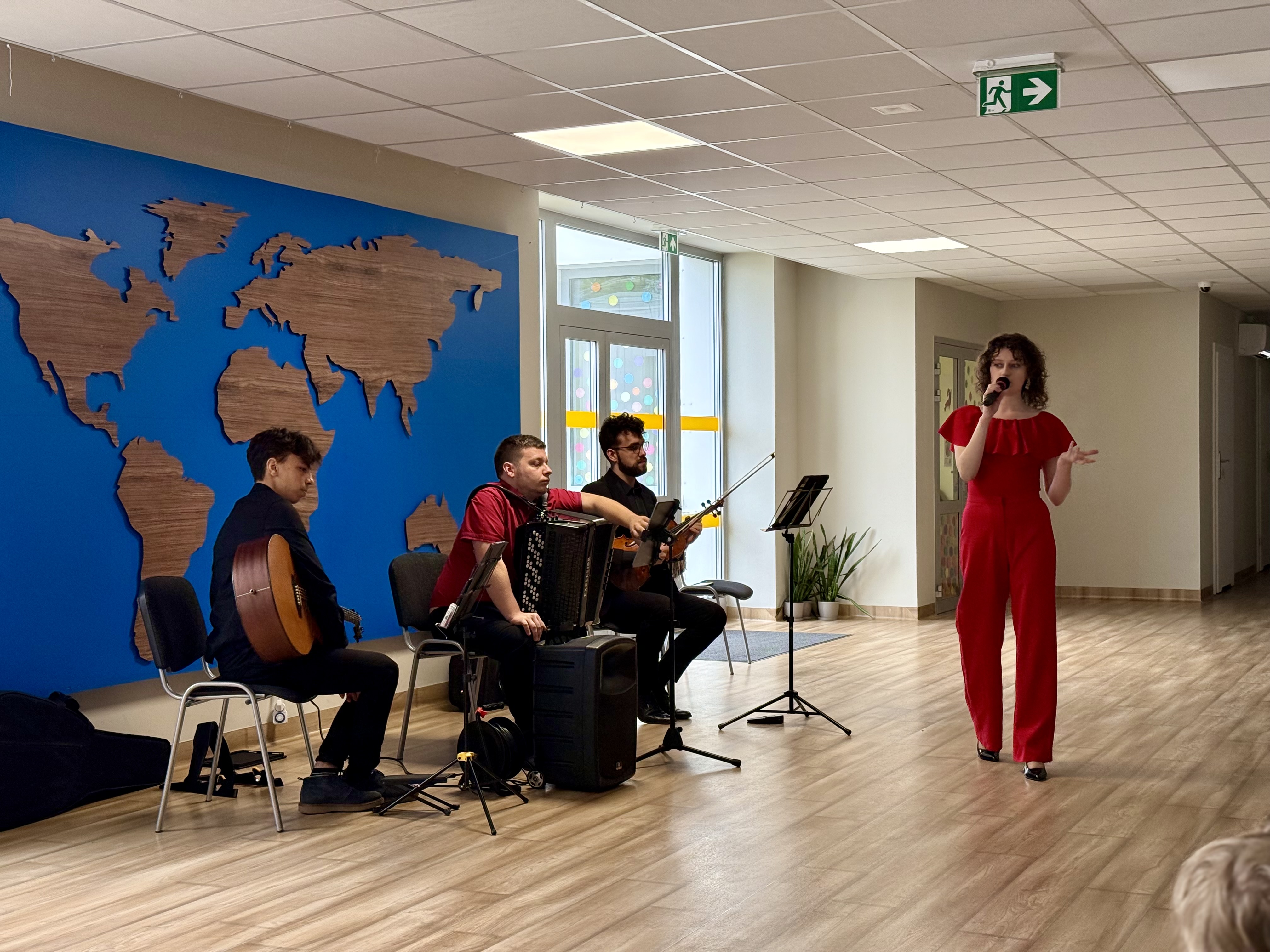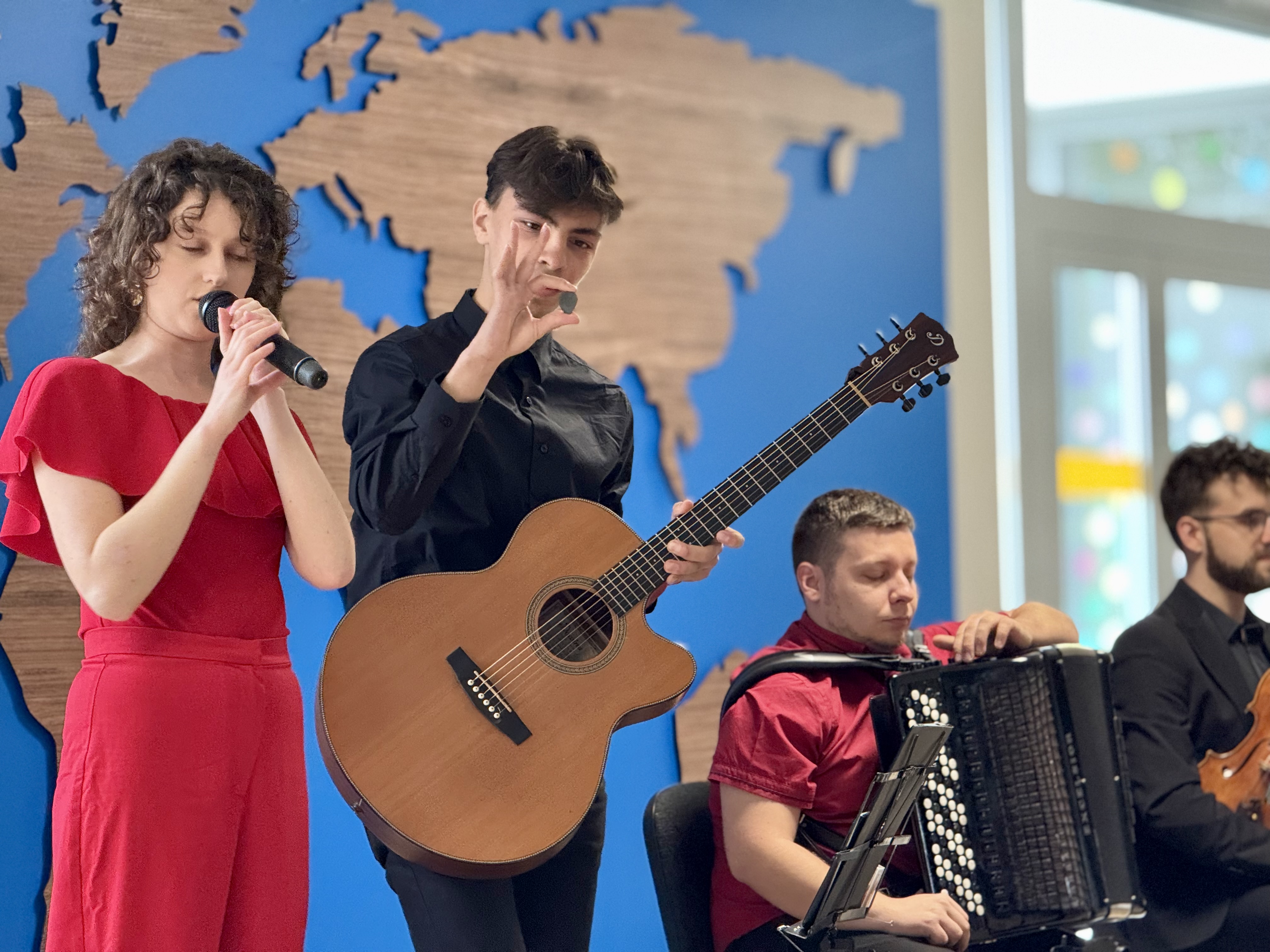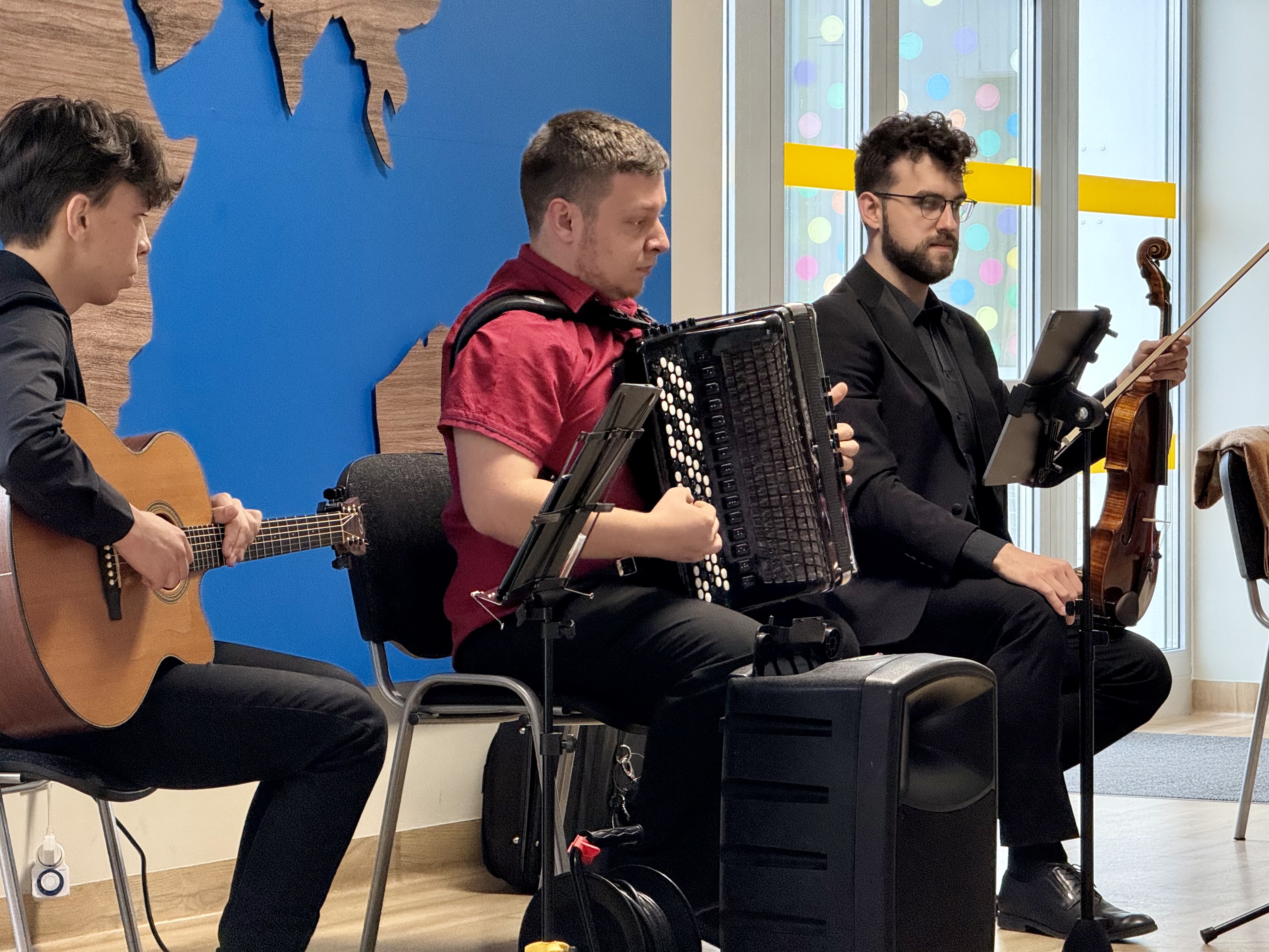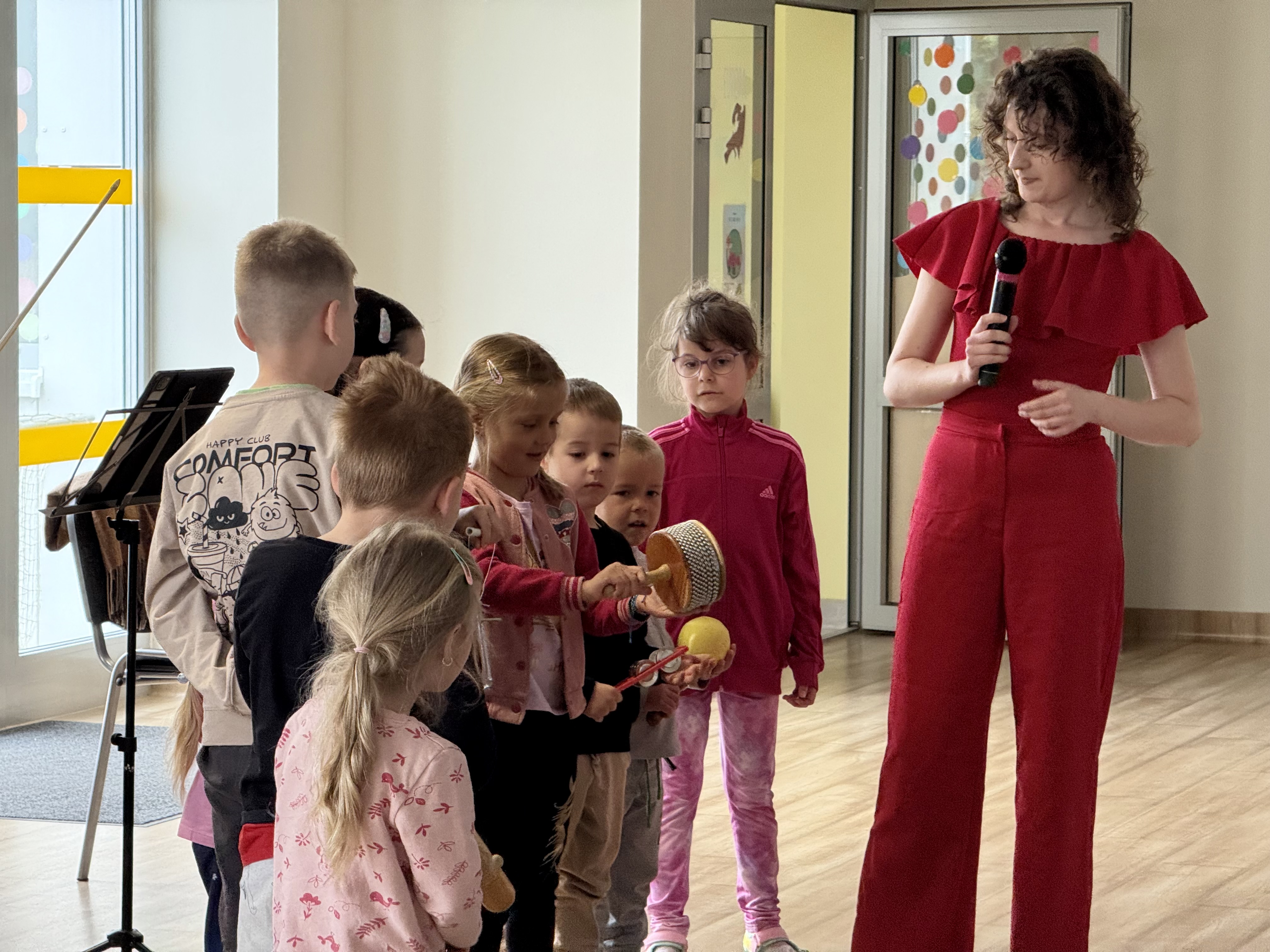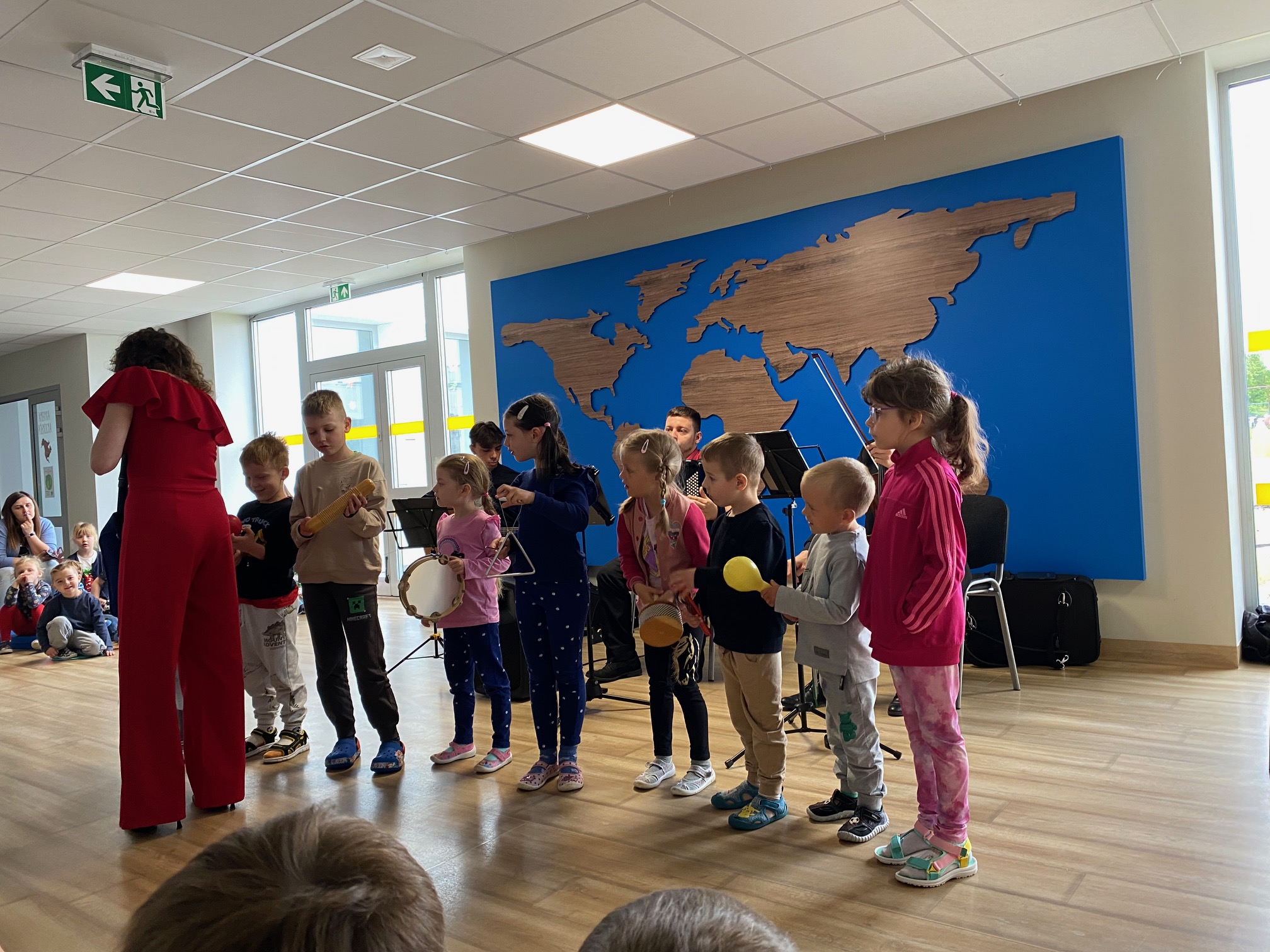 Dnia 15 maja 2025 roku gościliśmy w naszym przedszkolu muzyków z Filharmonii Pomorskiej w Bydgoszczy. Czteroosobowa grupa artystów zapoznała dzieci z instrumentami muzycznymi takimi jak: skrzypce, gitara i akordeon oraz twórczością kompozytorów. Koncert pt. „Sałatka włoska” był dostosowany do wieku dzieci i prowadzony w zabawowej formie, aby rozbudzić ich wyobraźnię muzyczną i zainteresowanie muzyką. Artyści zaprezentowali przedszkolakom „mieszaninę włoskich nazw” – oznaczeń tempa, dynamiki, artykulacji. Poznaliśmy znaczenie tych słów i dowiedzieliśmy się, jak wielki wpływ mają one na wykonanie i odbiór muzyki. Na zakończenie dzieci miały możliwość razem z muzykami zagrać na instrumentach. Był to niezwykły koncert.