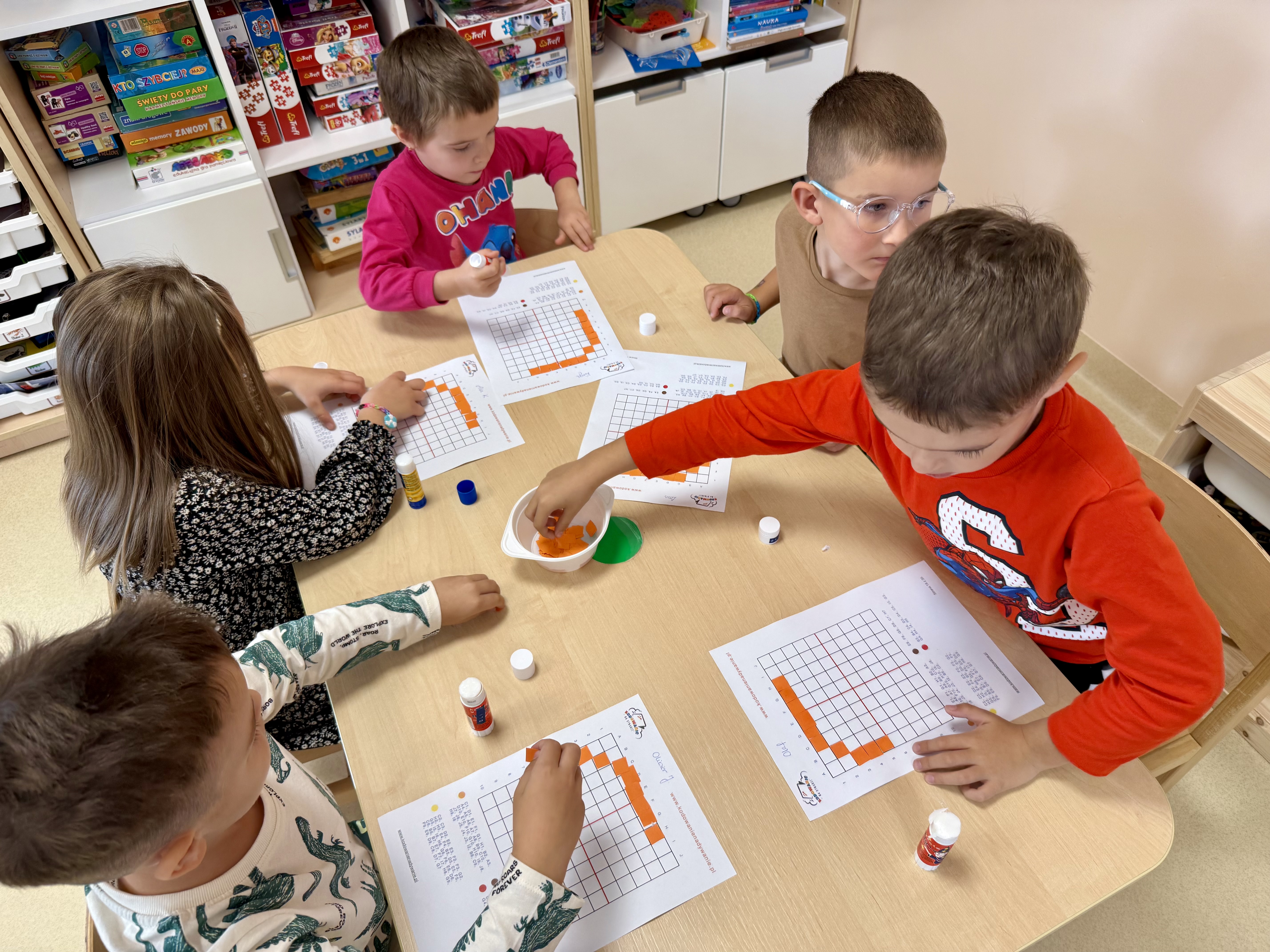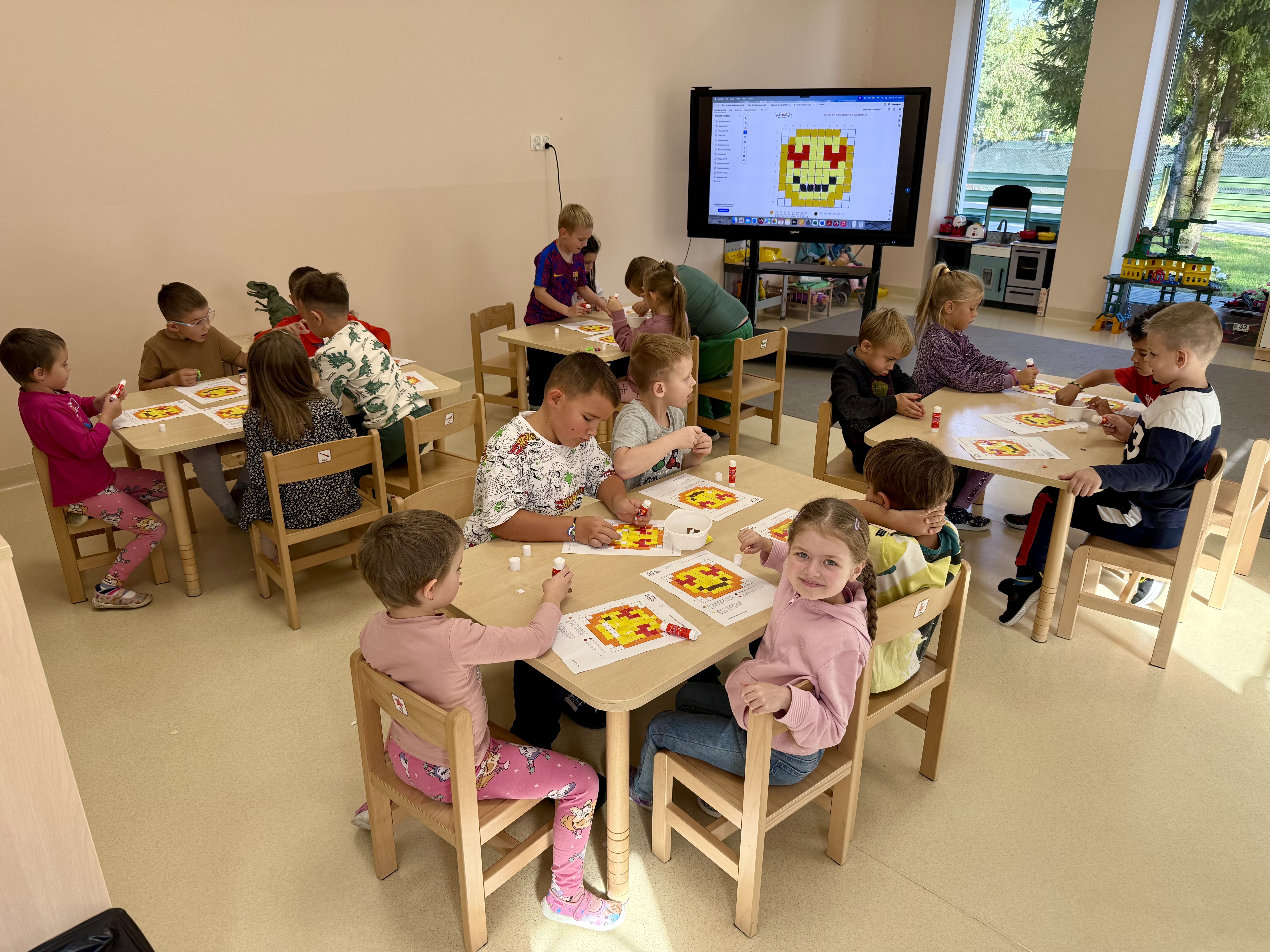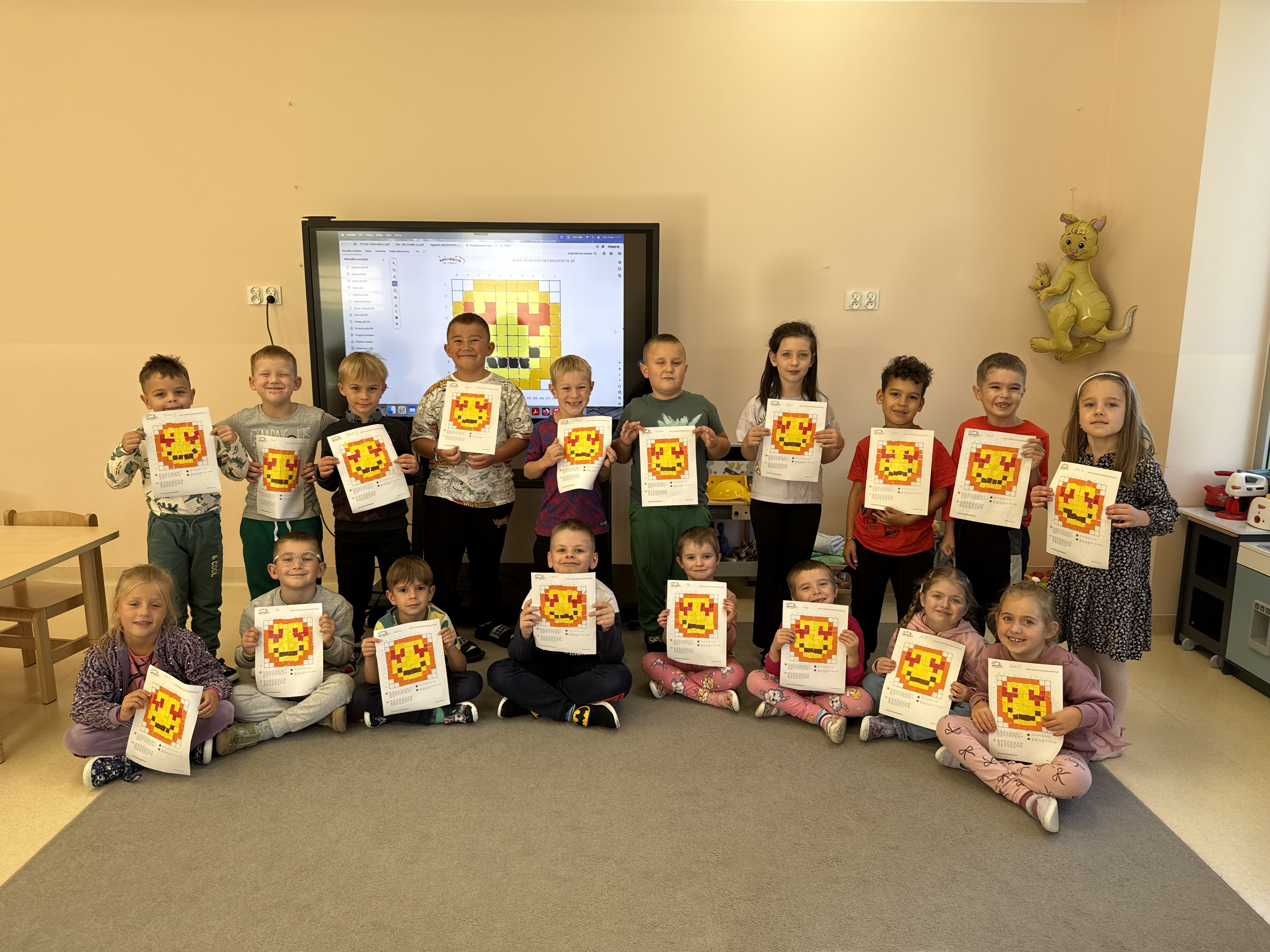 W czwartek w grupie „Kangury” rozmawialiÅ›my o tym, jak ważna jest wspóÅ‚praca i wzajemna pomoc. ZastanawialiÅ›my siÄ™ też, co możemy robić, aby uÅ›miech – taki jak na zakodowanym obrazku – jak najczęściej pojawiaÅ‚ siÄ™ na naszych twarzach. Dzieci podawaÅ‚y swoje propozycje i odkrywaÅ‚y, że czasem wystarczy drobny gest czy miÅ‚e sÅ‚owo, by poprawić komuÅ› humor.