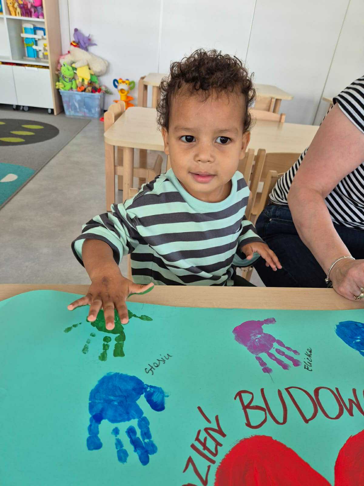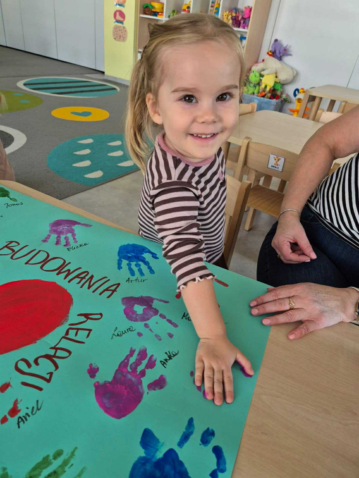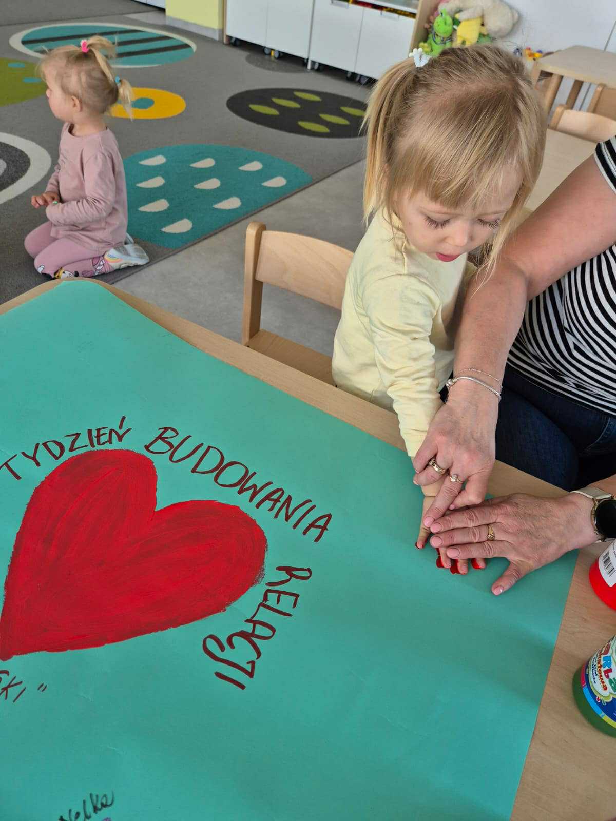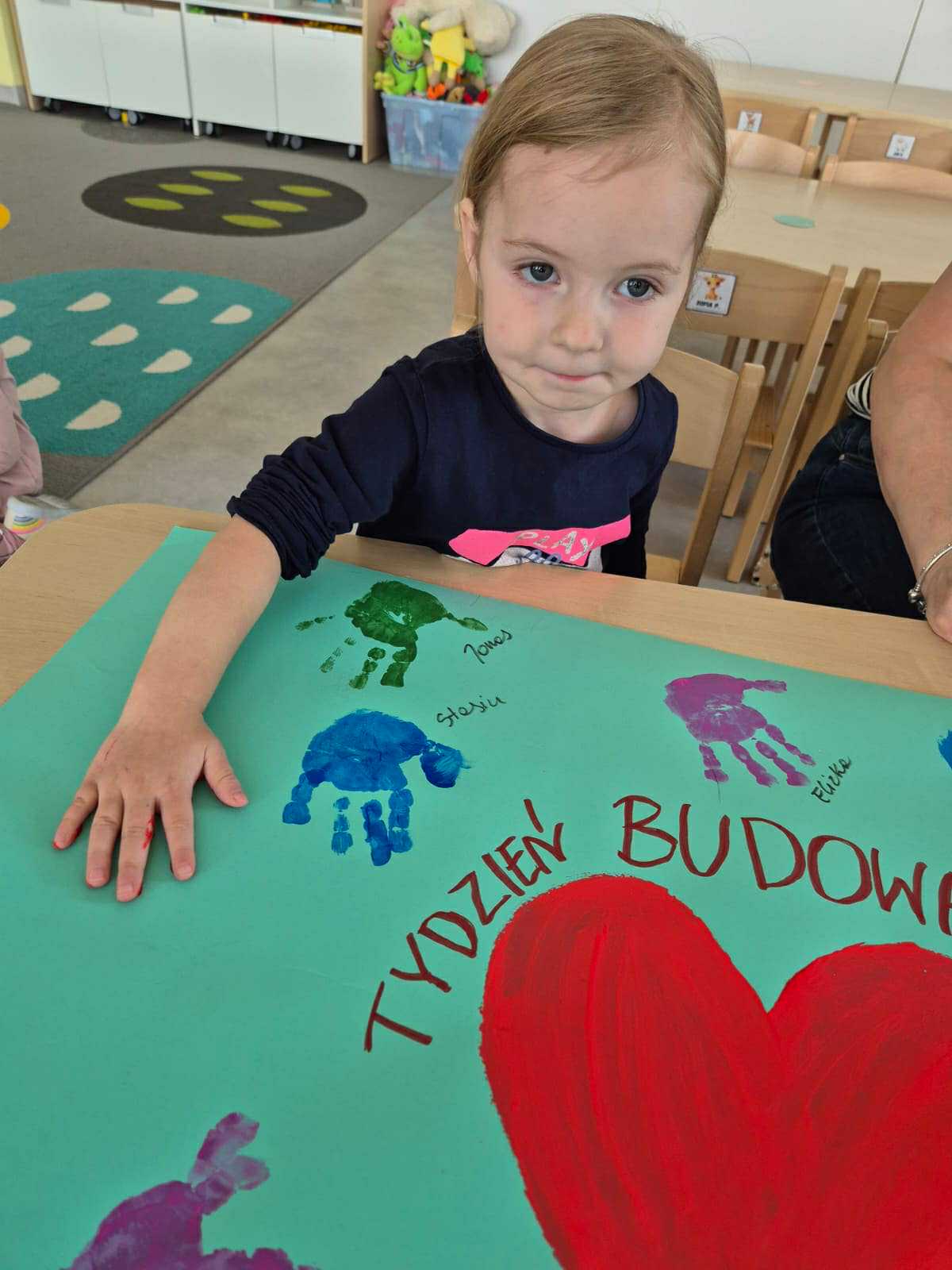 Na zakoÅ„czenie Tygodnia Budowania Relacji Tygryski wykonaÅ‚y wspólnÄ… pracÄ™ plastycznÄ… „Nasze dÅ‚onie”, dzieci odbijaÅ‚y na dużym arkuszu papieru kolorowe rÄ…czki, tworzÄ…c symbol wspólnoty
