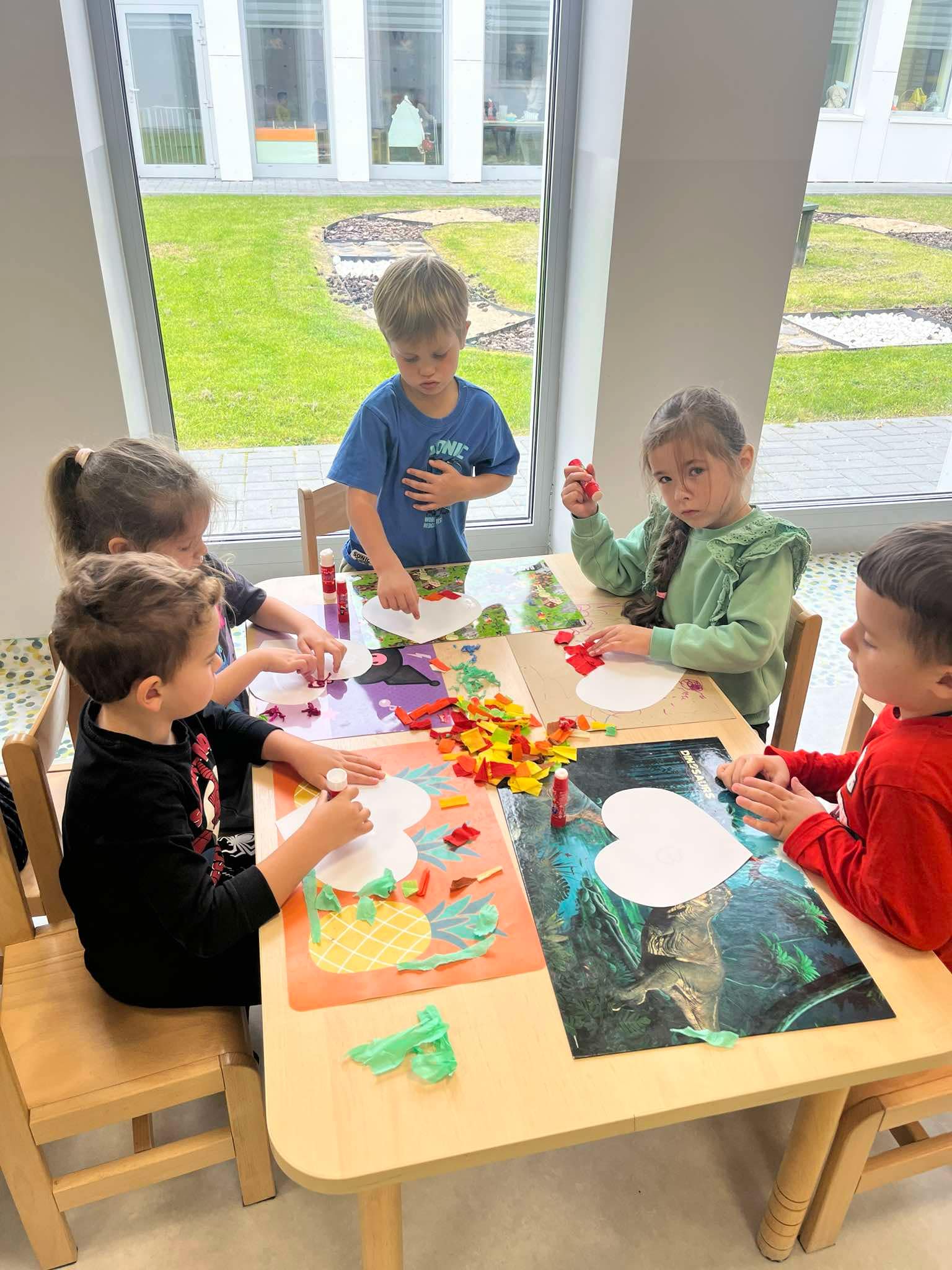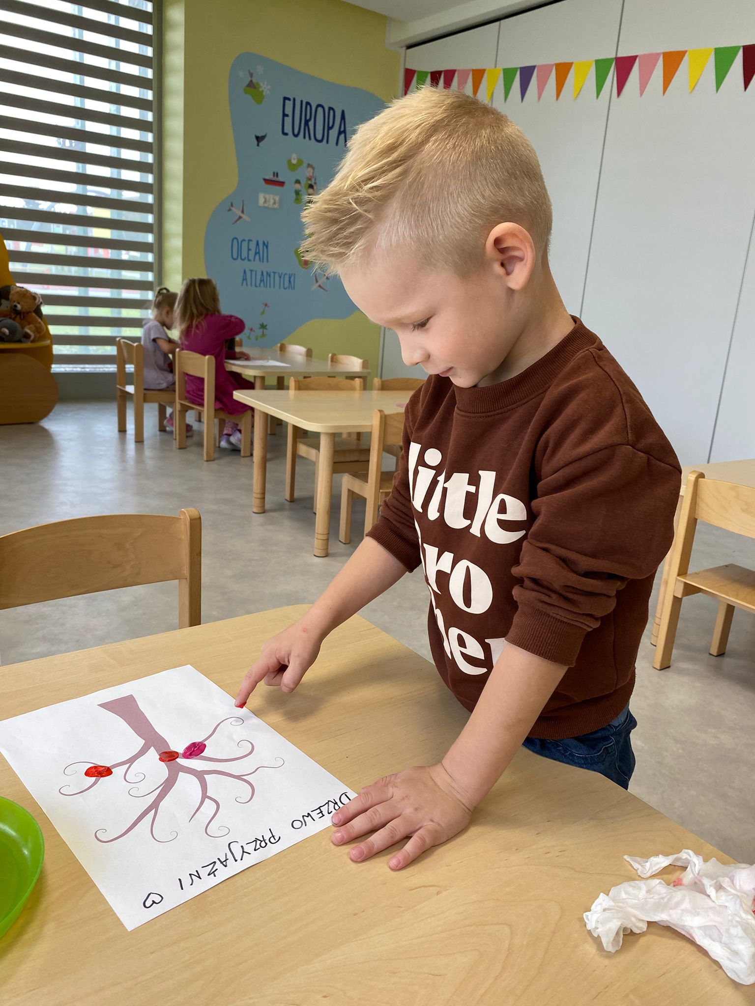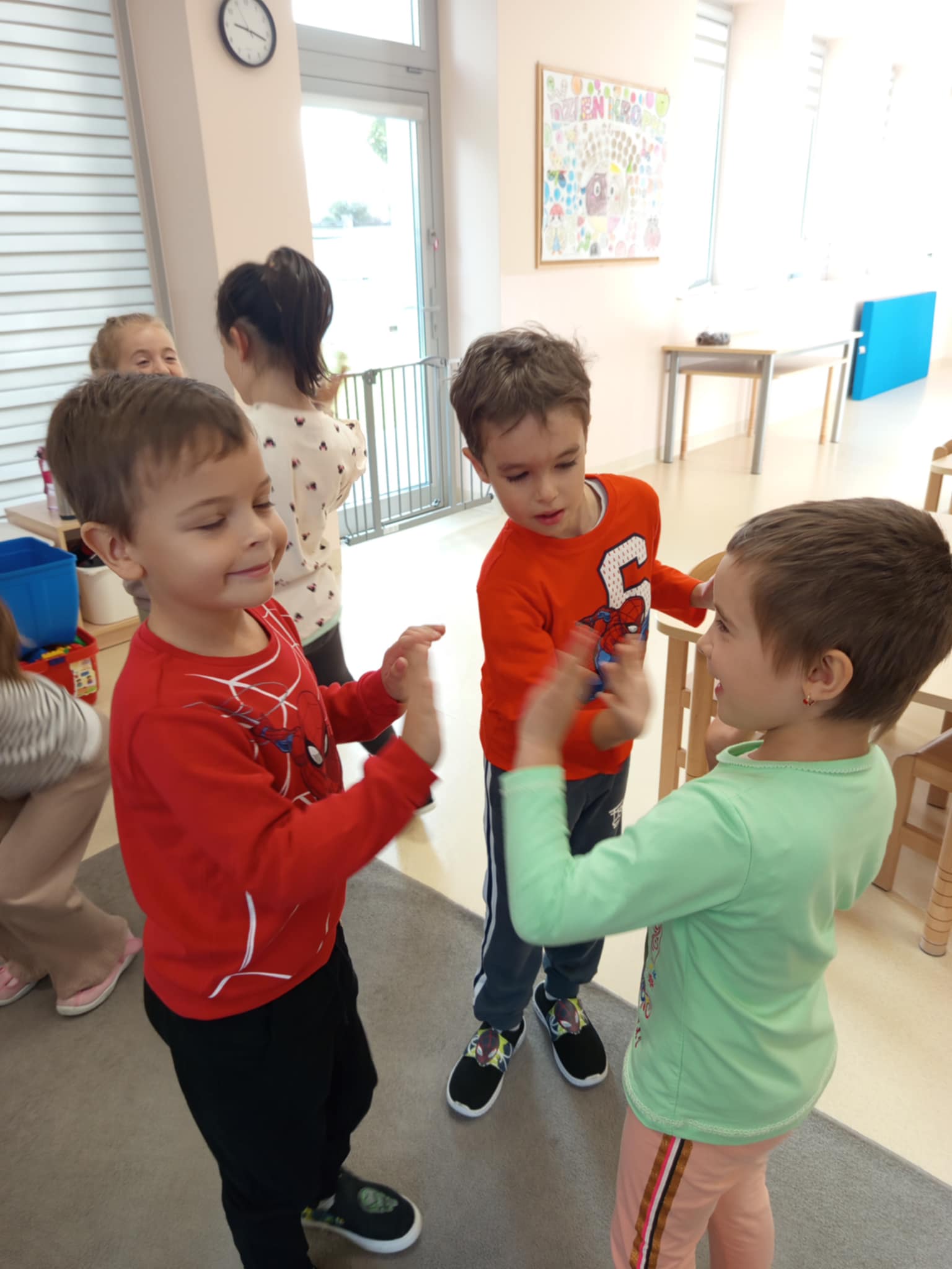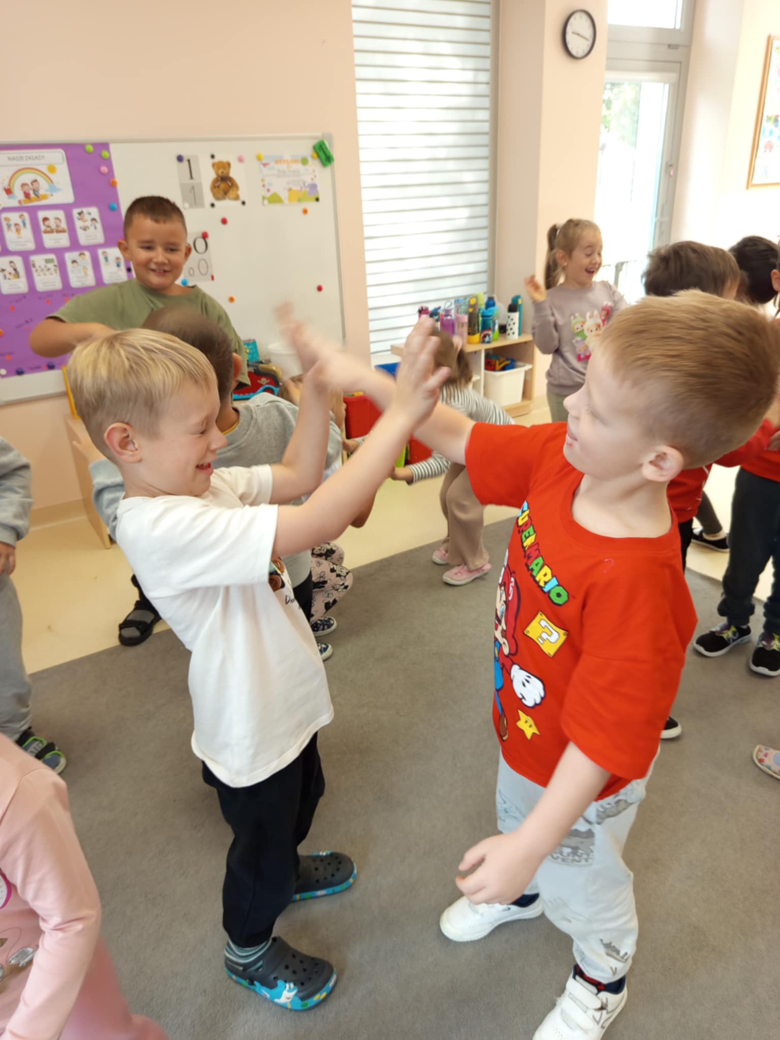Budowanie relacji w przedszkolu jest fundamentem prawidłowego rozwoju dziecka. To właśnie w przedszkolu dzieci uczą się, jak być częścią grupy, jak współpracować, dzielić się, rozwiązywać konflikty i rozumieć emocje – swoje i innych. W ogólnopolskiej inicjatywie „Tydzień budowania relacji” wzięło udział 6 oddziałów naszego przedszkola. W każdej grupie zajęcia opierały się na rozmowie o emocjach i dobrych relacjach. Zajęcia zostały przeprowadzone m.in. na podstawie popularnego scenariusza profilaktyczno-wychowawczego „Metafora serduszka”. W pierwszym dniu „budowania relacji” przedszkolaki miały okazję rozpoznać i nazwać różne uczucia. Najmłodsza grupa przedszkolna „Tygryski” witała się ze sobą w uprzejmy sposób, dzięki zabawie „Kolorowe chusty”, brały udział w zabawie "Podaj dalej" sprzyjającej budowaniu atmosfery życzliwości. Na zakończenie wspólnie stworzyły "Kolorowy most przyjaźni", dzięki czemu rozwijały umiejętność zgodnego działania w grupie z dużą dawką uśmiechu. Dzieci z grupy „Liski” rozmawiały o tym, kim jest przyjaciel i jak dbać o relacje w grupie. Wzięły udział w zabawie „znajdź swojego przyjaciela”, a następnie wspólnie stworzyły „drzewko przyjaźni”, malując liście palcami. W grupie „Delfinków” dzieci rozmawiały o emocjach, przyjaźni i współpracy. Poznały psa Azora, który zna pięć podstawowych zasad bezpiecznego zachowania, a na zakończenie na podstawie zadania plastycznego poznały jaką magiczną moc posiada słowo „przepraszam”. „Koliberki” skoncentrowały się na emocjach. Dzięki tym aktywnościom dzieci mogły lepiej zrozumieć swoje uczucia i nauczyć się, jak wyrażać je w sposób konstruktywny. Grupa „Żyrafek” wysłuchała listu od Pani Ministry, wyraziła swoje samopoczucie na podstawie tablicy emocji, a następnie wysłuchała i omówiła opowiadanie „Serduszko z listków”. Najstarsza grupa „Kangury” odgrywała scenki oraz grała w specjalną grę dzięki, której sprawdziły swoją wiedzę na temat relacji. Dzień minął w bardzo przyjemnej atmosferze. Uczestnicy zrozumieli, że słowa mają moc i że warto dbać o dobre relacje w grupie.