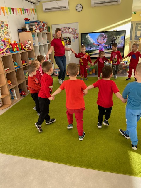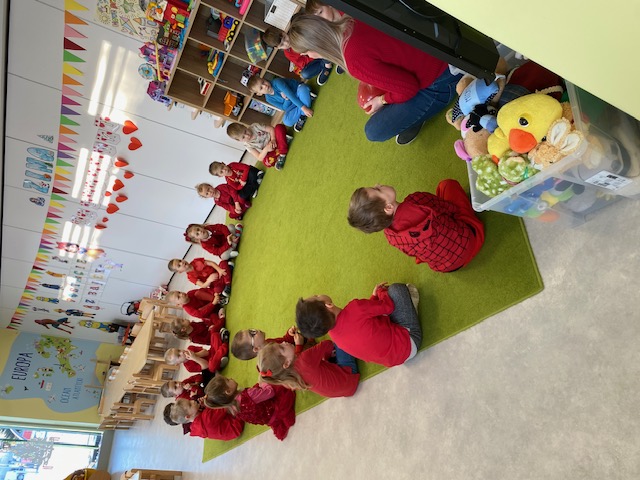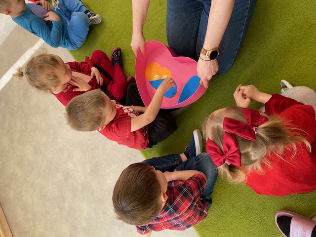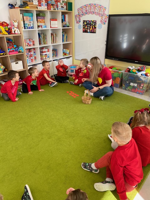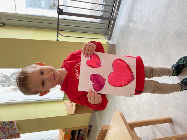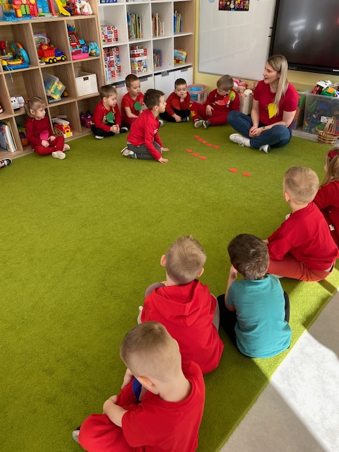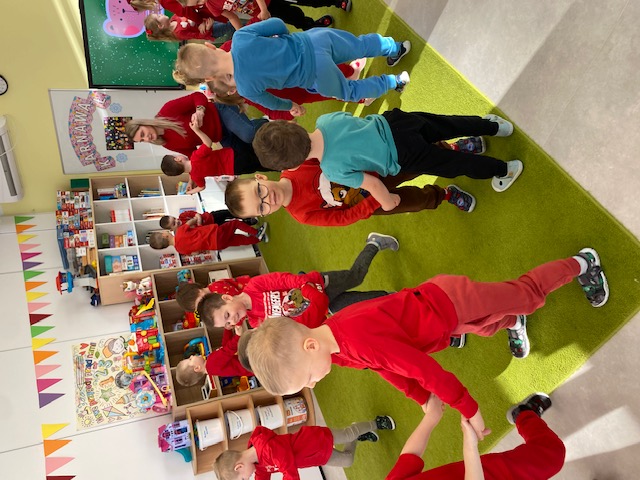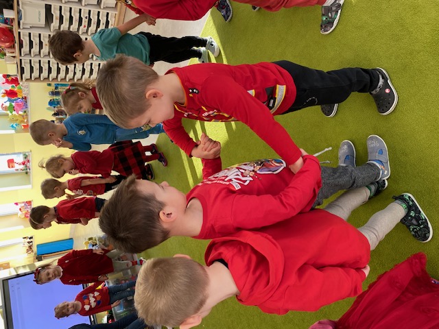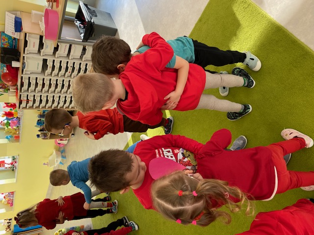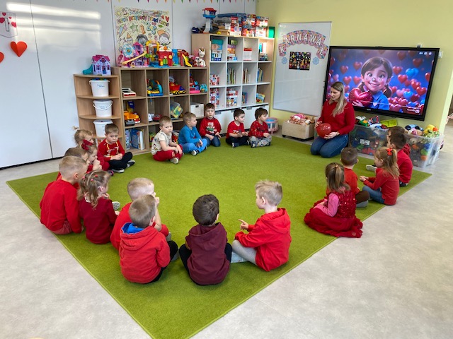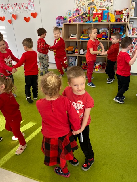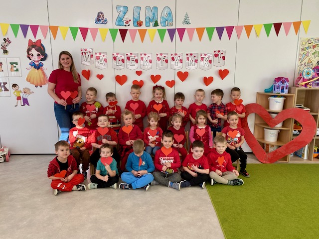 Dnia 16 lutego sala grupy „Lisków” zamieniła się w krainę malowaną odcieniami czerwieni, wypełnioną dziecięcą radością i blaskiem najszczerszych uśmiechów. Tego dnia świętowaliśmy Walentynki – wyjątkowy czas, w którym każde słowo i gest stawały się wyznaniem przyjaźni oraz symbolem dziecięcej dobroci. Nasze przedszkolaki, ubrane w radosne, czerwone barwy, od samego rana tworzyły atmosferę pełną ciepła i wzajemnego szacunku.