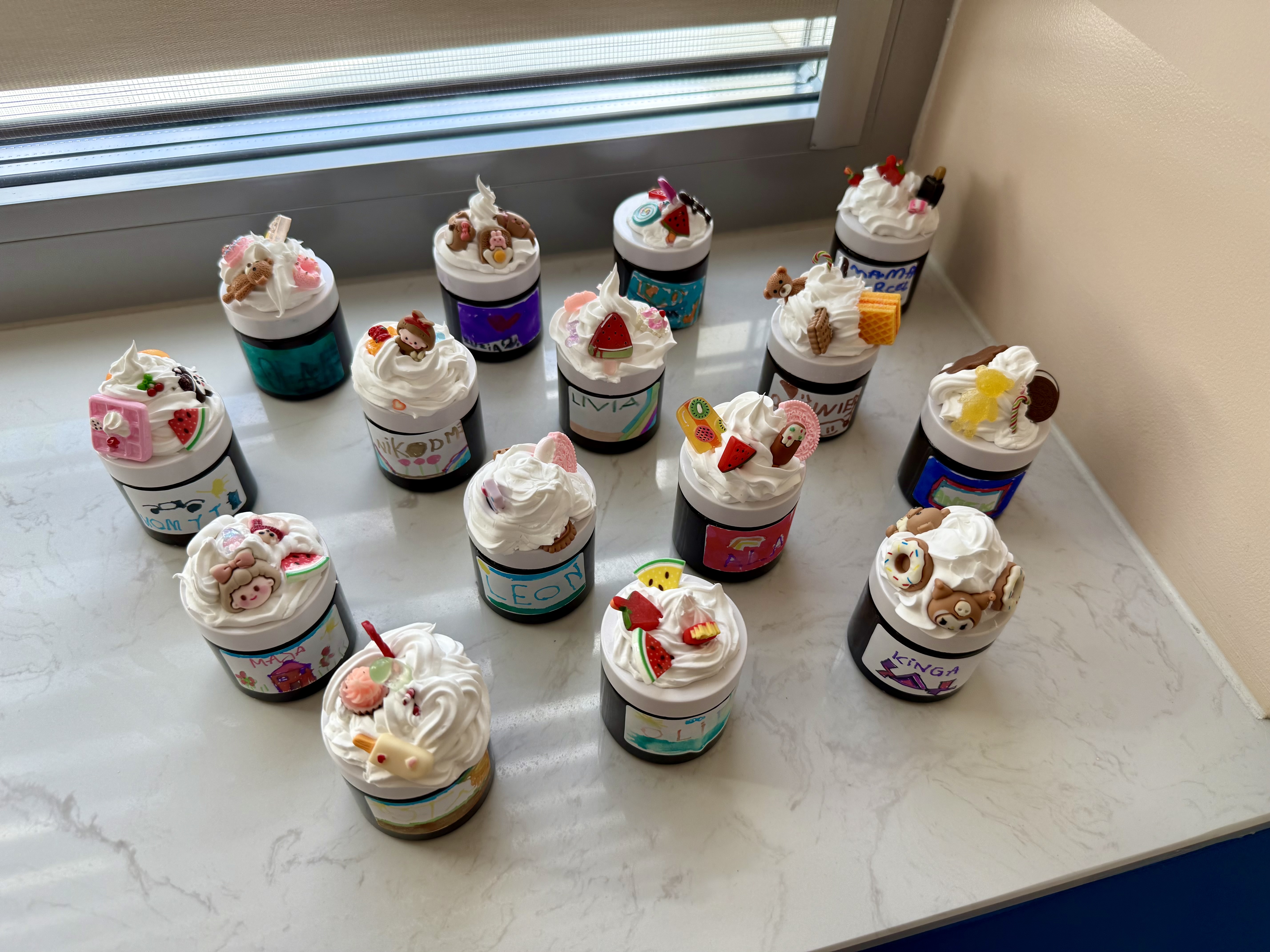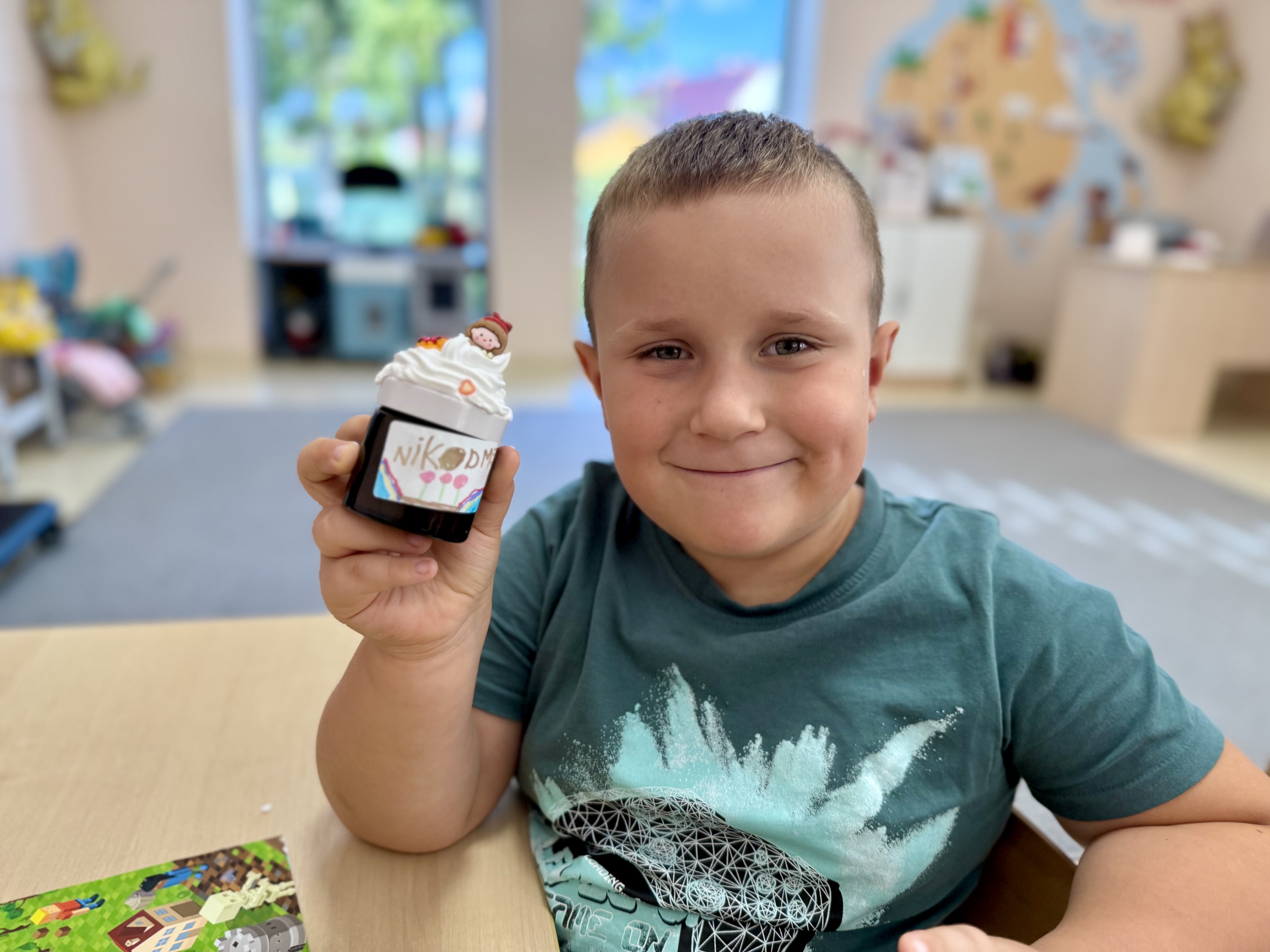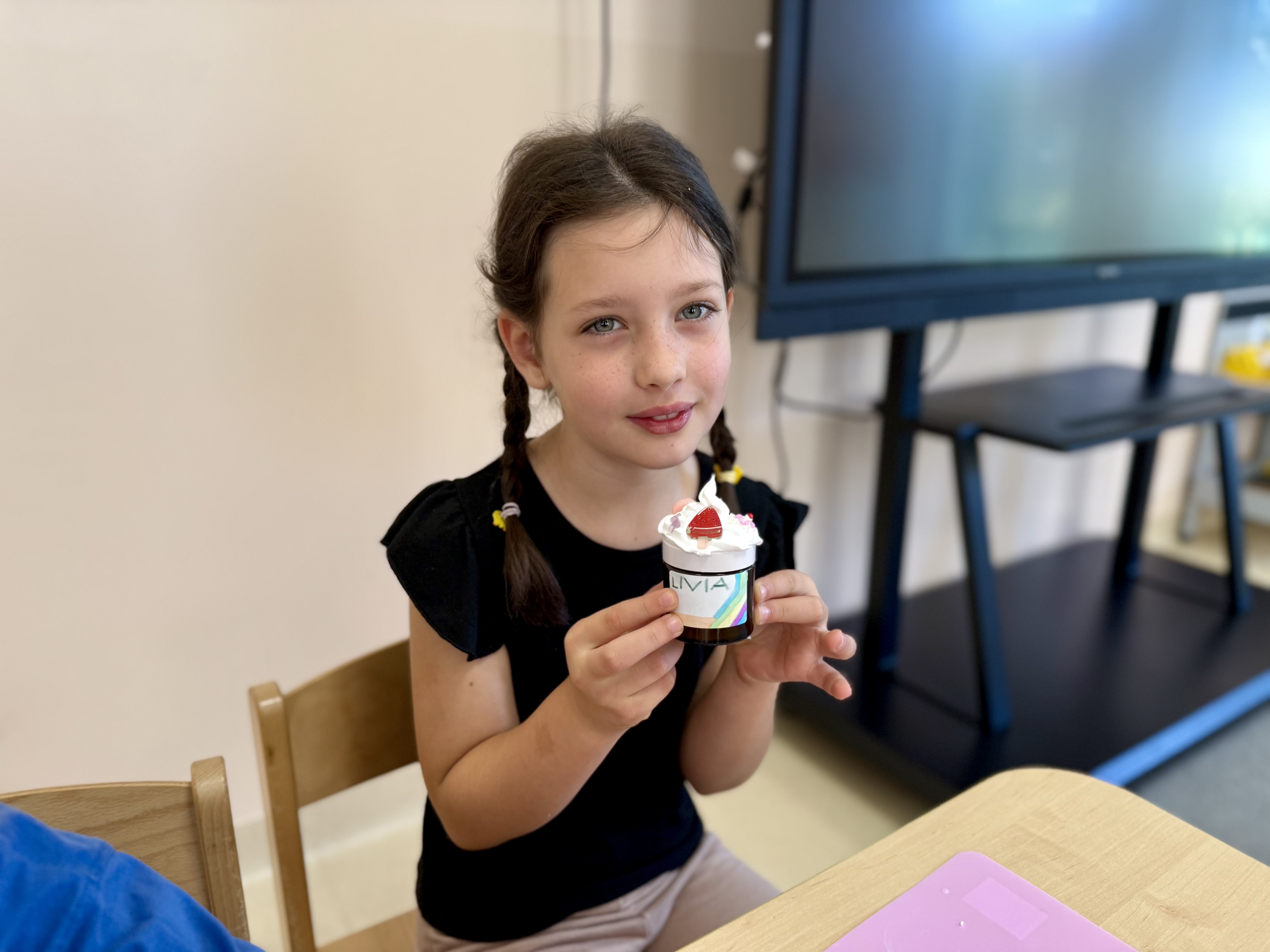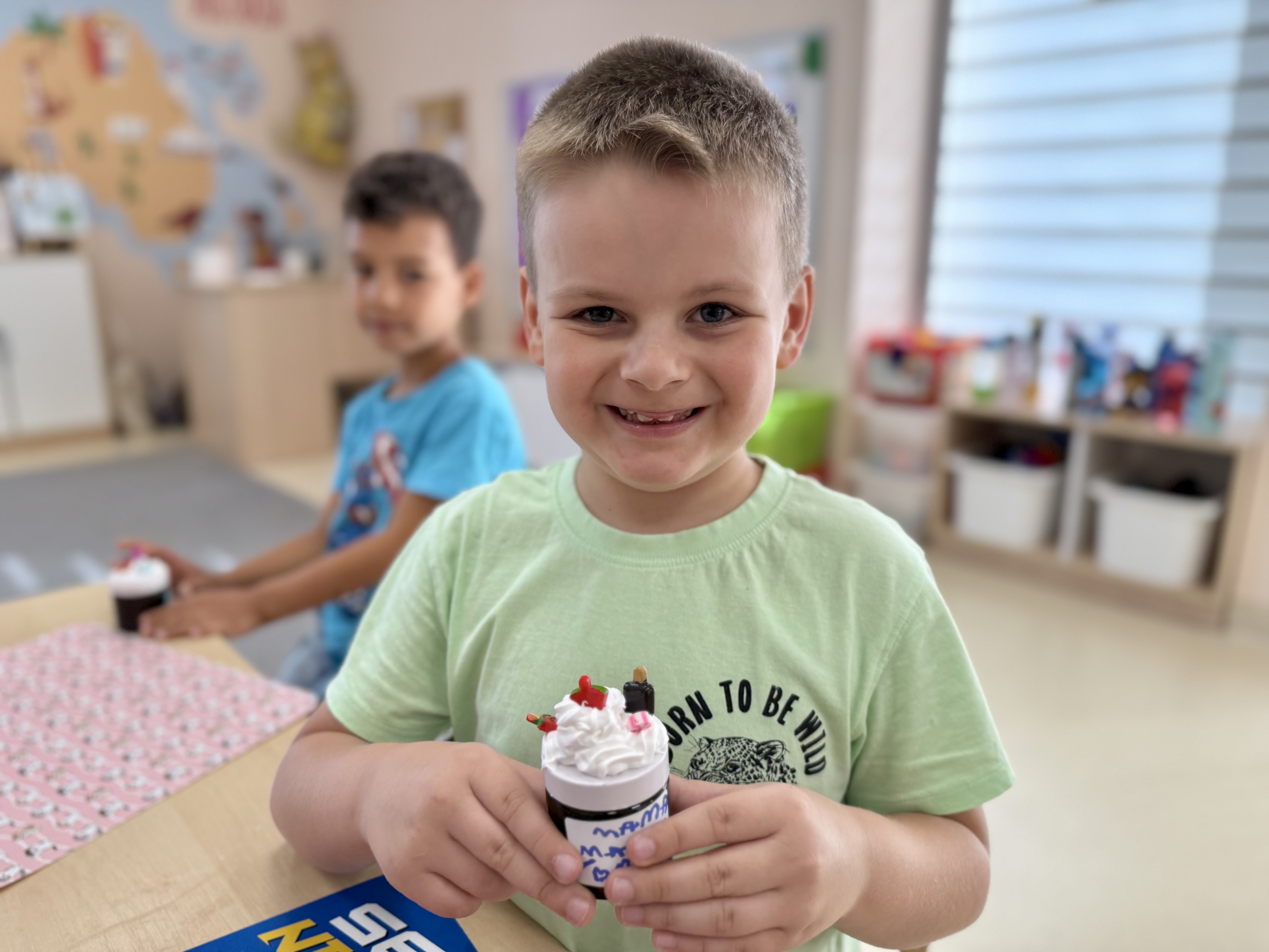 Pierwszym etapem było przygotowanie wosku z olejkiem, a zaraz potem dzieci – niczym prawdziwi dekoratorzy – przygotowały ozdobne wieczka z akrylu. Było na nich miejsce na kolorowe i fantazyjne dodatki, dzięki czemu powstały prawdziwe małe dzieła sztuki. Na koniec dzieci zaprojektowały własne etykietki, które nadały świeczkom niepowtarzalnego charakteru.