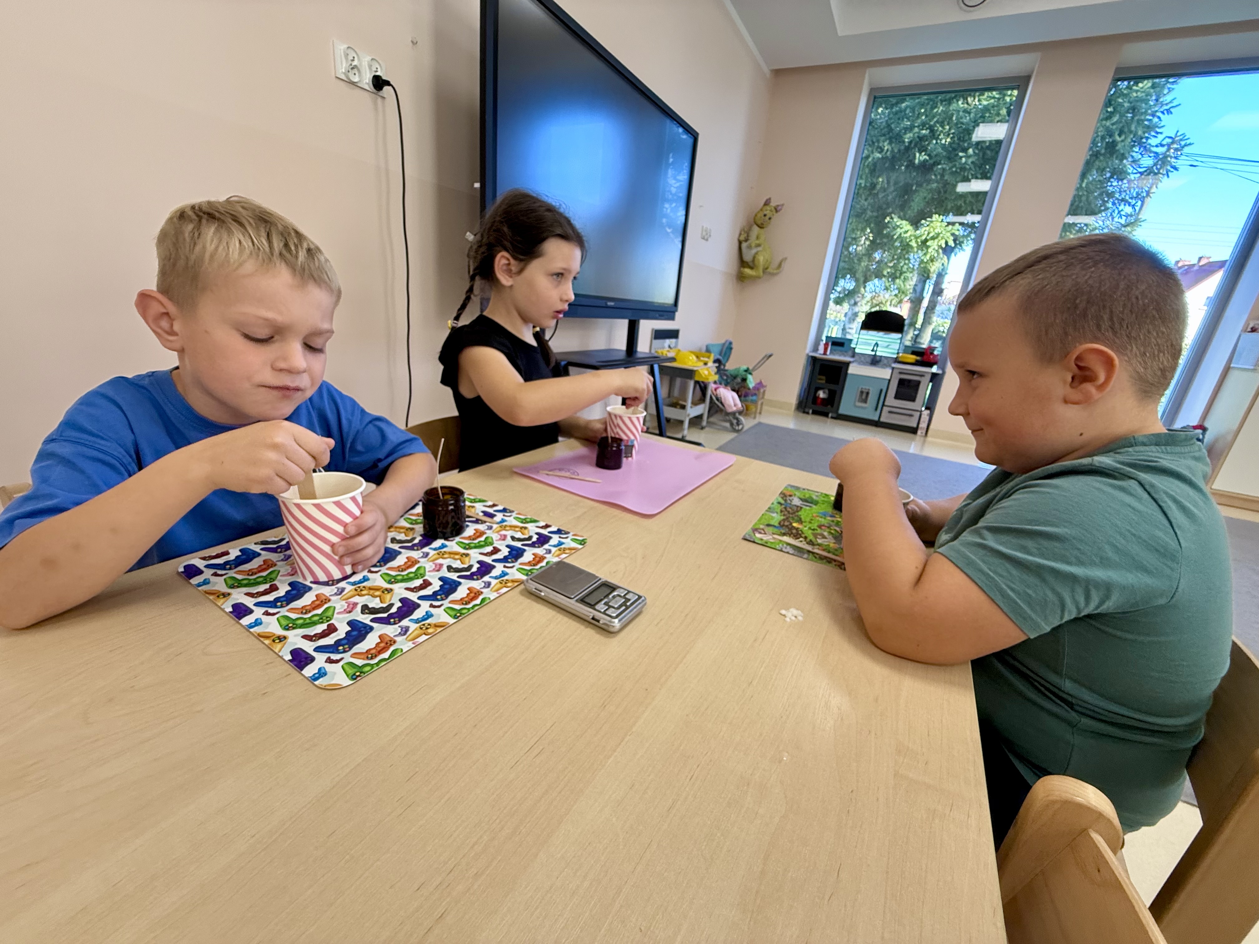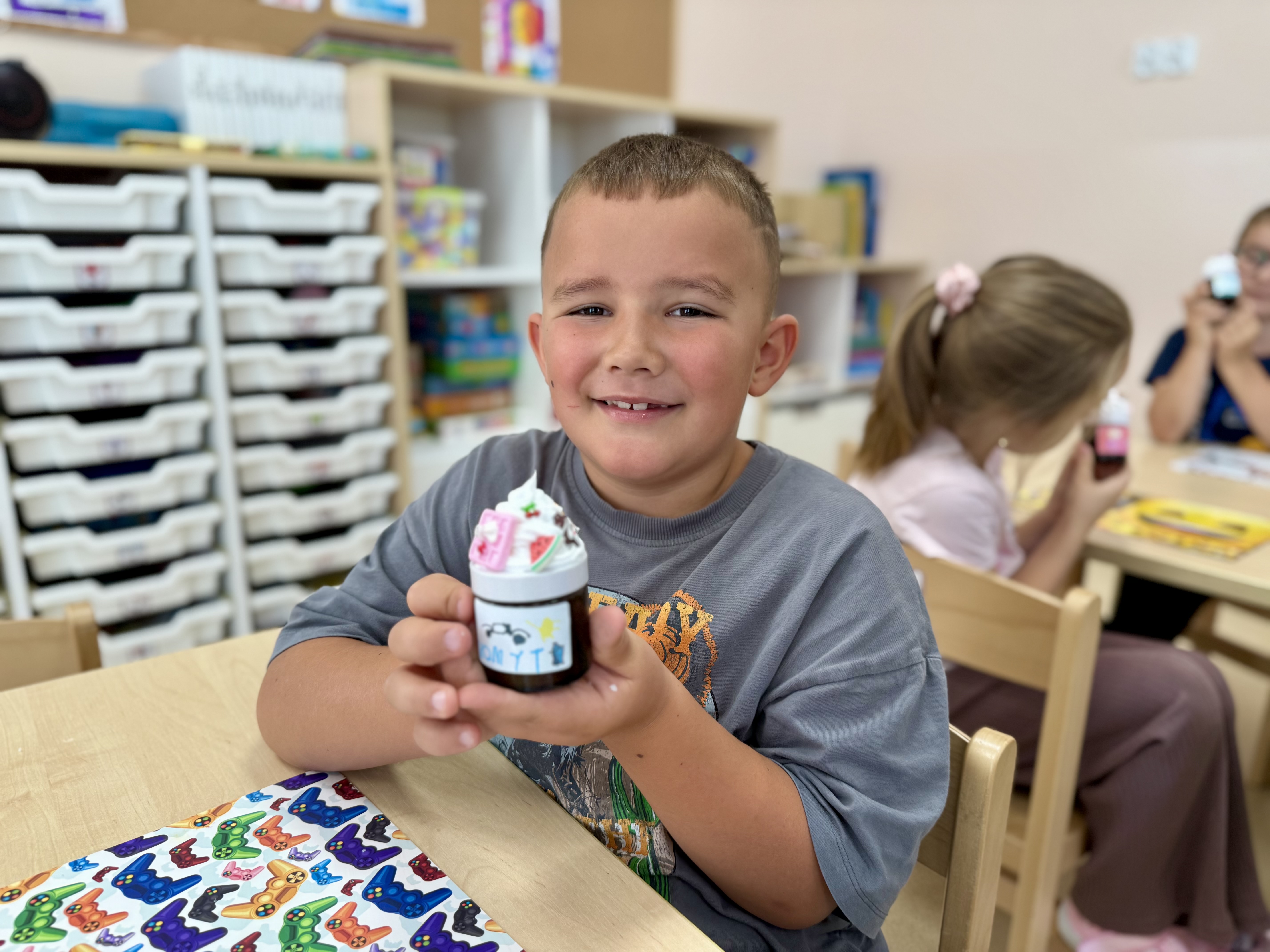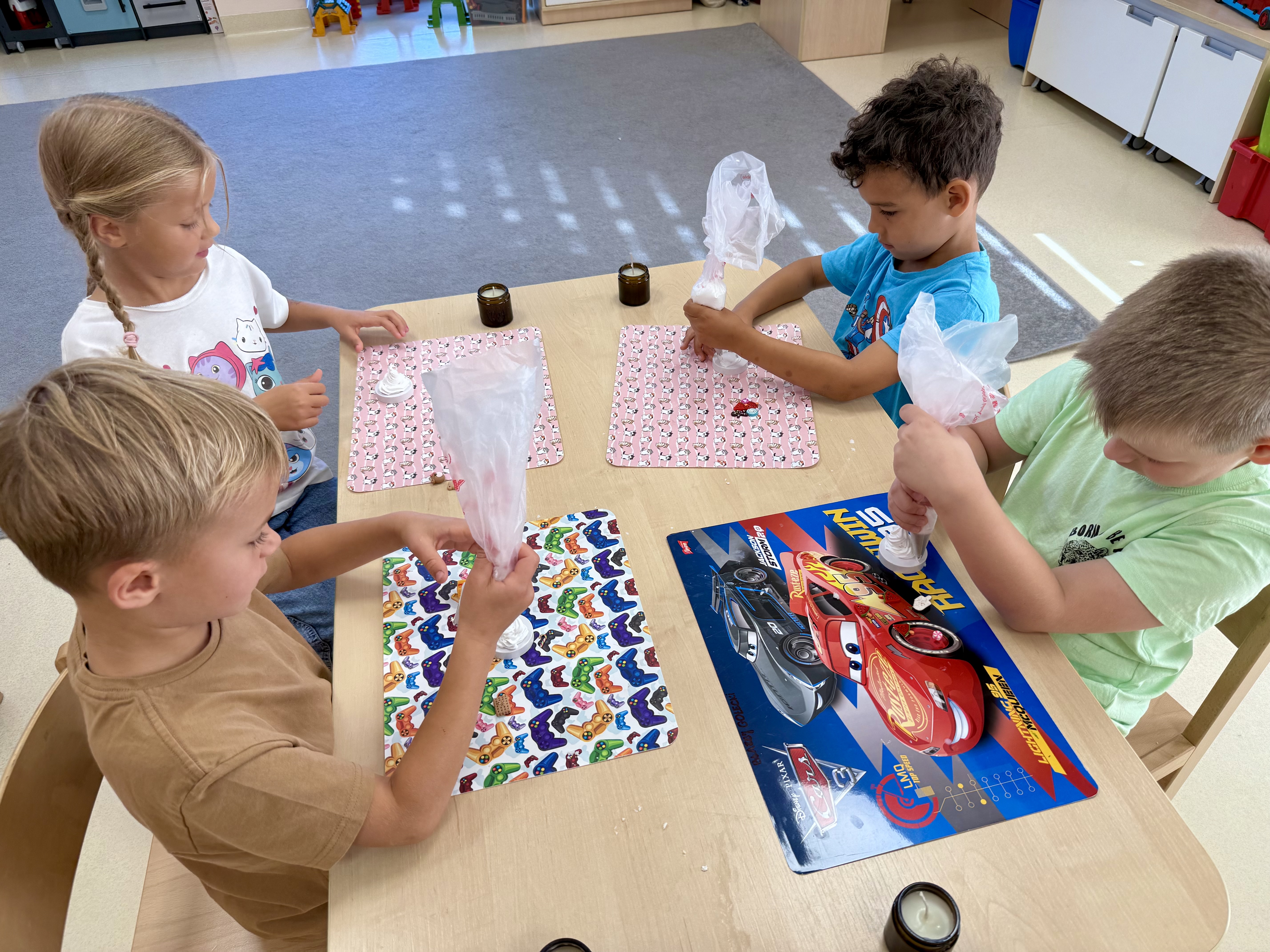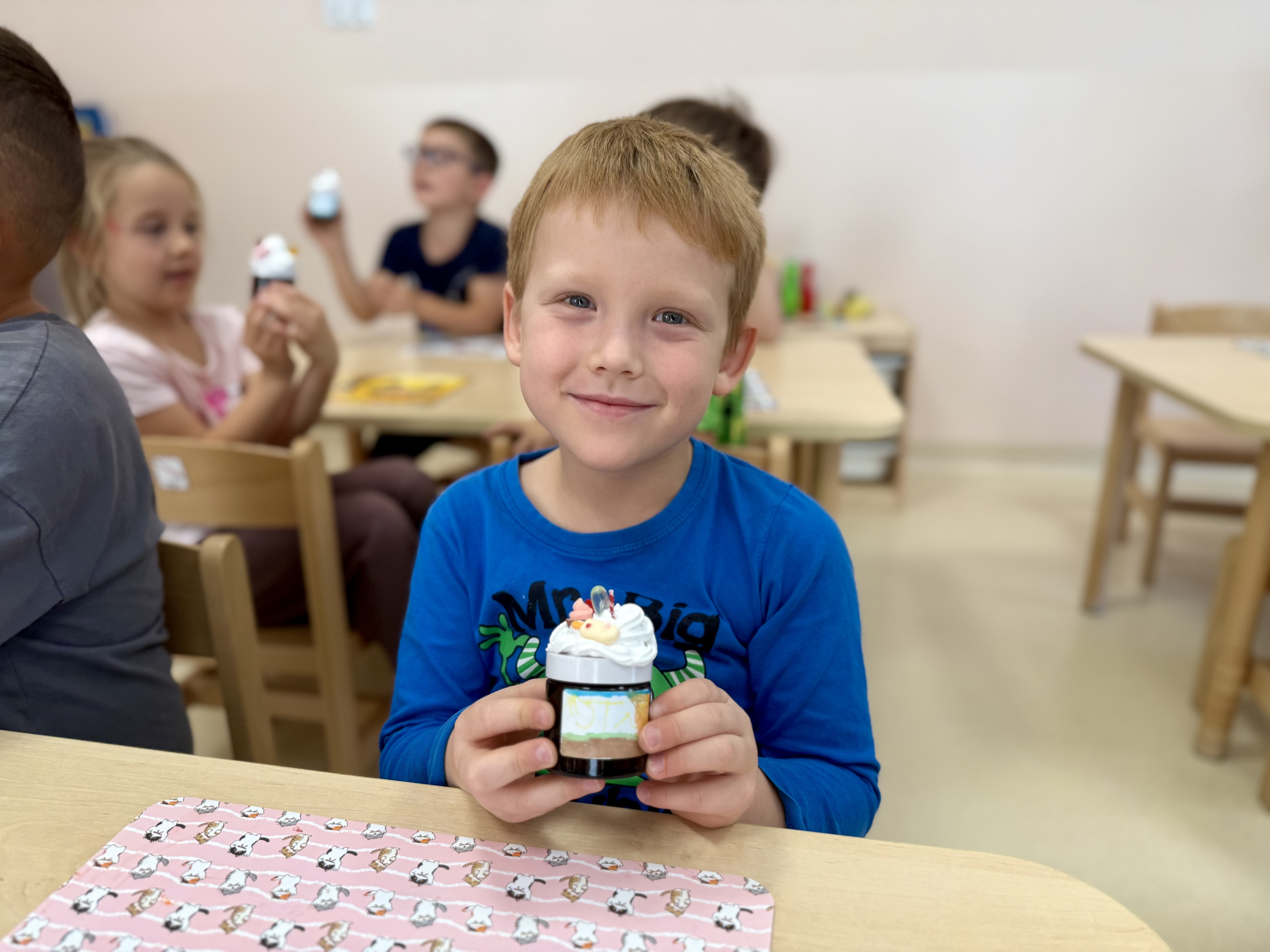 Czy świeczka może być dziełem sztuki? „Kangury” udowodniły, że tak! Dnia 23 września 2025 r. dzieci z tej grupy uczestniczyły w warsztatach woskowych przygotowanych przez firmę Looks Yummy. Przedszkolaki poznały proces powstawania świec i własnoręcznie wykonały zapachowe świeczki w słoiczkach.