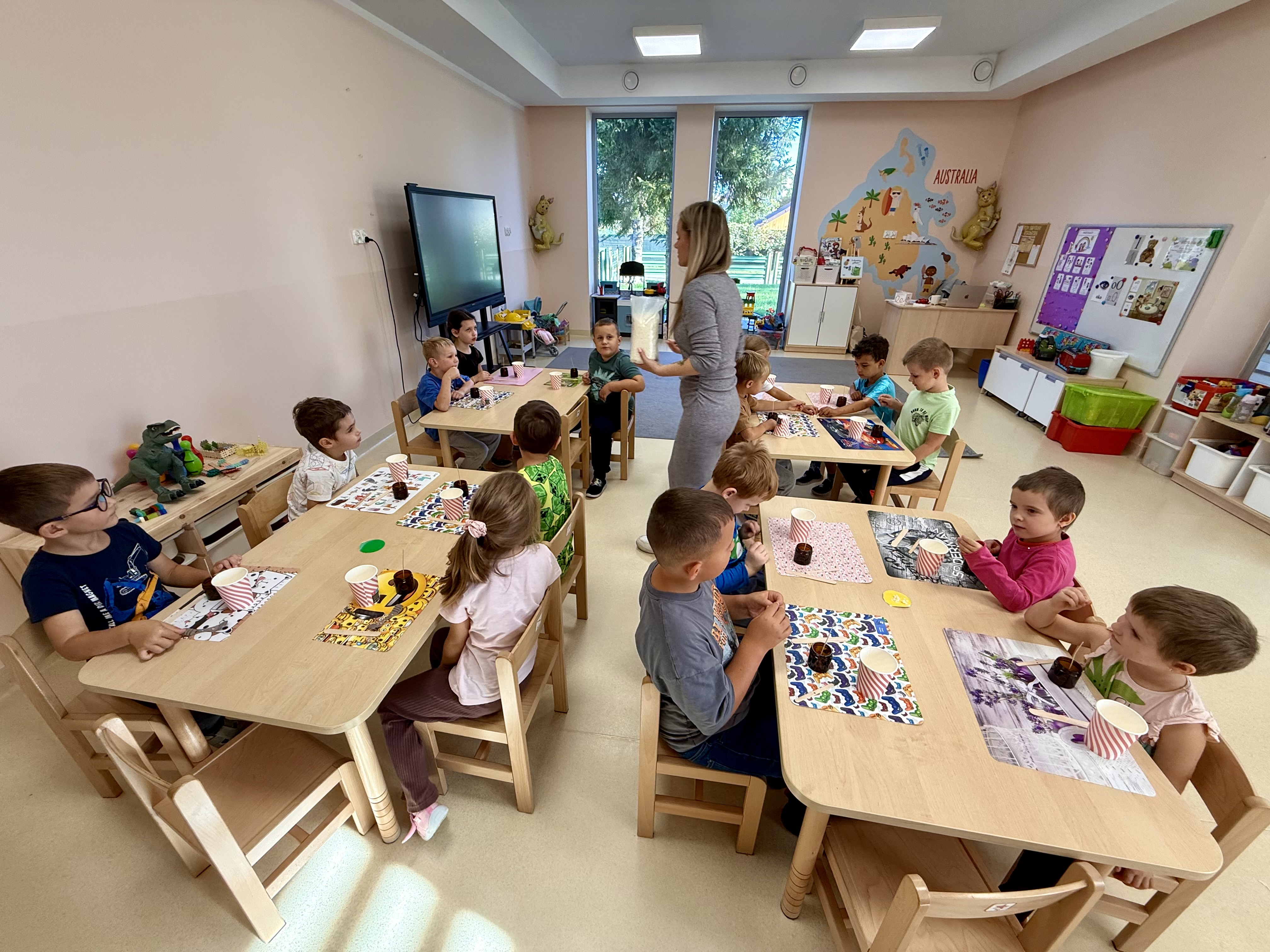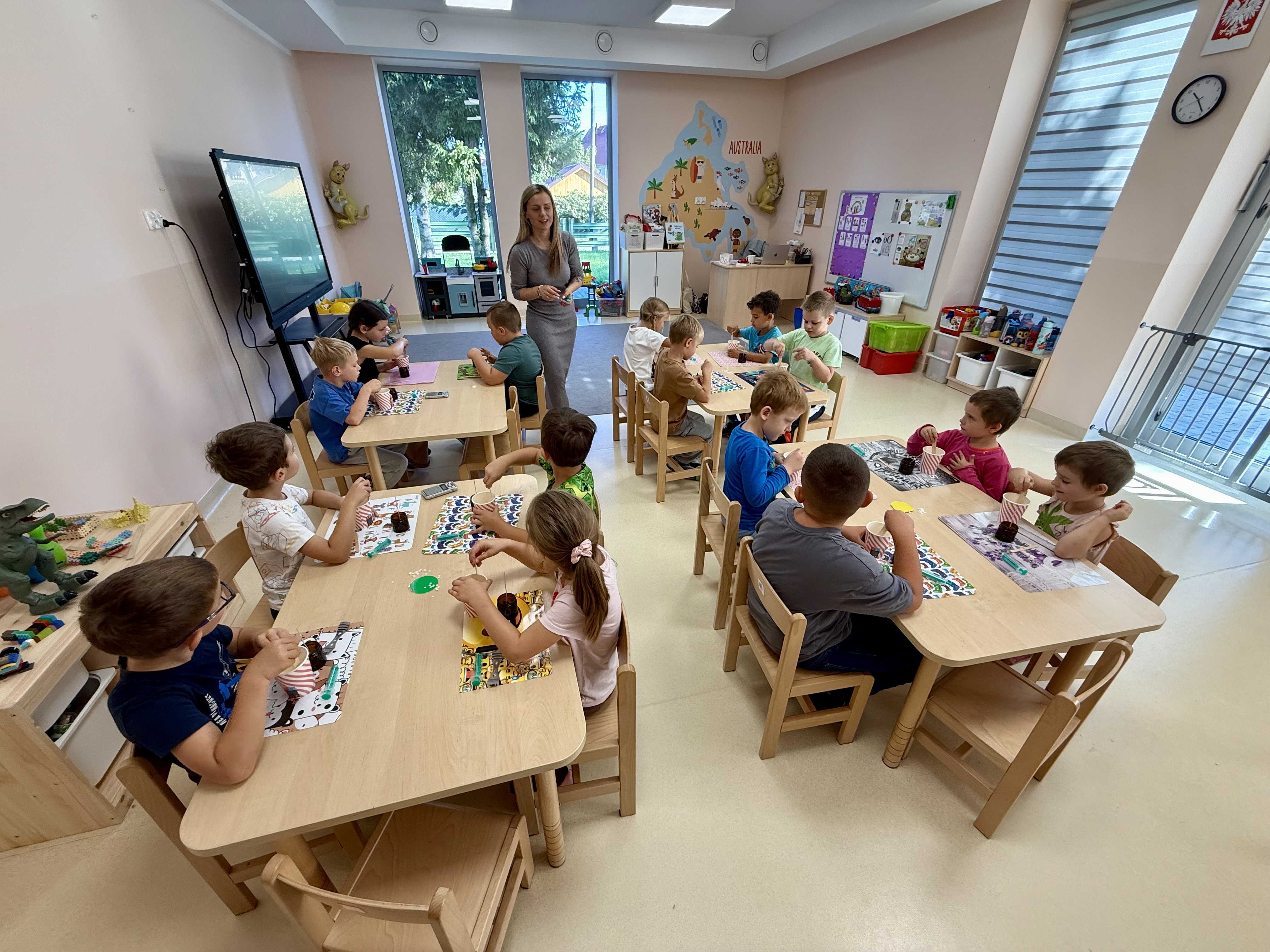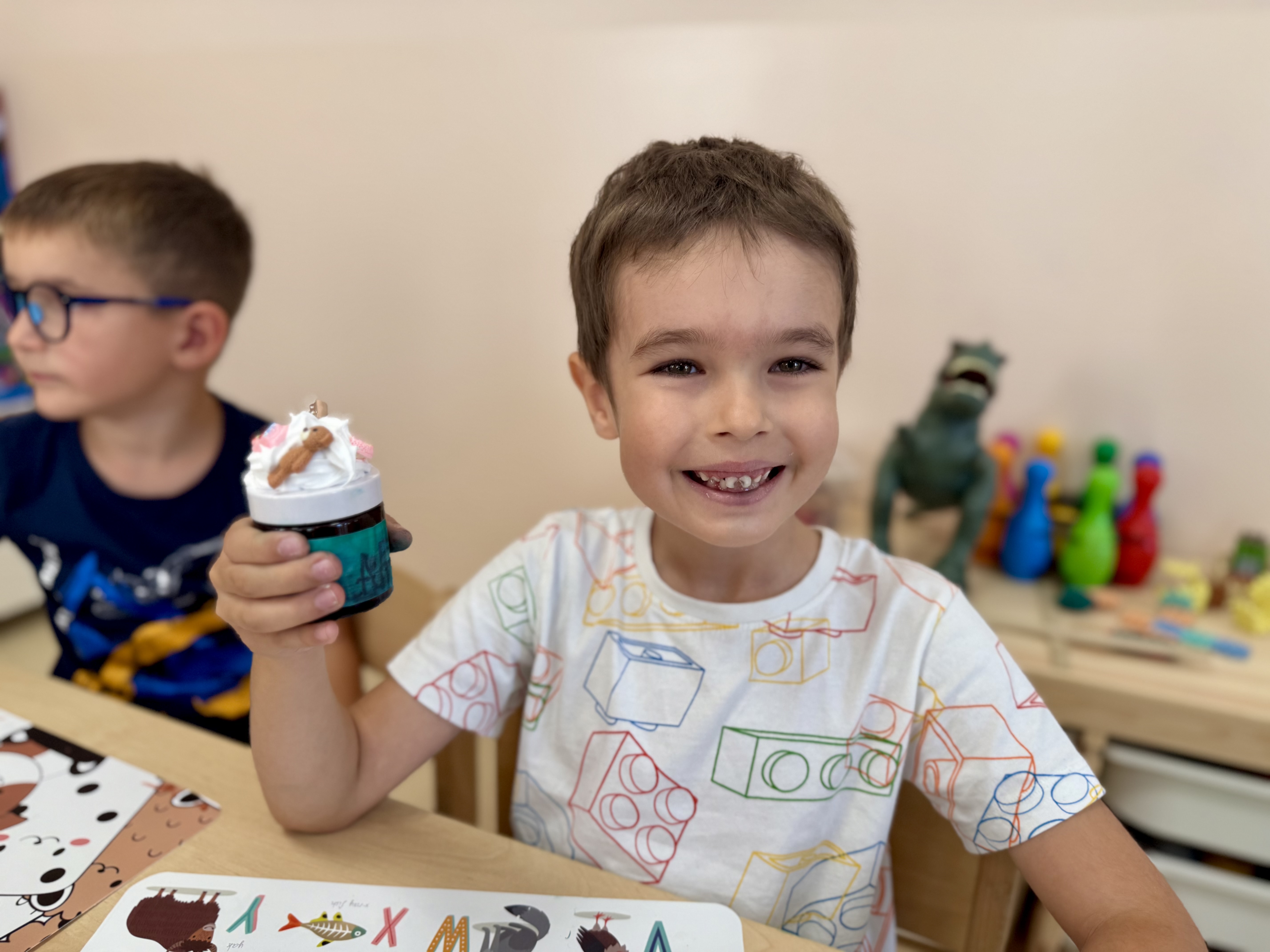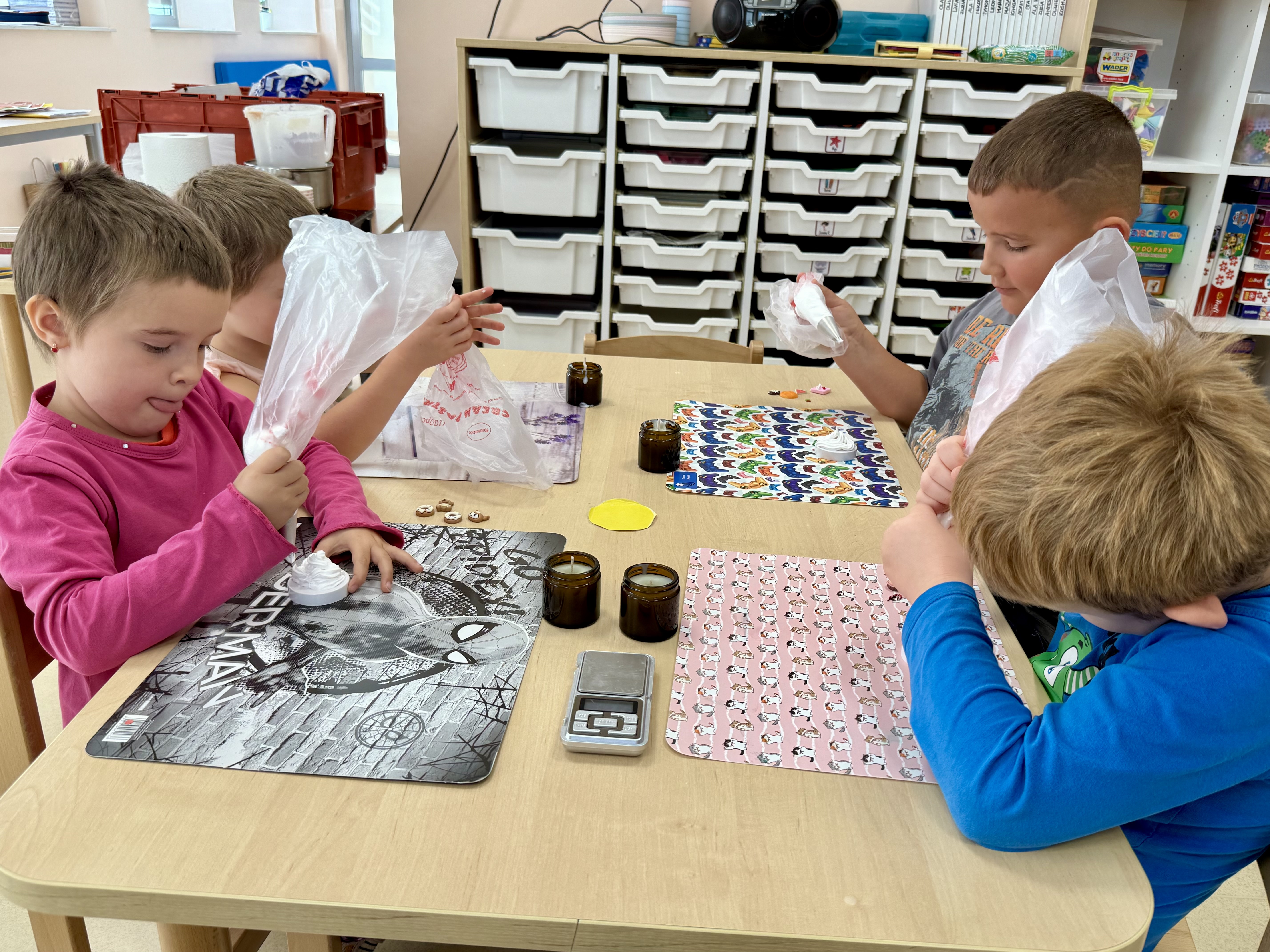 Czy świeczka może być dziełem sztuki? „Kangury” udowodniły, że tak! Dnia 23 września 2025 r. dzieci z tej grupy uczestniczyły w warsztatach woskowych przygotowanych przez firmę Looks Yummy. Przedszkolaki poznały proces powstawania świec i własnoręcznie wykonały zapachowe świeczki w słoiczkach.