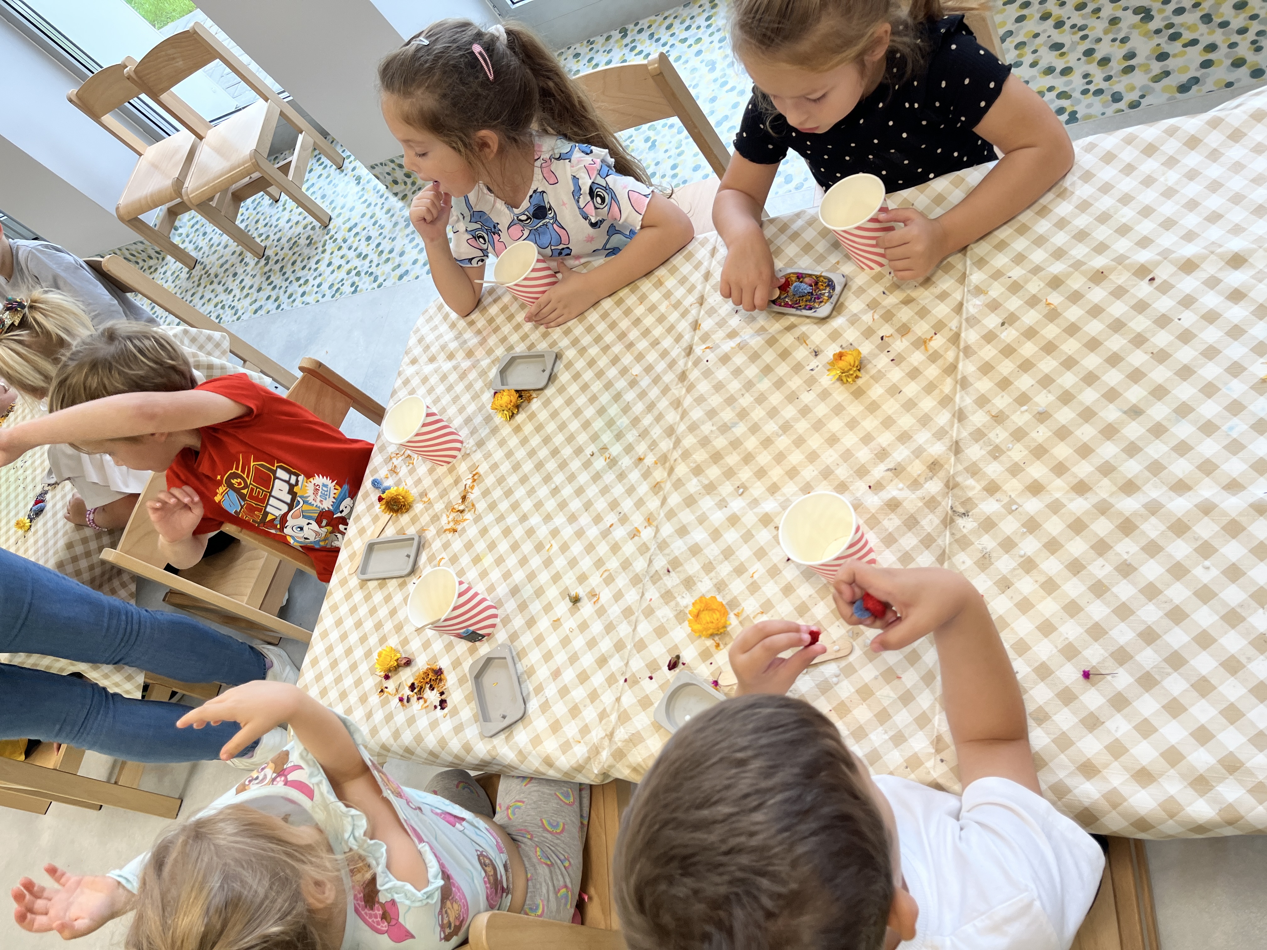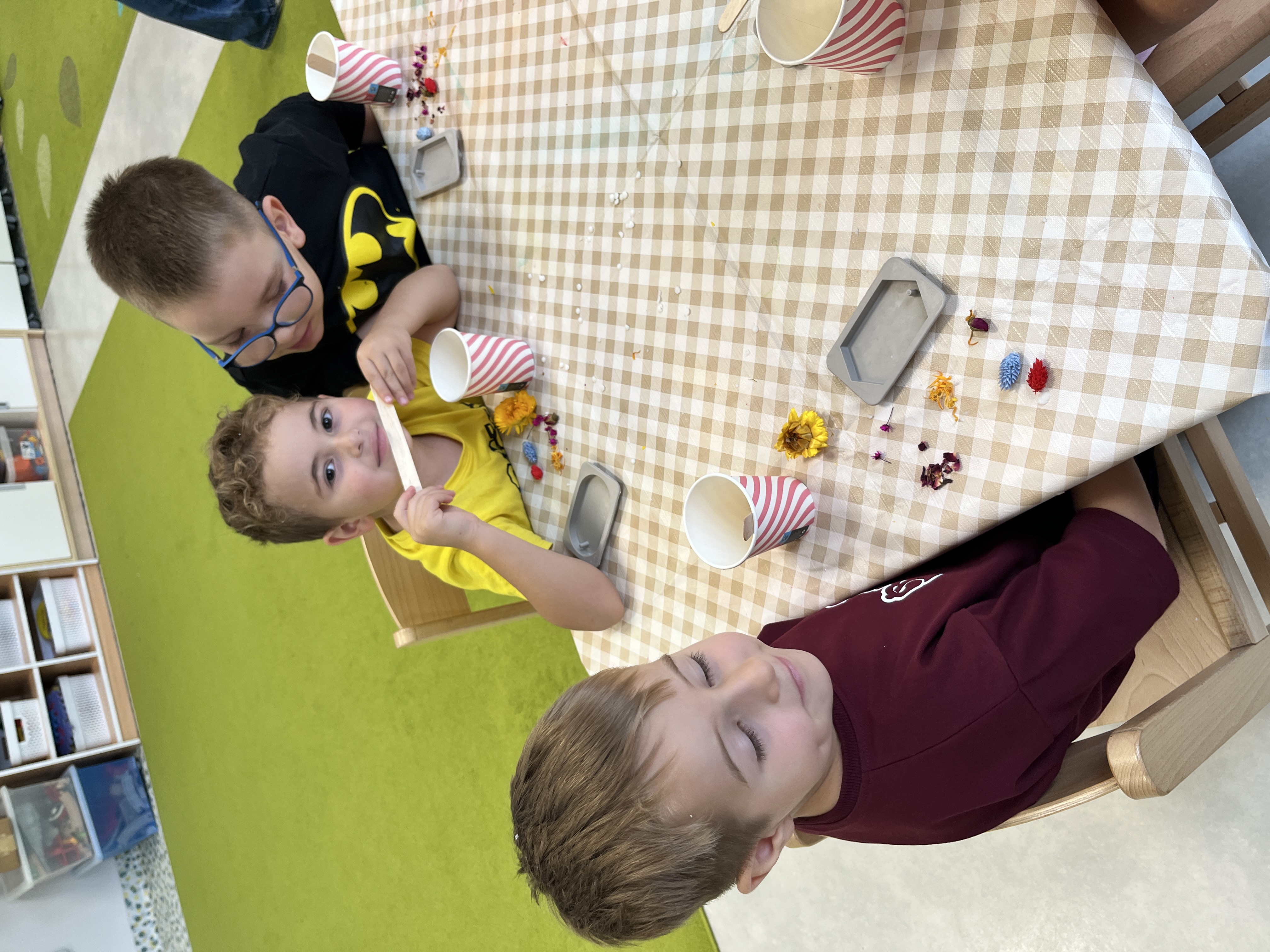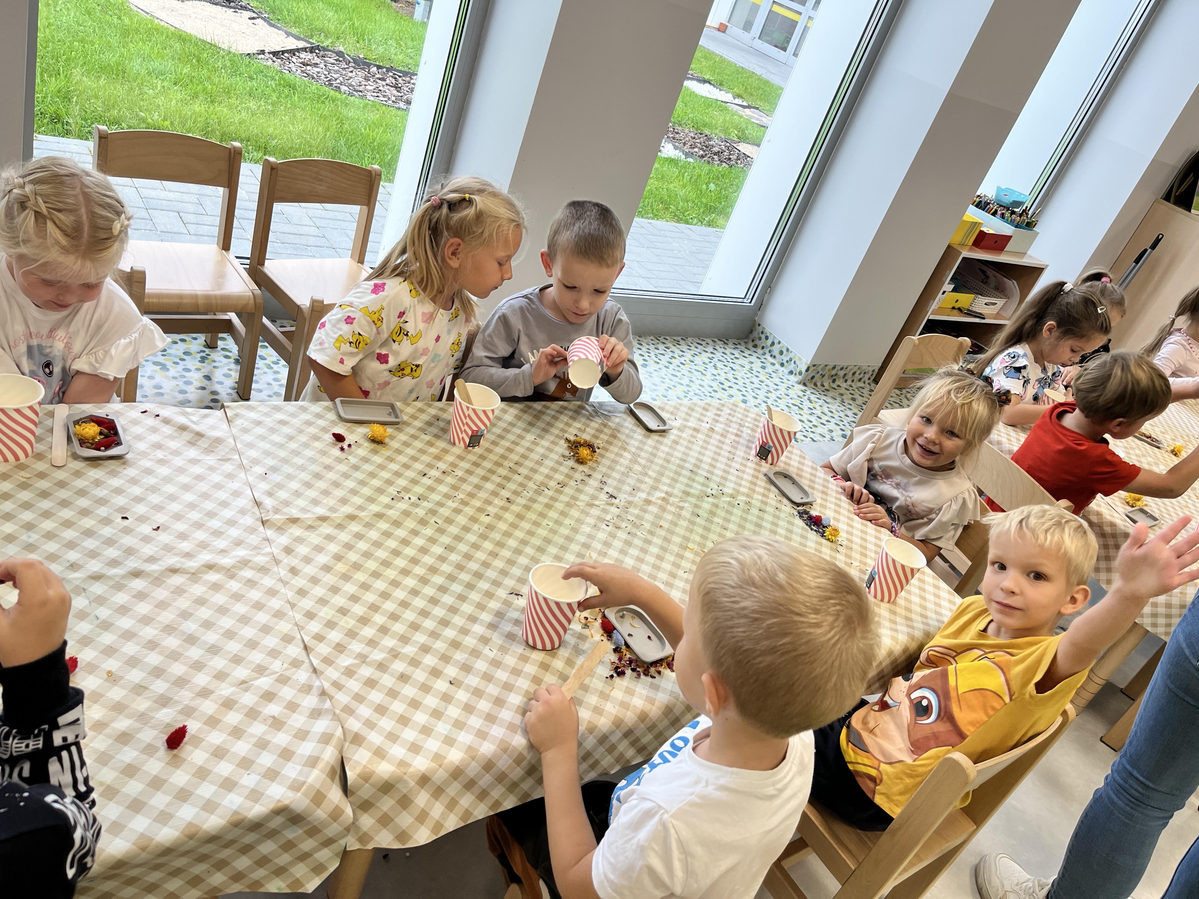 Warsztaty tworzenia zapachowych zawieszek sojowych to zajęcia dla dzieci, które pozwalają zgłębiać i rozwijać naturalne rękodzieło. W naszym przedszkolu mogliśmy uczestniczyć czynnie w ww. warsztatach dnia 22 września, były to grupy: Lisków, Żyraf, Delfinków i Koliberków. Podczas wspólnego eksperymentowania z zapachami i barwami dzieci miały okazję zapoznać się z procesem krzepnięcia wosku, rozwijały swoją wyobraźnię i umiejętności manualne. Każde dziecko własnoręcznie wykonało swoją zawieszkę zapachową, uzupełniało ją suszonymi kwiatami, ziołami i olejkami. Nadało to zawieszkom delikatnego i naturalnego aromatu. Podczas warsztatów panowała atmosfera pełna radości i nowych odkryć.