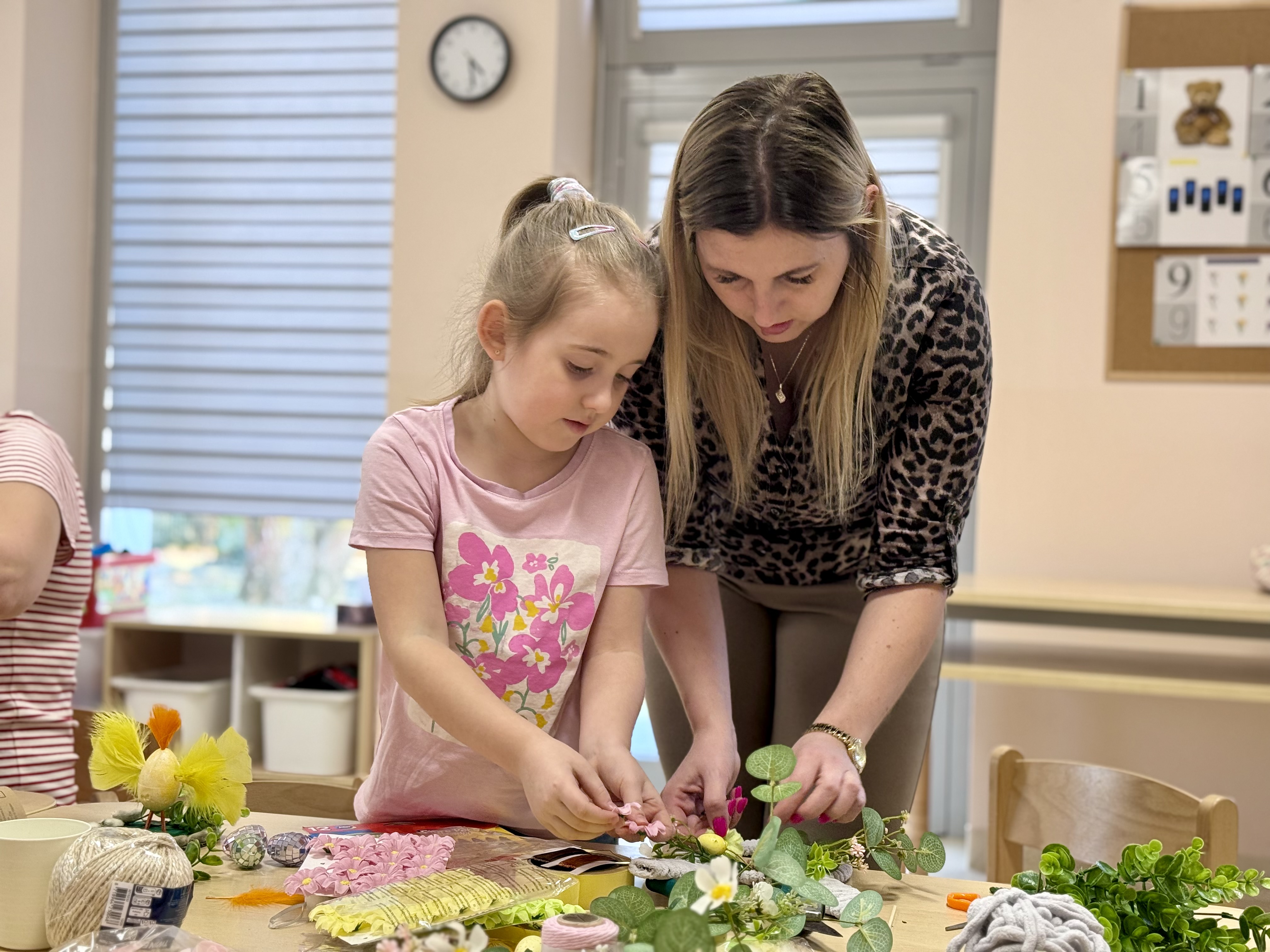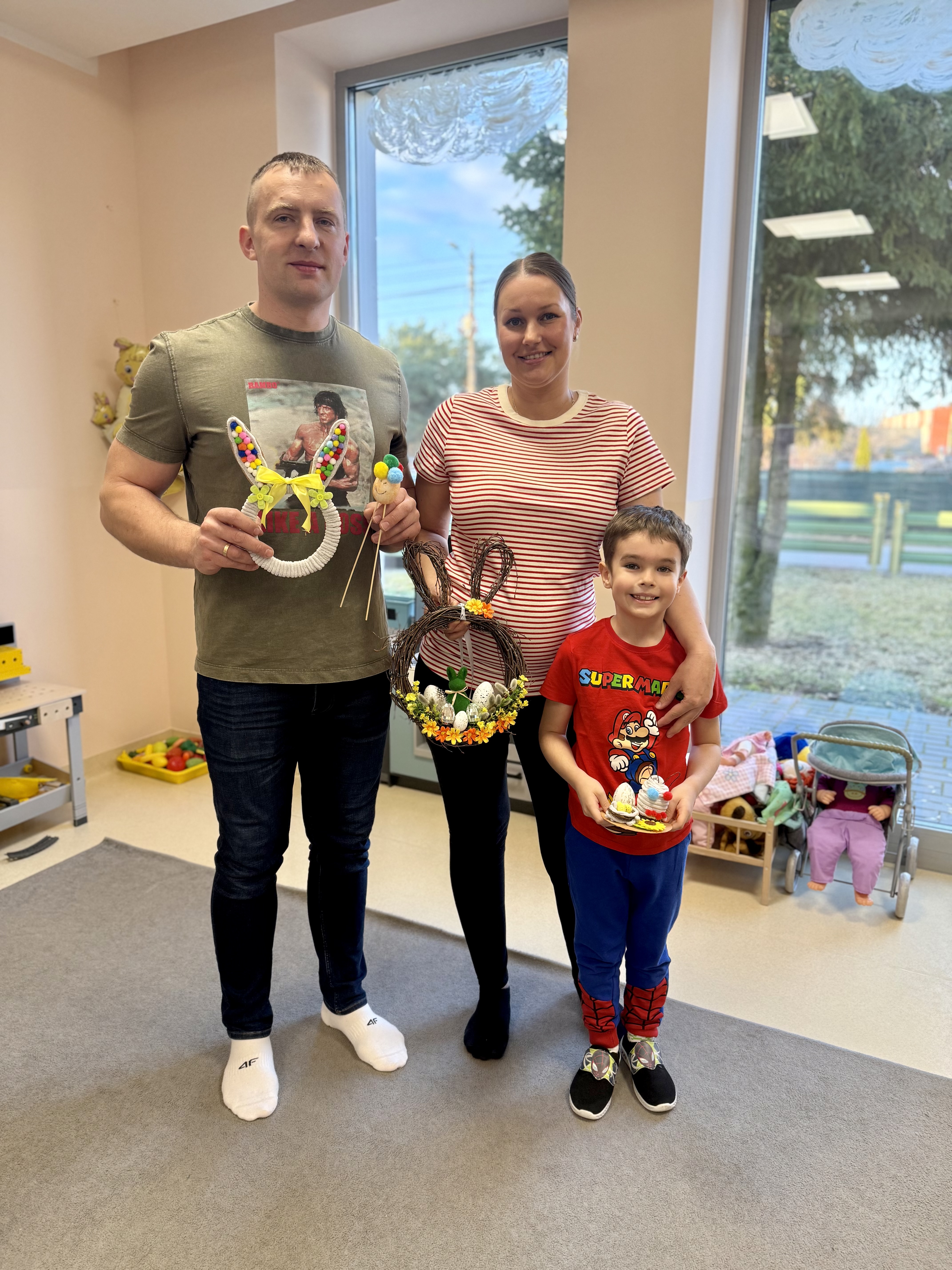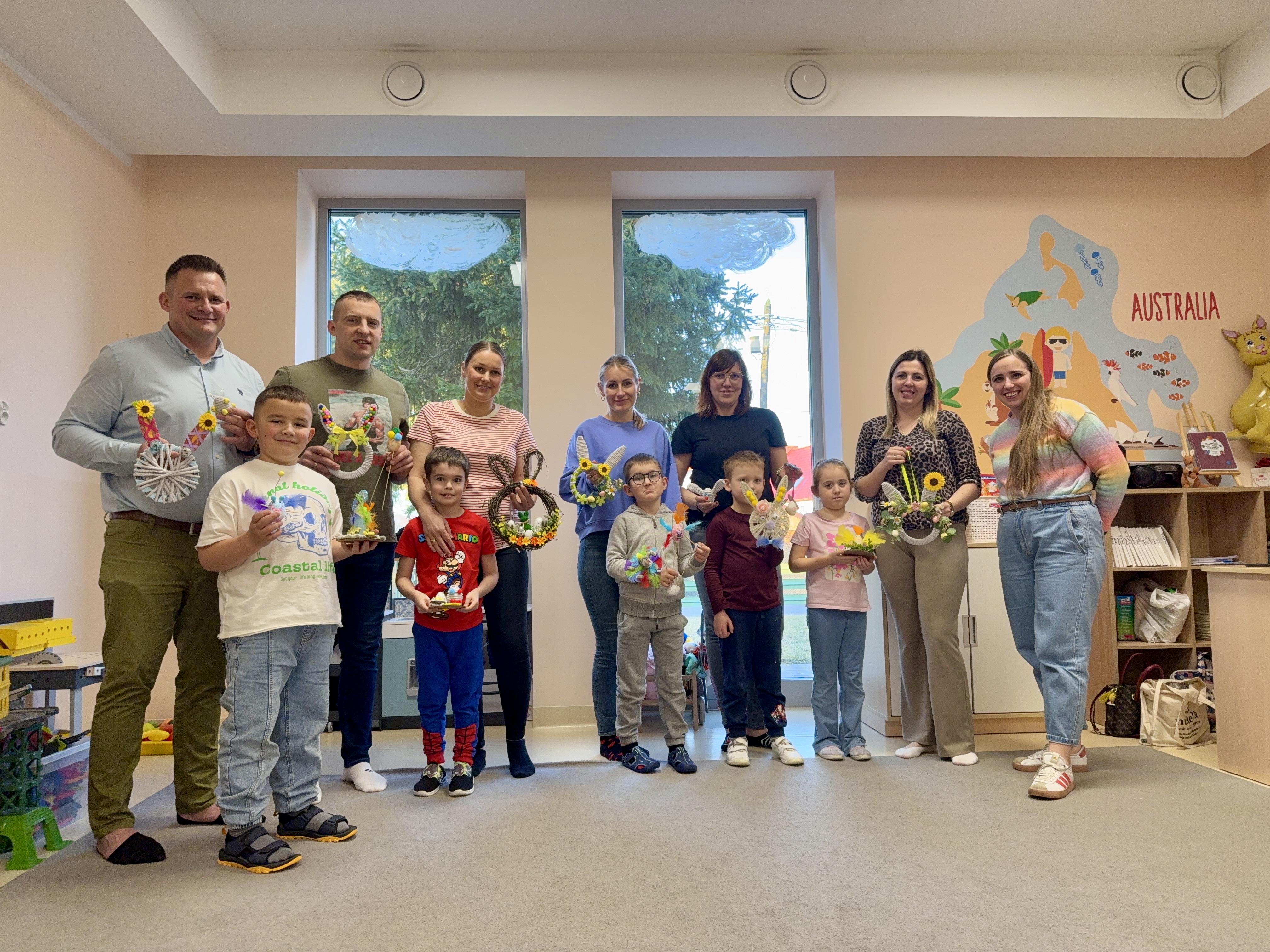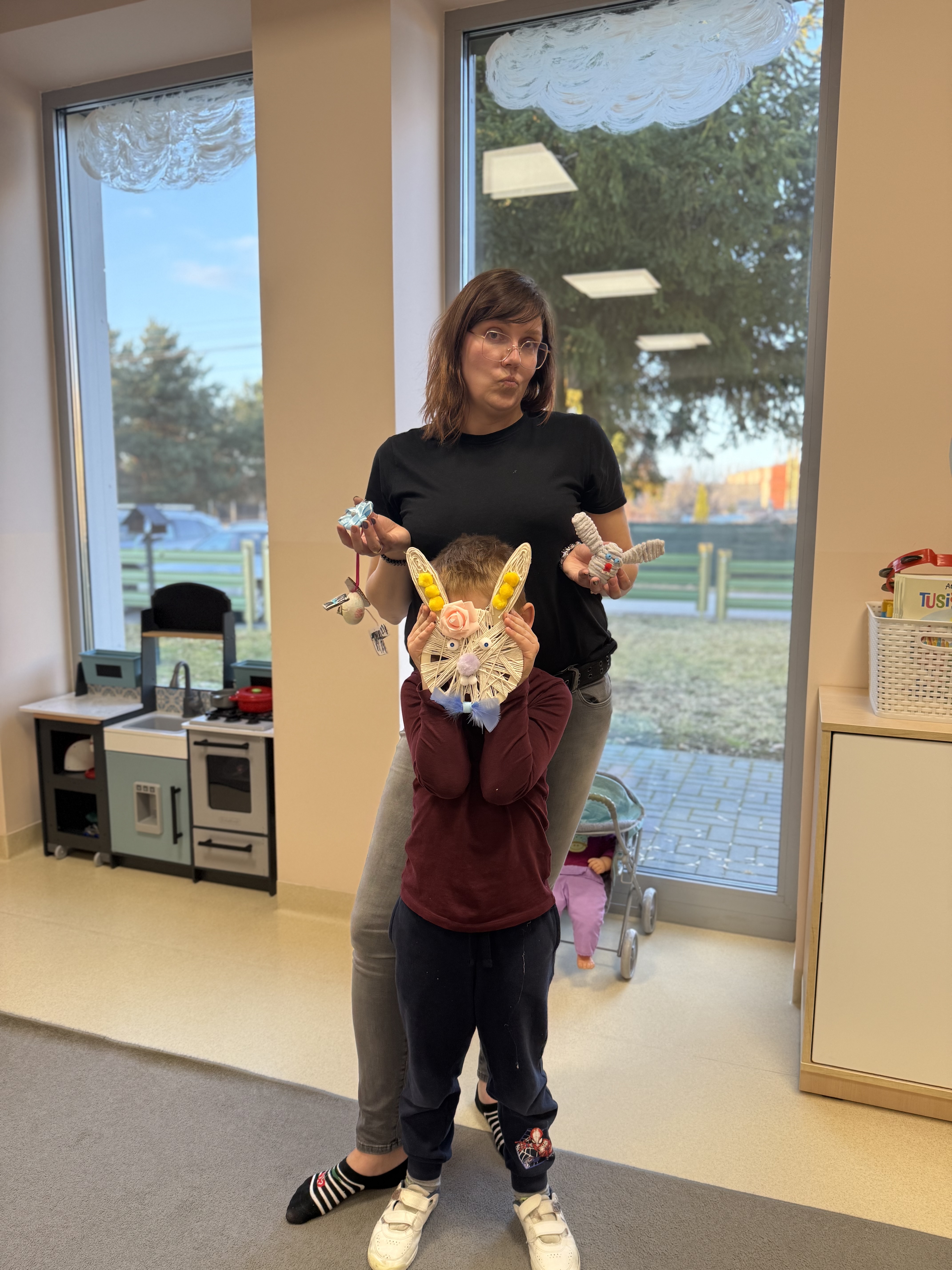 Ze zwykłych materiałów, odrobiny wyobraźni i wspólnego czasu powstały prawdziwe małe dzieła sztuki. A wszystko zaczęło się 17 marca 2026 r., kiedy w grupie „Kangury” odbyły się wielkanocne warsztaty, podczas których dzieci i ich rodzice stworzyli wyjątkowe ozdoby. W ruch poszły delikatne kwiaty, barwne piórka, jajeczka, wiosenne gałązki i mnóstwo świątecznych detali, które sprawiły, że sala nabrała ciepłego, radosnego charakteru. Z tych wszystkich elementów powstały pastelowe stroiki, kolorowe wianki i urocze króliczki z długimi uszami. Dzieci z dumą prezentowały swoje ozdoby, a rodzice z uśmiechem wspierali je na każdym etapie twórczej pracy.