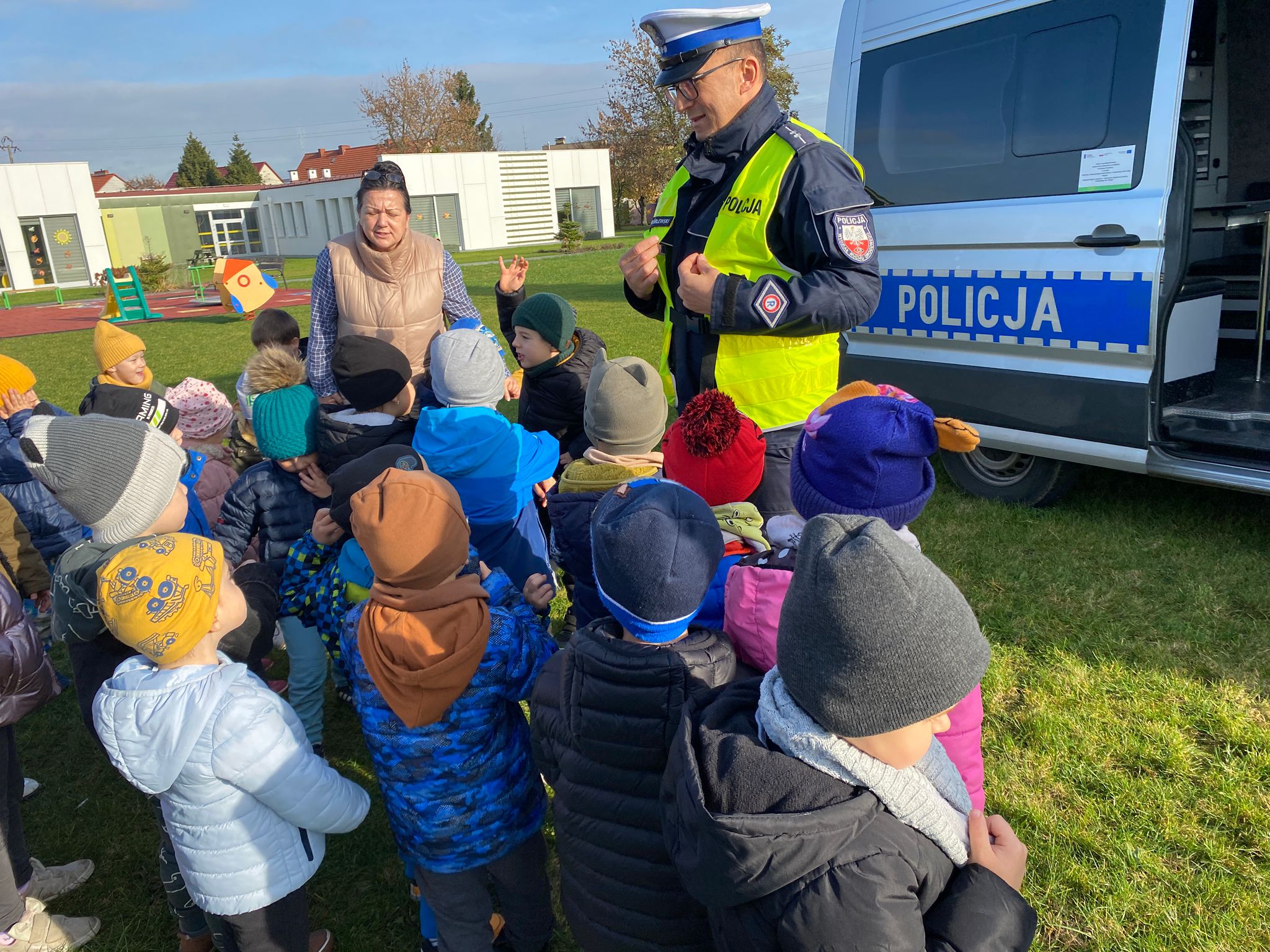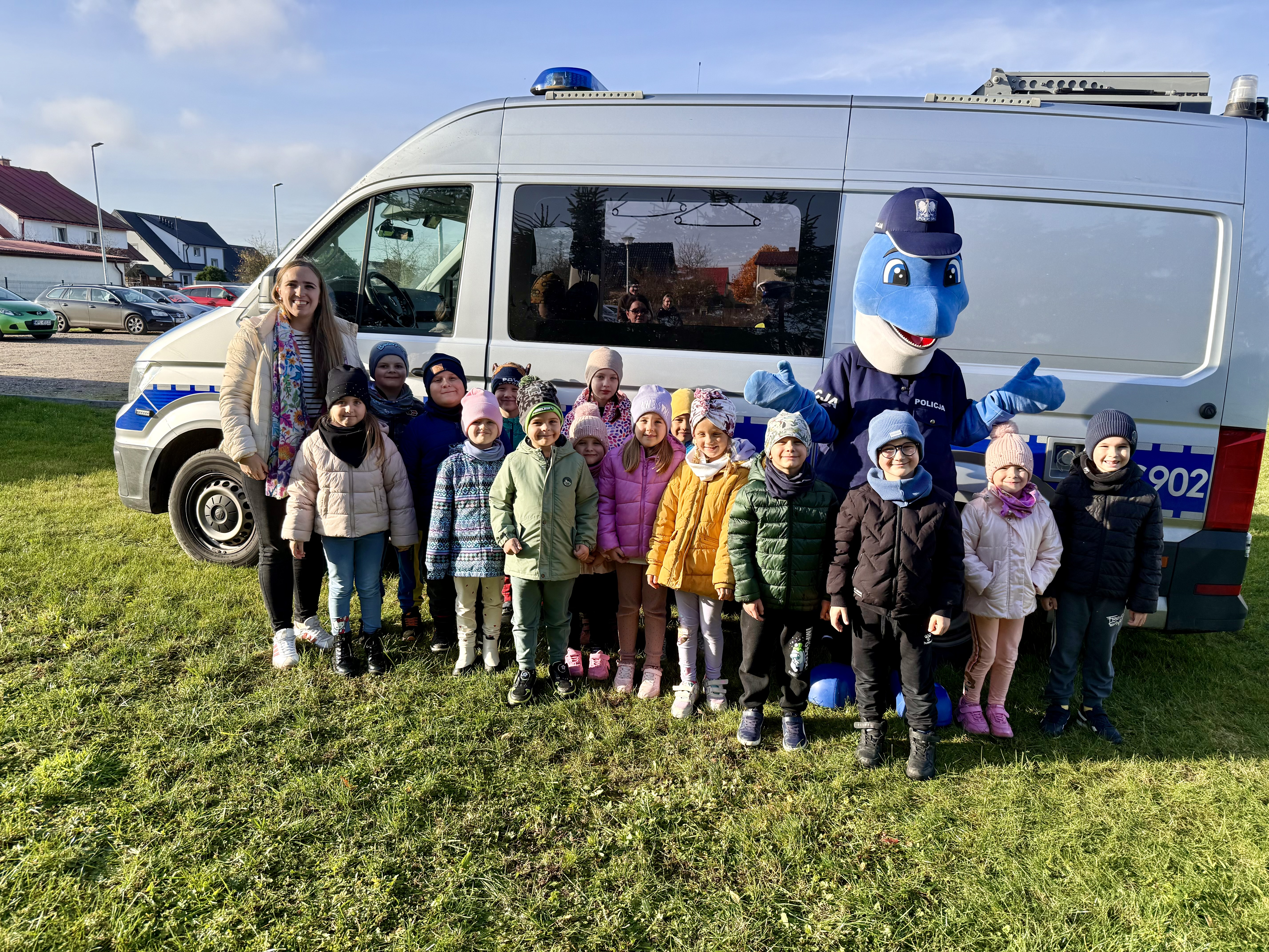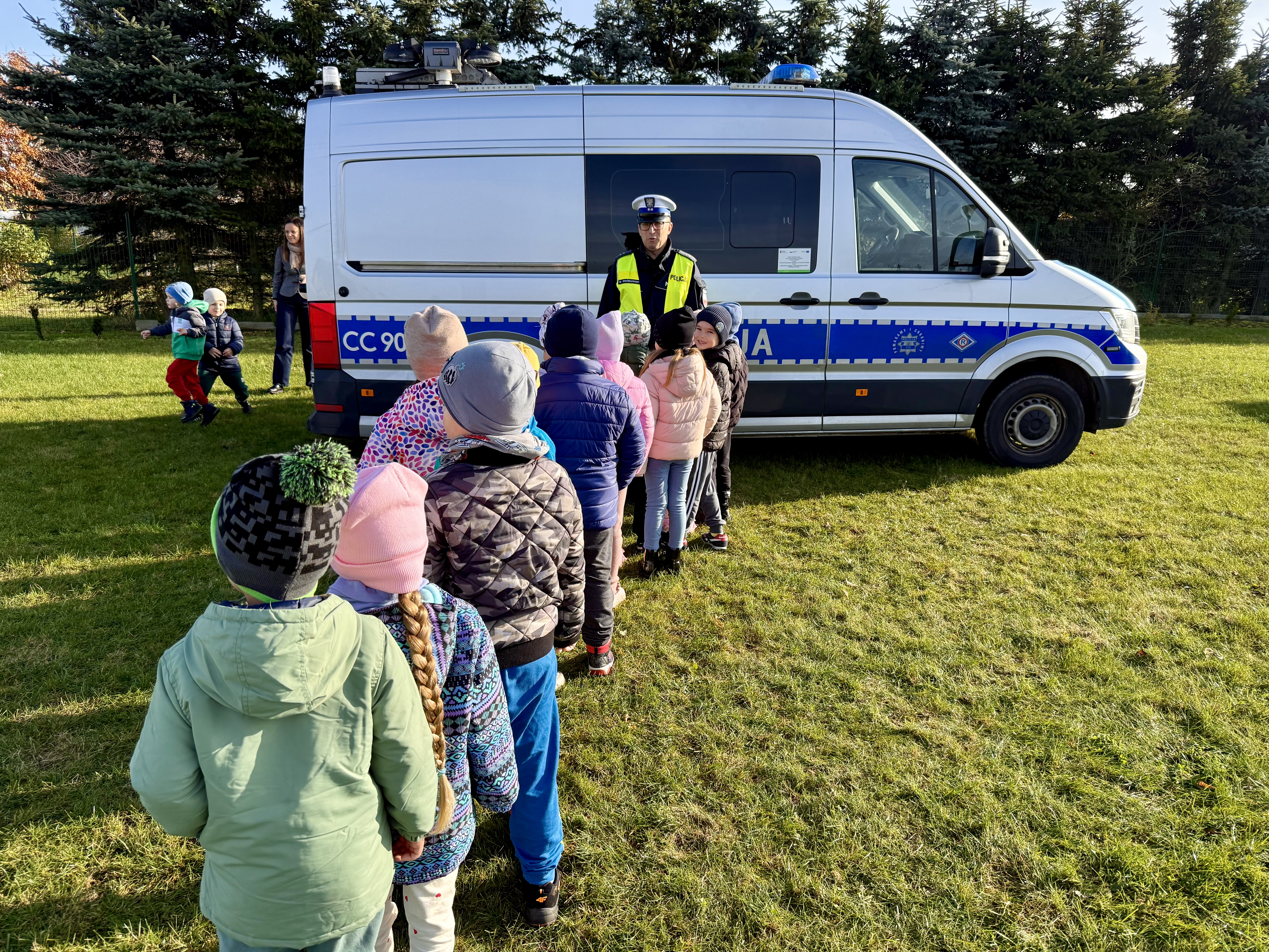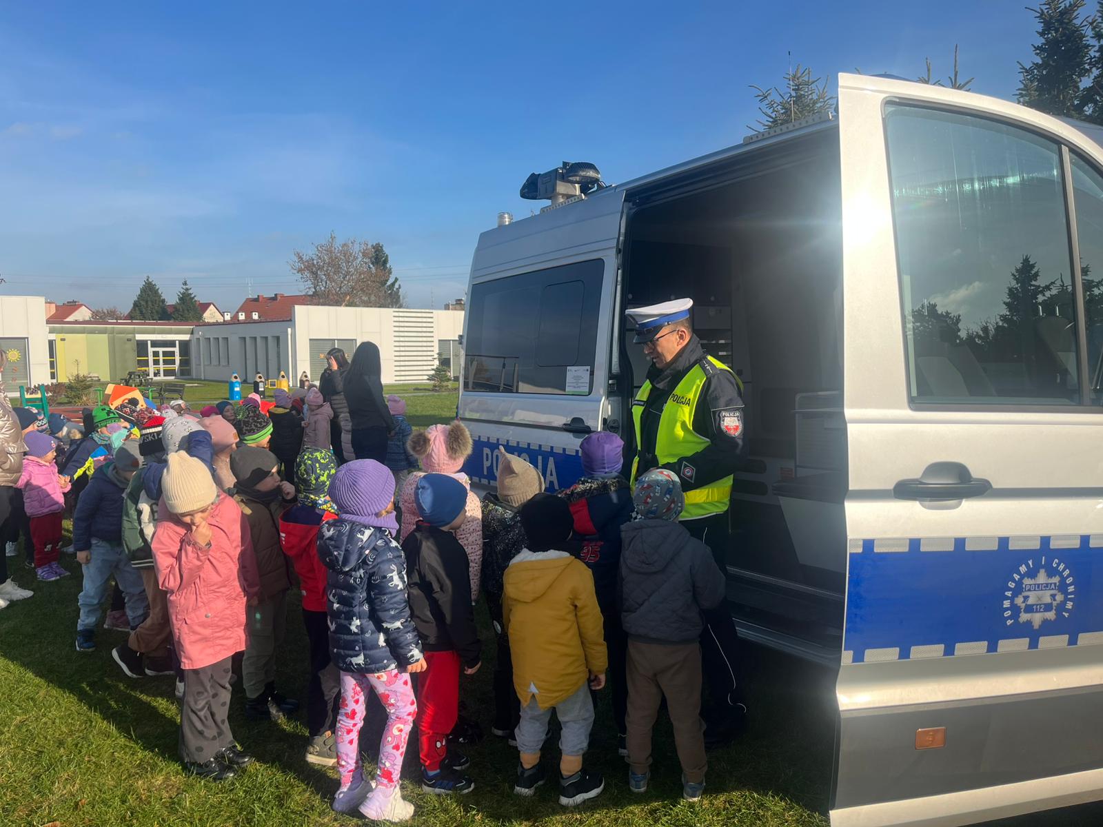 Policjanci z Komendy Powiatowej Policji w Świeciu dnia 04.11.2025r. odwiedzili nasze Przedszkole Samorządowe ,, Pod Kasztankiem” w Laskowicach. Spotkanie miało charakter edukacyjno-profilaktyczny. Celem było przypomnienie dzieciom zasad bezpiecznego zachowania w różnych sytuacjach, zarówno w drodze do przedszkola jak i podczas zabawy. Na zakończenie spotkania dzieci mogły obejrzeć radiowóz policyjny oraz sprzęt używany w codziennej pracy funkcjonariuszy.