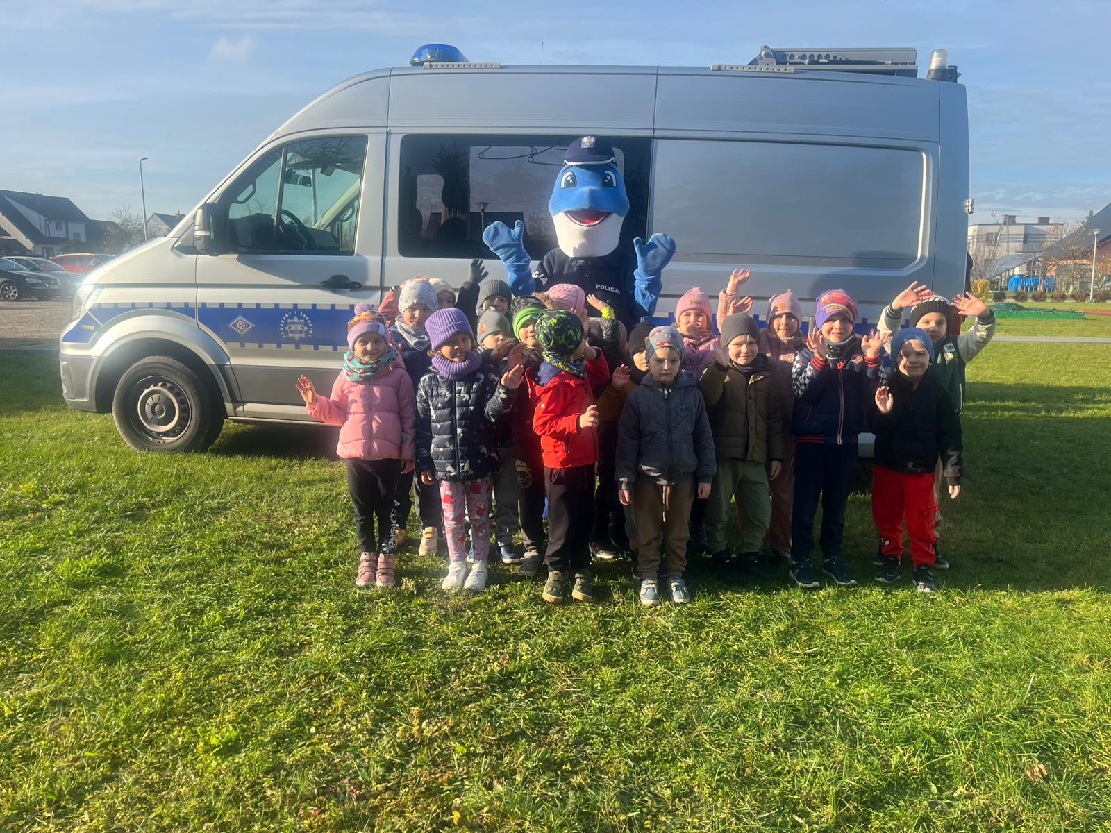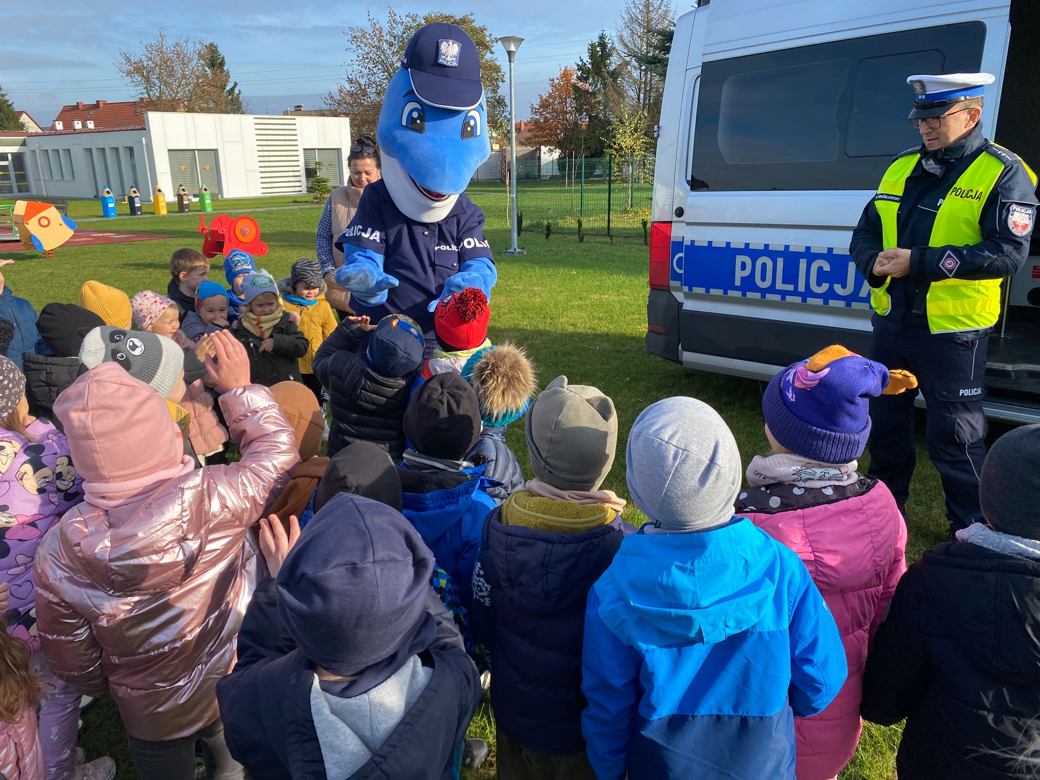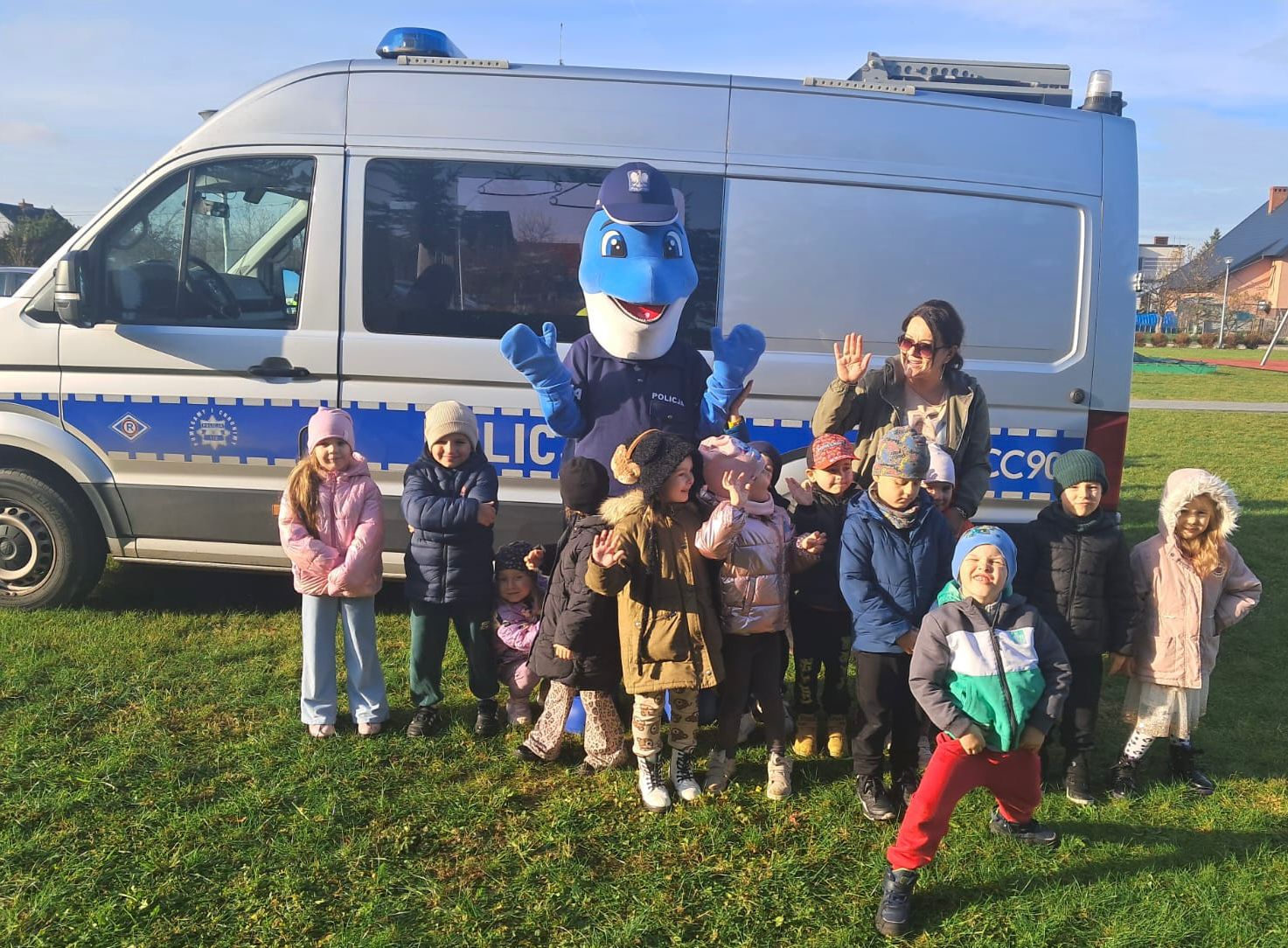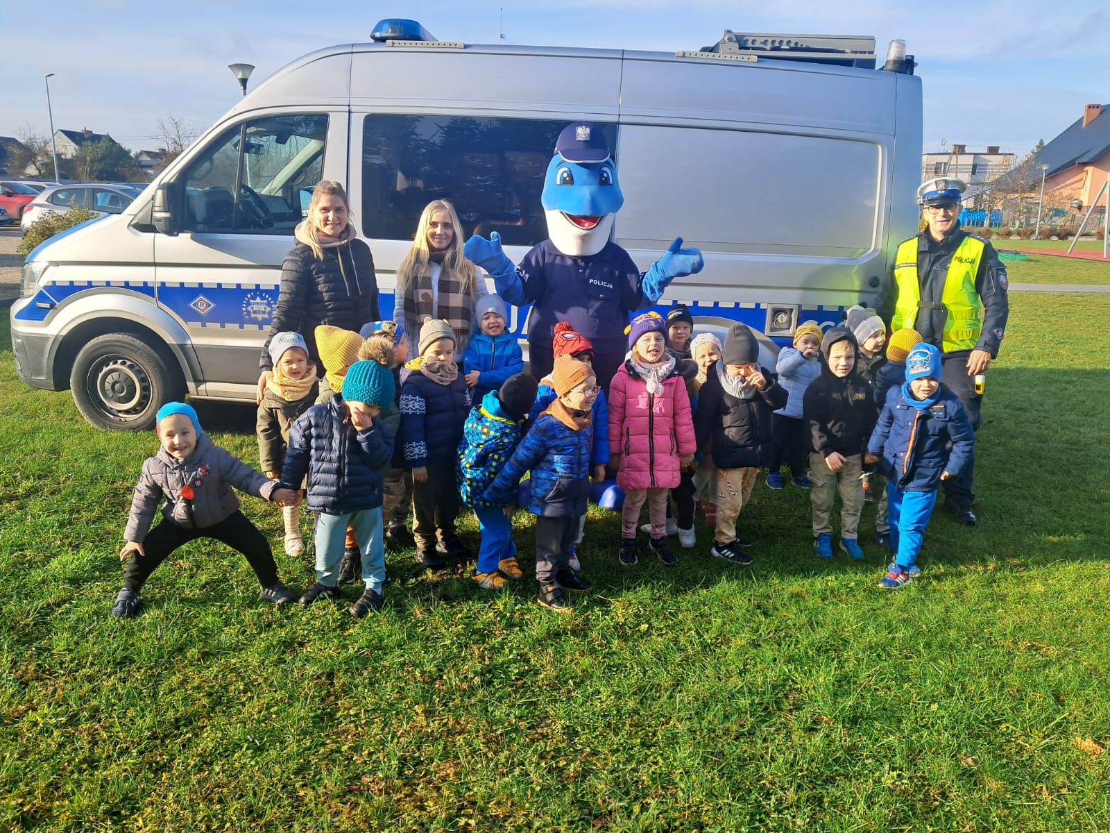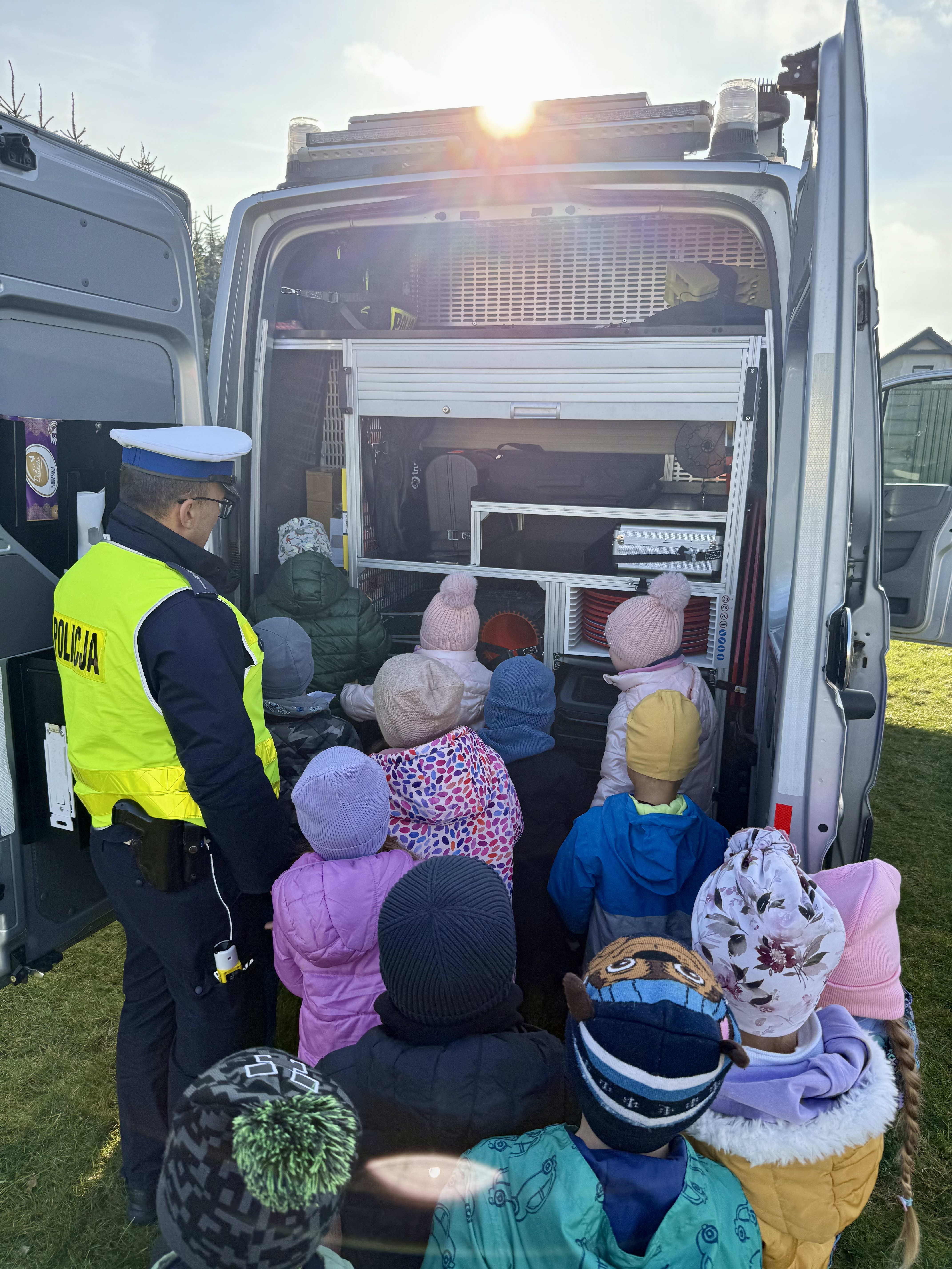 Policjanci z Komendy Powiatowej Policji w Świeciu dnia 04.11.2025r. odwiedzili nasze Przedszkole Samorządowe ,, Pod Kasztankiem” w Laskowicach. Spotkanie miało charakter edukacyjno-profilaktyczny. Celem było przypomnienie dzieciom zasad bezpiecznego zachowania w różnych sytuacjach, zarówno w drodze do przedszkola jak i podczas zabawy. Na zakończenie spotkania dzieci mogły obejrzeć radiowóz policyjny oraz sprzęt używany w codziennej pracy funkcjonariuszy.