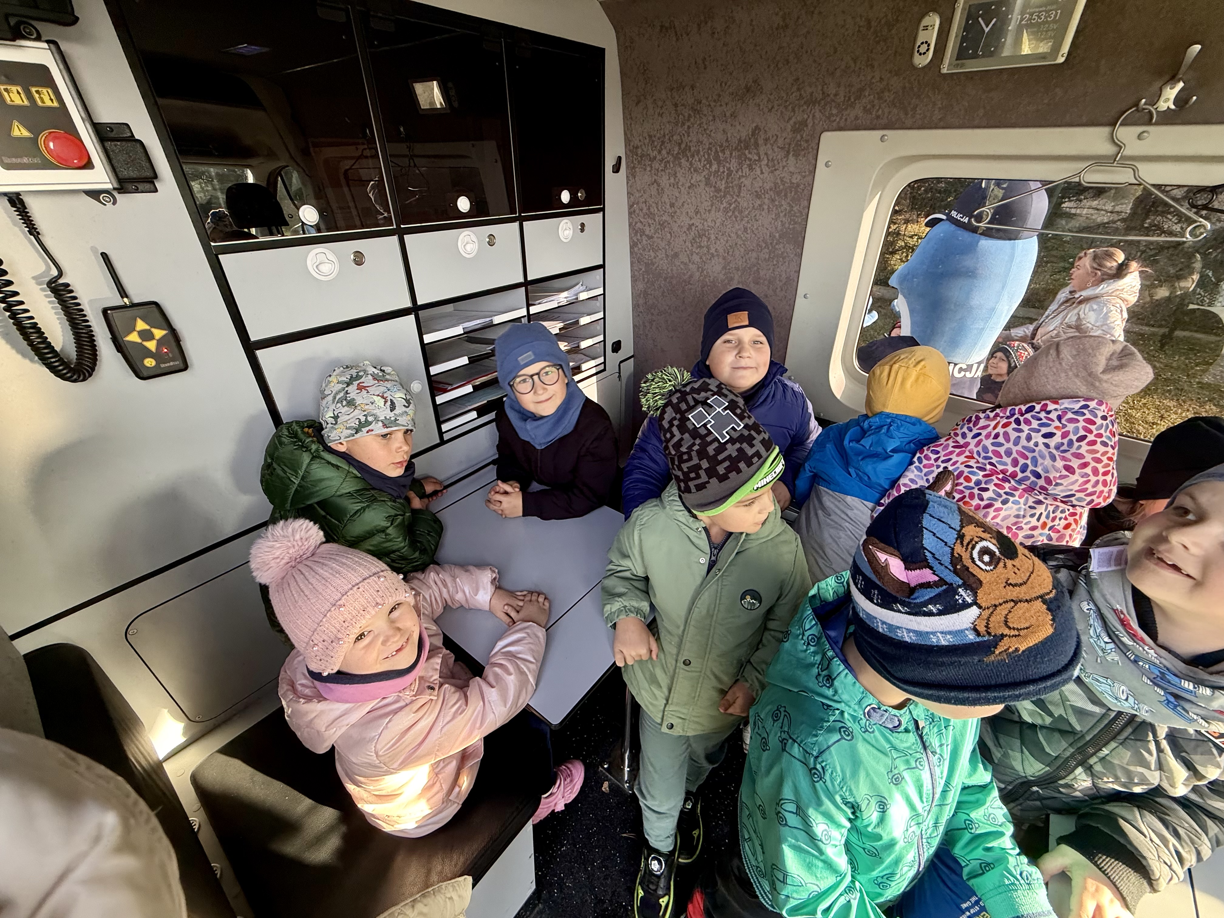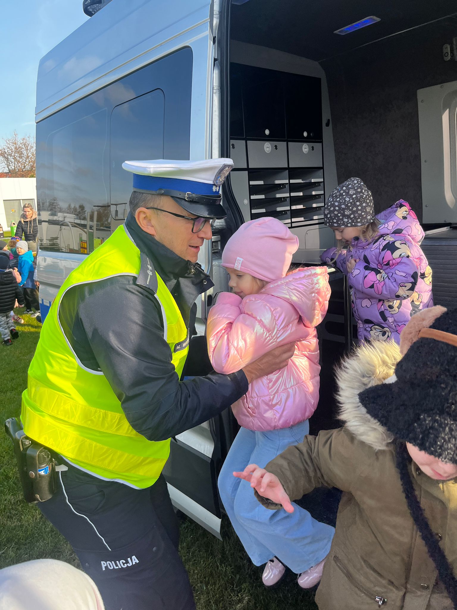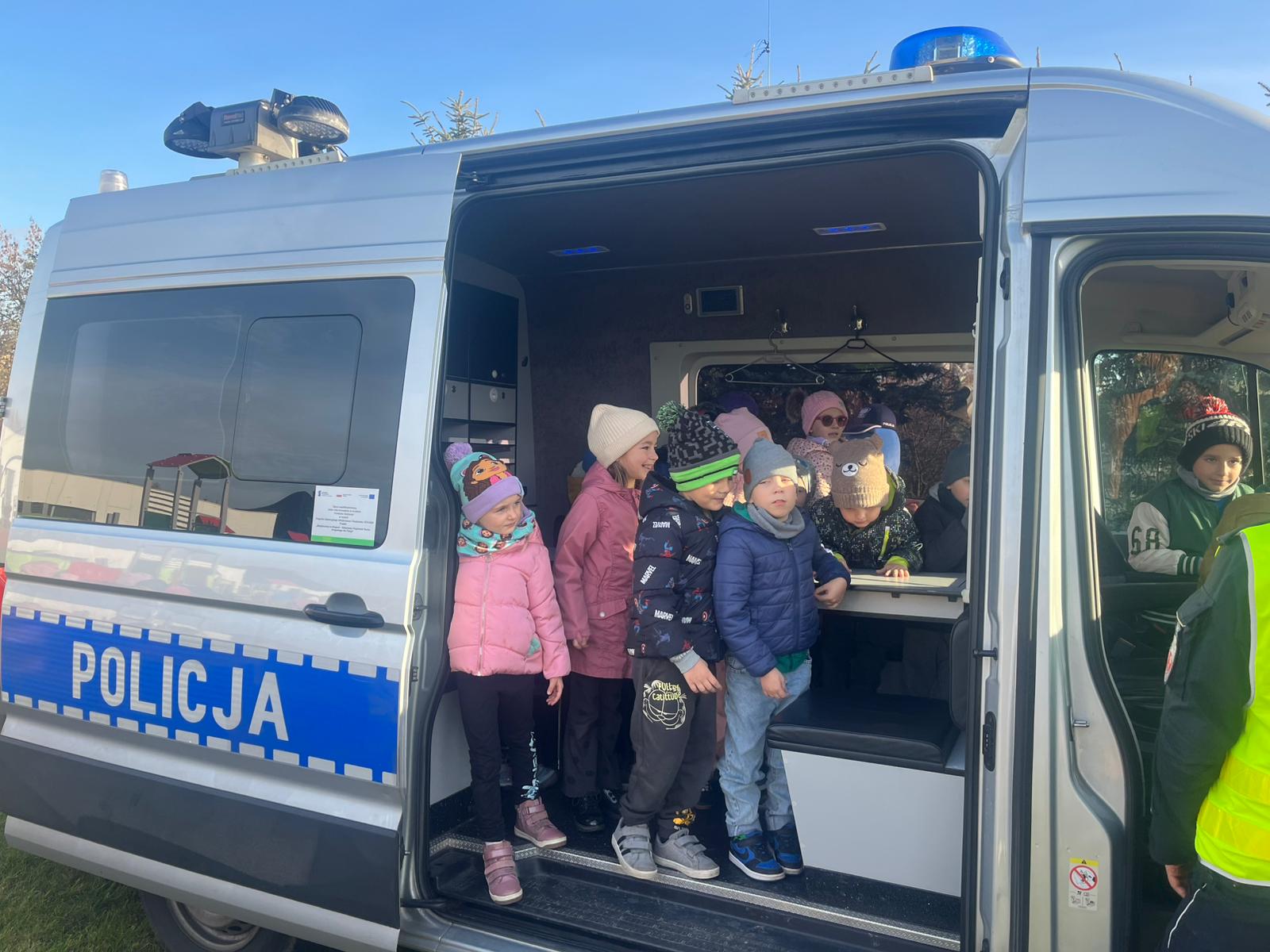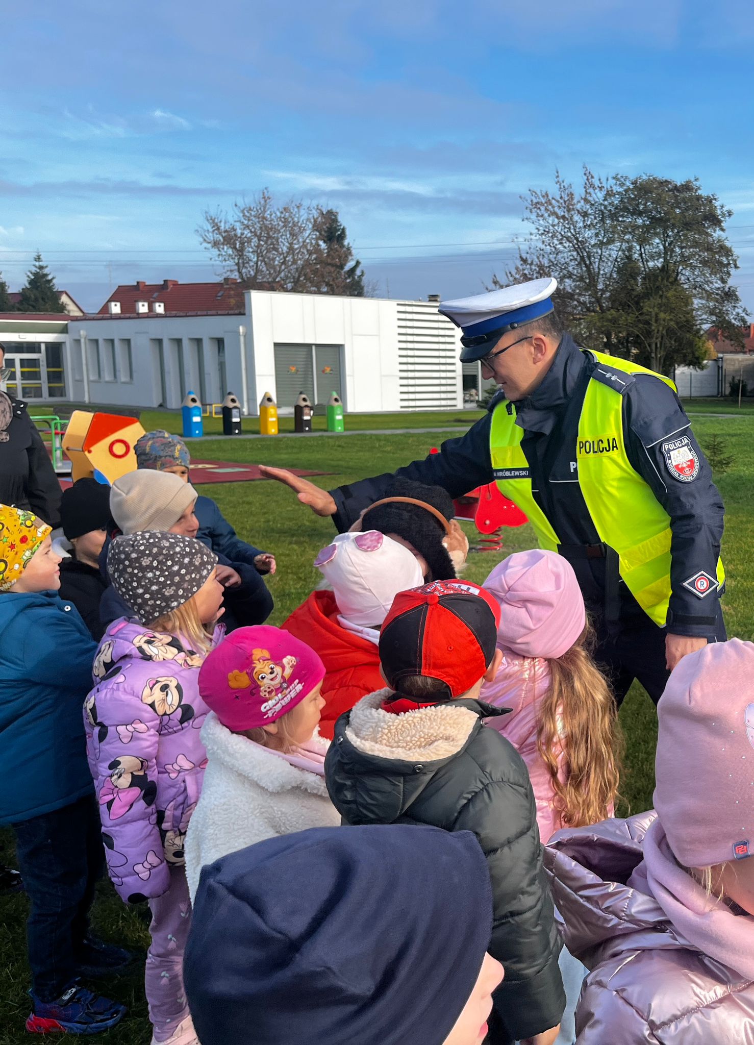Policjanci z Komendy Powiatowej Policji w Świeciu dnia 04.11.2025r. odwiedzili nasze Przedszkole Samorządowe ,, Pod Kasztankiem” w Laskowicach. Spotkanie miało charakter edukacyjno-profilaktyczny. Celem było przypomnienie dzieciom zasad bezpiecznego zachowania w różnych sytuacjach, zarówno w drodze do przedszkola jak i podczas zabawy. Na zakończenie spotkania dzieci mogły obejrzeć radiowóz policyjny oraz sprzęt używany w codziennej pracy funkcjonariuszy.