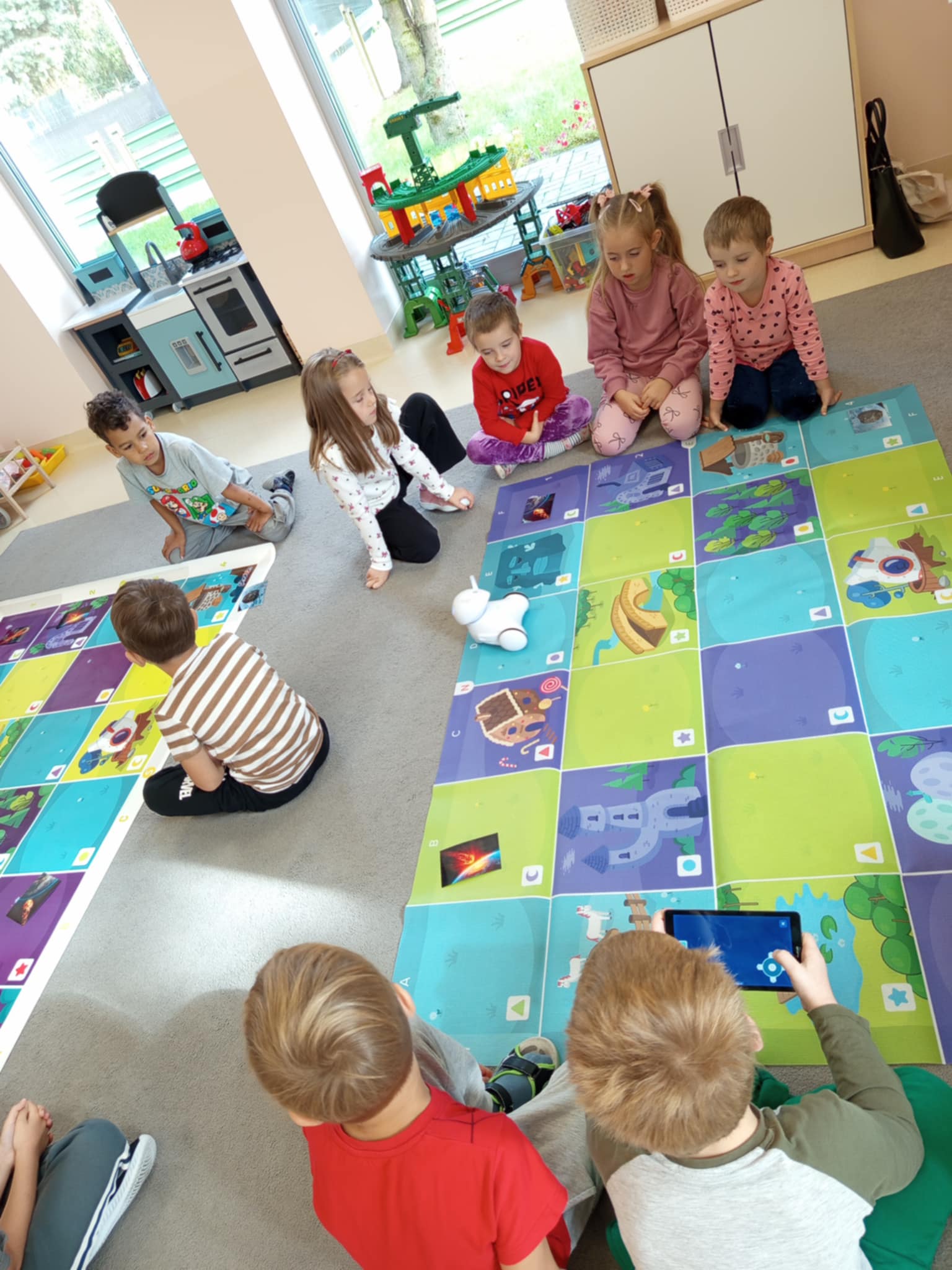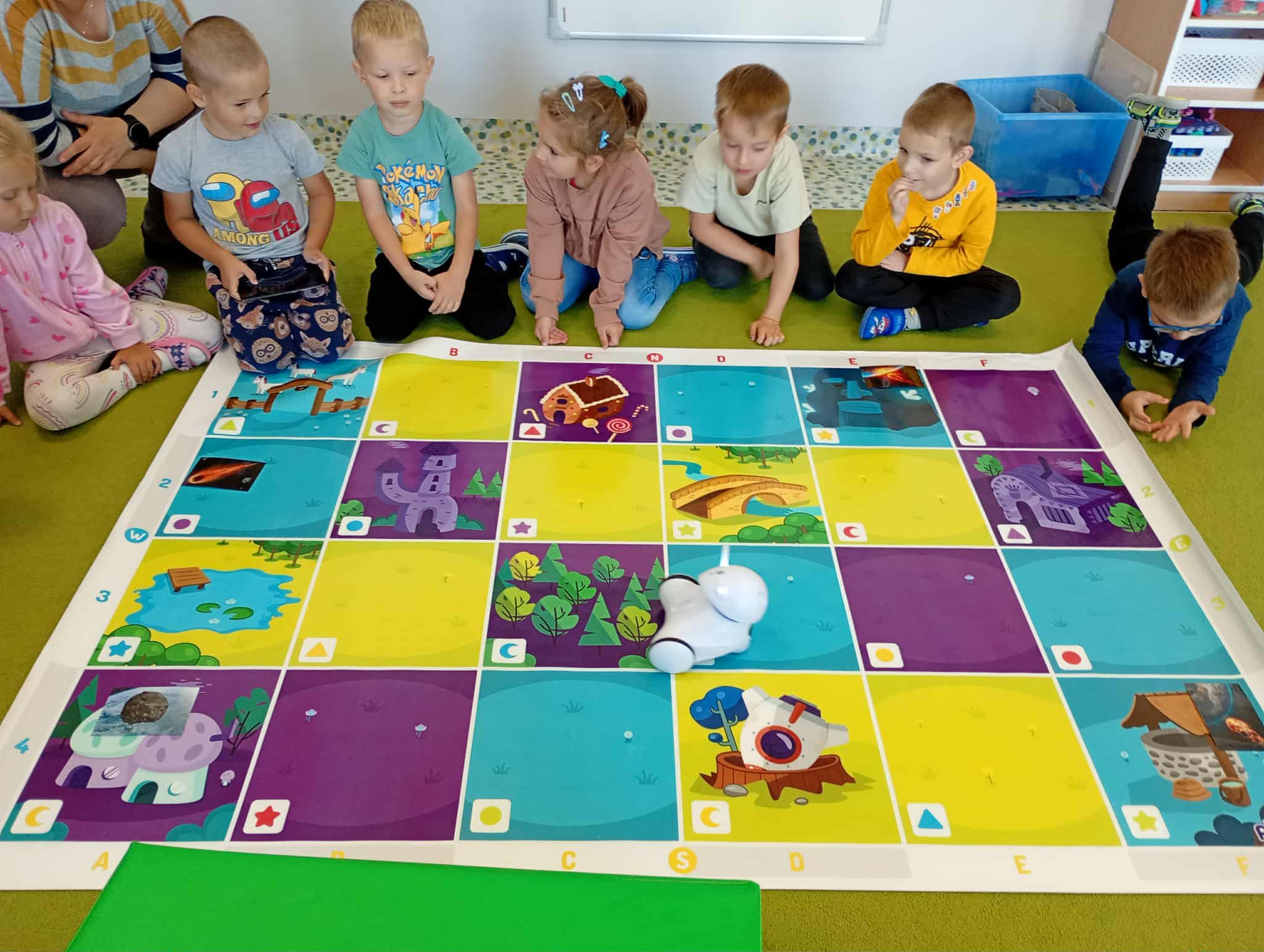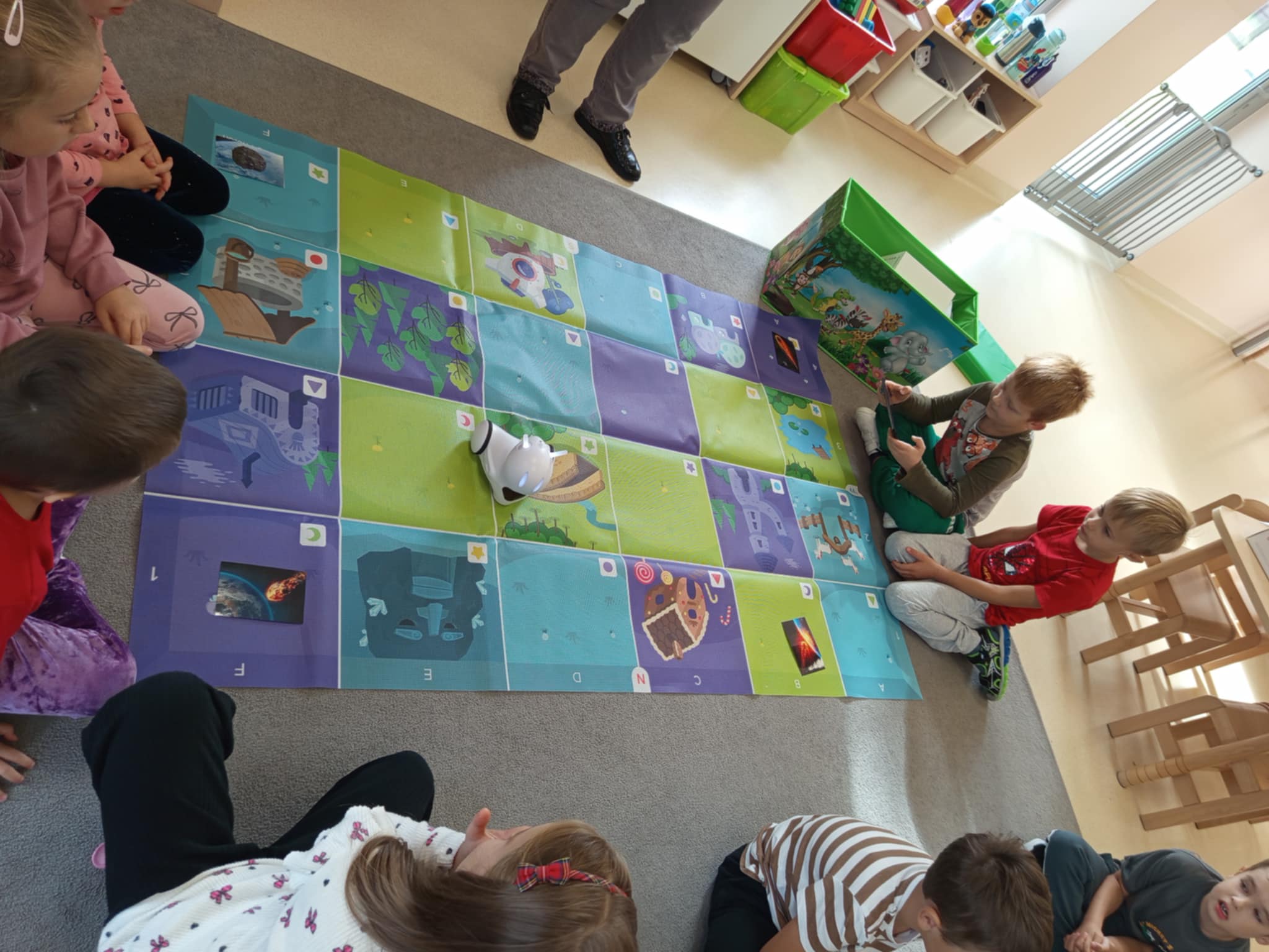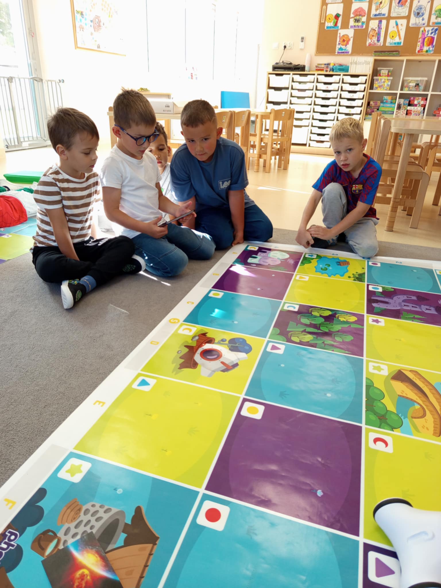Dnia 16 i 17.09.2025 w naszym przedszkolu odbyły się pierwsze zajęcia - kodowania na dywanie z Panią Ewą Koniarską z Centrum Biblioteki i Kultury w Gminie Jeżewo. Dzieci mogły przypomnieć sobie podstawy działania robota- Photona, jak nim sterować w prosty i zabawny sposób. Każde dziecko miało możliwość prowadzenia urządzenia, według wskazówek Pani Ewy. Wspólna zabawa pozwoliła dzieciom rozwijać kreatywność oraz logiczne myślenie, zajęcia dostarczyły dzieciom wiele radości. Na koniec Pani Ewa rozdała dzieciom kolorowanki robota. Dzieci z niecierpliwością czekają na kolejne zajęcia.