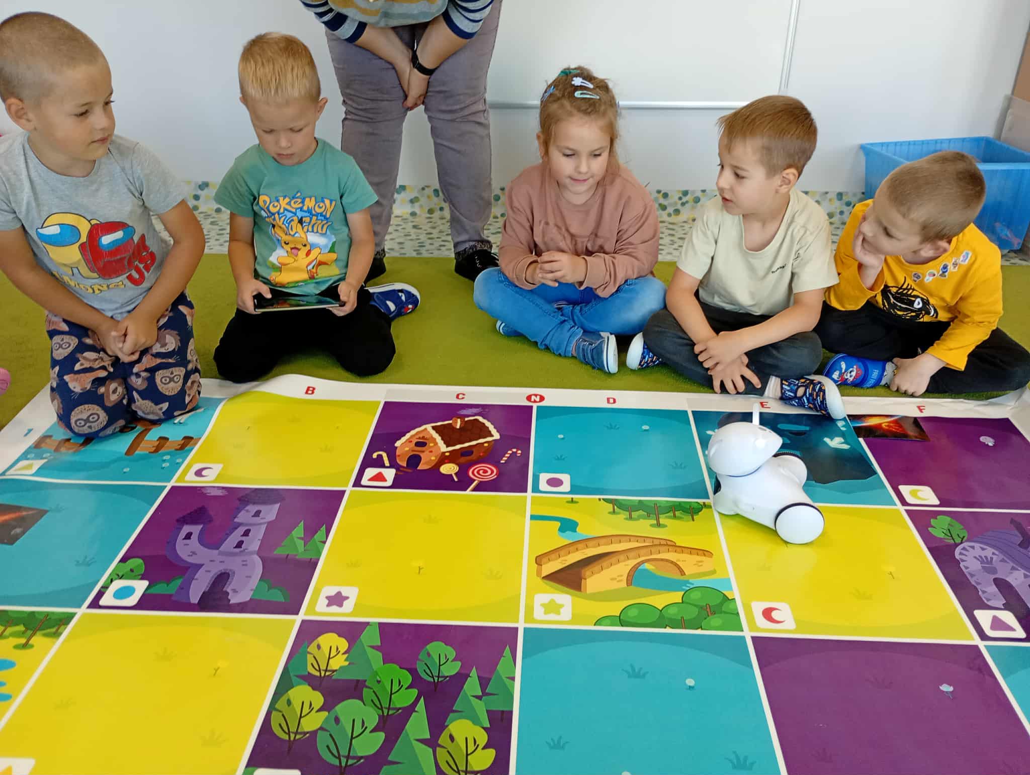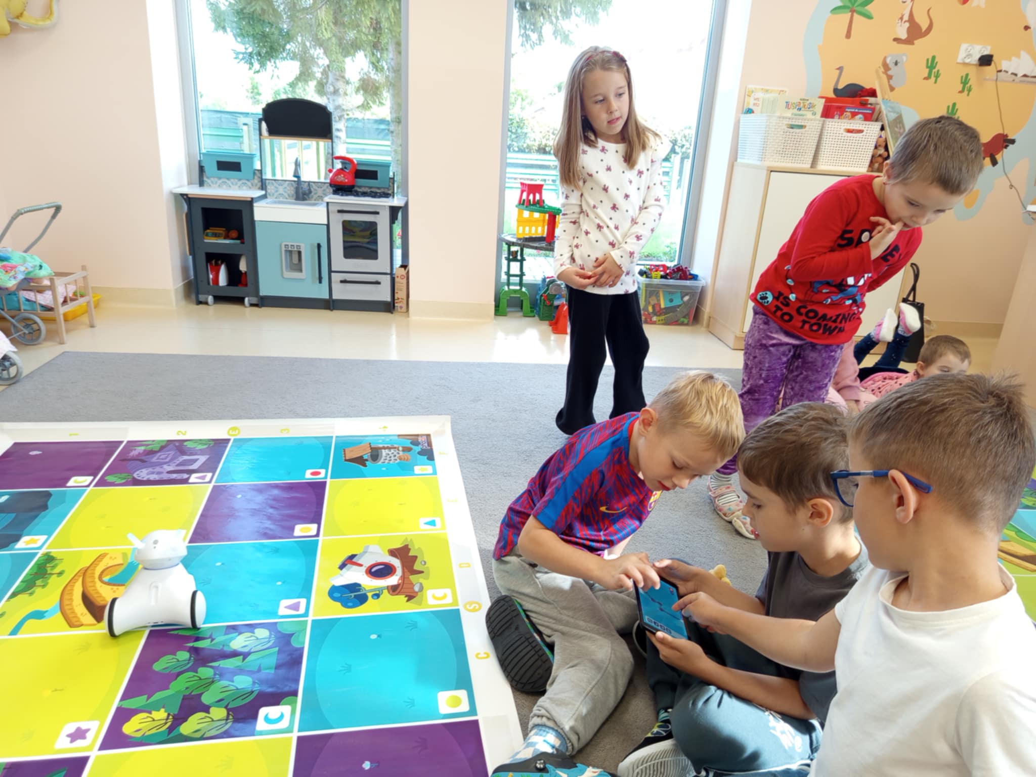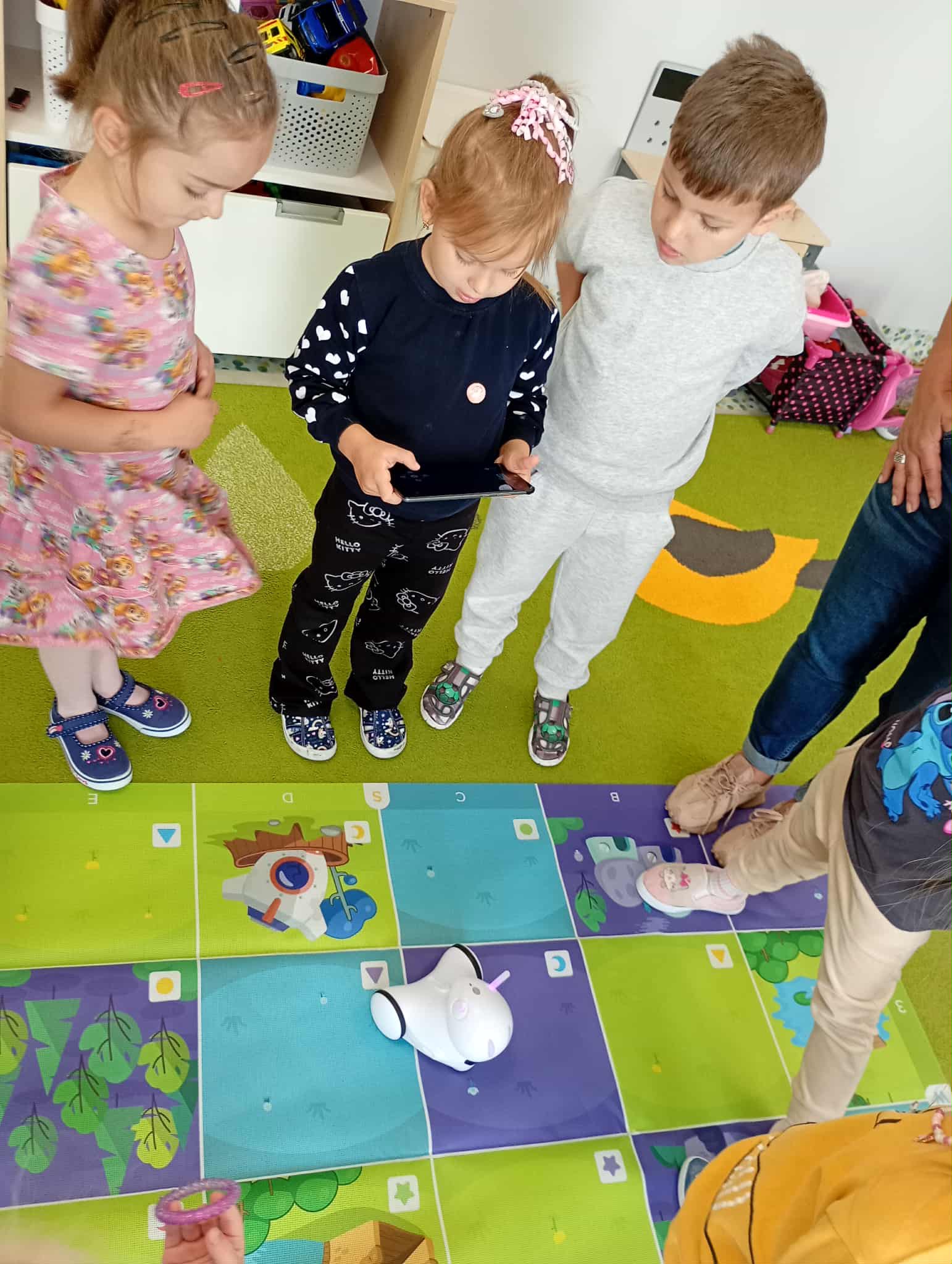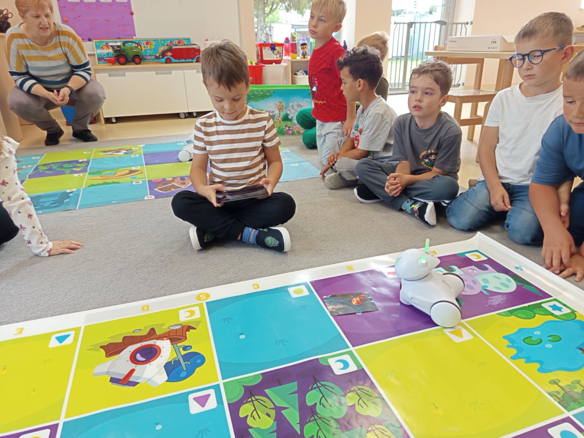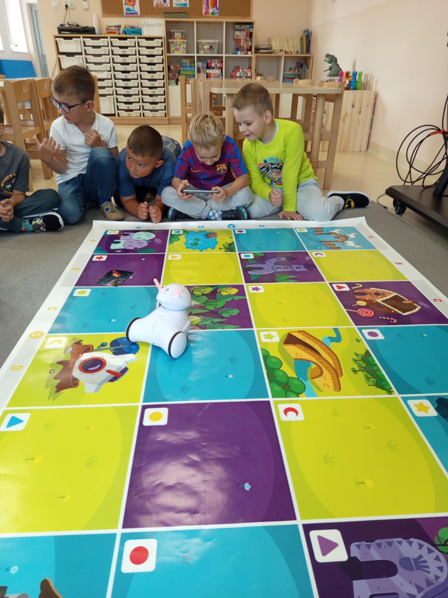 Dnia 16 i 17.09.2025 w naszym przedszkolu odbyły się pierwsze zajęcia - kodowania na dywanie z Panią Ewą Koniarską z Centrum Biblioteki i Kultury w Gminie Jeżewo. Dzieci mogły przypomnieć sobie podstawy działania robota- Photona, jak nim sterować w prosty i zabawny sposób. Każde dziecko miało możliwość prowadzenia urządzenia, według wskazówek Pani Ewy. Wspólna zabawa pozwoliła dzieciom rozwijać kreatywność oraz logiczne myślenie, zajęcia dostarczyły dzieciom wiele radości. Na koniec Pani Ewa rozdała dzieciom kolorowanki robota. Dzieci z niecierpliwością czekają na kolejne zajęcia.