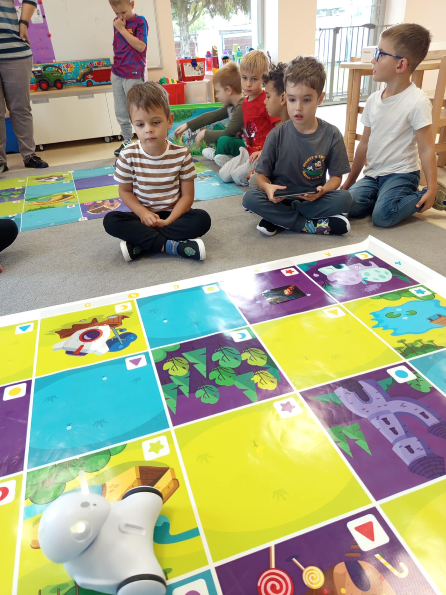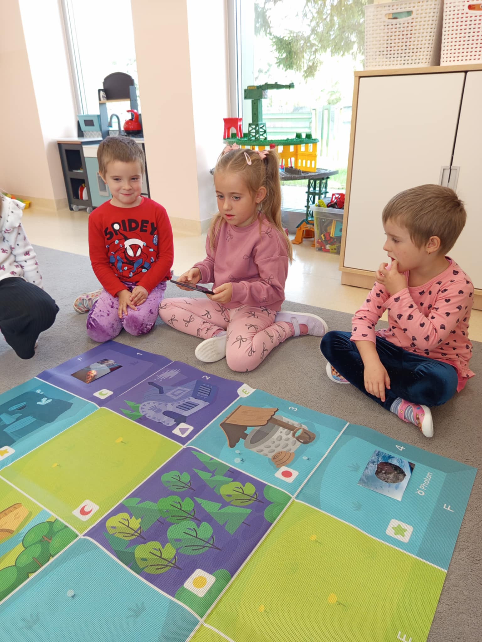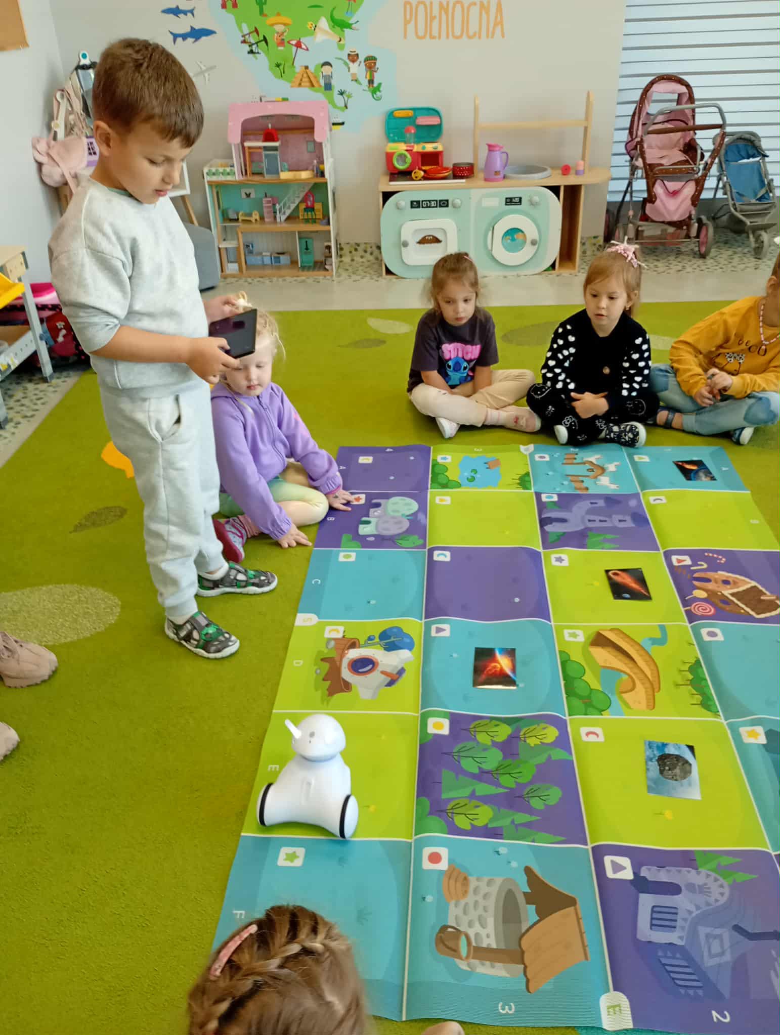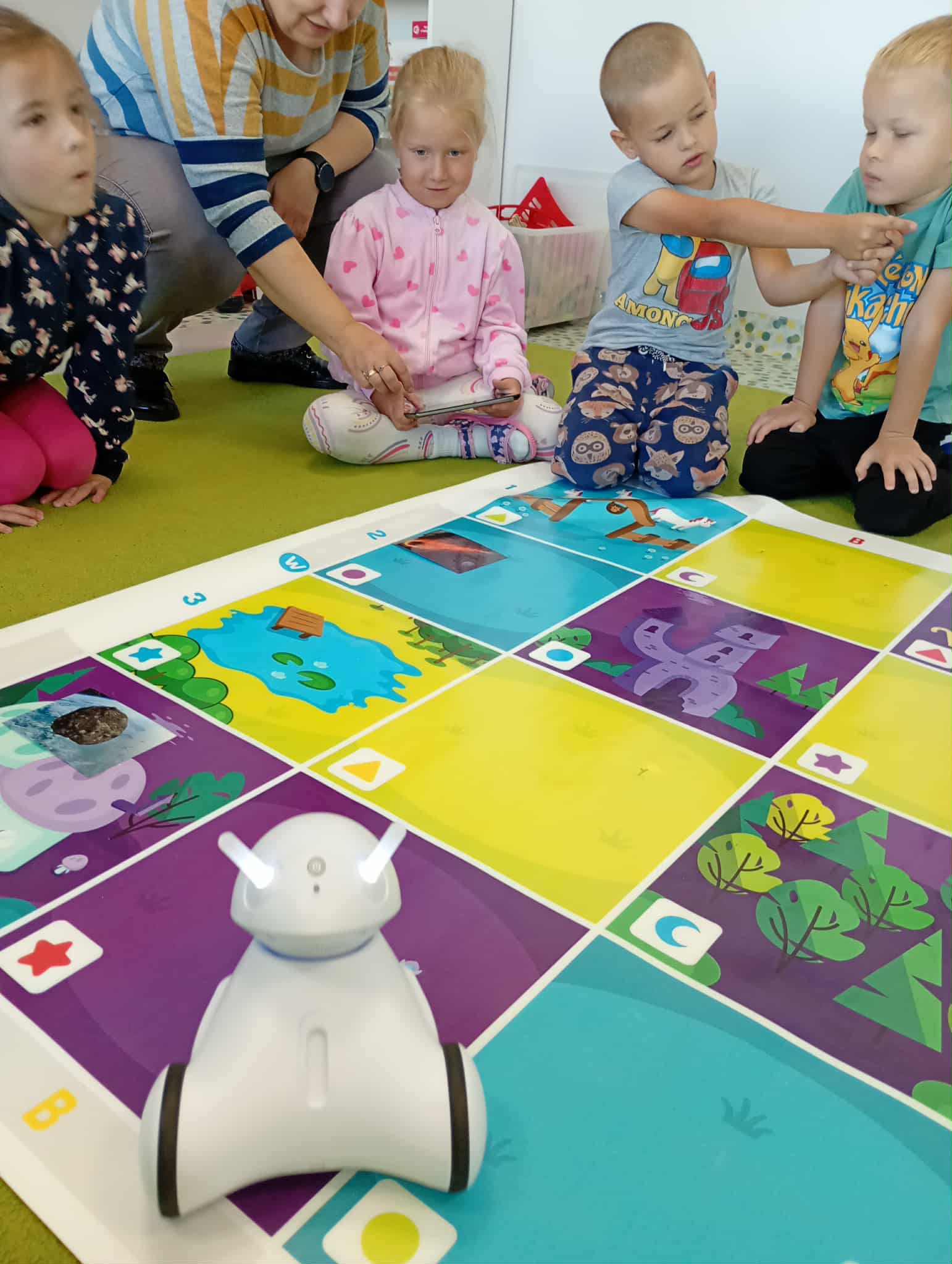 Dnia 16 i 17.09.2025 w naszym przedszkolu odbyły się pierwsze zajęcia - kodowania na dywanie z Panią Ewą Koniarską z Centrum Biblioteki i Kultury w Gminie Jeżewo. Dzieci mogły przypomnieć sobie podstawy działania robota- Photona, jak nim sterować w prosty i zabawny sposób. Każde dziecko miało możliwość prowadzenia urządzenia, według wskazówek Pani Ewy. Wspólna zabawa pozwoliła dzieciom rozwijać kreatywność oraz logiczne myślenie, zajęcia dostarczyły dzieciom wiele radości. Na koniec Pani Ewa rozdała dzieciom kolorowanki robota. Dzieci z niecierpliwością czekają na kolejne zajęcia.