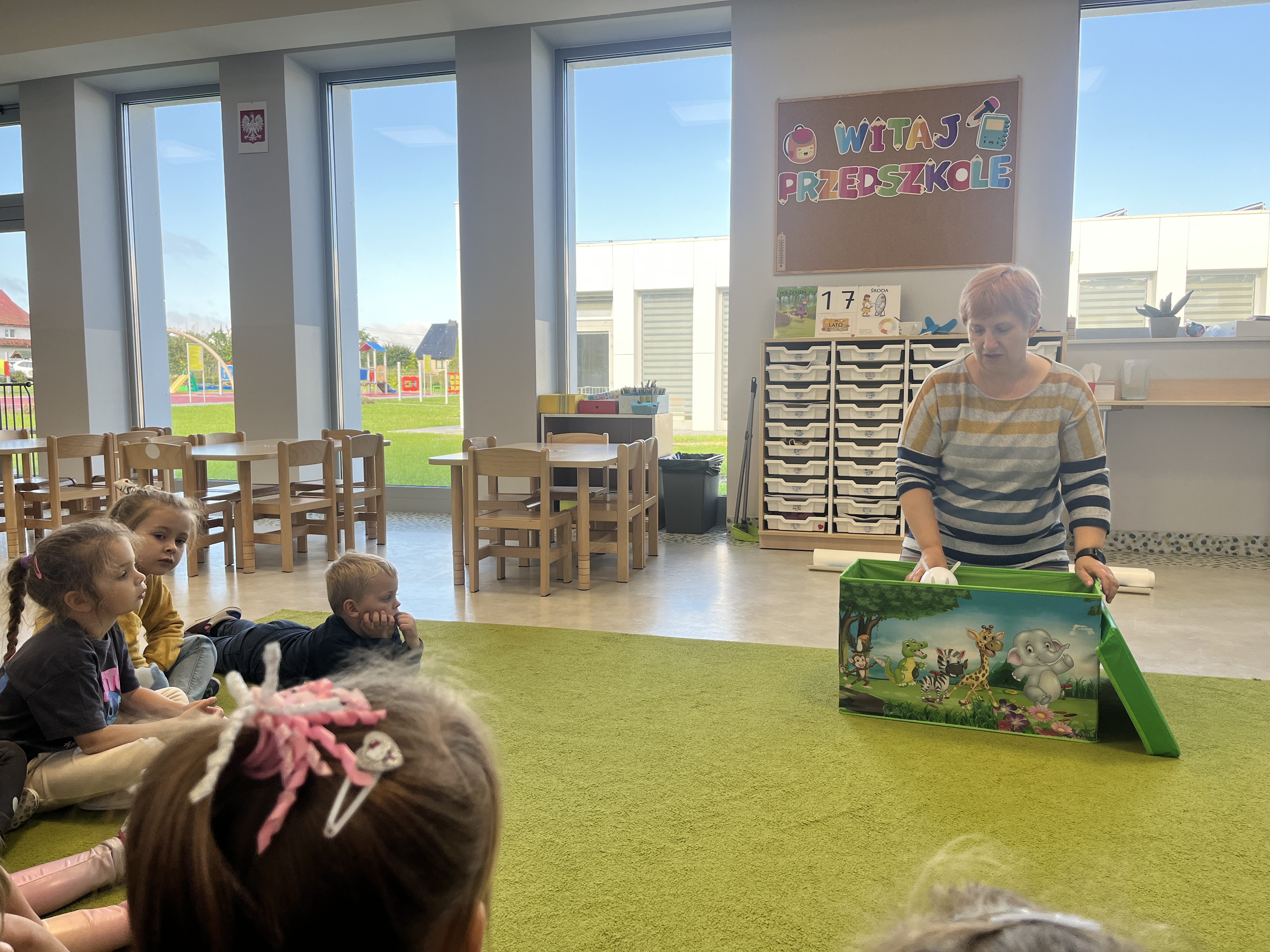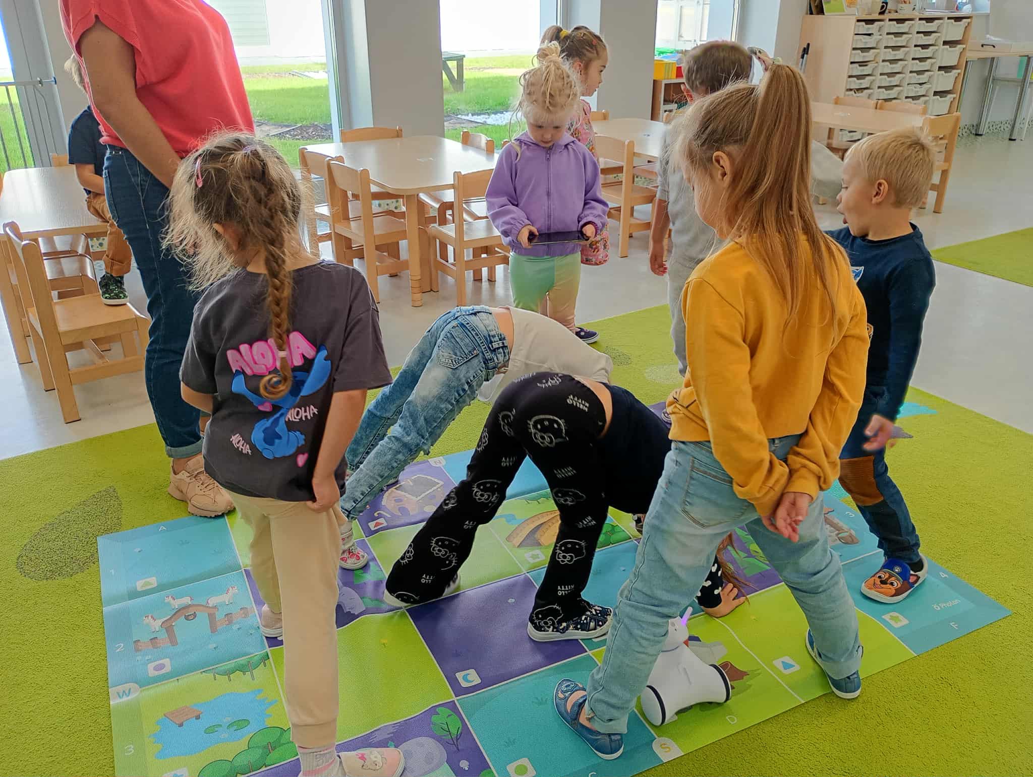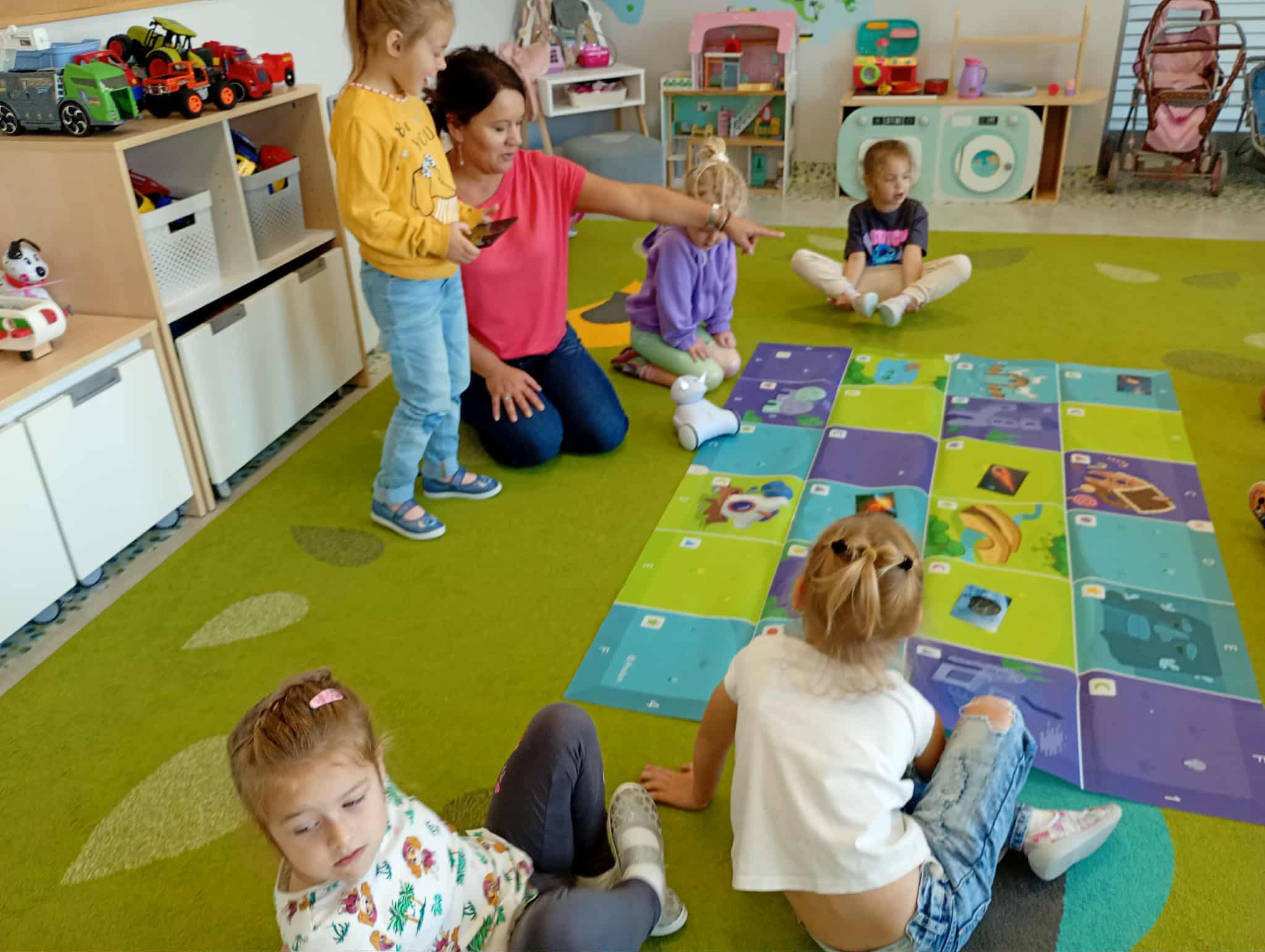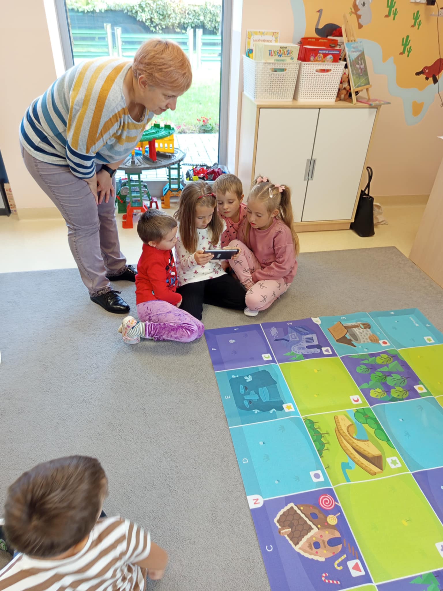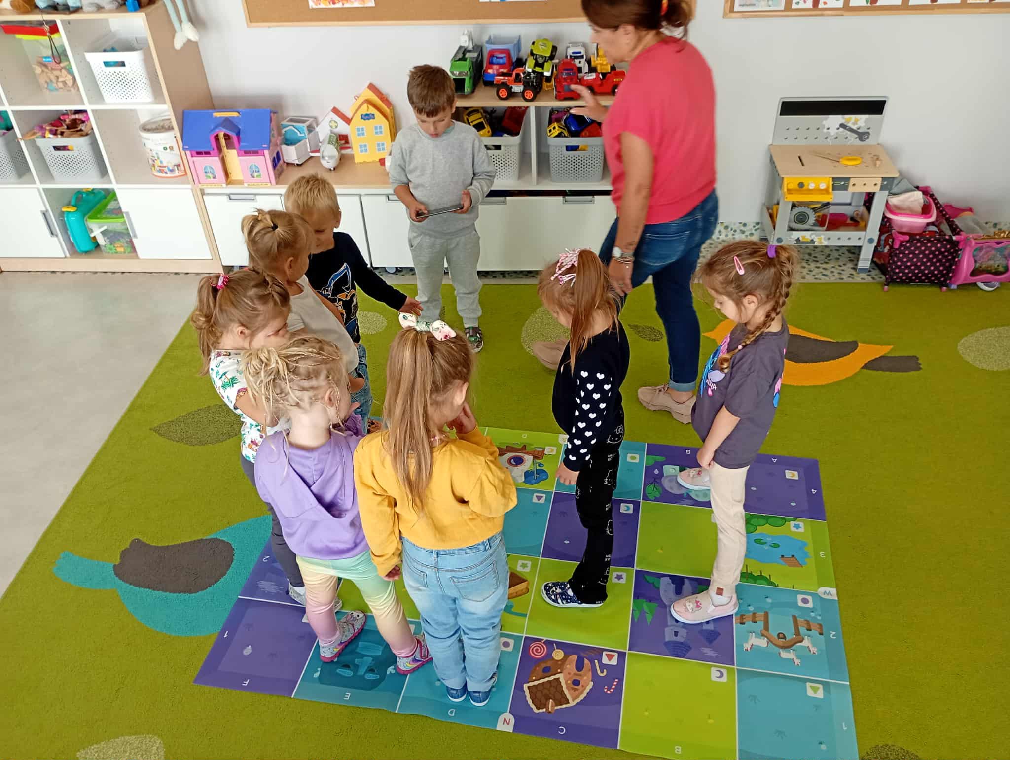 Dnia 16 i 17.09.2025 w naszym przedszkolu odbyły się pierwsze zajęcia - kodowania na dywanie z Panią Ewą Koniarską z Centrum Biblioteki i Kultury w Gminie Jeżewo. Dzieci mogły przypomnieć sobie podstawy działania robota- Photona, jak nim sterować w prosty i zabawny sposób. Każde dziecko miało możliwość prowadzenia urządzenia, według wskazówek Pani Ewy. Wspólna zabawa pozwoliła dzieciom rozwijać kreatywność oraz logiczne myślenie, zajęcia dostarczyły dzieciom wiele radości. Na koniec Pani Ewa rozdała dzieciom kolorowanki robota. Dzieci z niecierpliwością czekają na kolejne zajęcia.