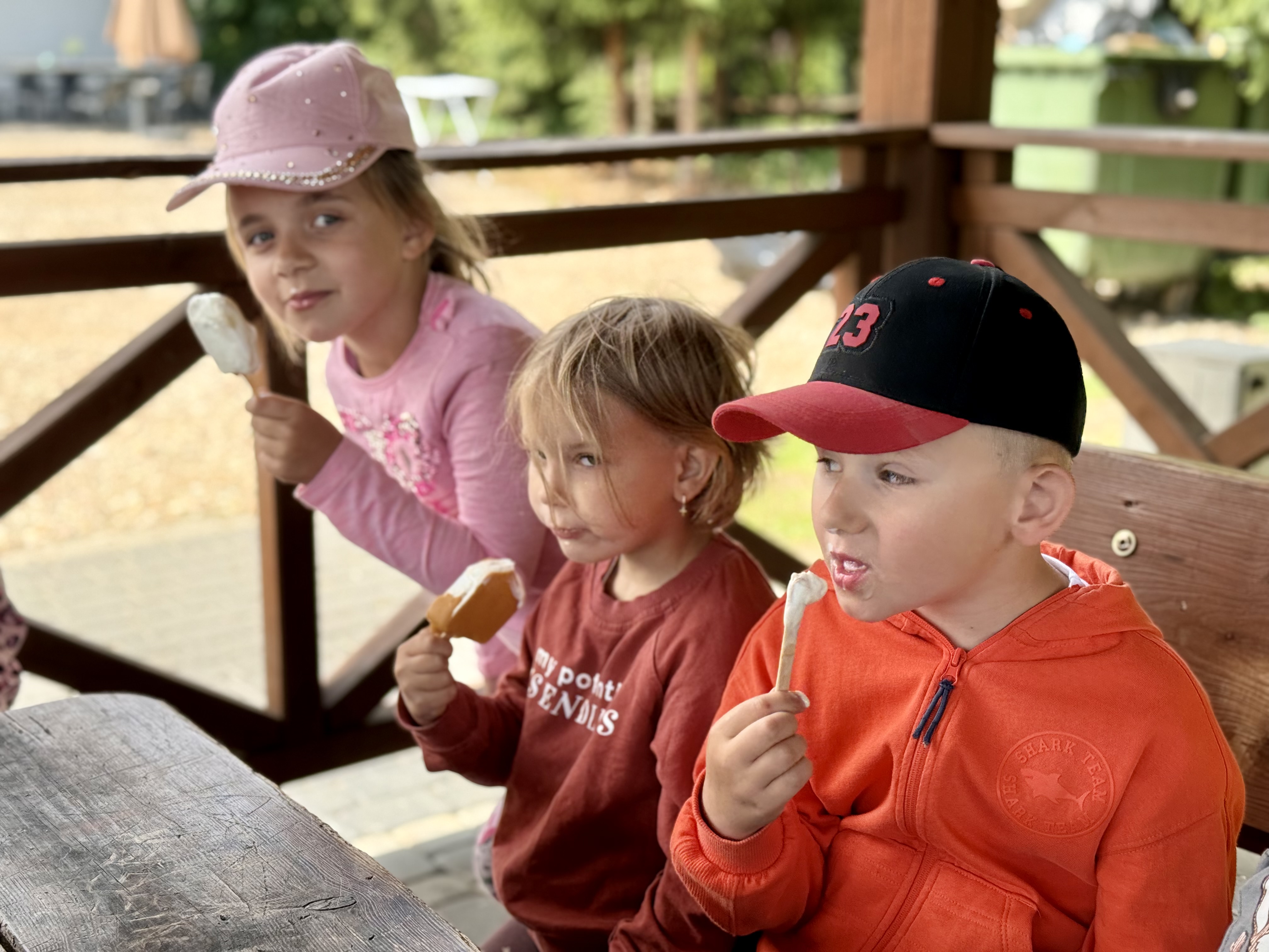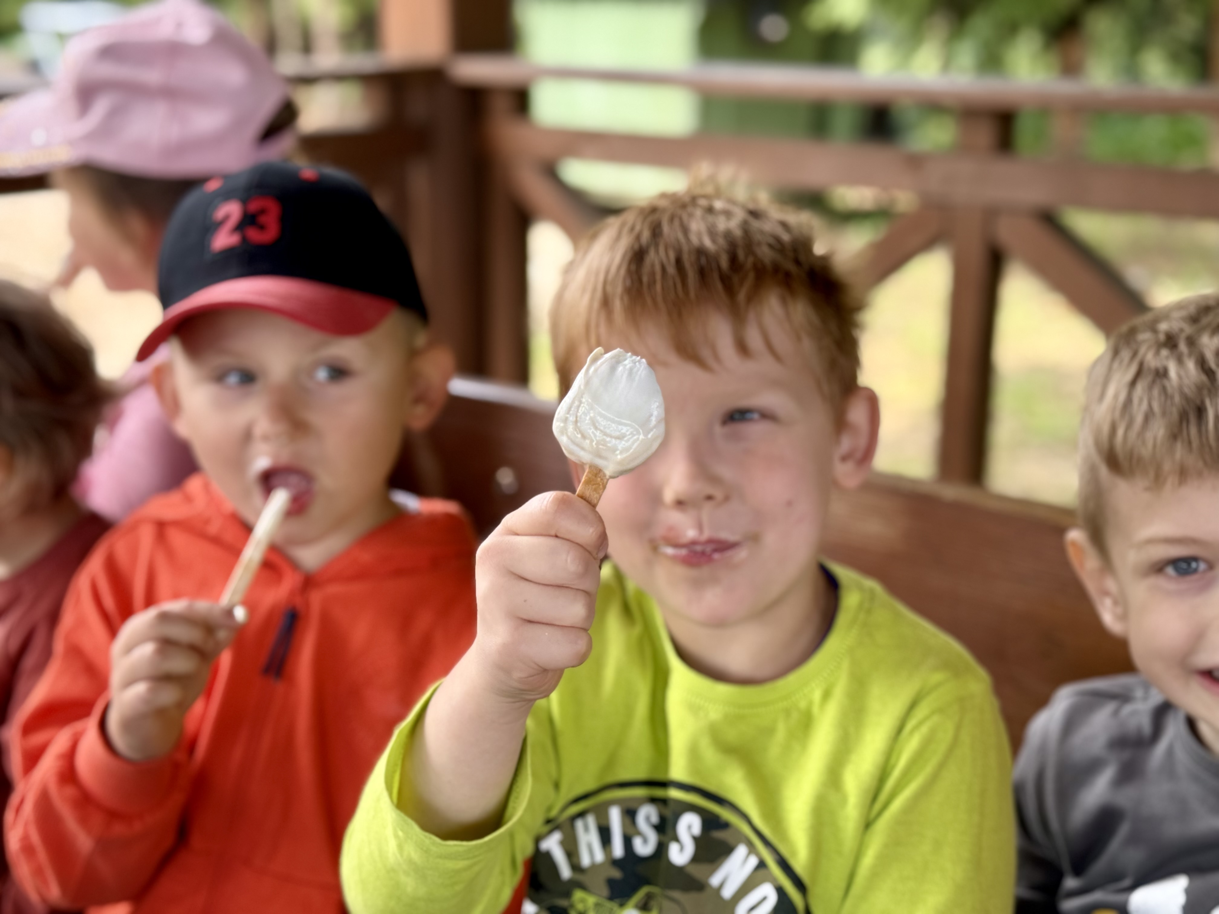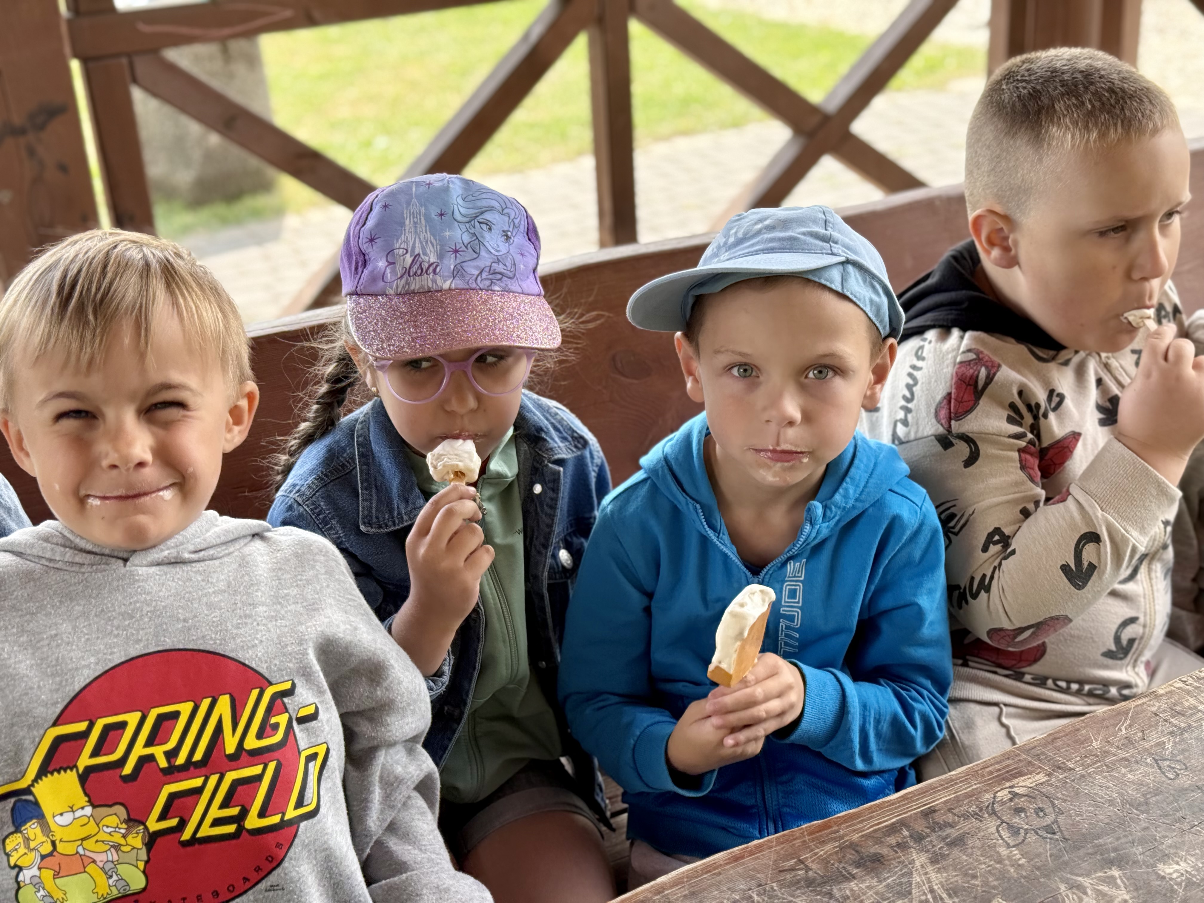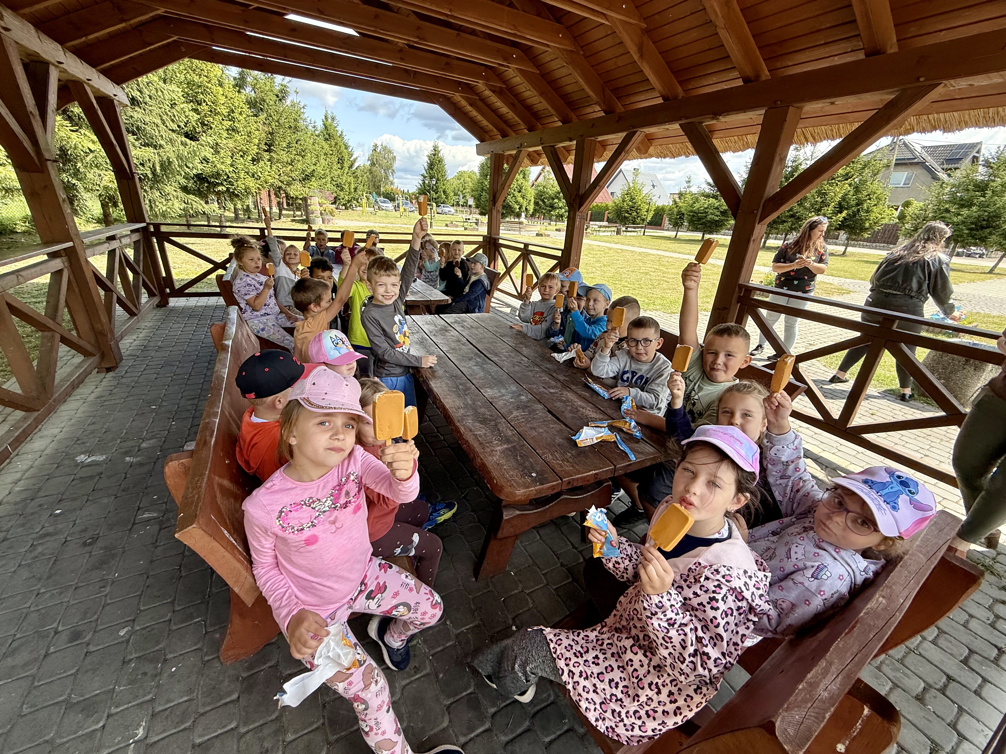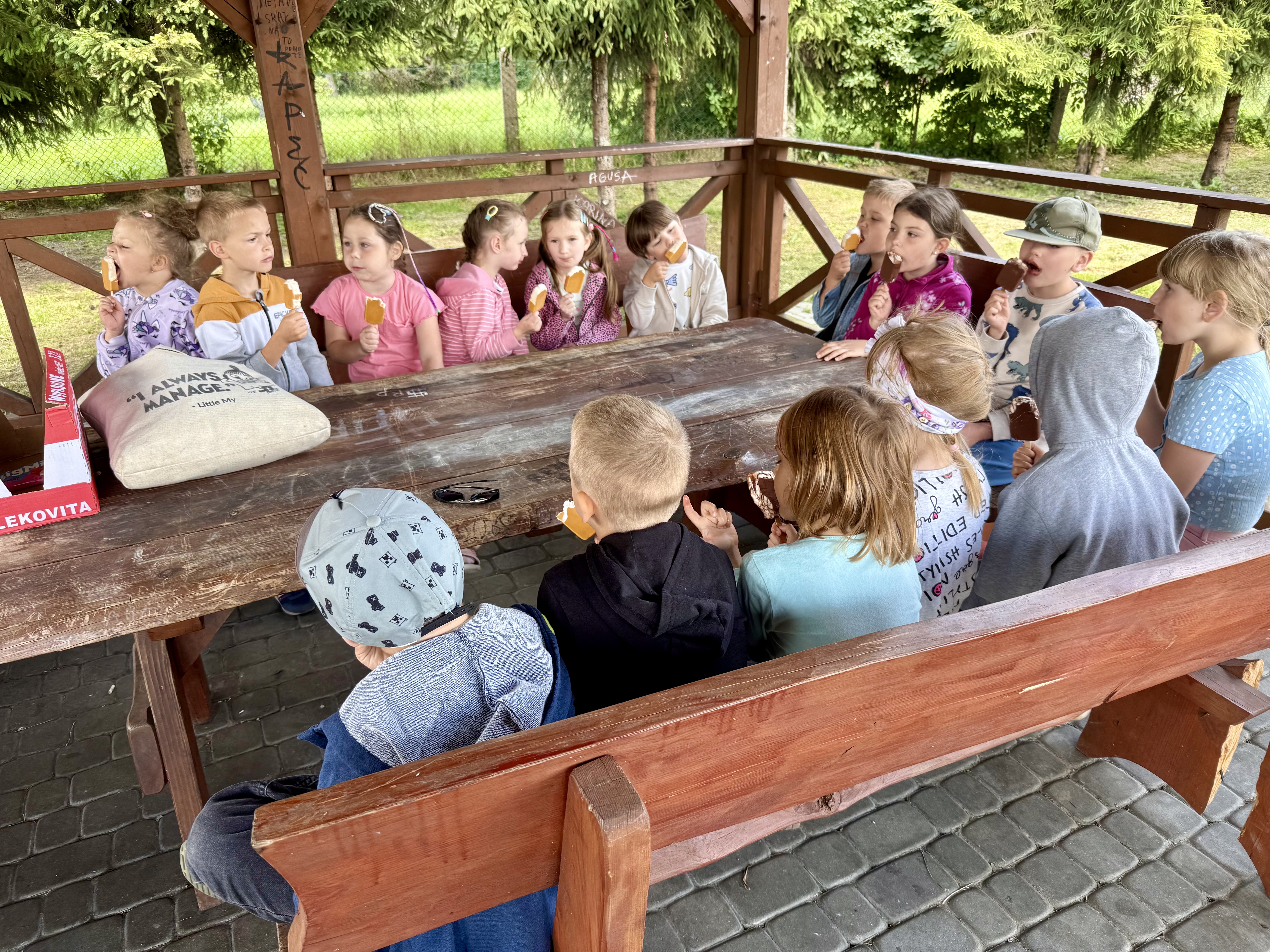 Dnia 24 czerwca 2025 r. dzieci z grup „Kangury” i „Żyrafy” wybrały się na słodki, przedwakacyjny spacer! Dzieci wraz z paniami udały się do sklepu po pyszne lody. Chwilę później przedszkolaki zajadały się orzeźwiającym przysmakiem na świeżym powietrzu, jednocześnie ciesząc się wspólnie spędzonym czasem. To był słodki, radosny sposób na zakończenie roku przedszkolnego i rozpoczęcie letnich przygód!