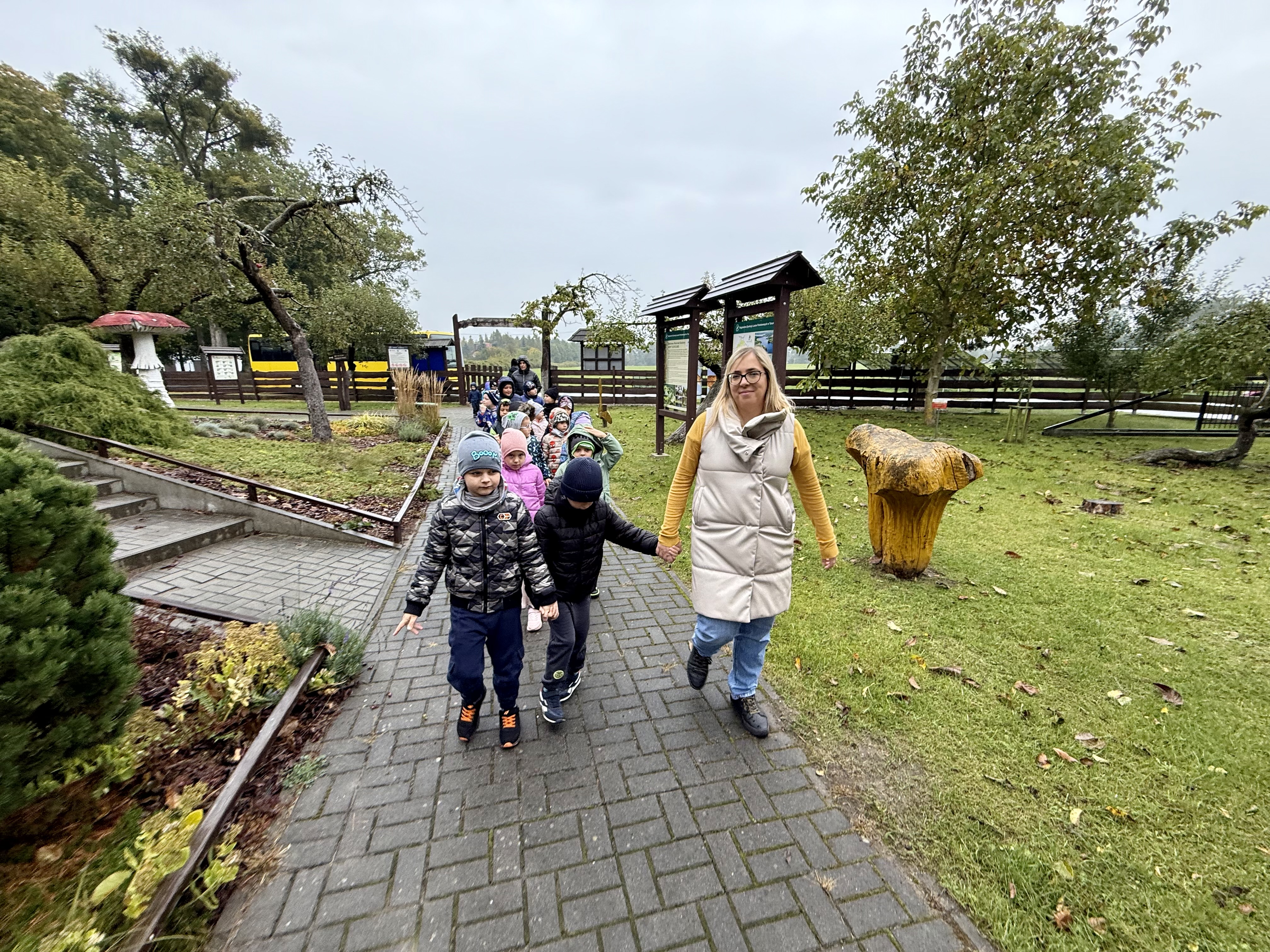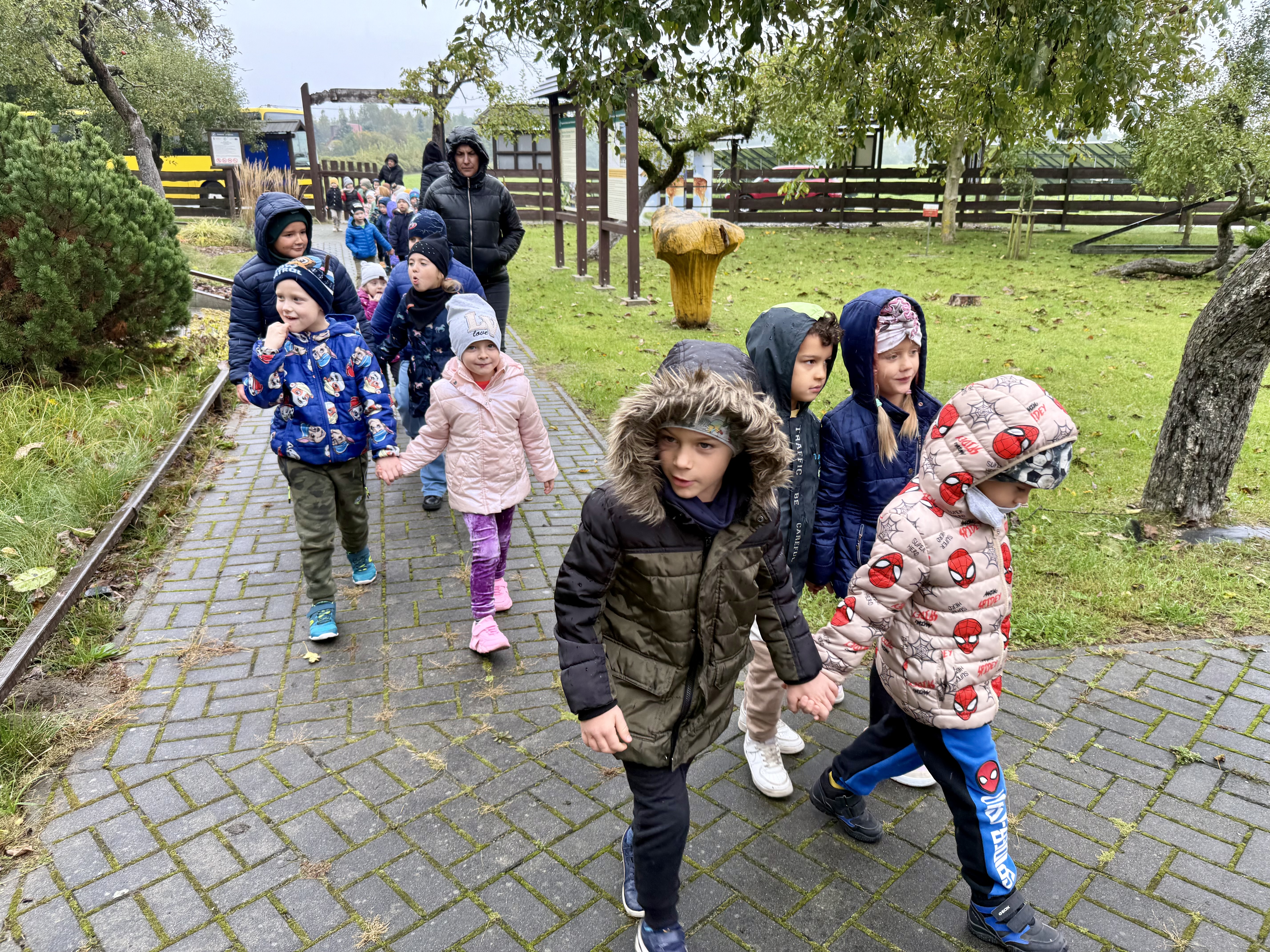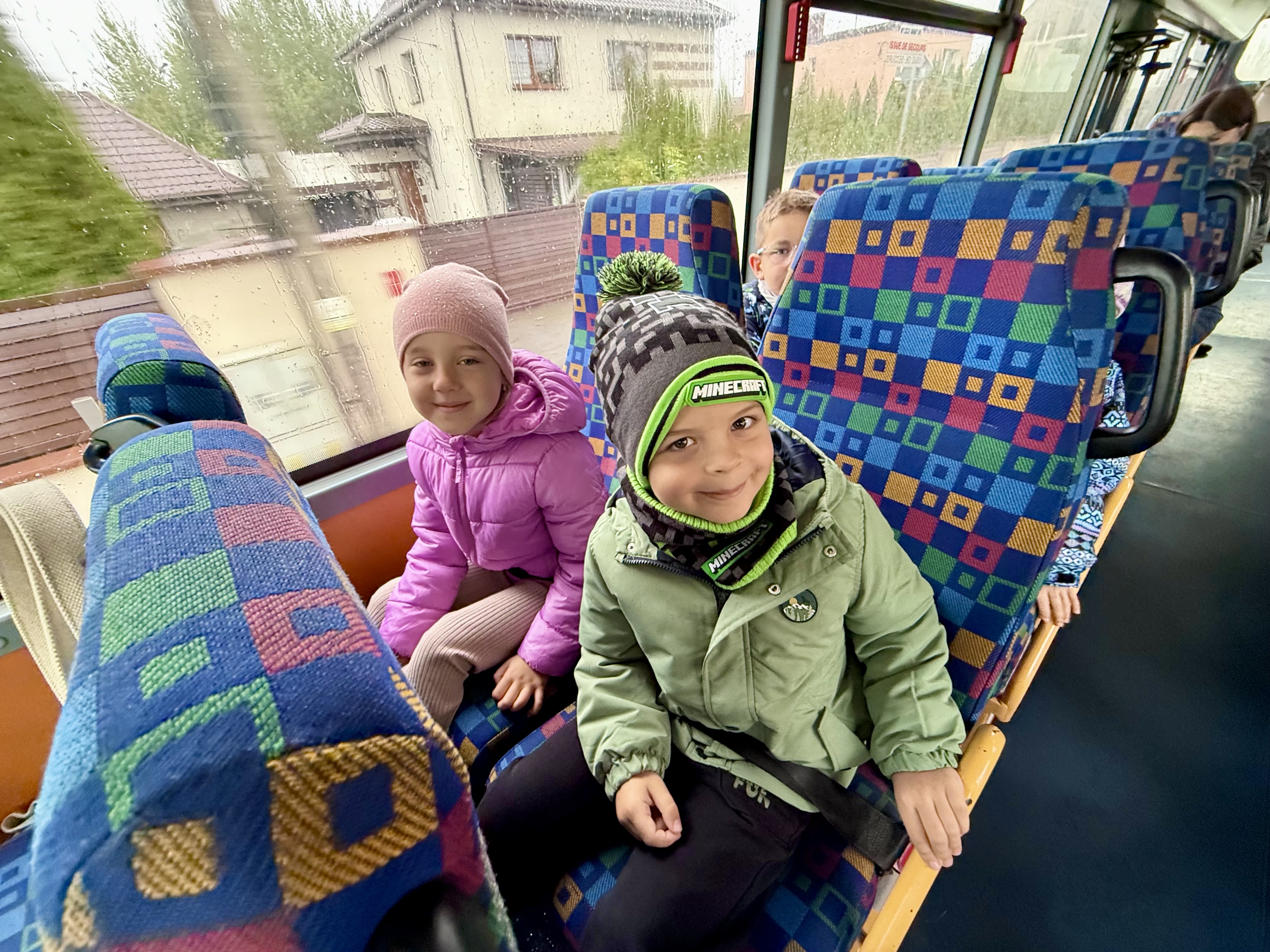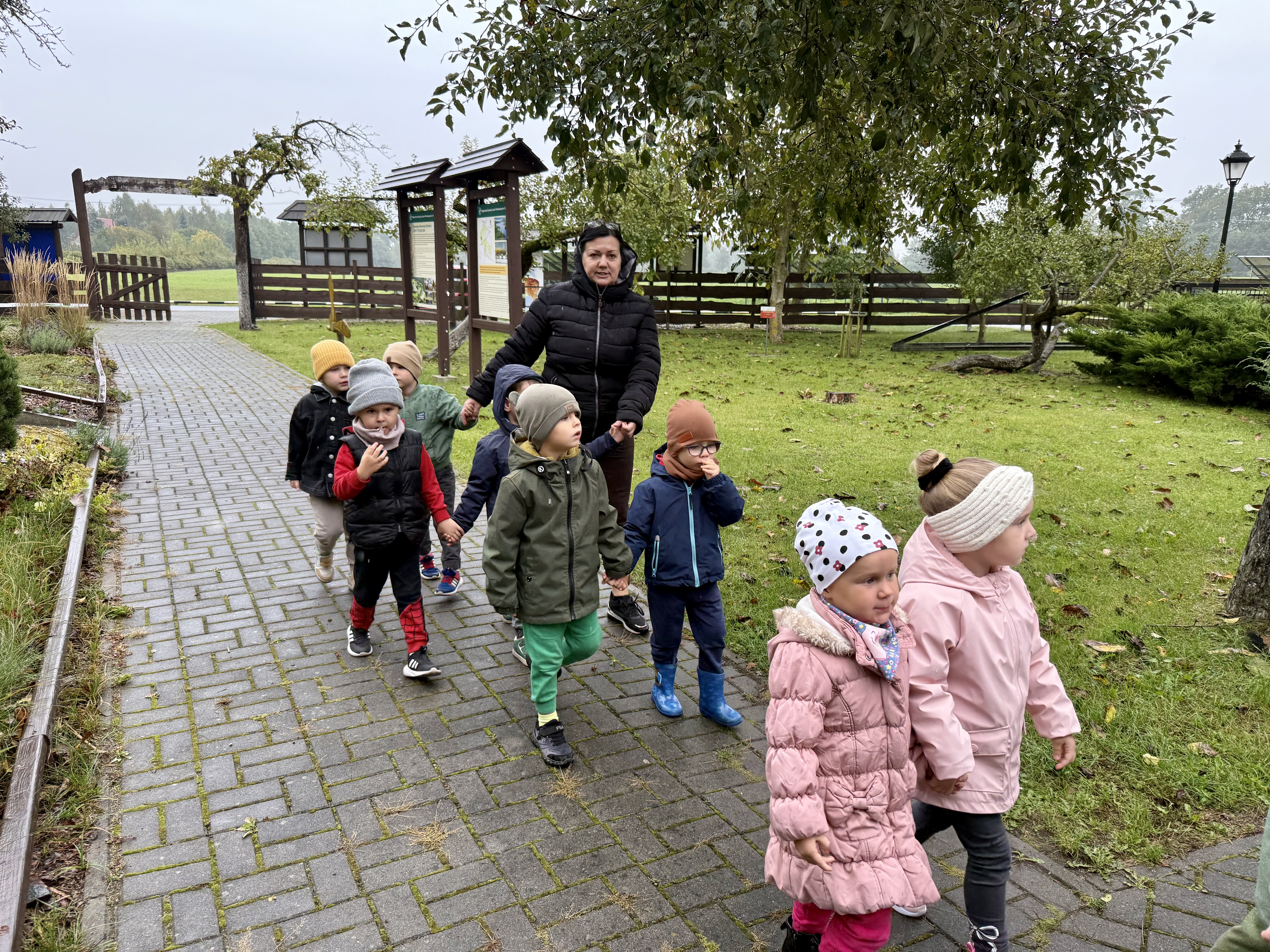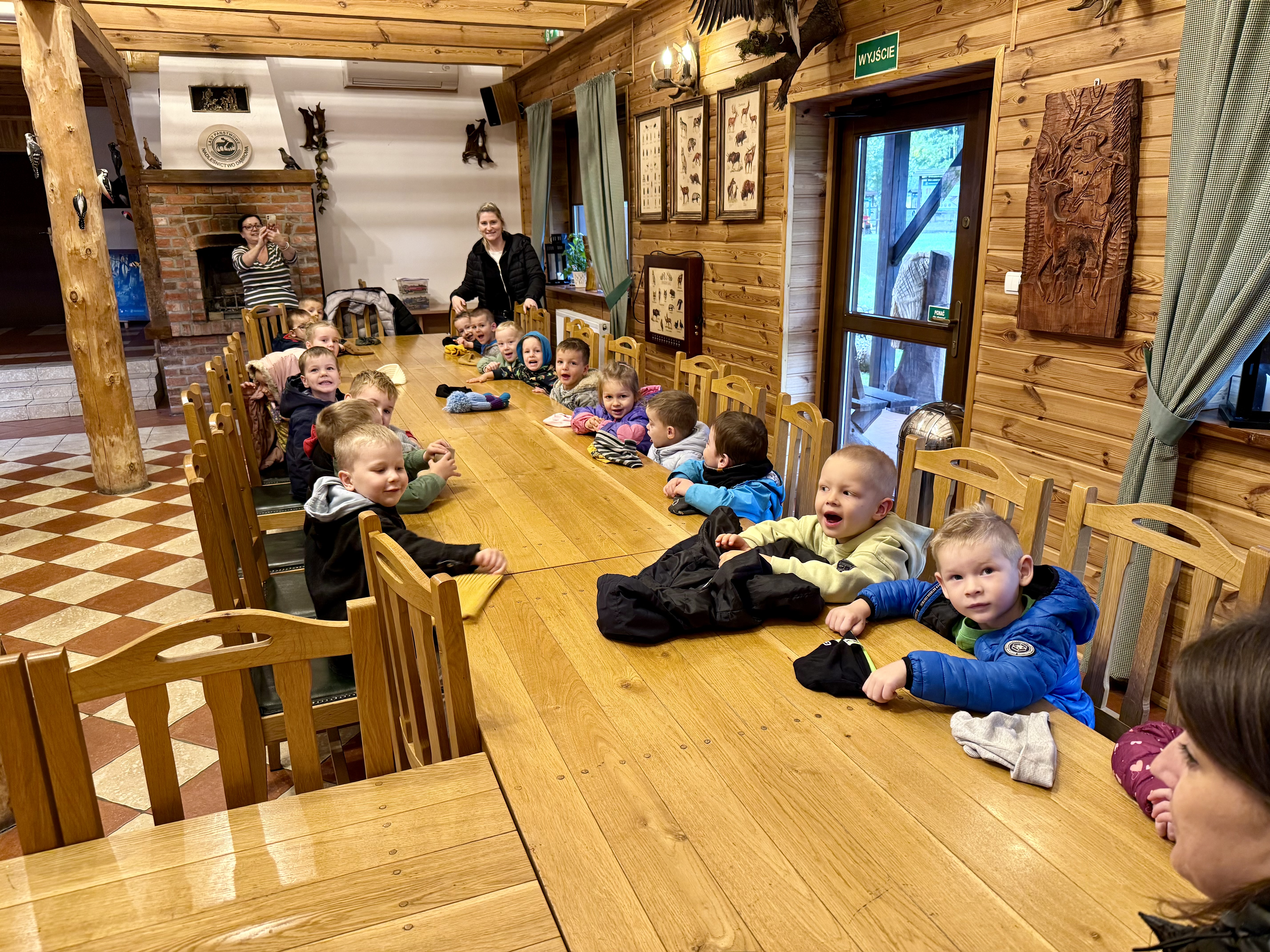 Już sam wyjazd autokarem był dla dzieci atrakcją, ale to, co czekało na miejscu, okazało się prawdziwą przygodą. Mimo deszczu udało nam się wyruszyć na leśną ścieżkę edukacyjną, gdzie dowiedzieliśmy się nieco więcej o życiu lasu, jego mieszkańcach i znaczeniu drzew w przyrodzie. Podziwialiśmy przyrodę w jesiennej, deszczowej aurze – las wyglądał wtedy zupełnie inaczej, cicho, tajemniczo i niezwykle pięknie.