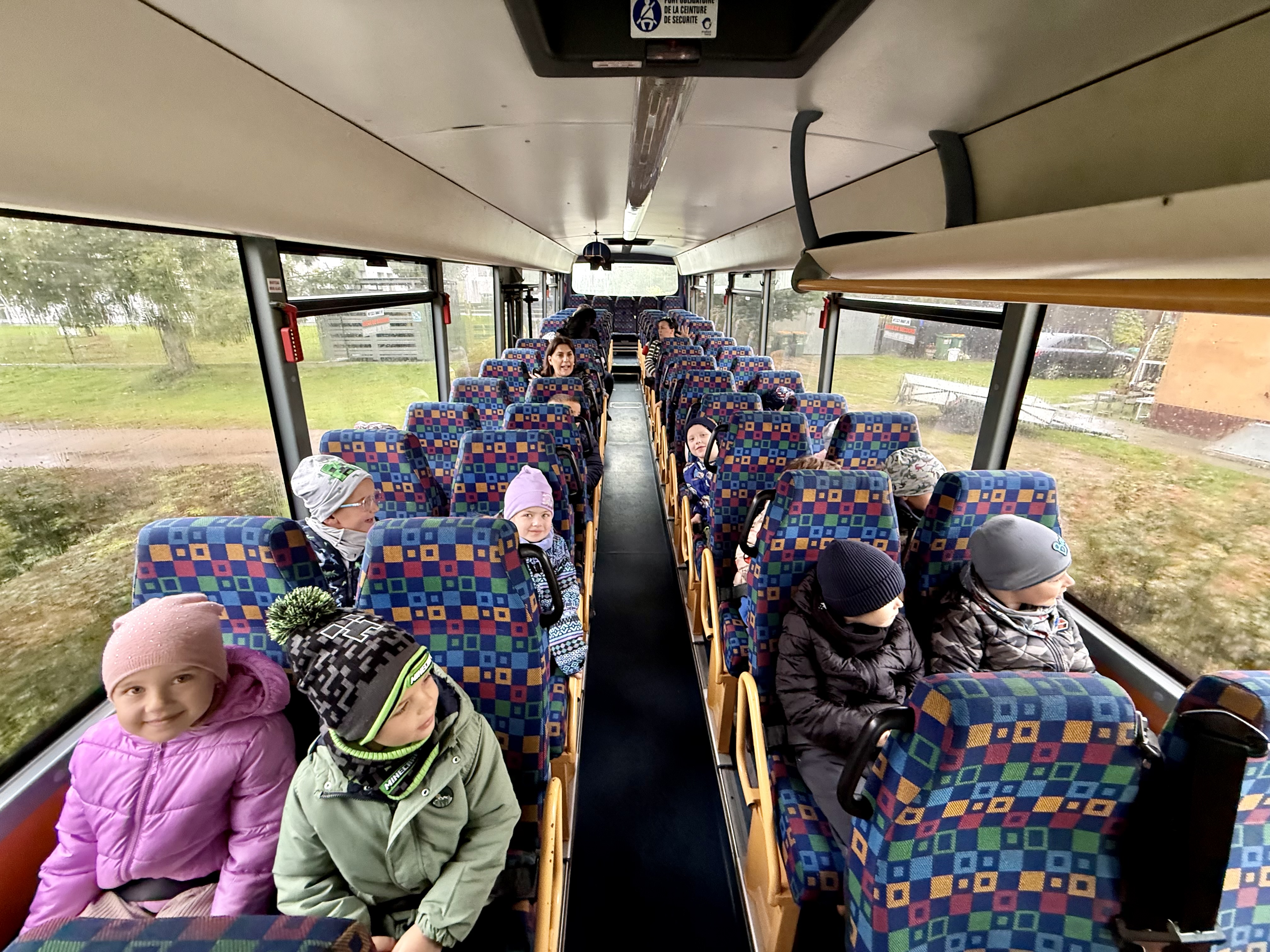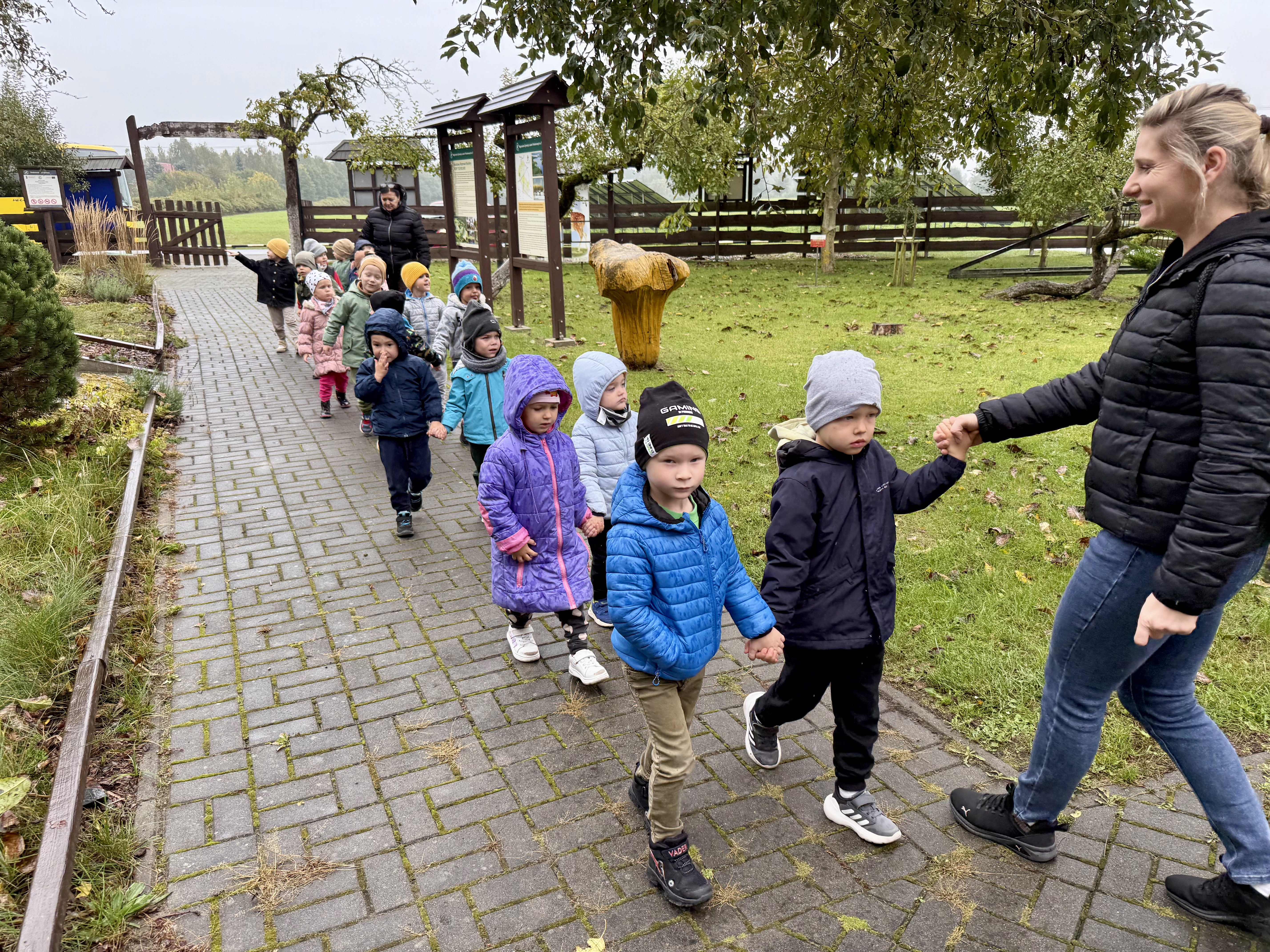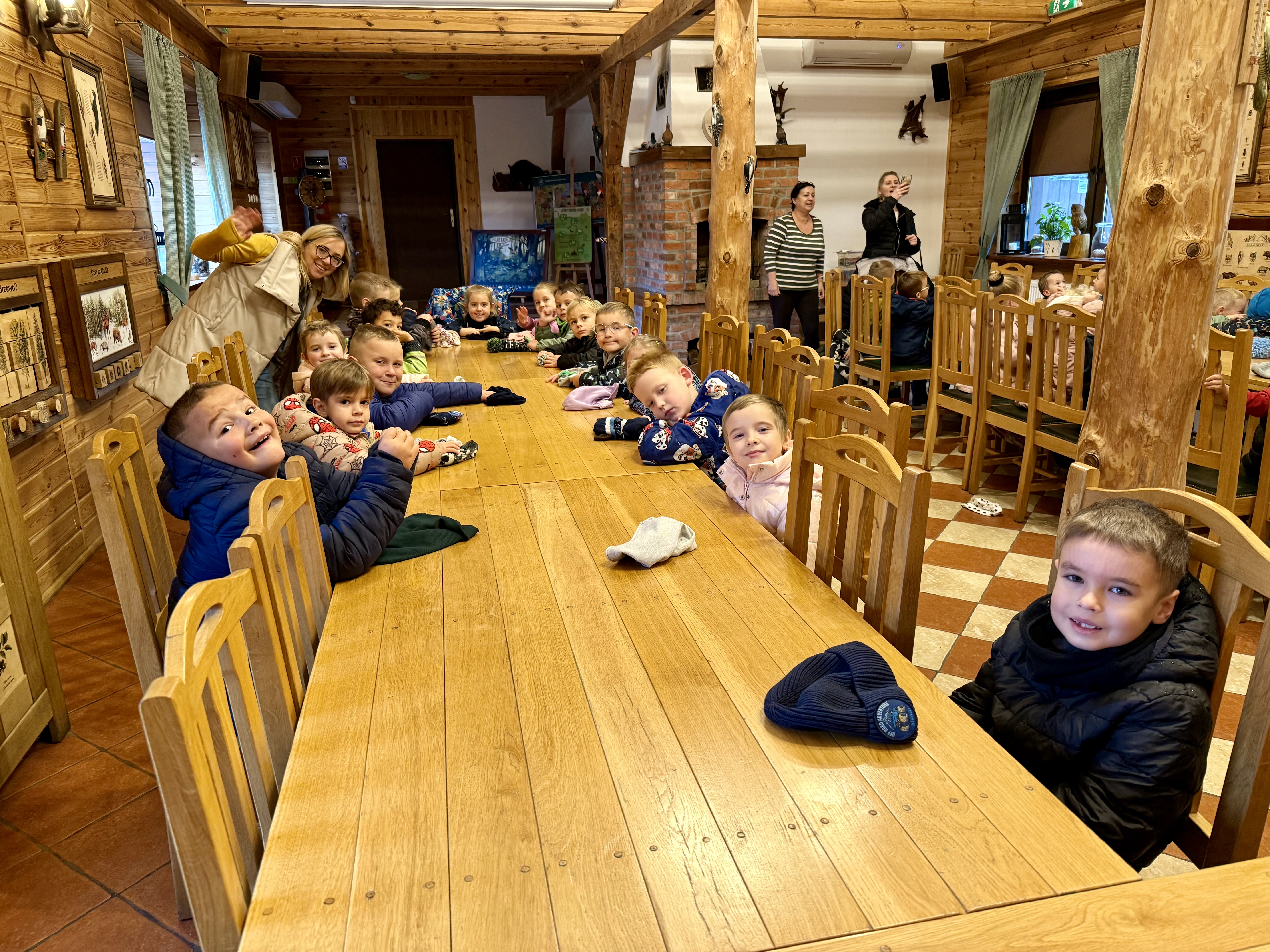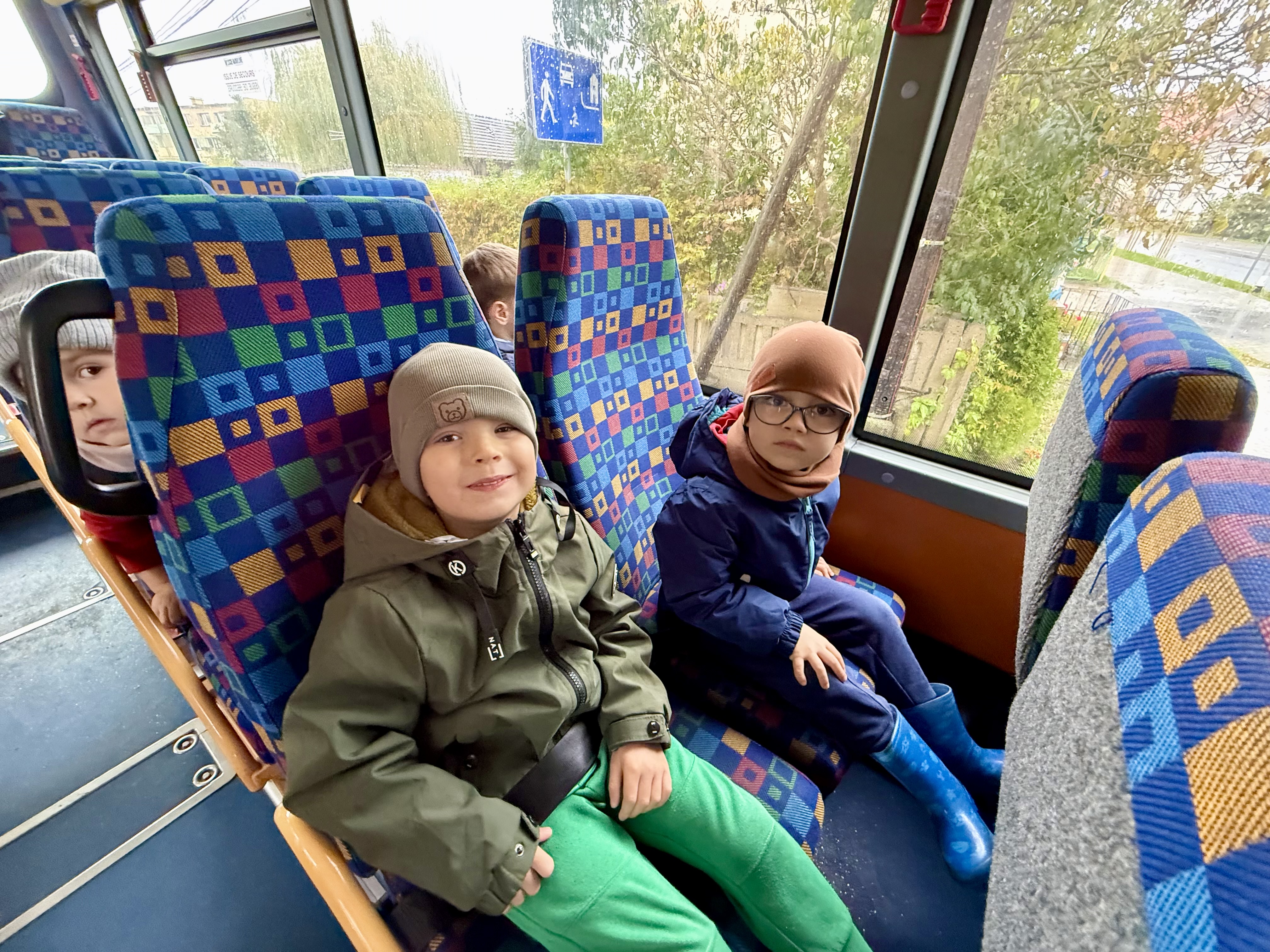 Już sam wyjazd autokarem był dla dzieci atrakcją, ale to, co czekało na miejscu, okazało się prawdziwą przygodą. Mimo deszczu udało nam się wyruszyć na leśną ścieżkę edukacyjną, gdzie dowiedzieliśmy się nieco więcej o życiu lasu, jego mieszkańcach i znaczeniu drzew w przyrodzie. Podziwialiśmy przyrodę w jesiennej, deszczowej aurze – las wyglądał wtedy zupełnie inaczej, cicho, tajemniczo i niezwykle pięknie.