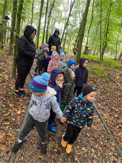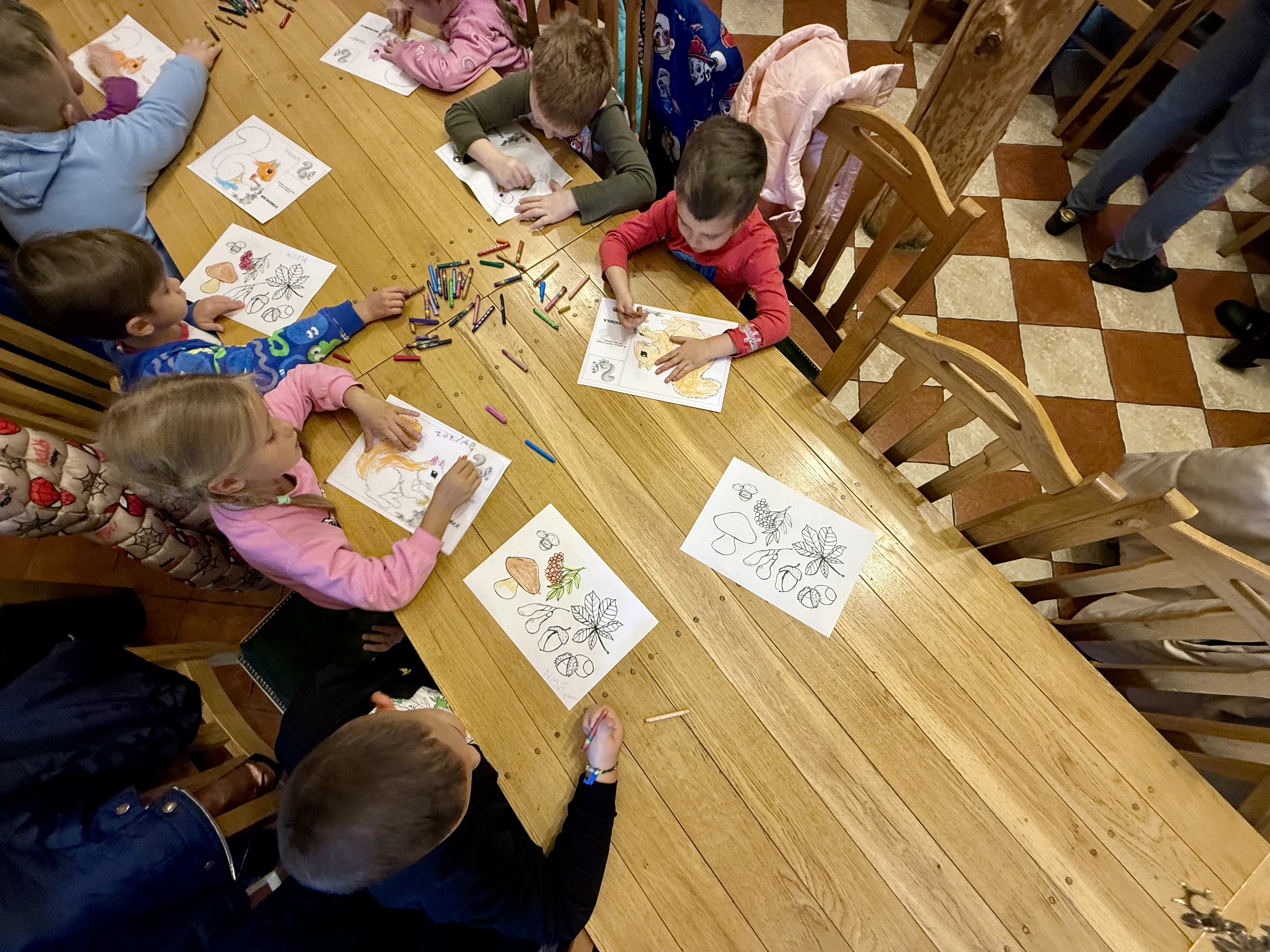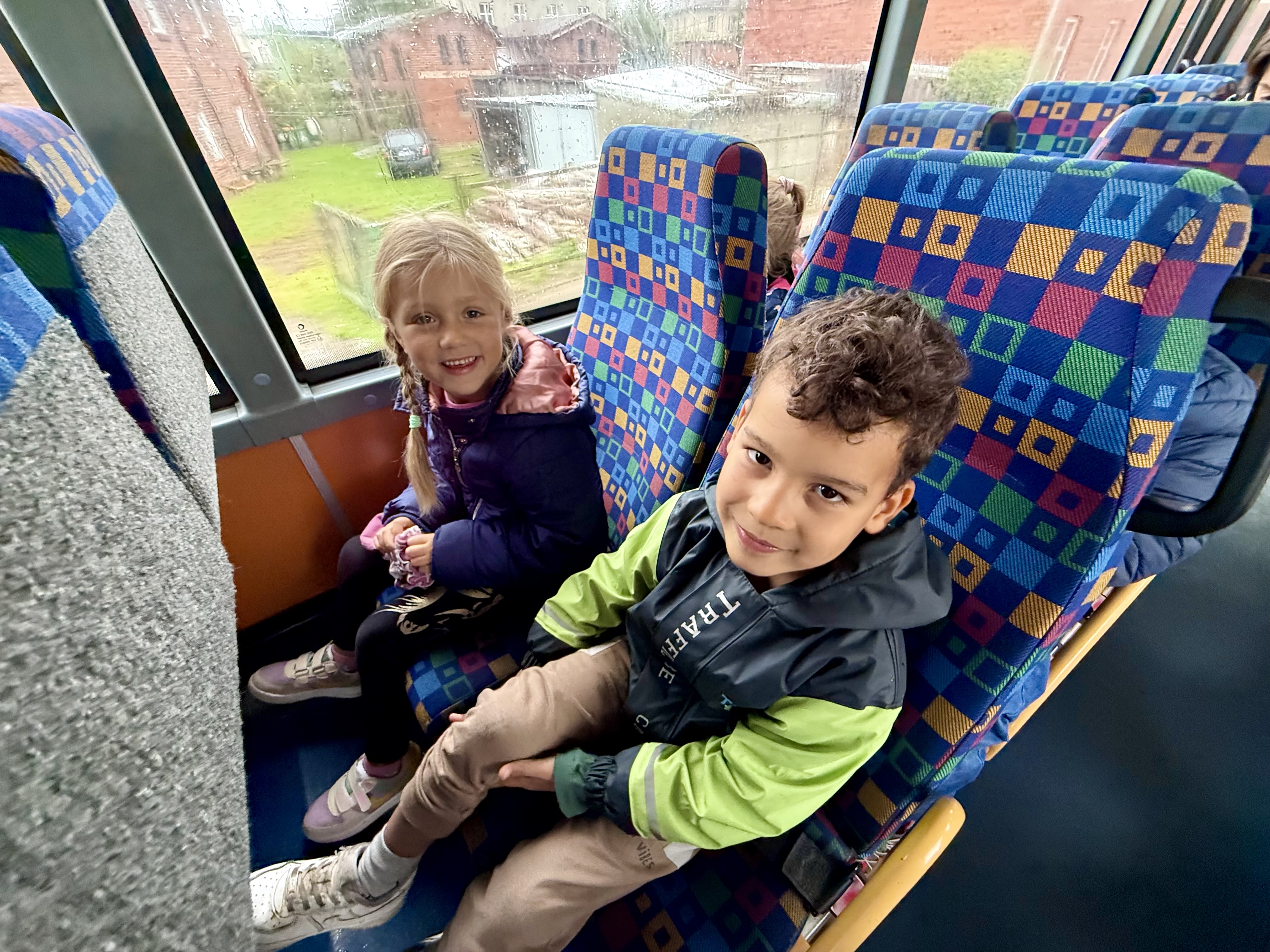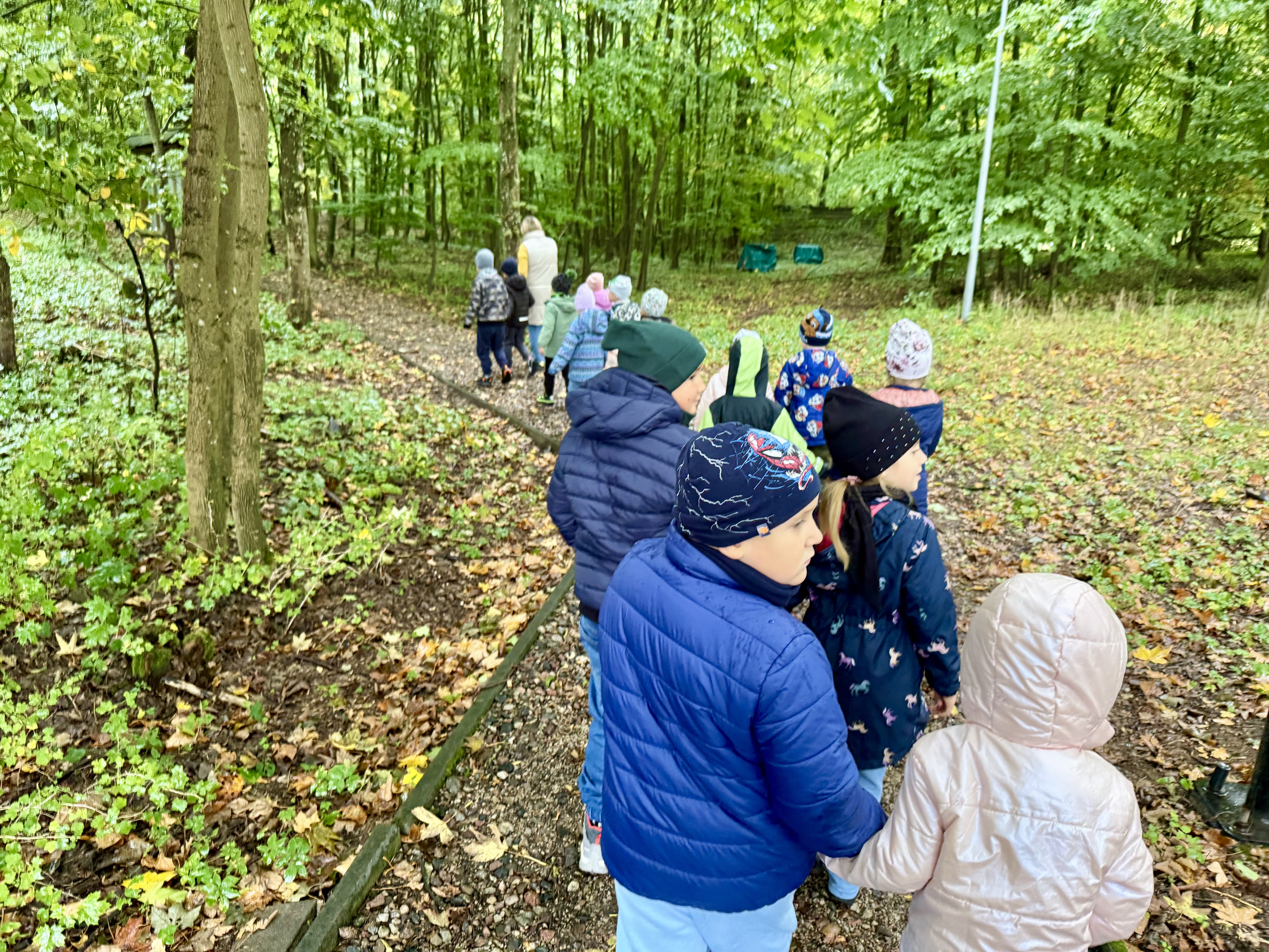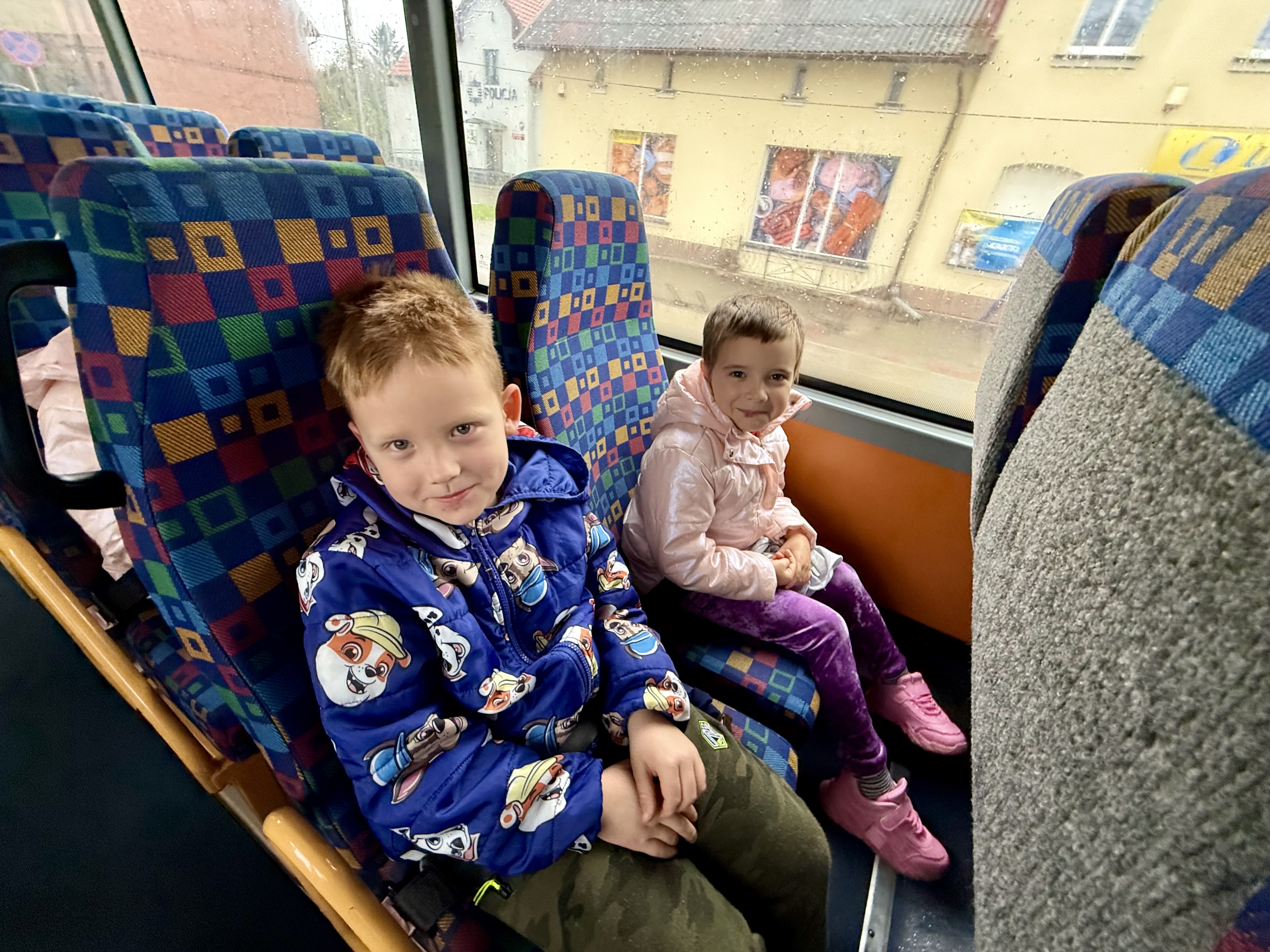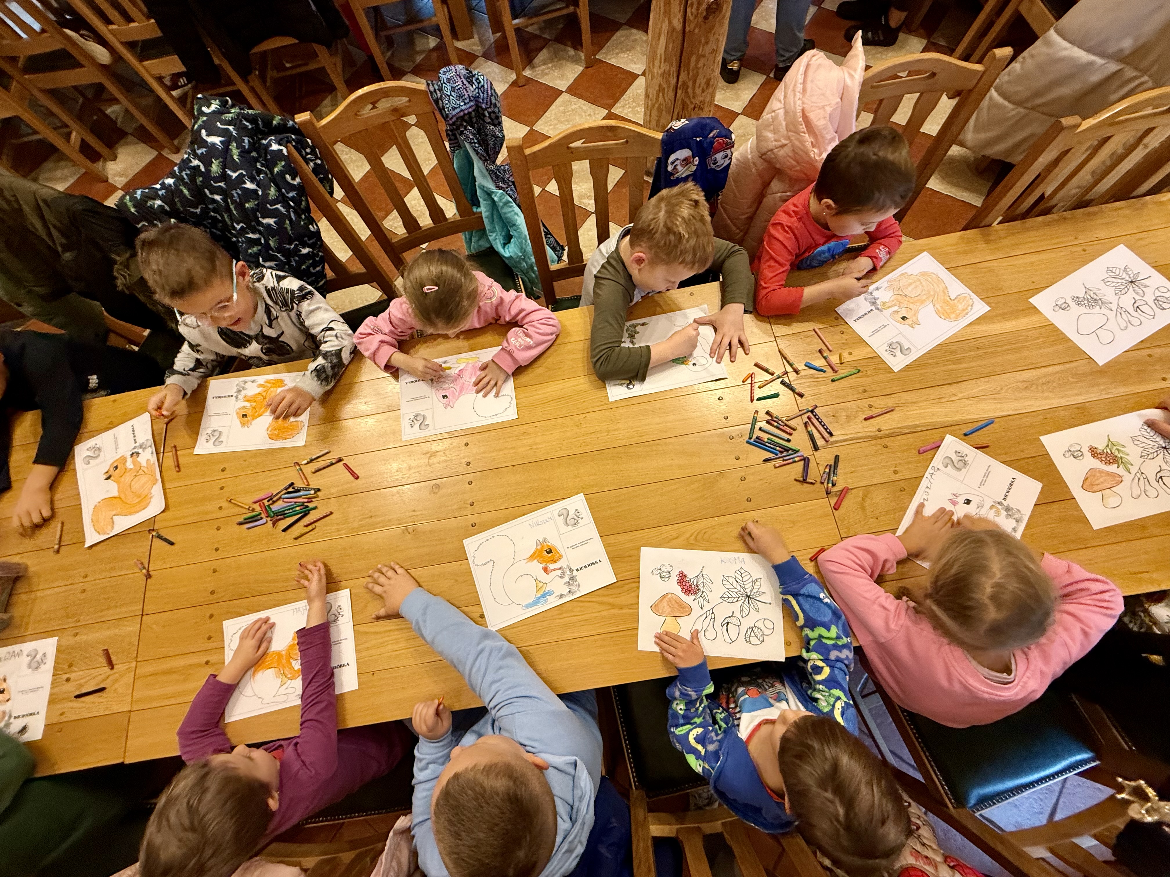 Już sam wyjazd autokarem był dla dzieci atrakcją, ale to, co czekało na miejscu, okazało się prawdziwą przygodą. Mimo deszczu udało nam się wyruszyć na leśną ścieżkę edukacyjną, gdzie dowiedzieliśmy się nieco więcej o życiu lasu, jego mieszkańcach i znaczeniu drzew w przyrodzie. Podziwialiśmy przyrodę w jesiennej, deszczowej aurze – las wyglądał wtedy zupełnie inaczej, cicho, tajemniczo i niezwykle pięknie.