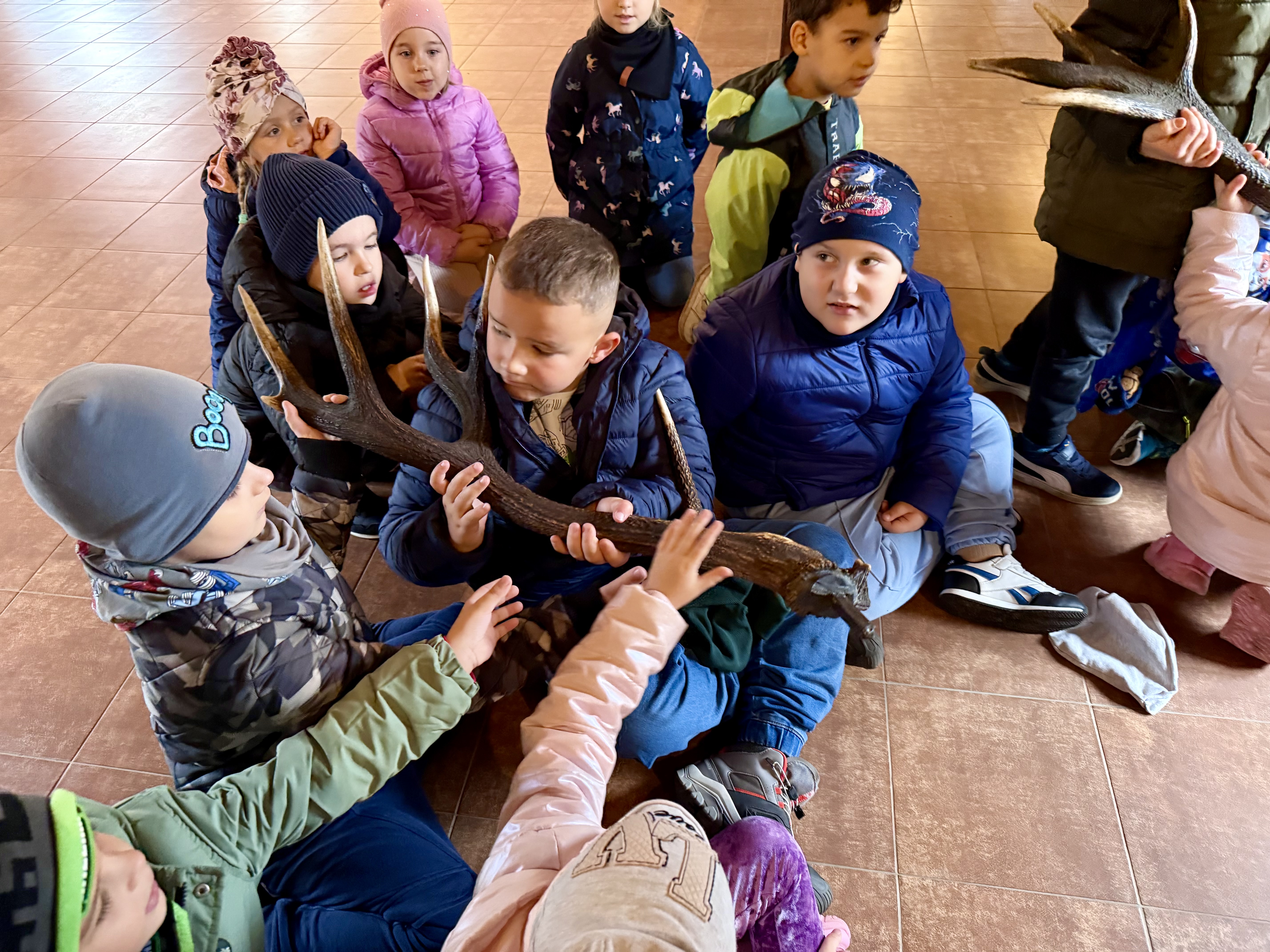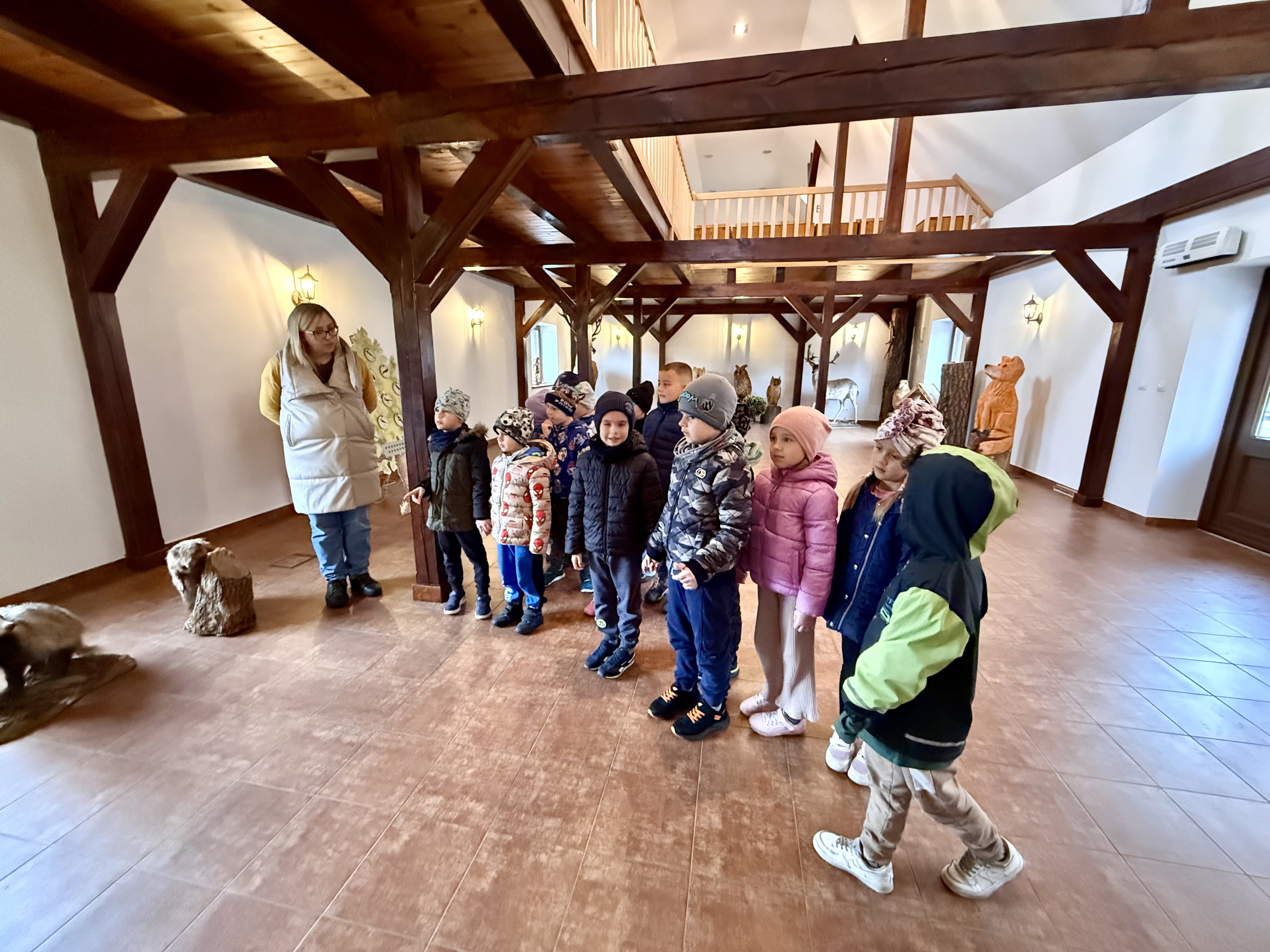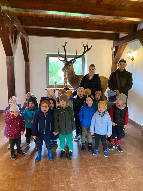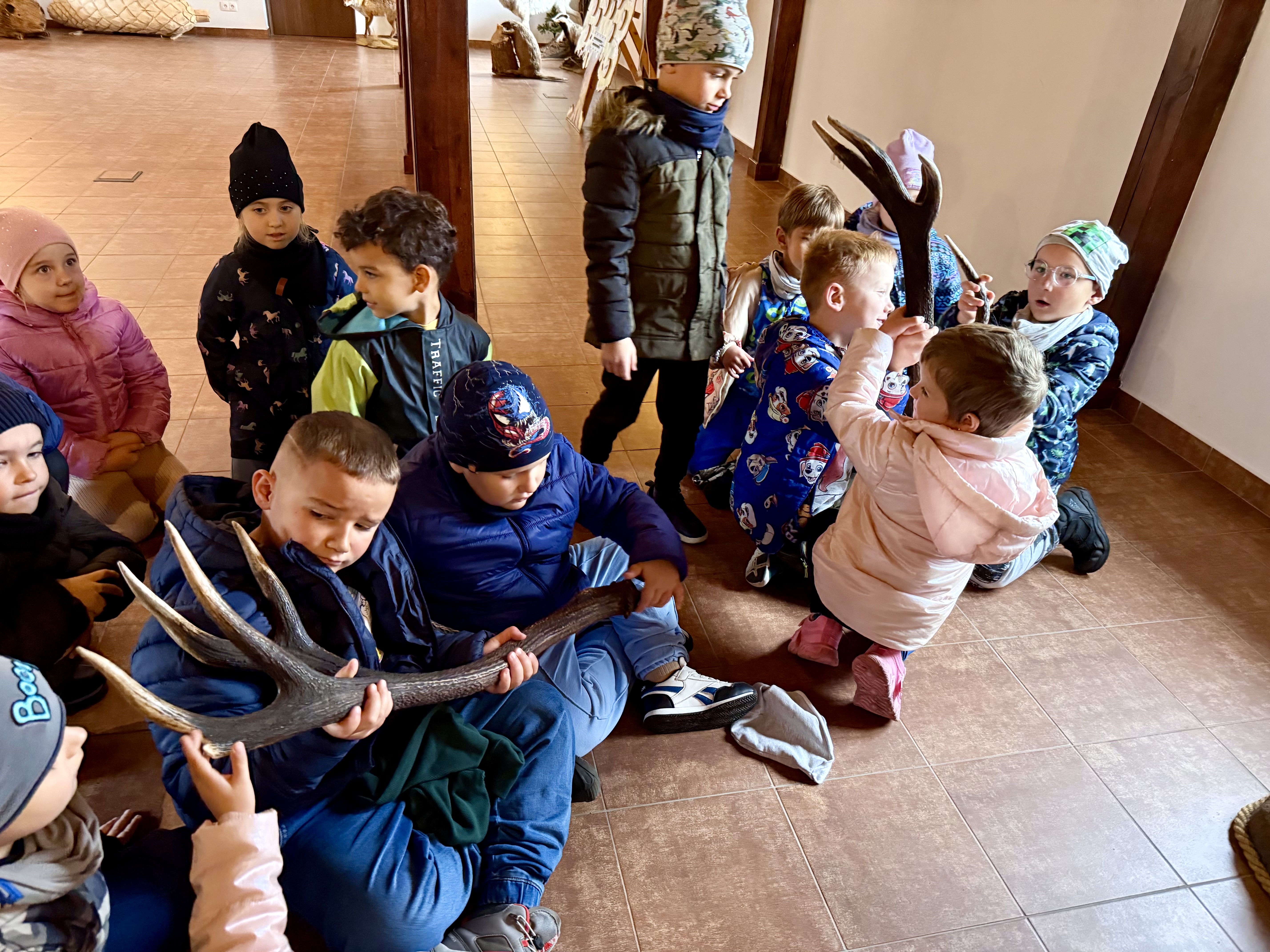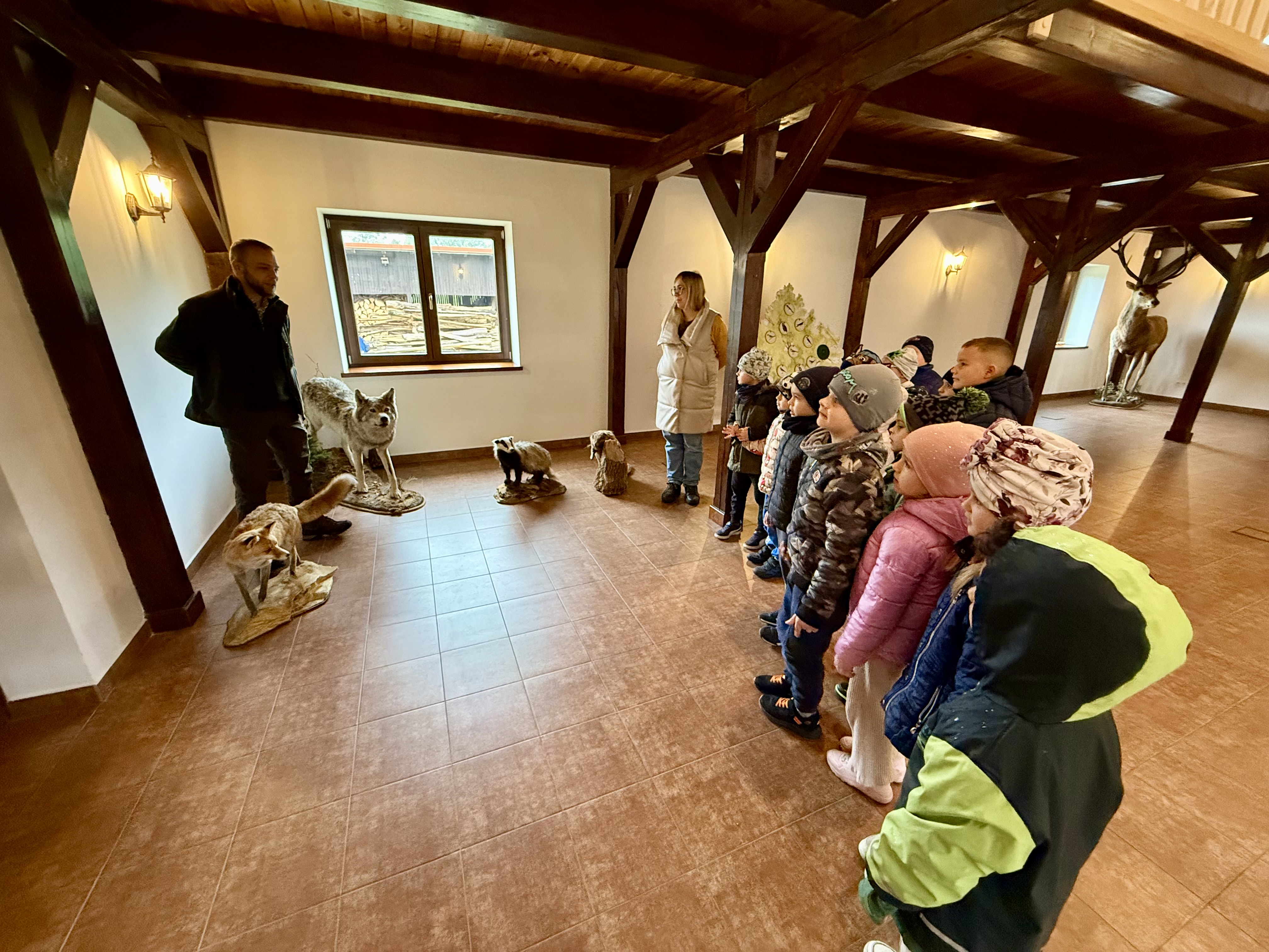 Podczas zajęć mieliśmy też okazję zobaczyć naturalne okazy zwierząt leśnych – wśród nich lisa, wilka, borsuka, bobra i jelenia. Dzięki temu przedszkolaki mogły z bliska przyjrzeć się, jak wyglądają te zwierzęta, dowiedzieć się, gdzie mieszkają i czym się żywią.